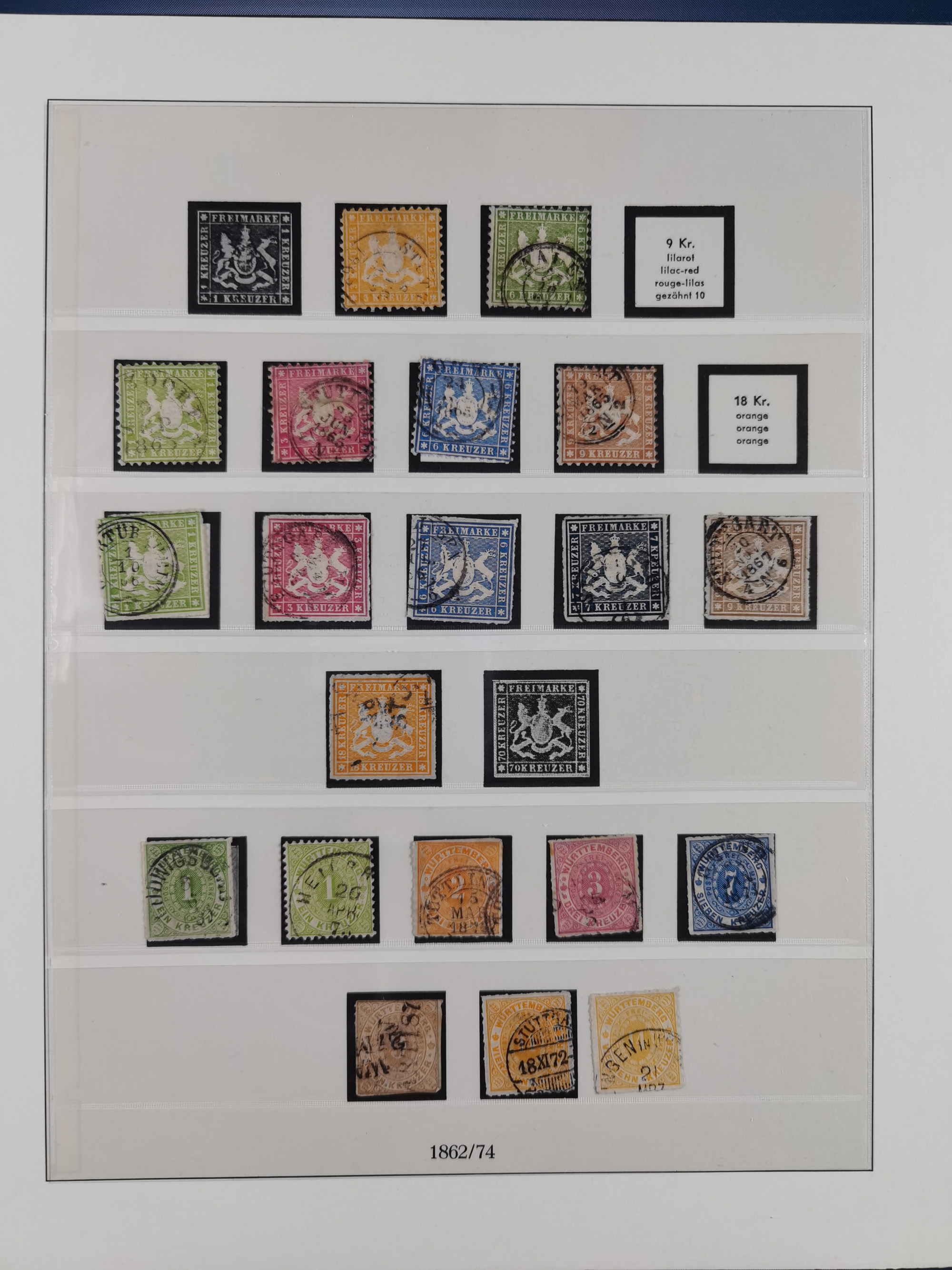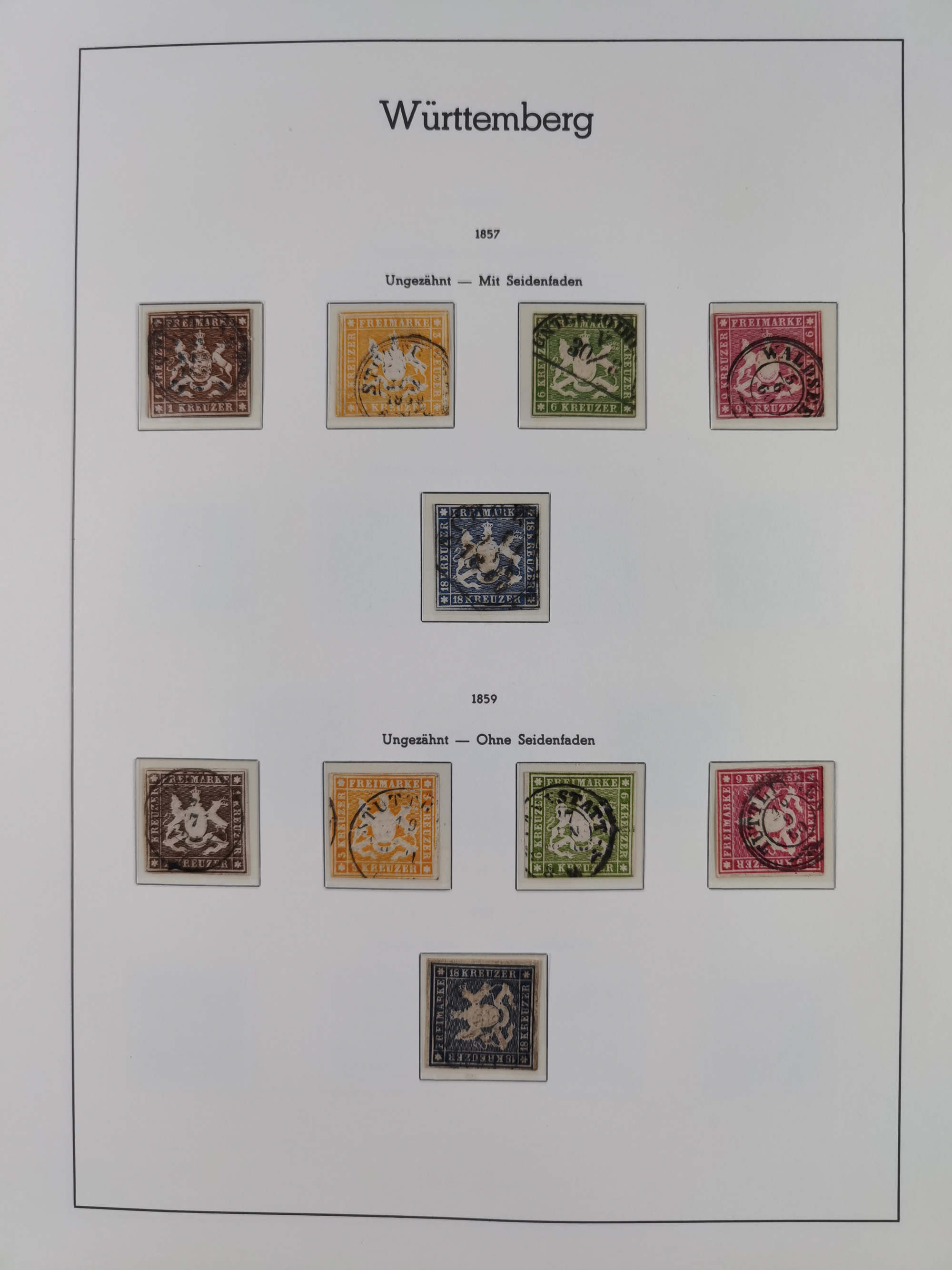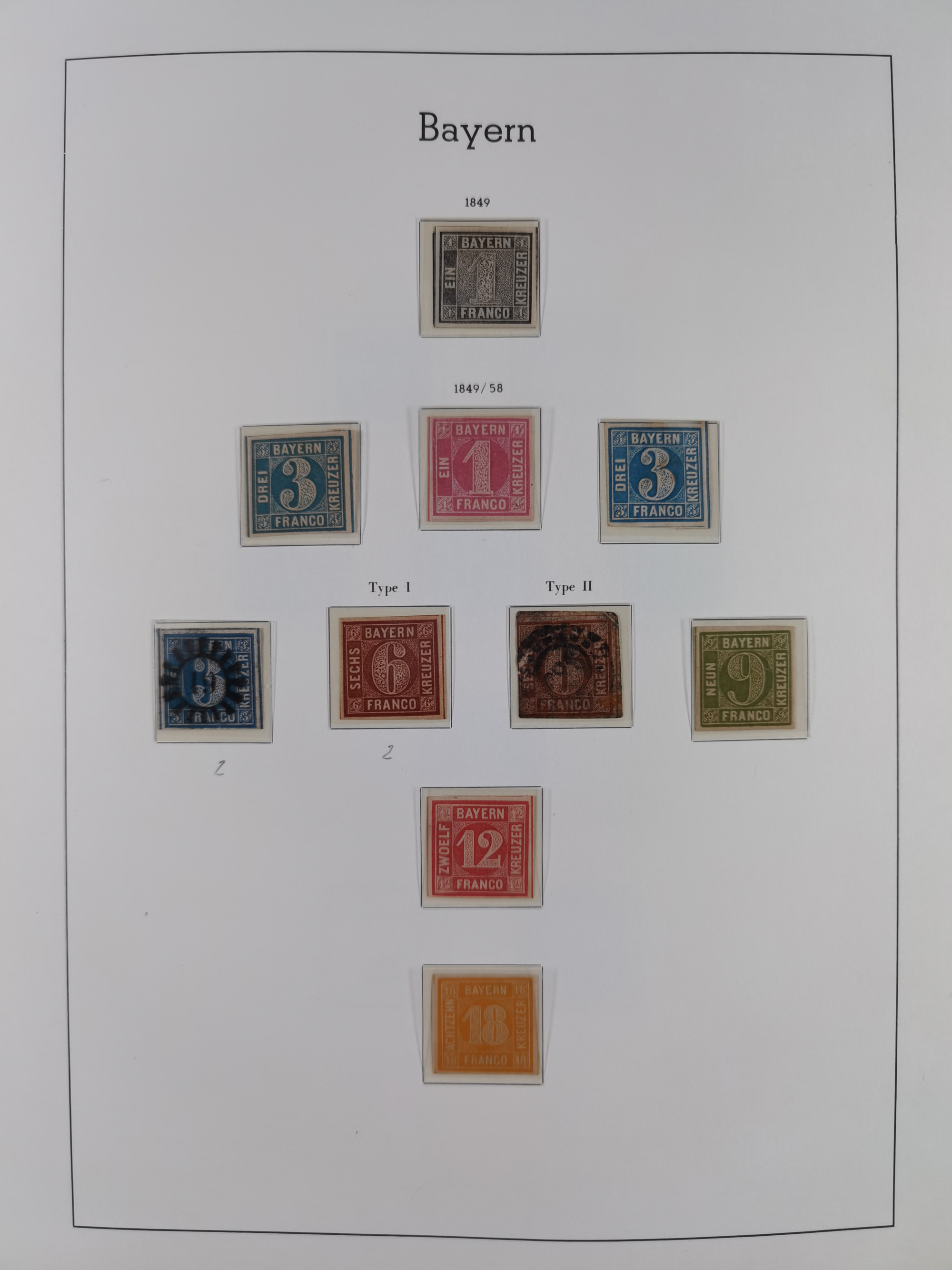 Baden bis Württemberg, ungebrauchte und gestempelte alte Sammlung, dabei u.a. Bayern Mi.-Nr. 1 vollrandig ungebraucht, sowie mit ungebrauchten 6-18 Kr. Werten, Württemberg Mi.-Nr. 42, NDP 18 Kr. gezähnt, sowie besseren Teilen Braunschweig, Oldenburg, Württemberg, etc., einiges sign. Thier, Krüger, Georg Bühler, etc.