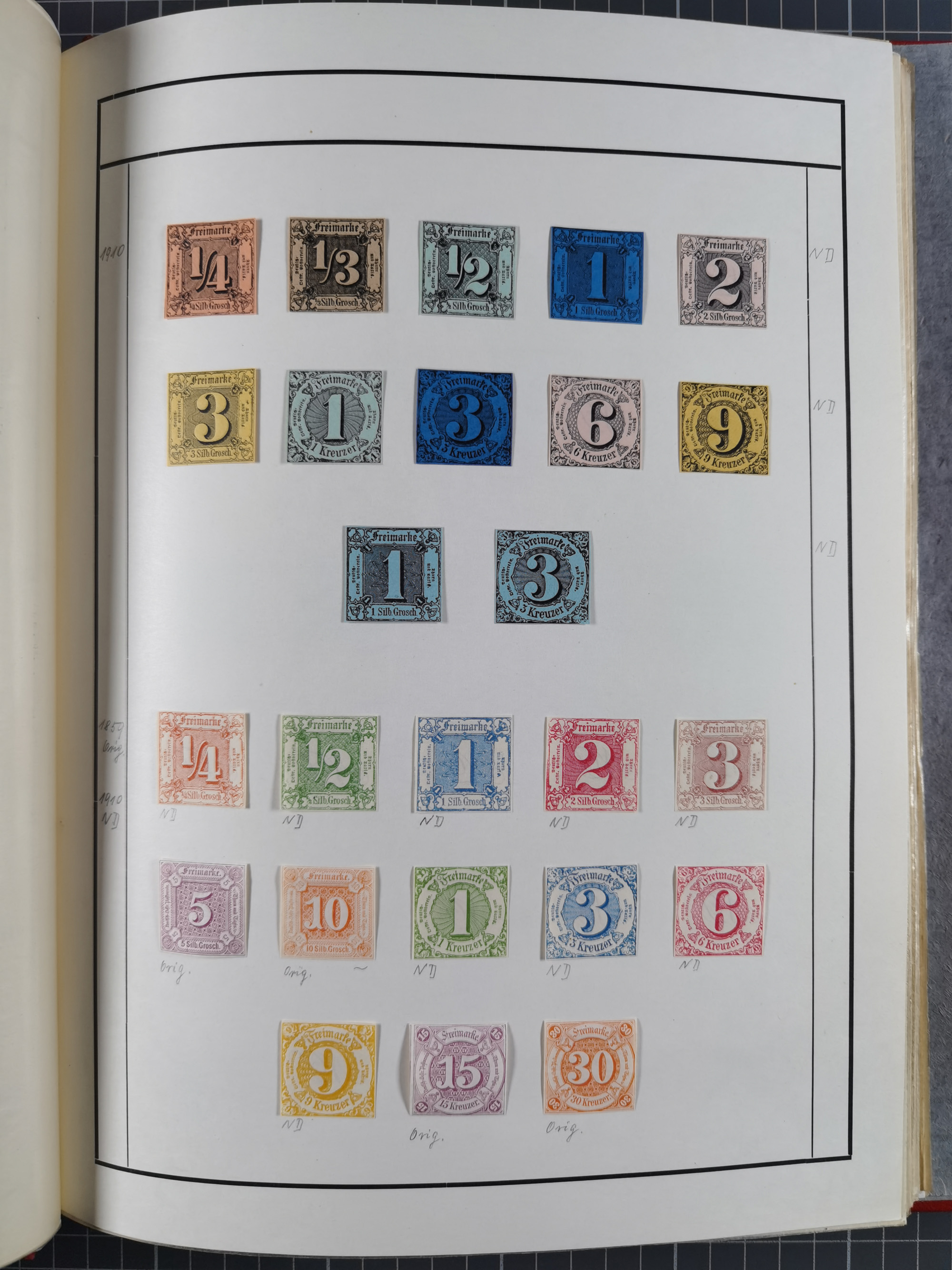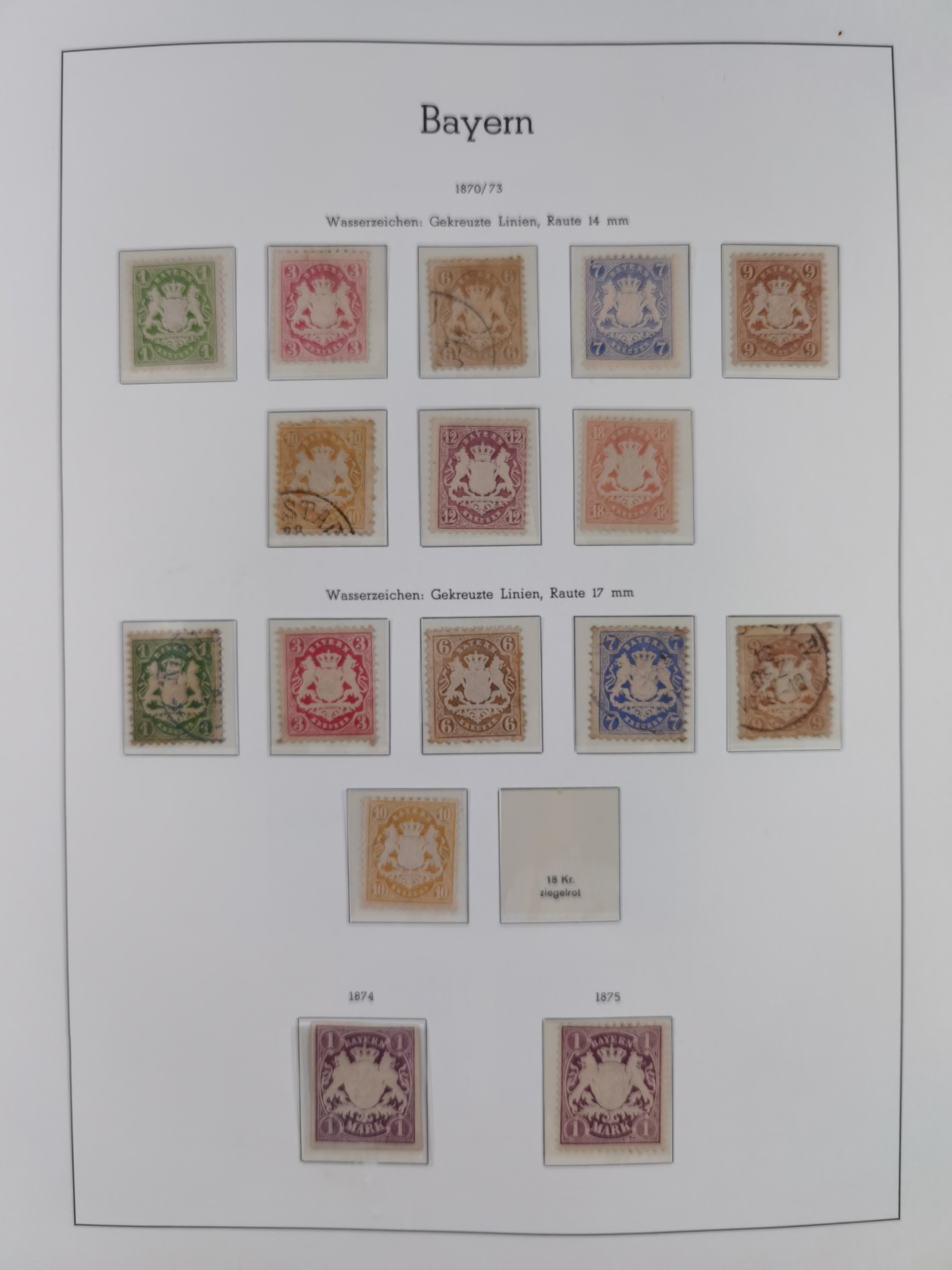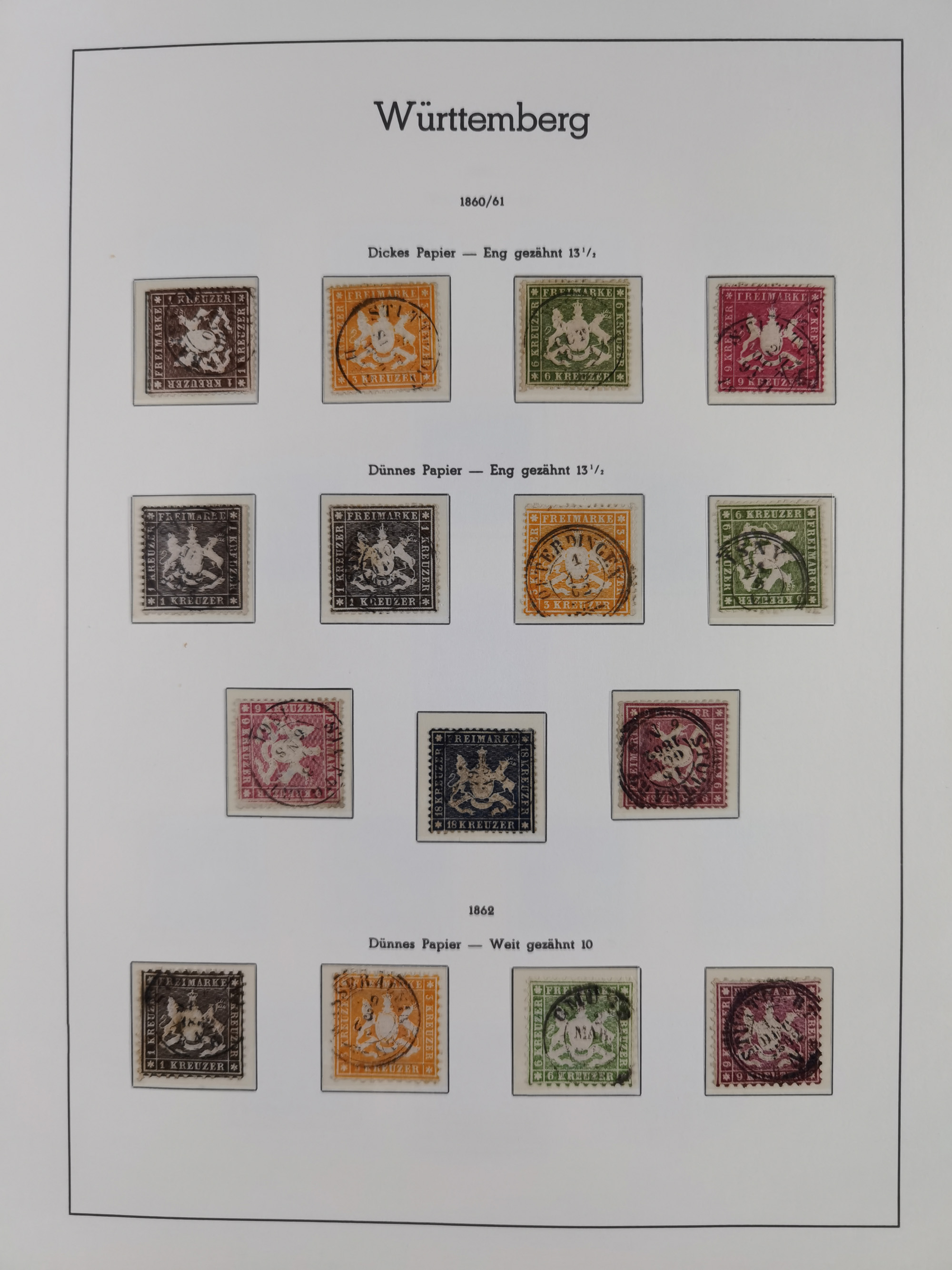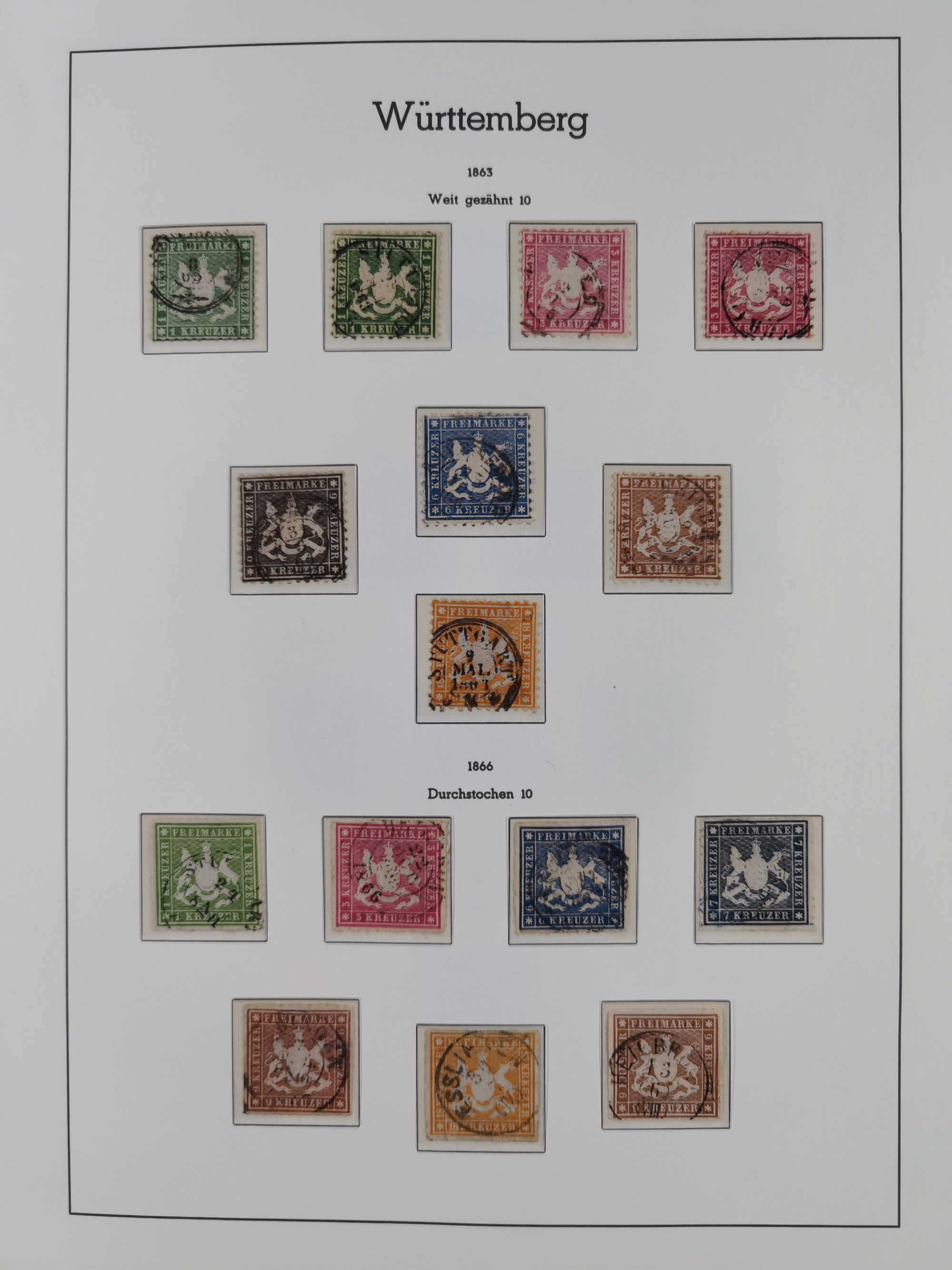 Baden bis Württemberg, ungebrauchte und gestempelte alte Sammlung, dabei u.a. Bayern Mi.-Nr. 1 vollrandig ungebraucht, sowie mit ungebrauchten 6-18 Kr. Werten, Württemberg Mi.-Nr. 42, NDP 18 Kr. gezähnt, sowie besseren Teilen Braunschweig, Oldenburg, Württemberg, etc., einiges sign. Thier, Krüger, Georg Bühler, etc.