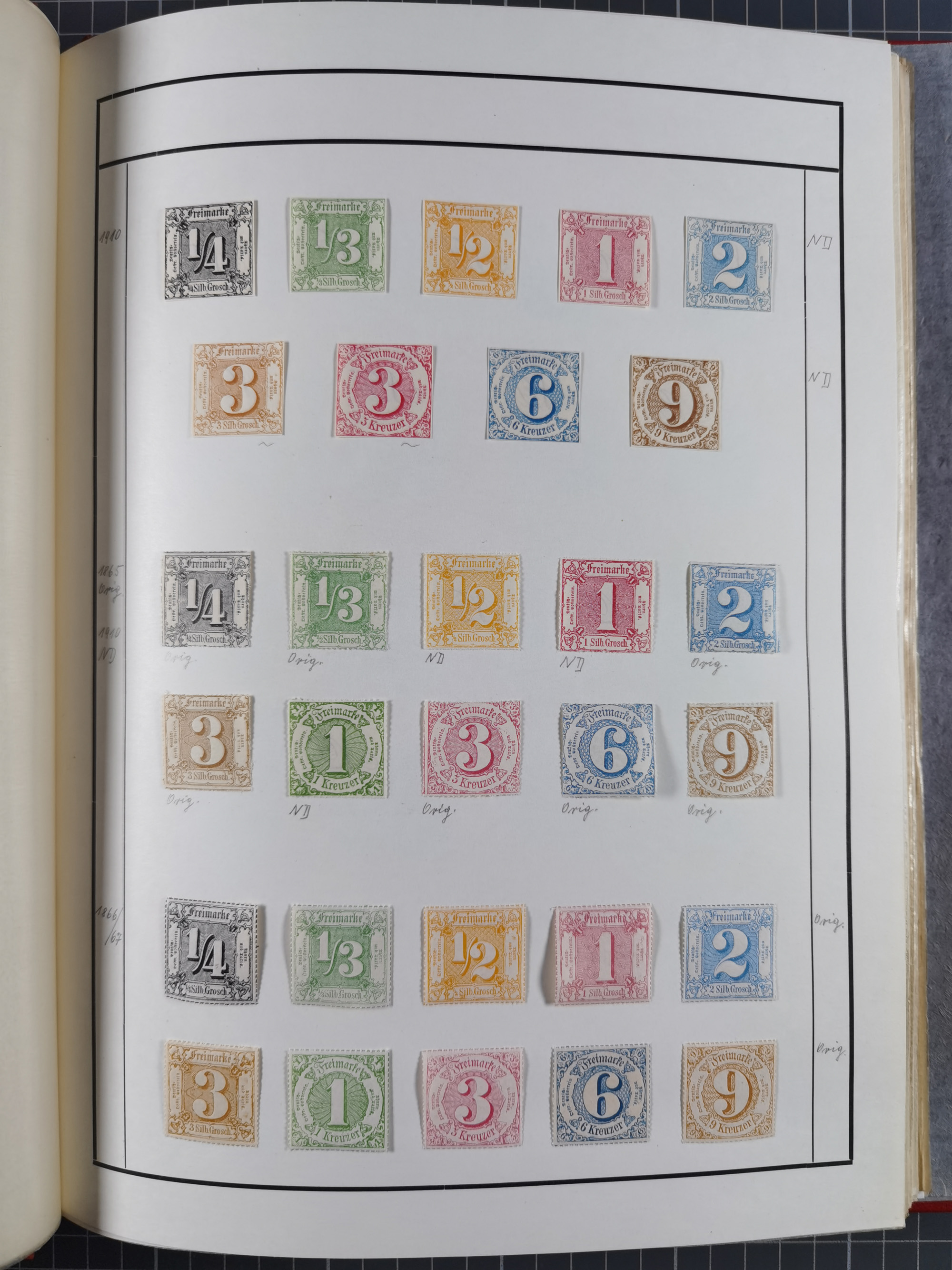 1851/68, ungebrauchte und gestempelte Sammlung mit besseren Marken, Farben und Besonderheiten. Dabei u.a,. Mi.-Nr. 1a gestempelt (FB Flemming BPP), Mi.-Nr. 13 c gestempelt (FA Flemming BPP), Mi.-Nr. 19Ab gestempelt (FA Stegmüller BPP). Mi.-Nr. 20 c gestempelt (FB Flemming BPP), Mi.-Nr. 21a gestempelt (signiert Brettl und Seeger BPP), Mi.-Nr. 21b gestempelt (doppelt sign. Alcuri mit Befund) und Mi.-Nr. 22a (signiert Pfenninger). Viele Marken sind signiert, Erhaltung von fehlerhaft bis einwandfrei