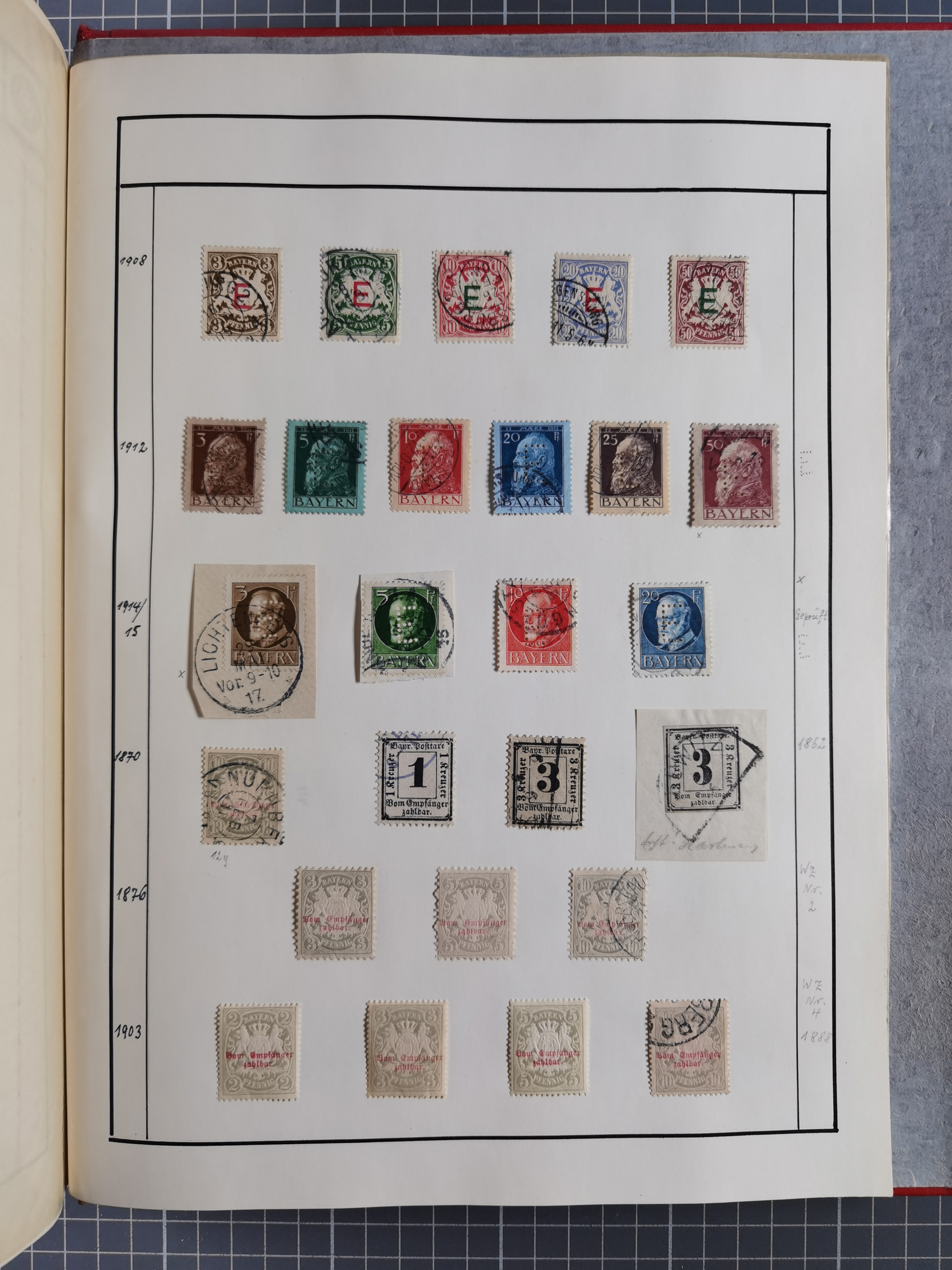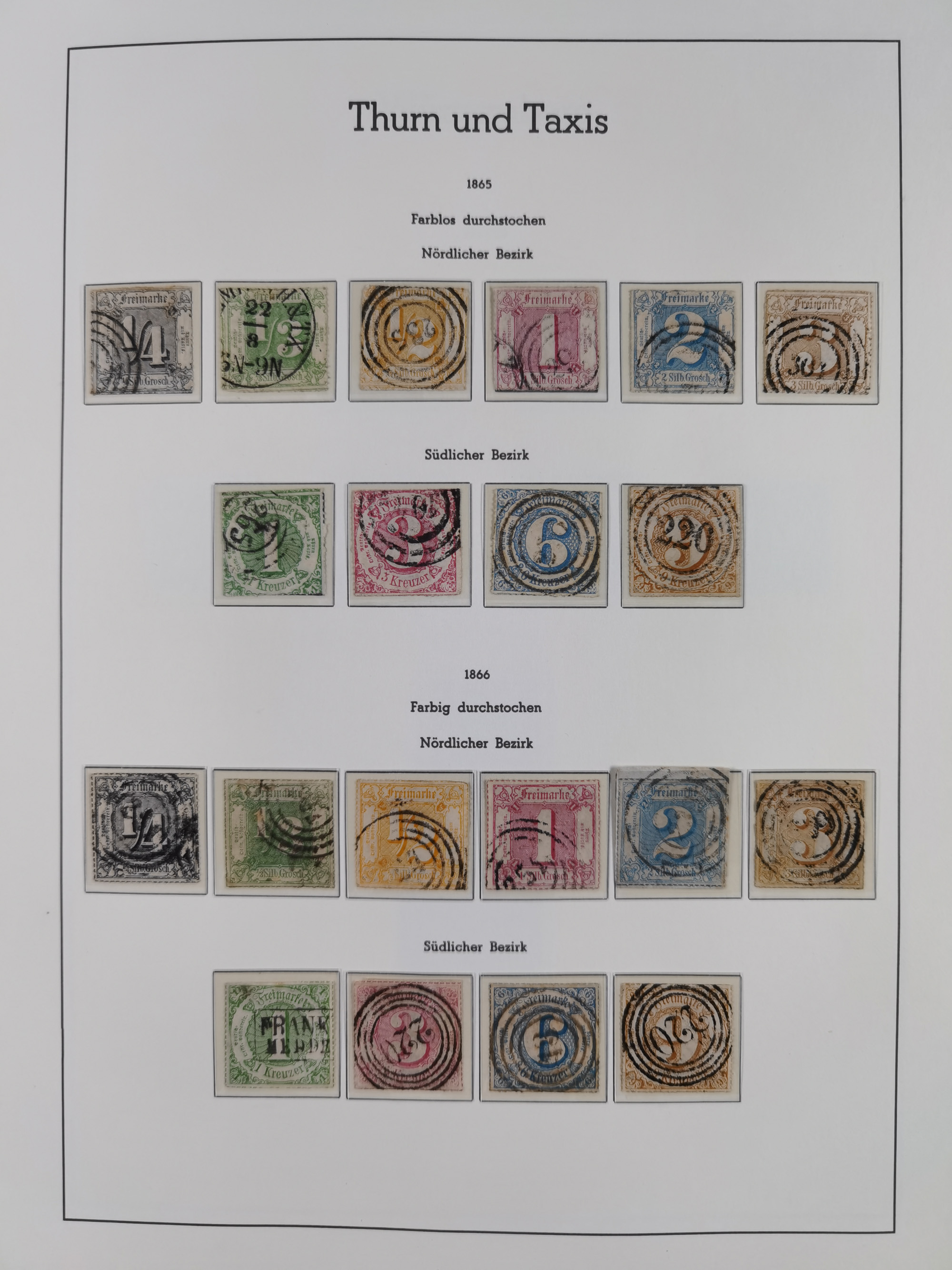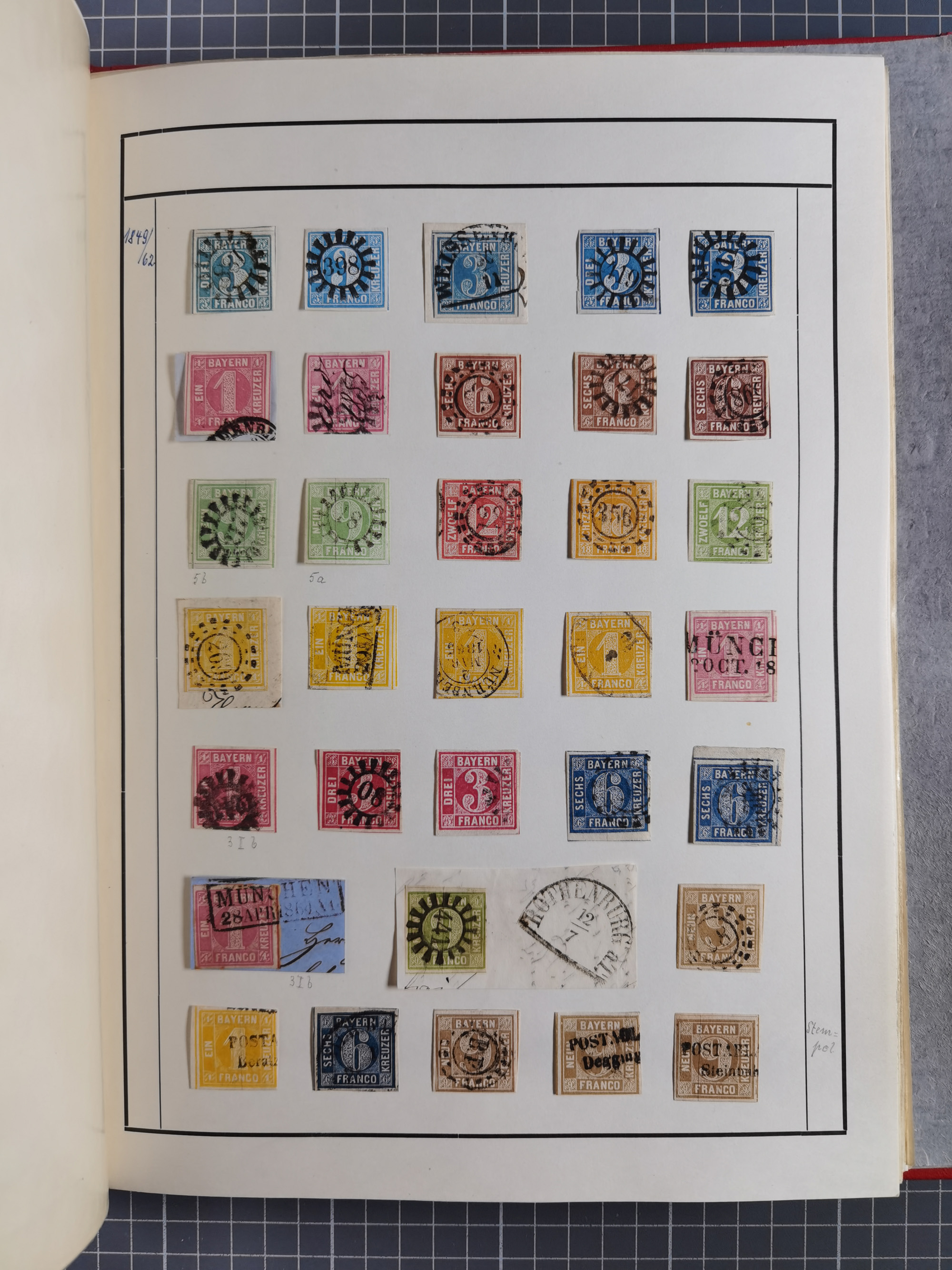 Baden bis Taxis, ungebrauchte und gestempelte Sammlungsbestand, jedes Stück mit ausführlicher Beschriftung auf Karten montiert, dabei recht schöner Bayern-Teil mit Mi. 1I, mehreren 4I, etc., dabei auch Einheiten, schöne Briefstücke und Besonderheiten. In Holzkisten und 4 Steckbüchern, in 3 großen Kartons.