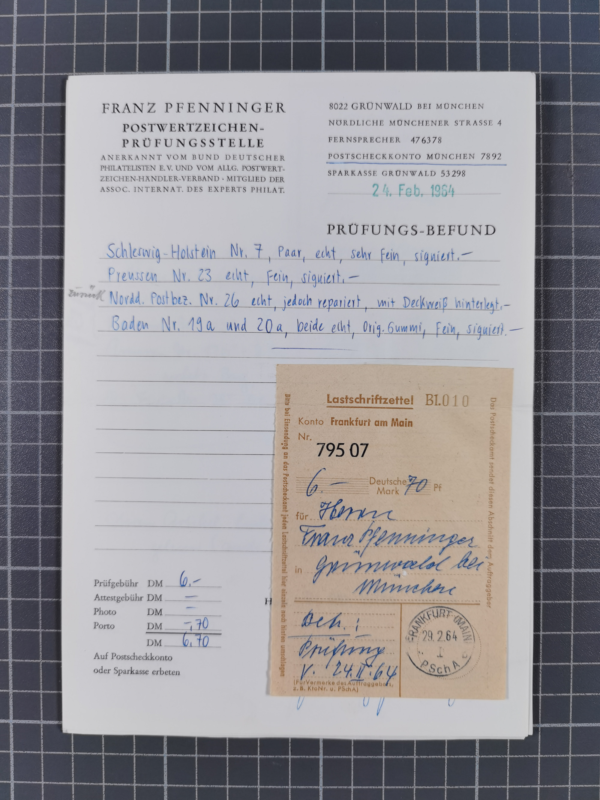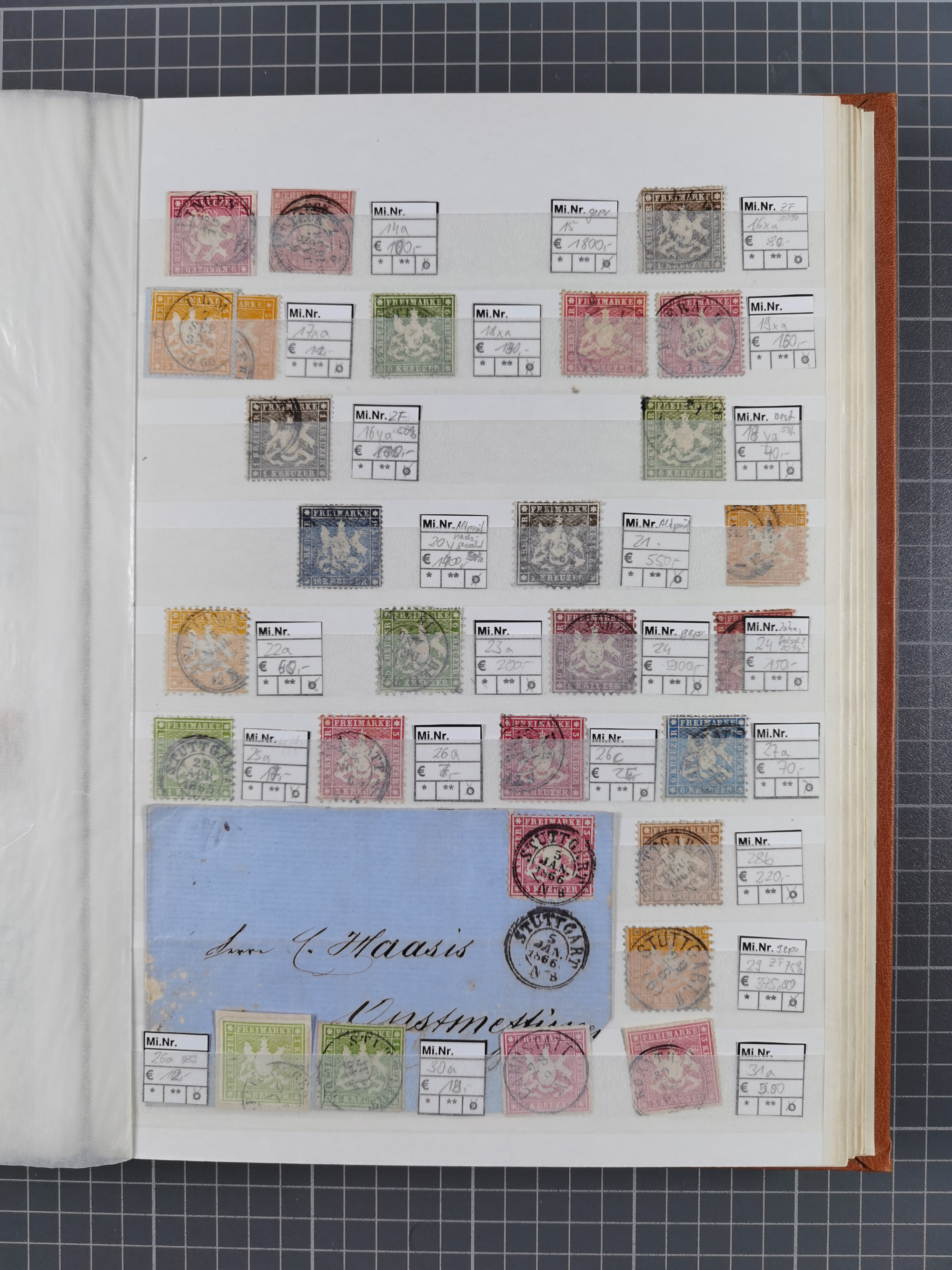 1851/67 (ca.), ungebrauchte und gestempelte kleine Partie besserer Werte, dabei Württemberg Mi. 3b, 5 und 10 a je ungebraucht sowie 42 a gestempelt, Hannover 18 gestempelt, Oldenburg 5, etc., dazu DR 28 (repariert, signiert Georg Bühler). 5 Atteste und ein Befund Heinrich bzw. Jäschke-L. BPP (alle 2026)
