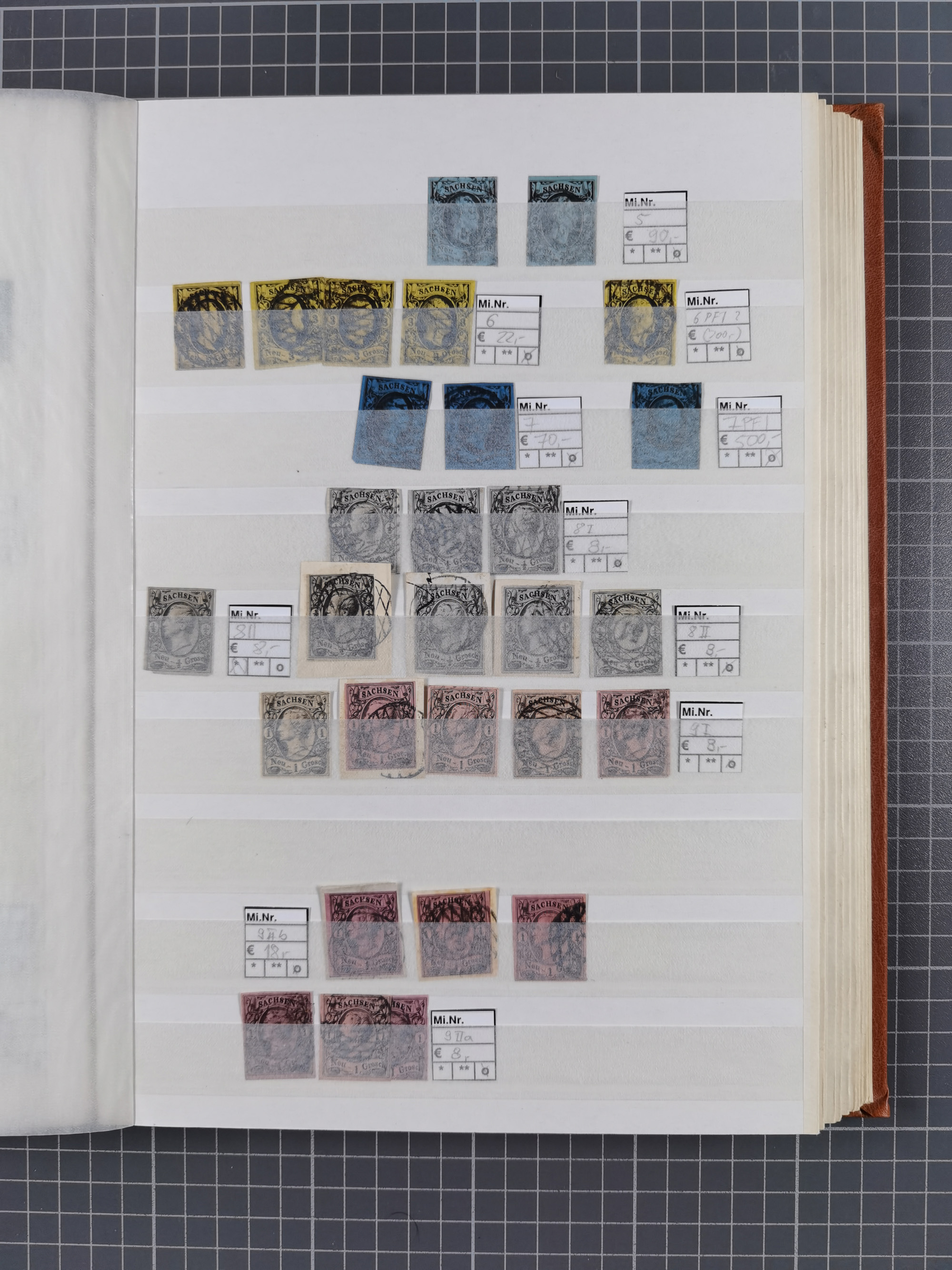1849/70 (ca.), ungebrauchte und gestempelte reichhaltige Partie im Steckalbum, dabei viele bessere Werte, schöne Briefstücke und einige Besonderheiten