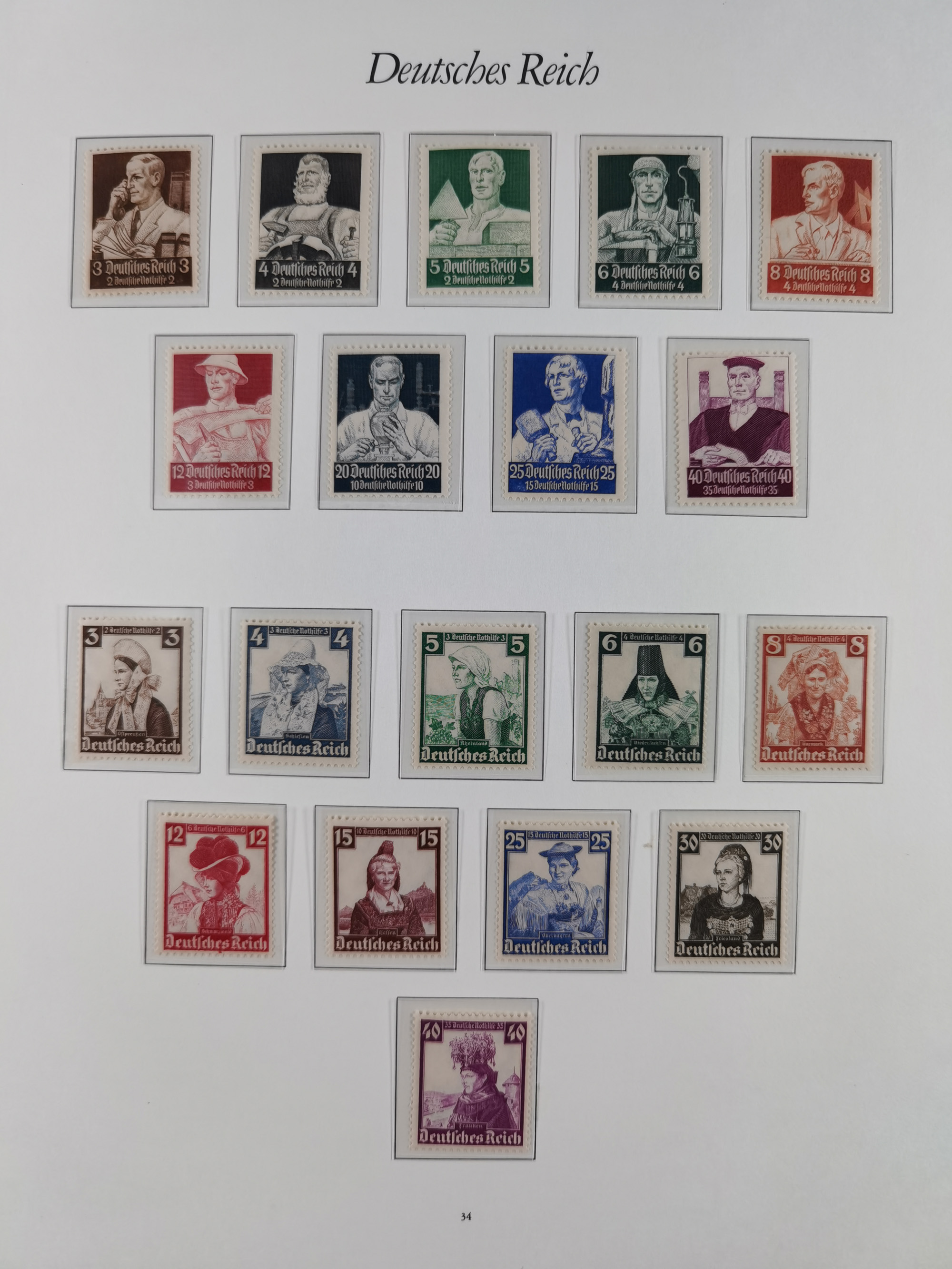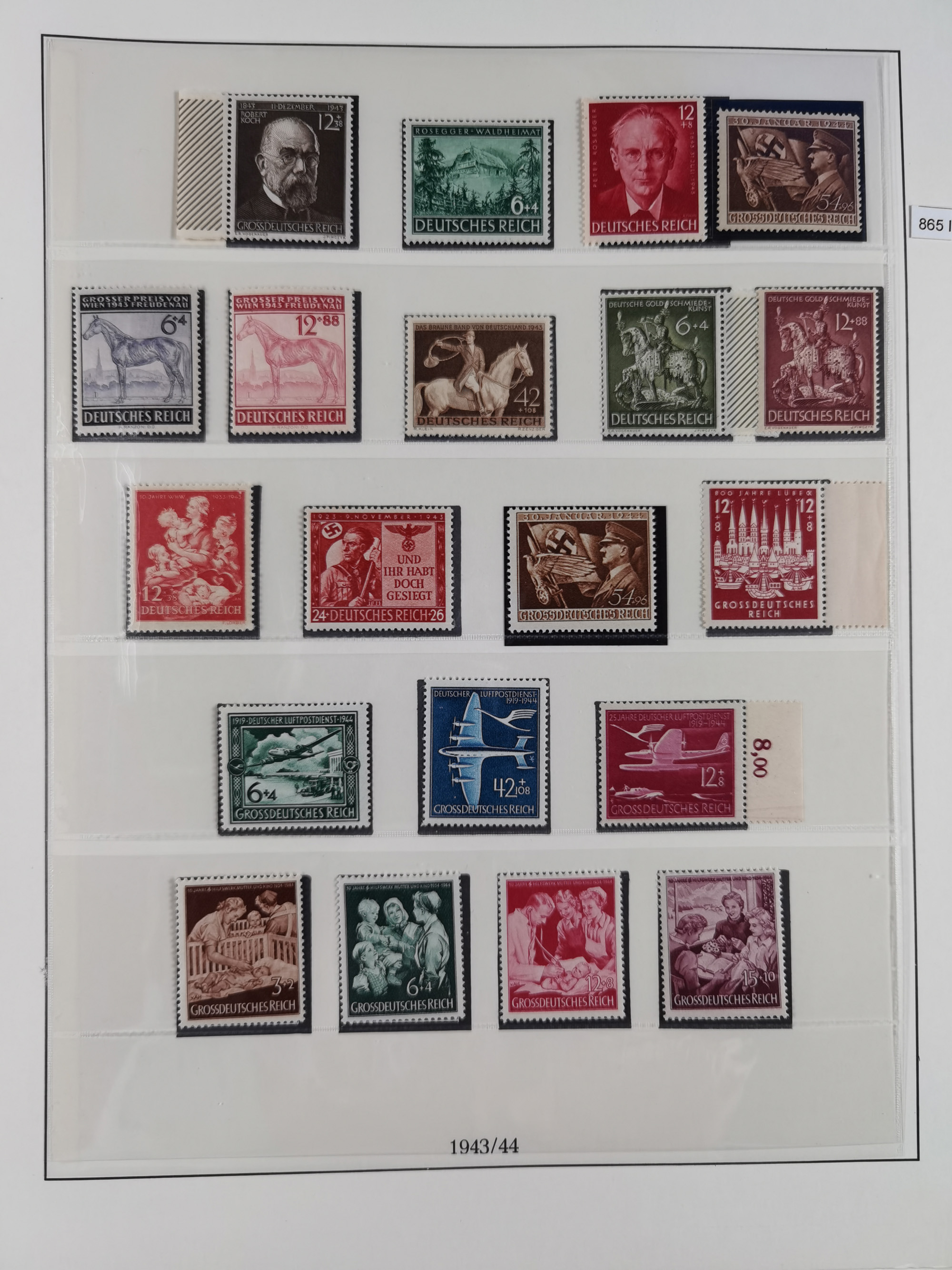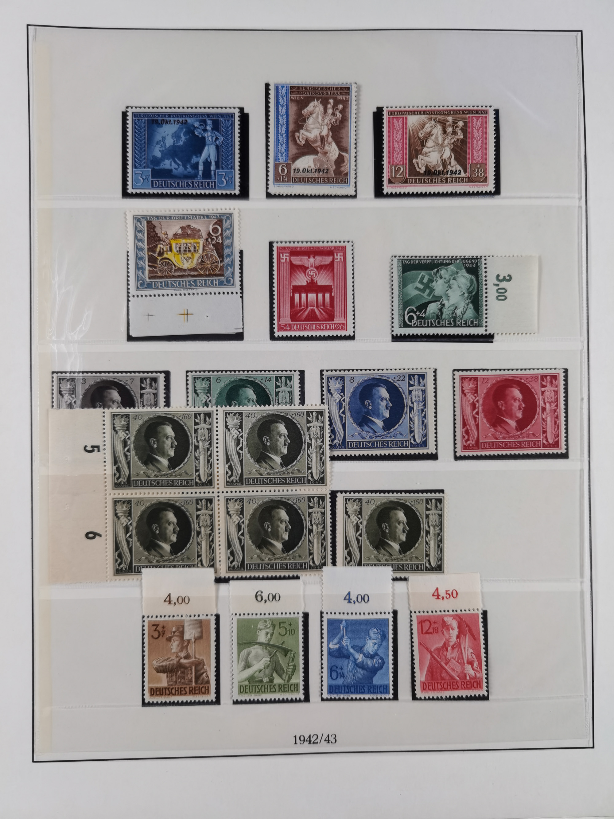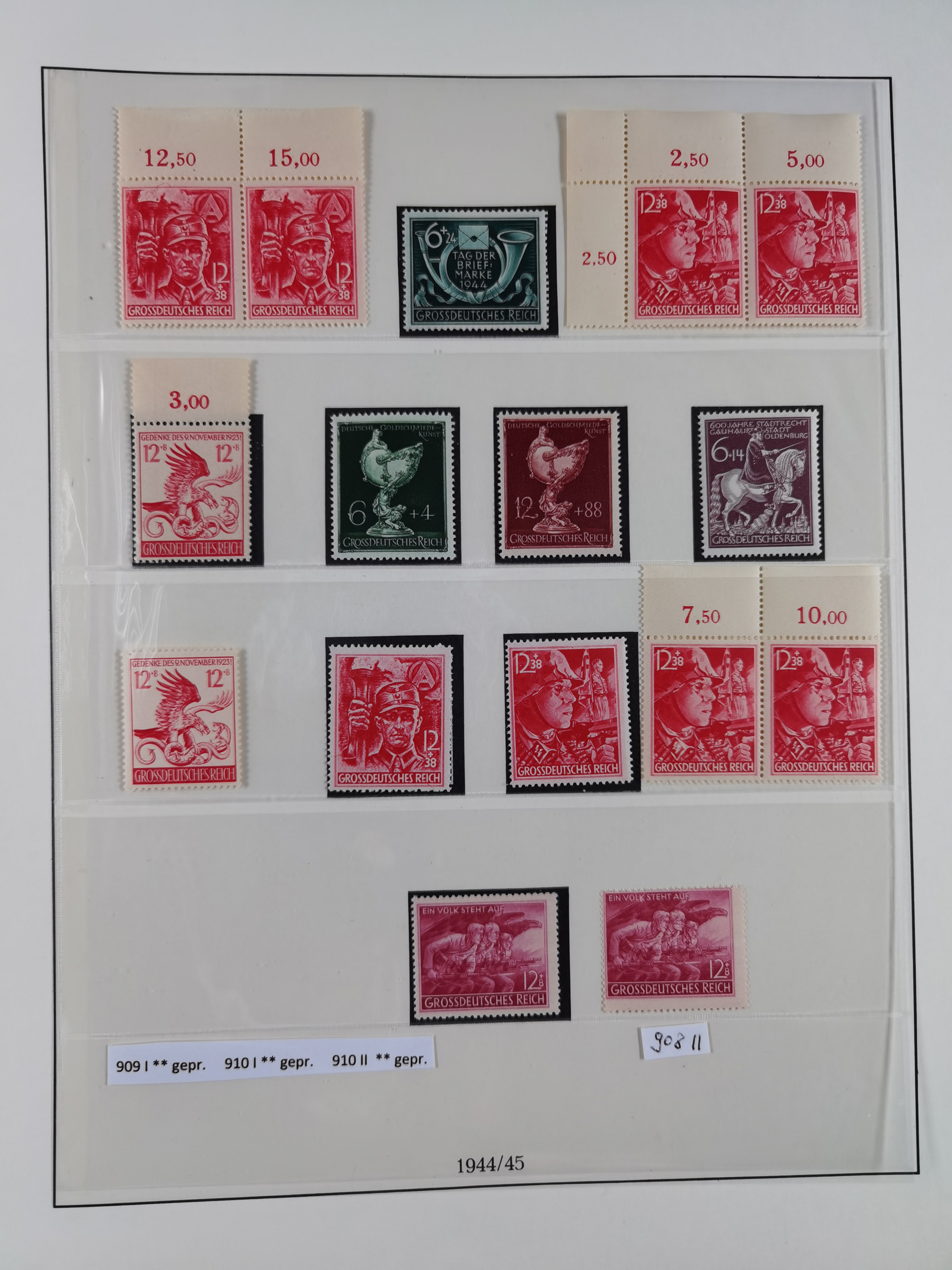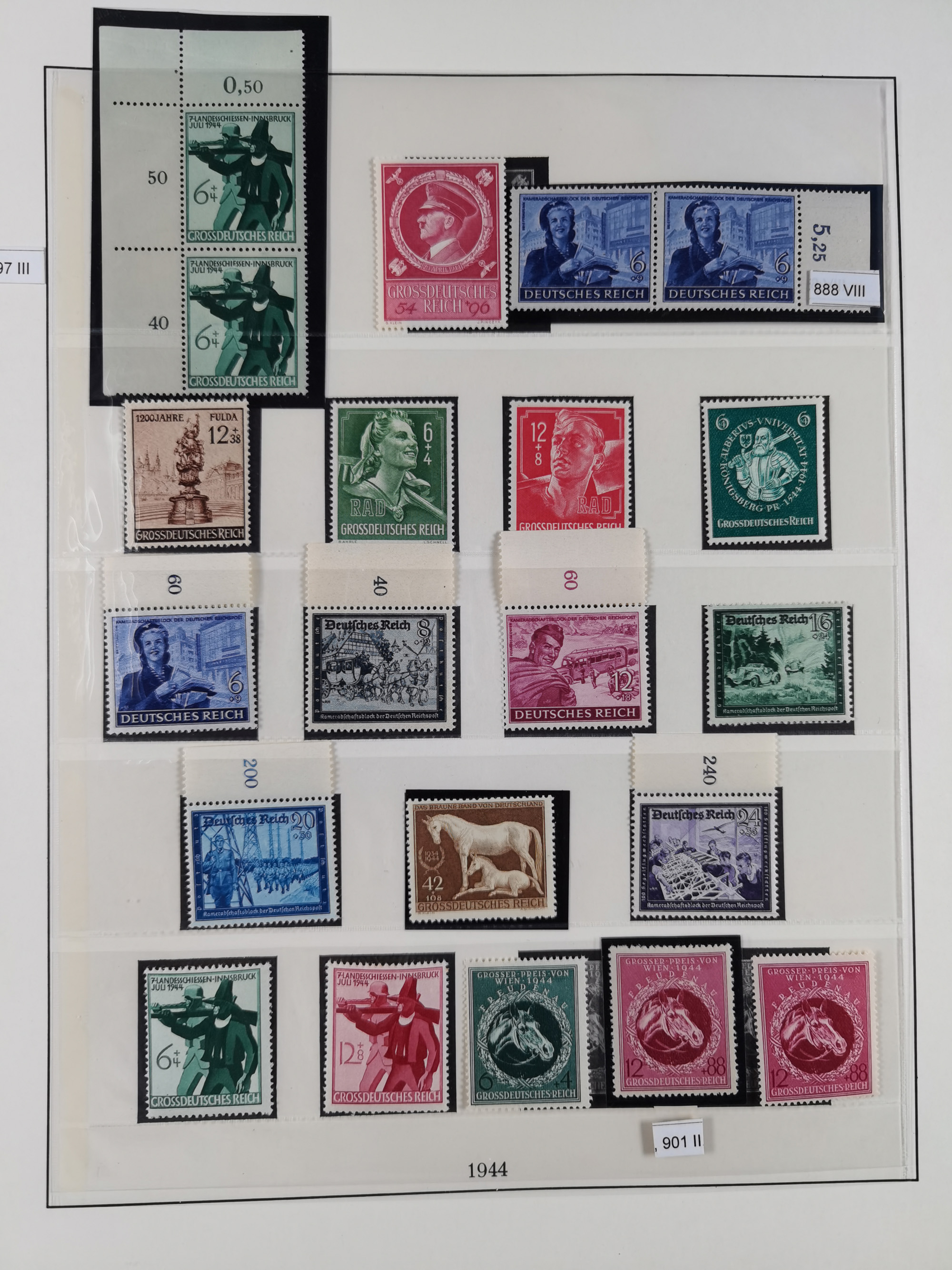 1933/45, umfangreiche meist postfrische und ungebrauchte Sammlung, inkl. Dienstmarken, Feldpost und General Gouvernement, mit einigen Einheiten, Zusammendruck, Dubletten und weiteren Besonderheiten, bessere Werte mit u.a. 482-495, 499-507, 529-539 postfrisch/ungebraucht, 505B postfrisch, Ostropa Bl. 3 (leicht fleckig), etc., teils signiert, meist in sehr schöner Gesamterhaltung, sauber im Falzlos-Album