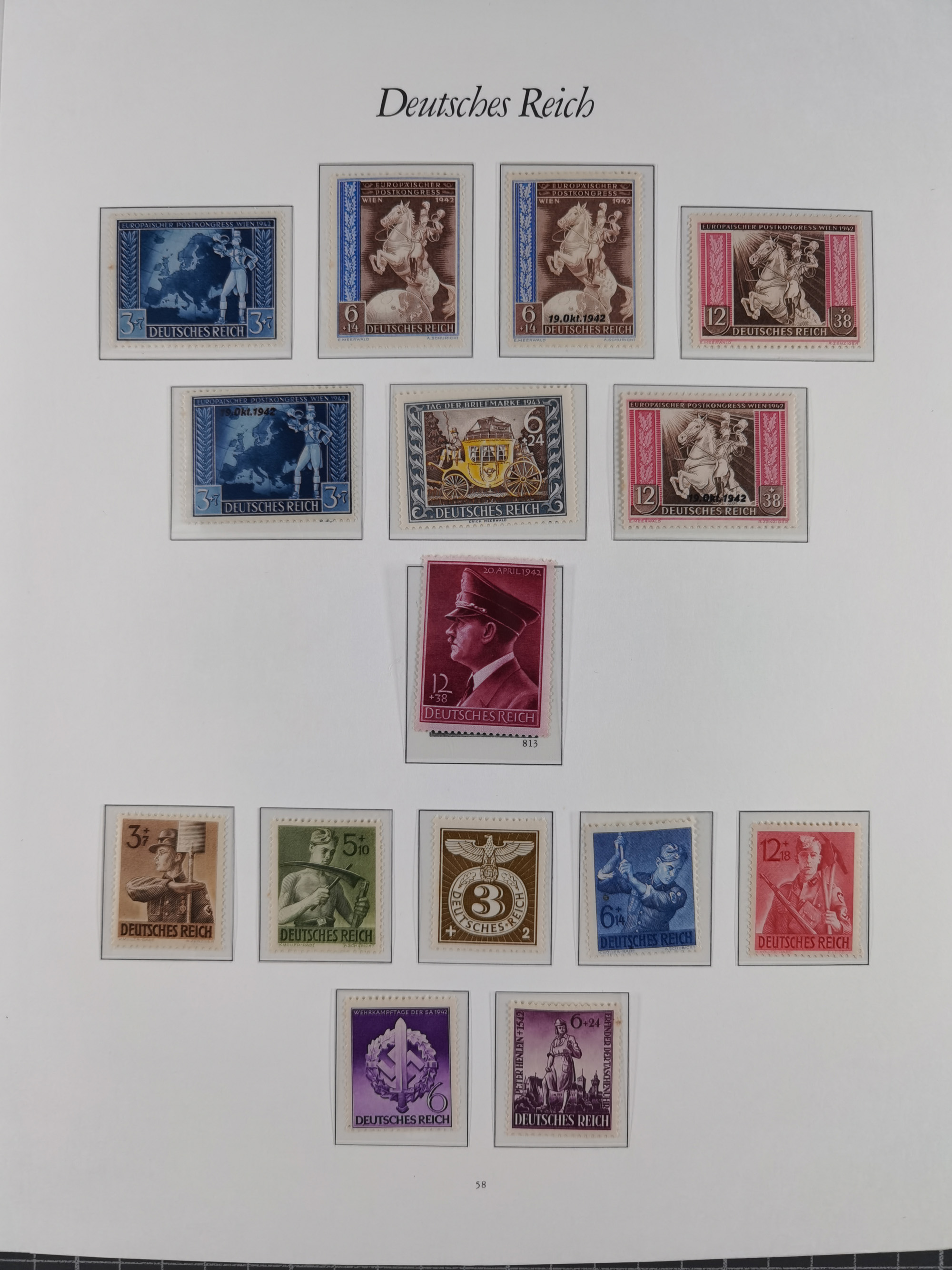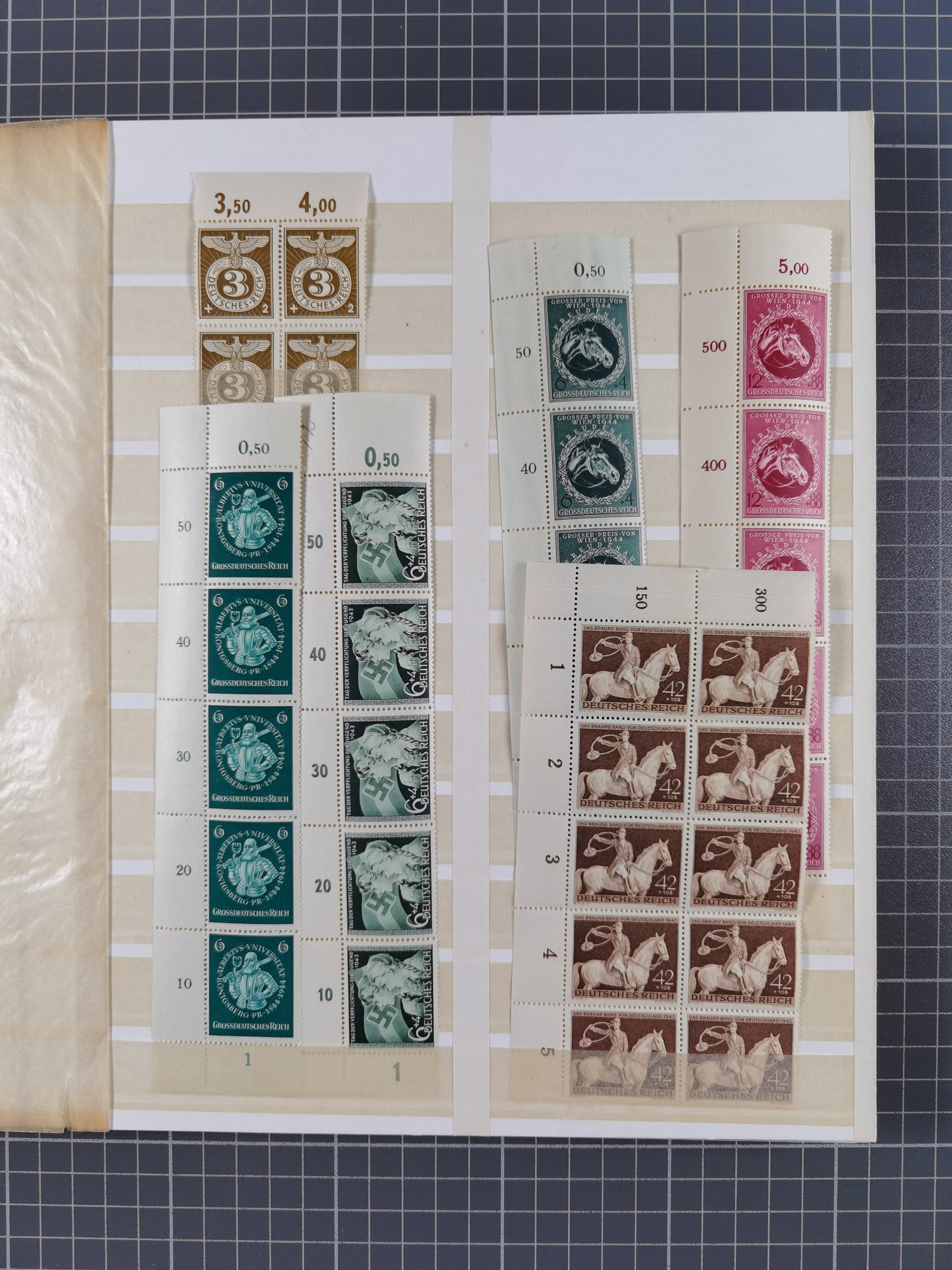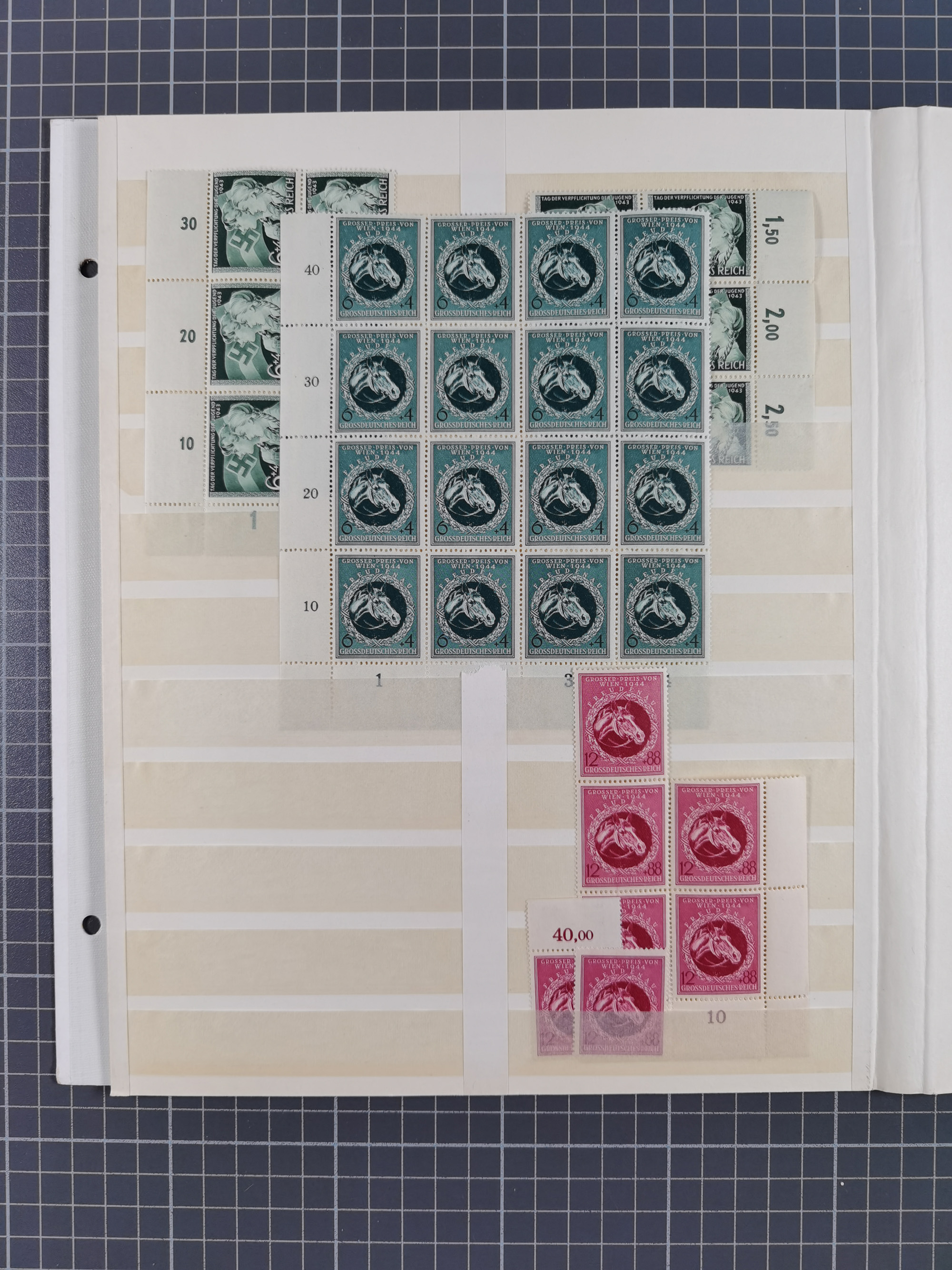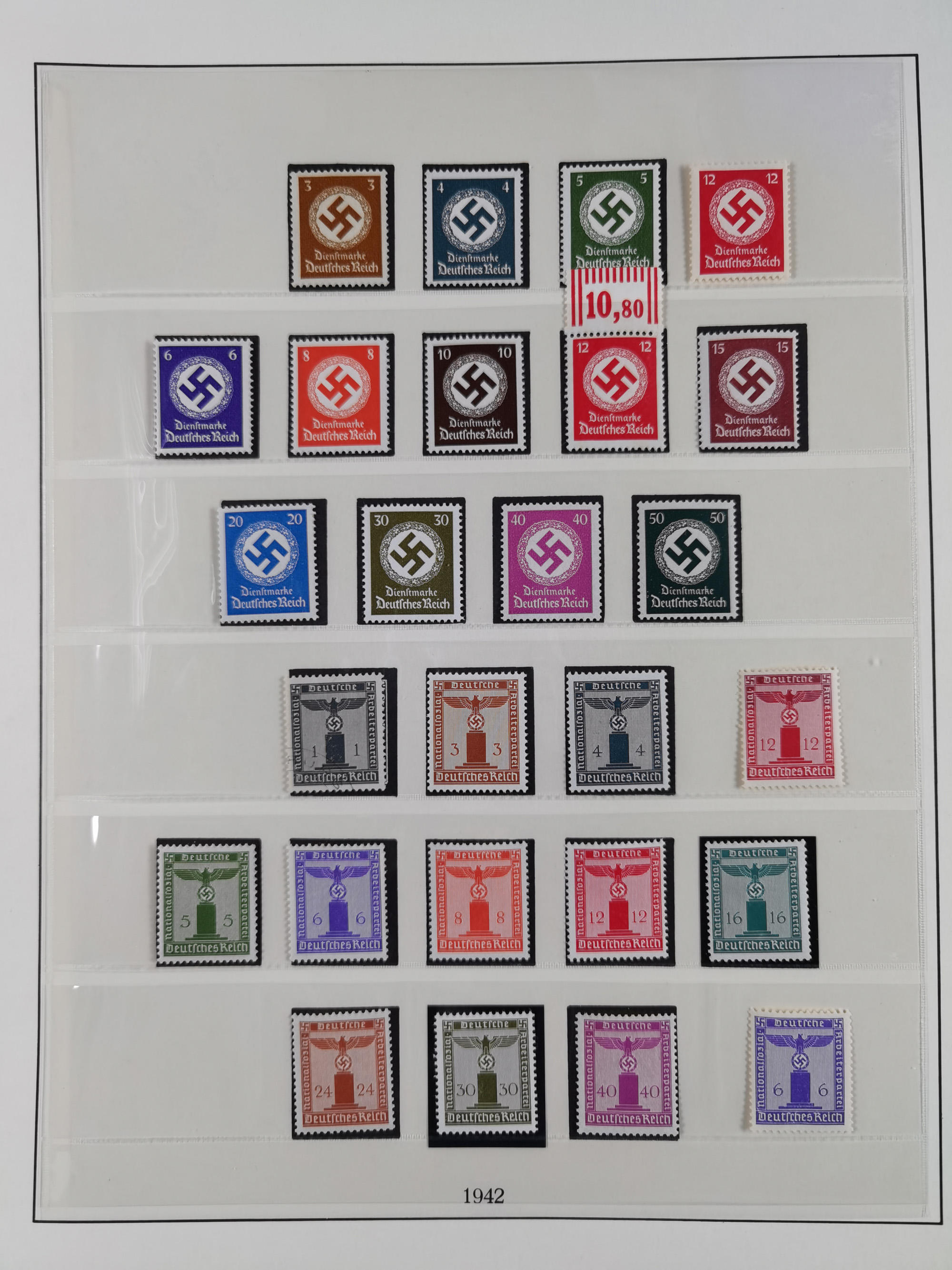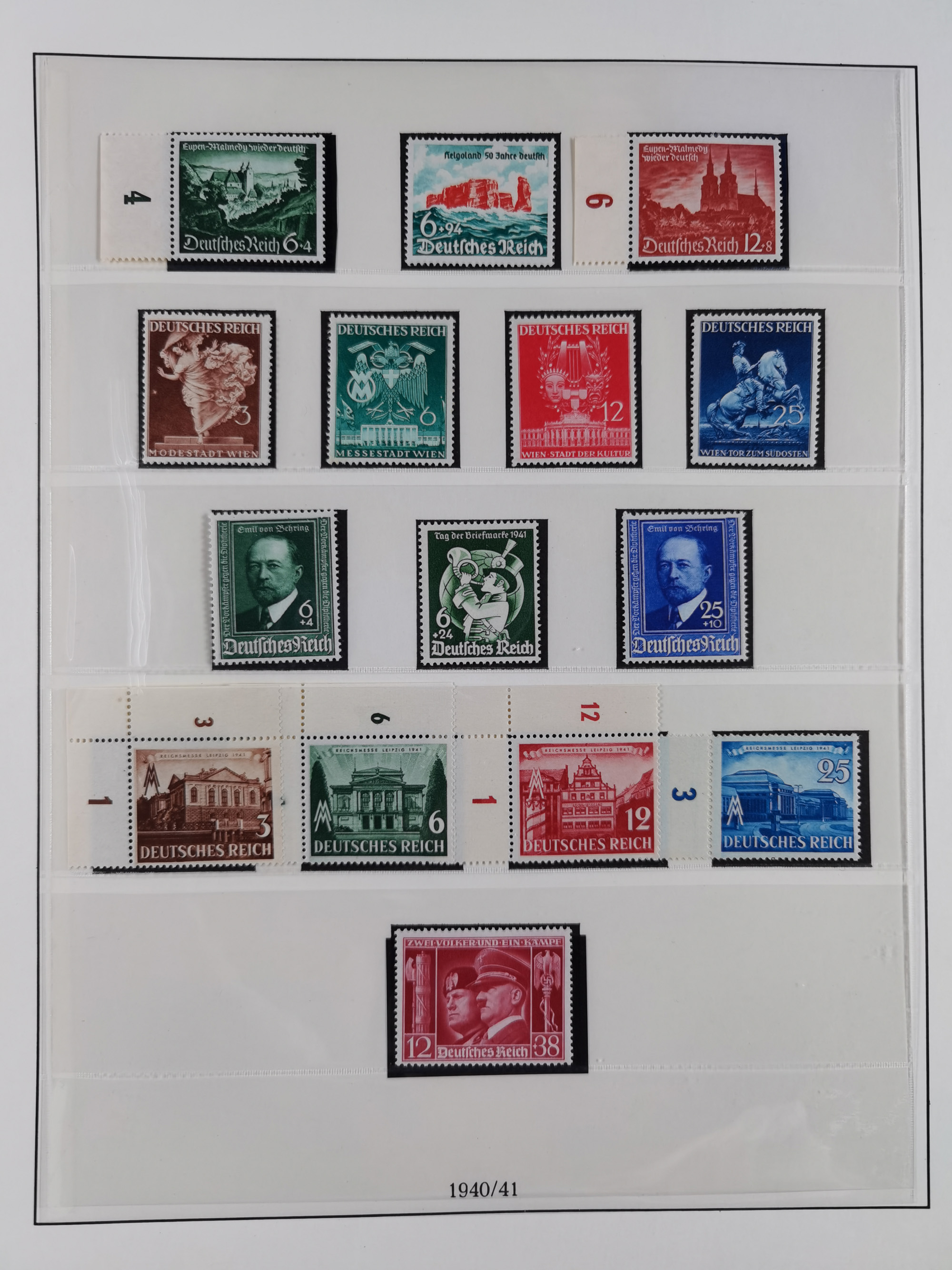 1933/45, umfangreiche meist postfrische und ungebrauchte Sammlung, inkl. Dienstmarken, Feldpost und General Gouvernement, mit einigen Einheiten, Zusammendruck, Dubletten und weiteren Besonderheiten, bessere Werte mit u.a. 482-495, 499-507, 529-539 postfrisch/ungebraucht, 505B postfrisch, Ostropa Bl. 3 (leicht fleckig), etc., teils signiert, meist in sehr schöner Gesamterhaltung, sauber im Falzlos-Album