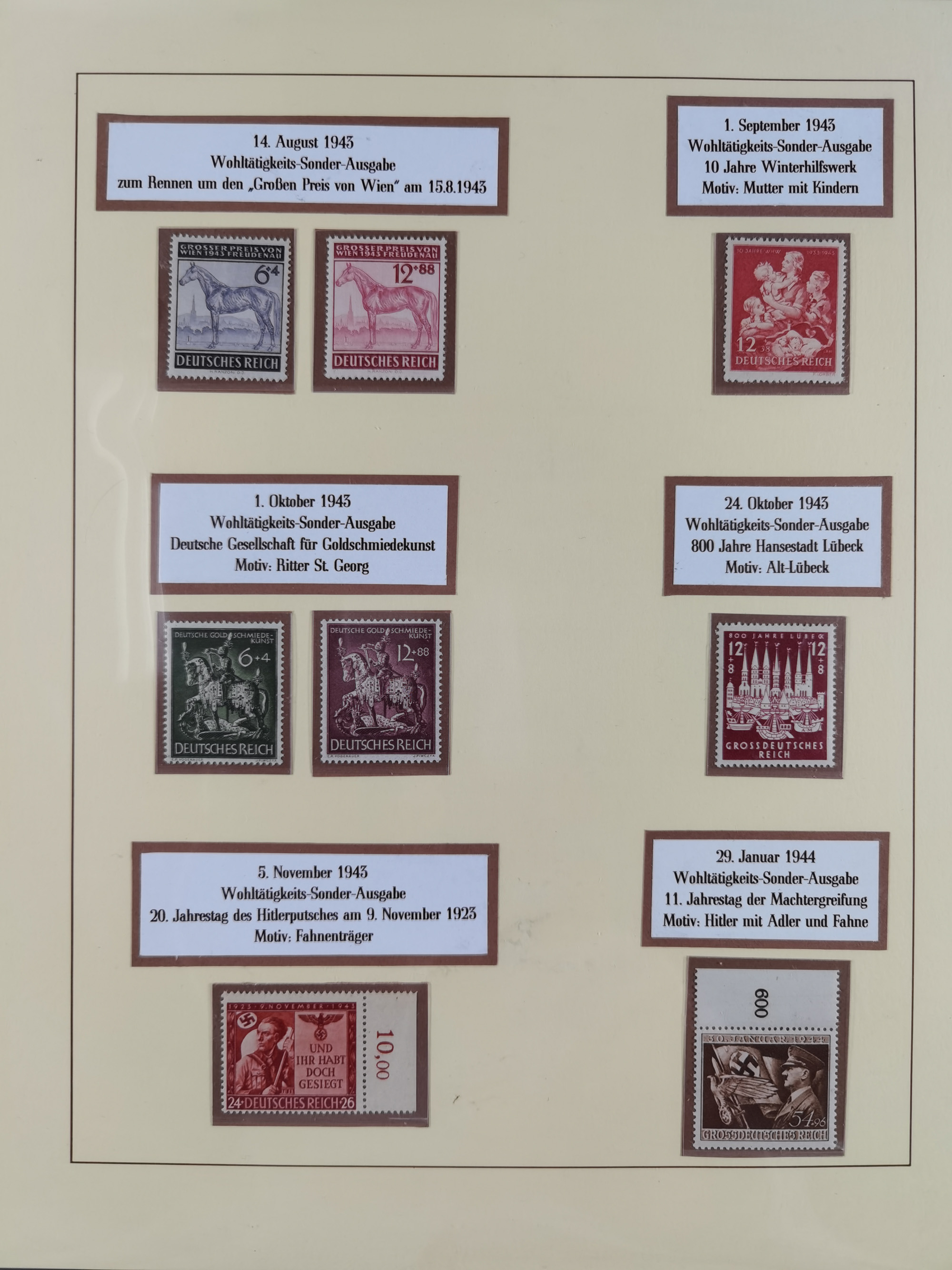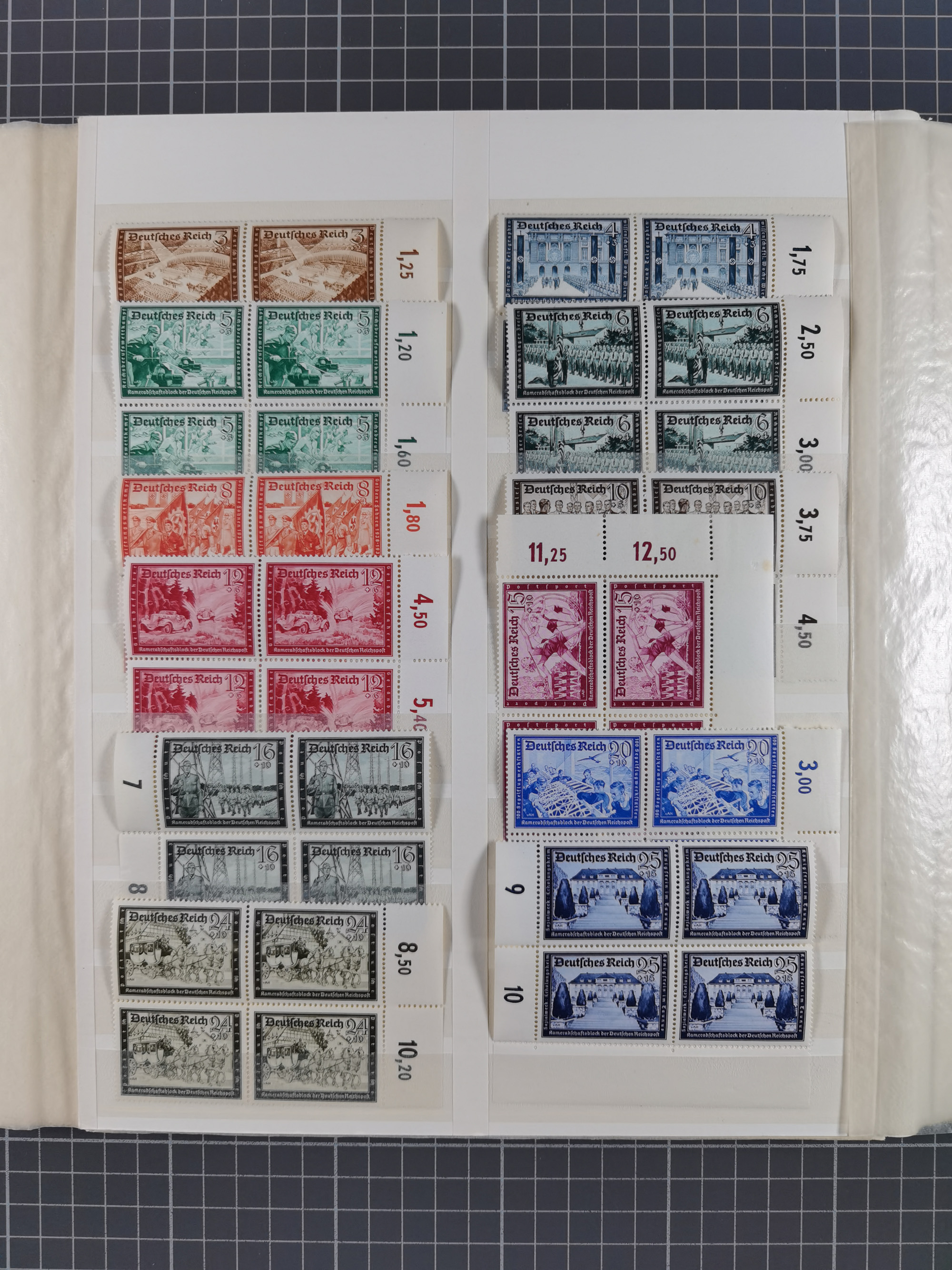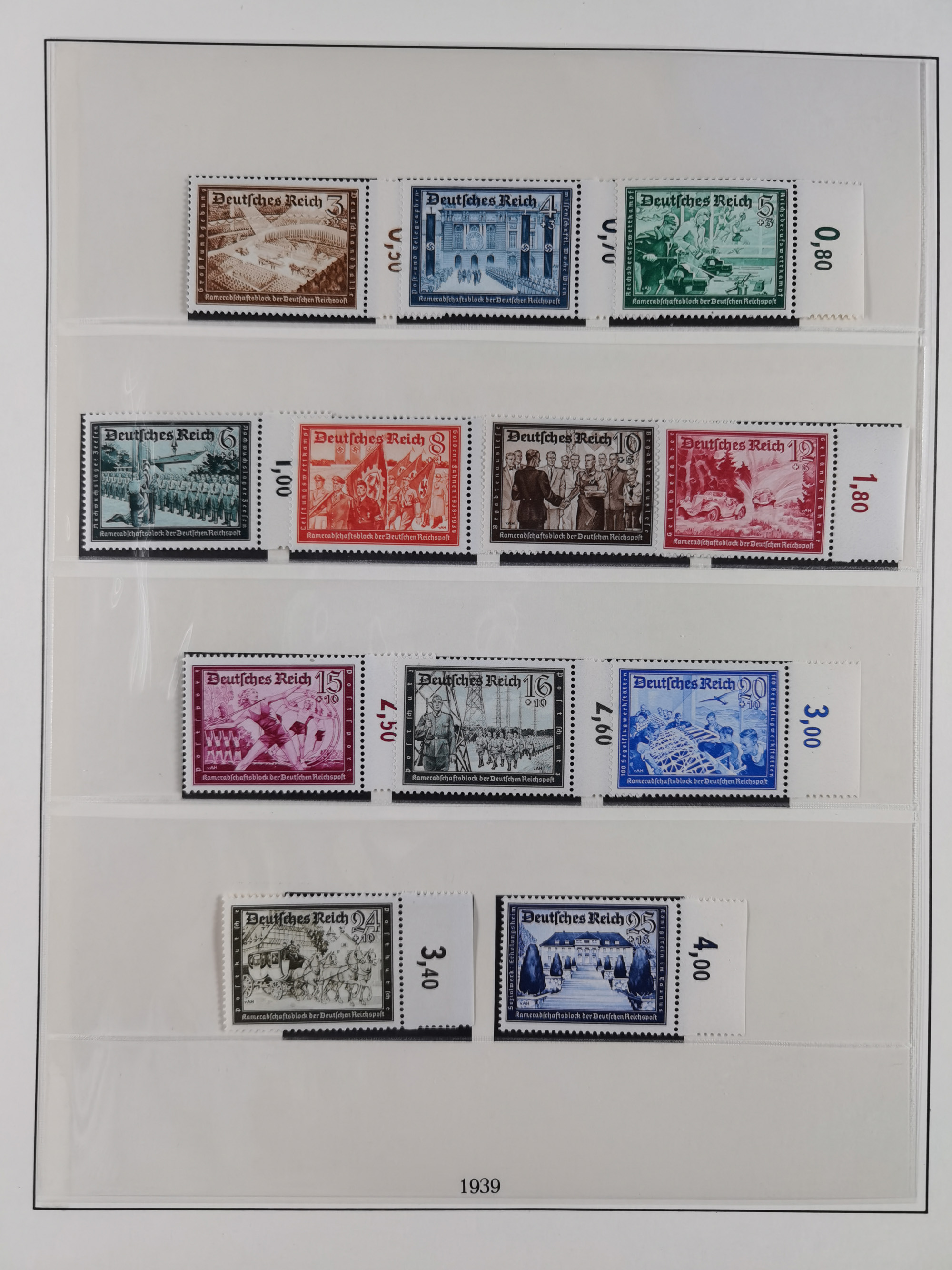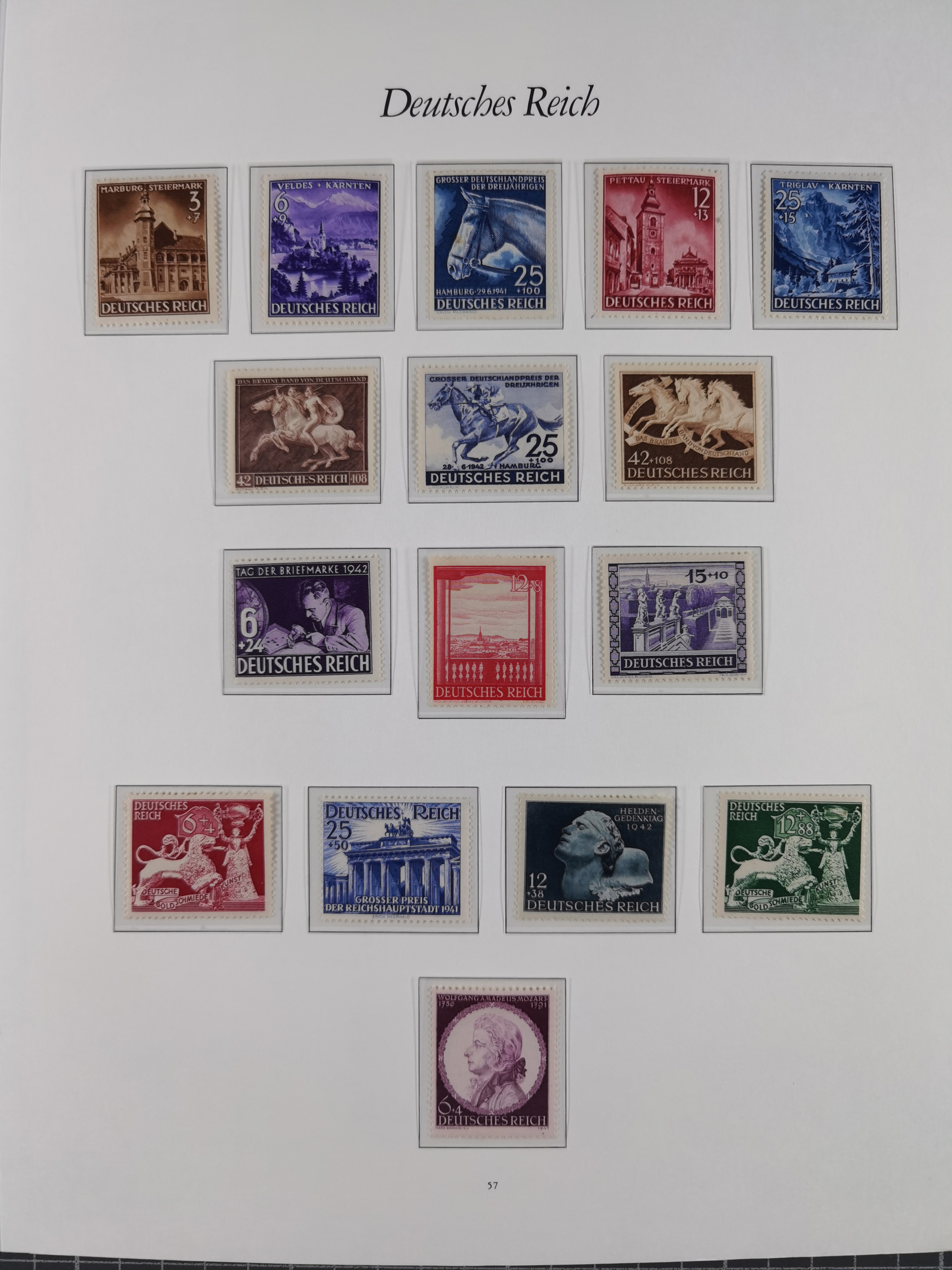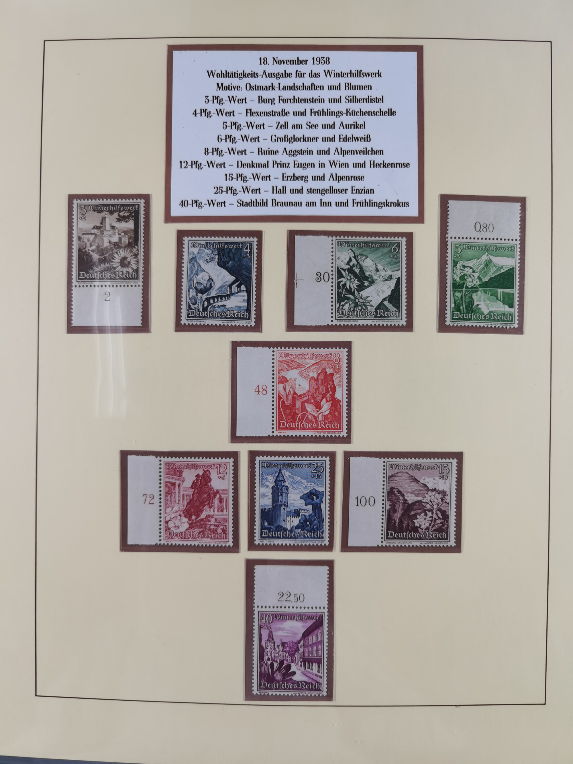 1933/45, umfangreiche meist postfrische und ungebrauchte Sammlung, inkl. Dienstmarken, Feldpost und General Gouvernement, mit einigen Einheiten, Zusammendruck, Dubletten und weiteren Besonderheiten, bessere Werte mit u.a. 482-495, 499-507, 529-539 postfrisch/ungebraucht, 505B postfrisch, Ostropa Bl. 3 (leicht fleckig), etc., teils signiert, meist in sehr schöner Gesamterhaltung, sauber im Falzlos-Album