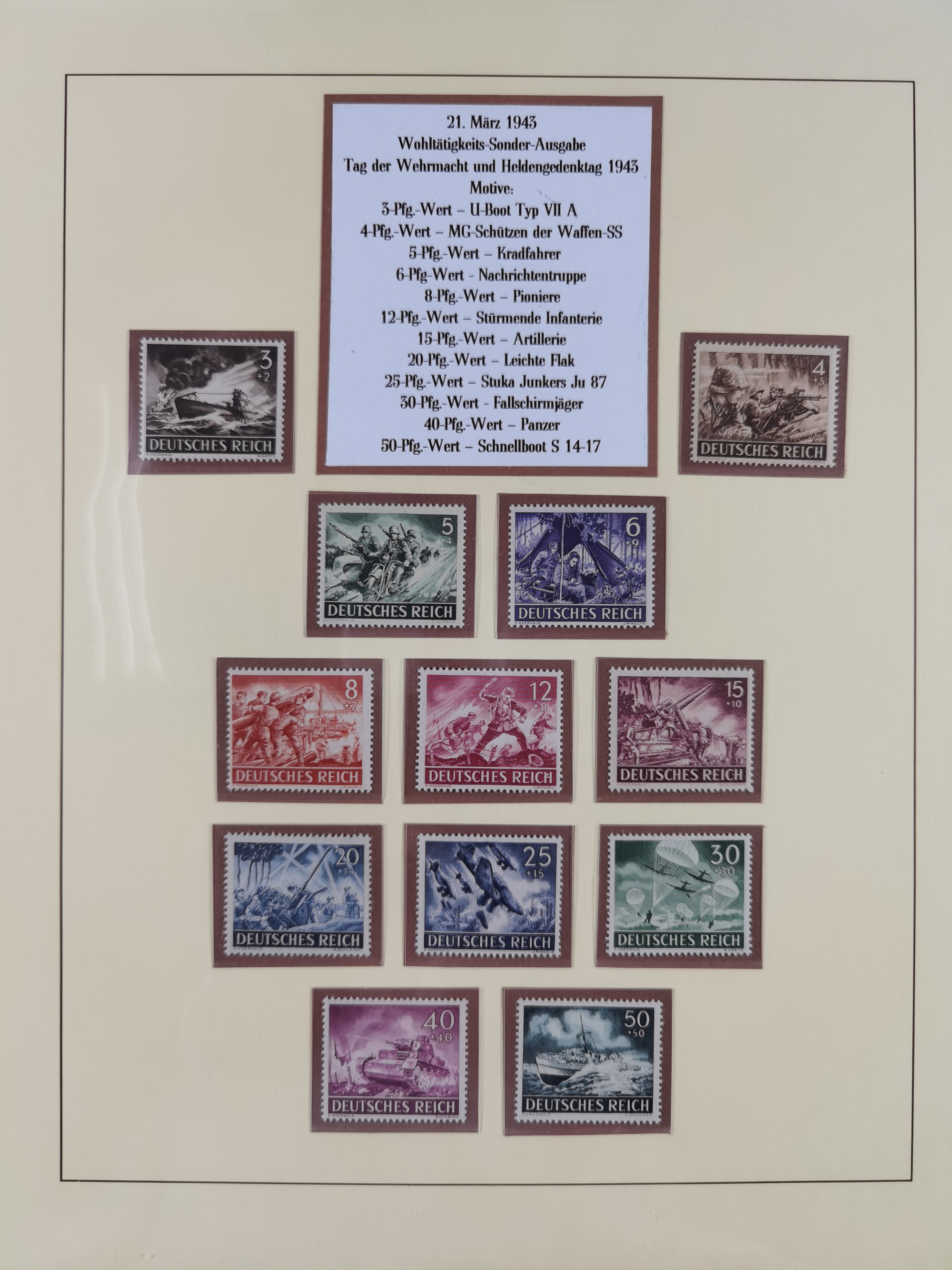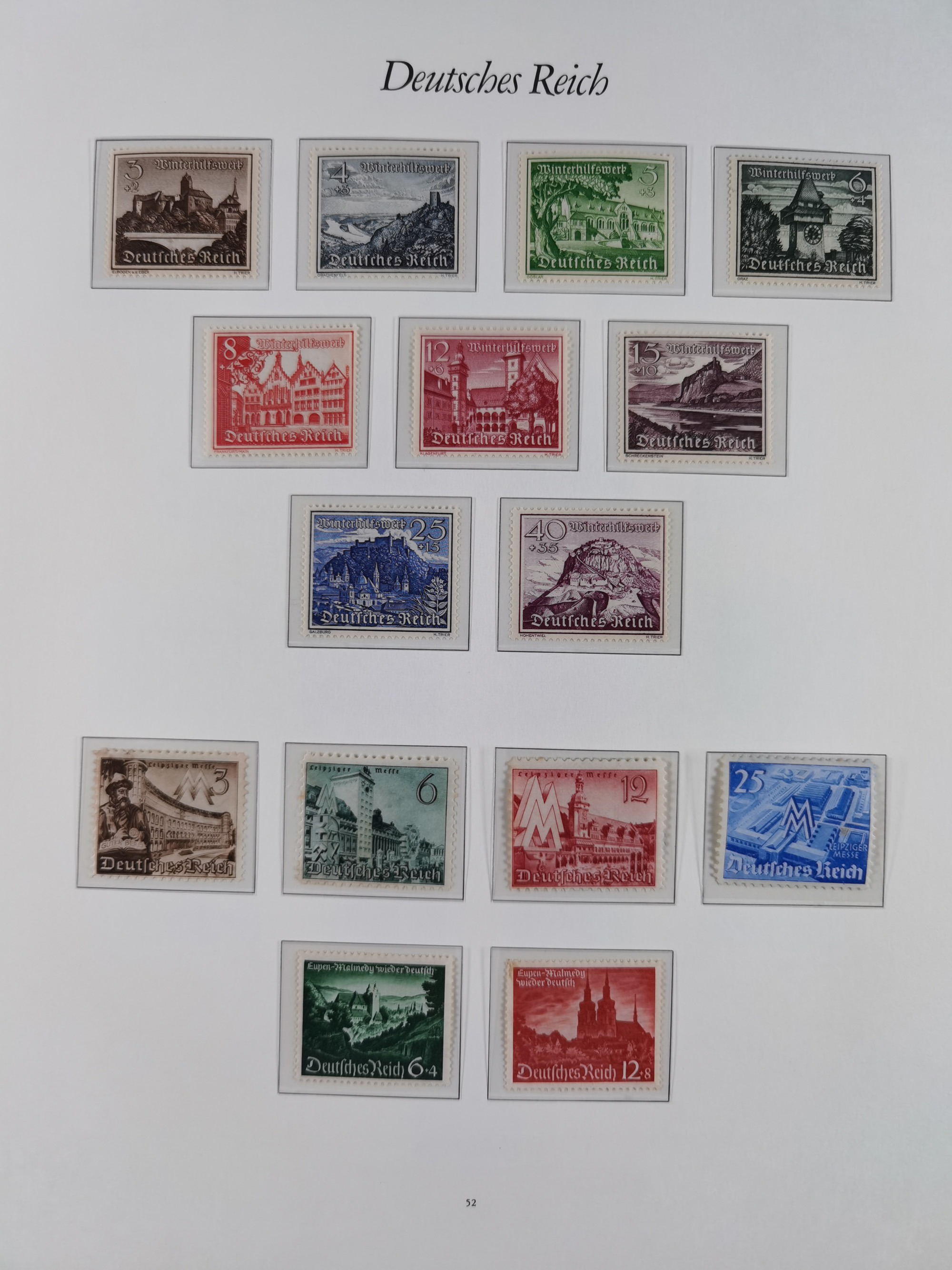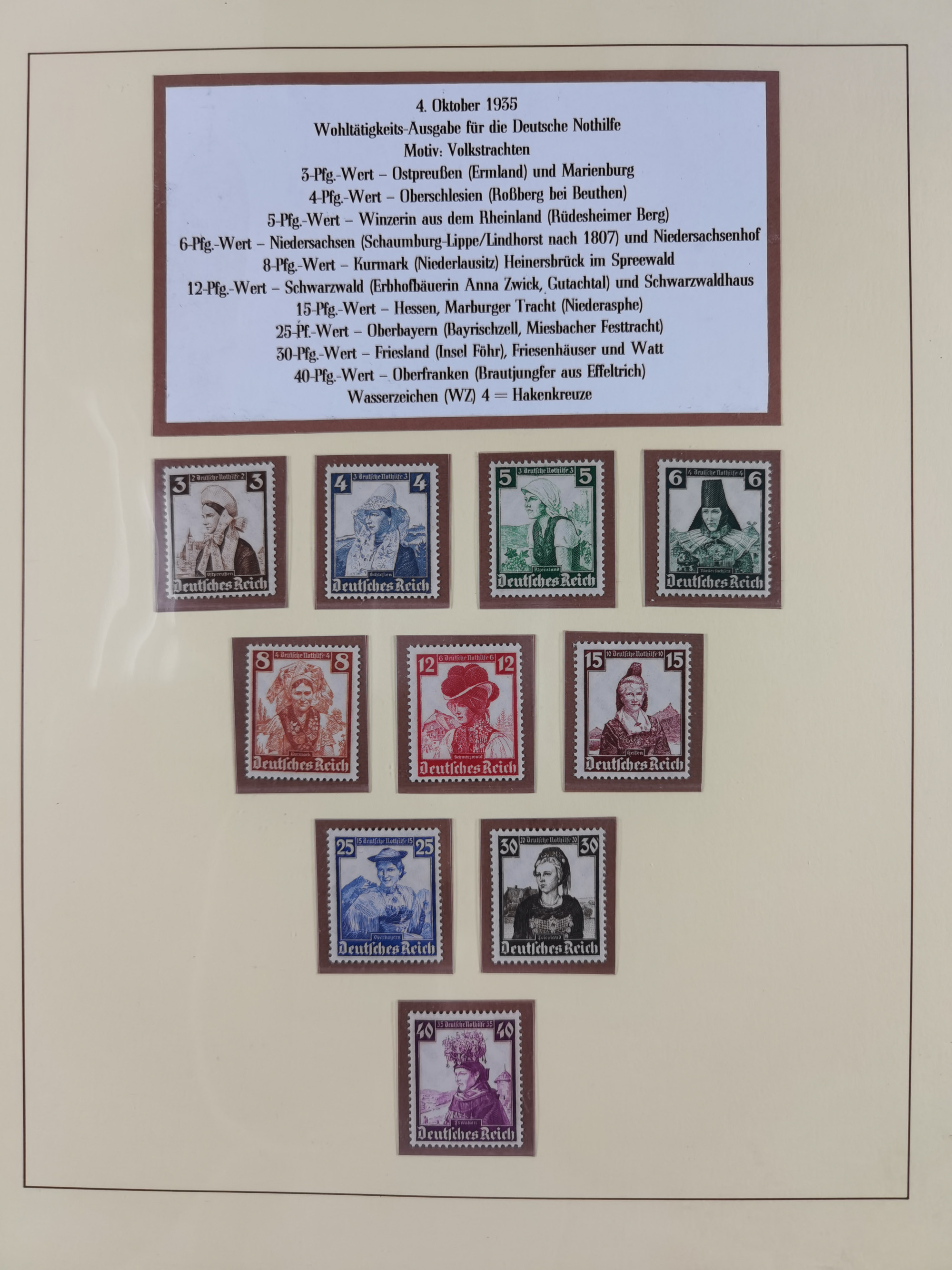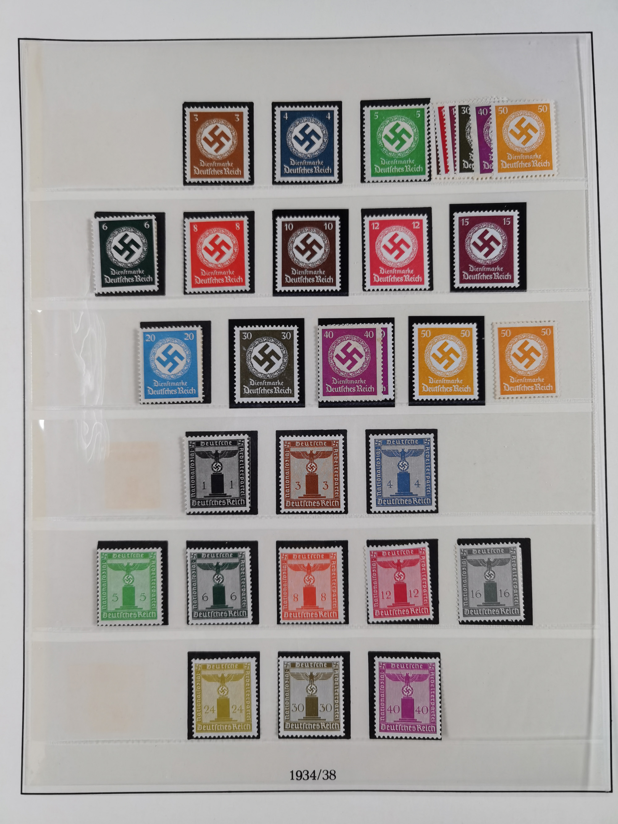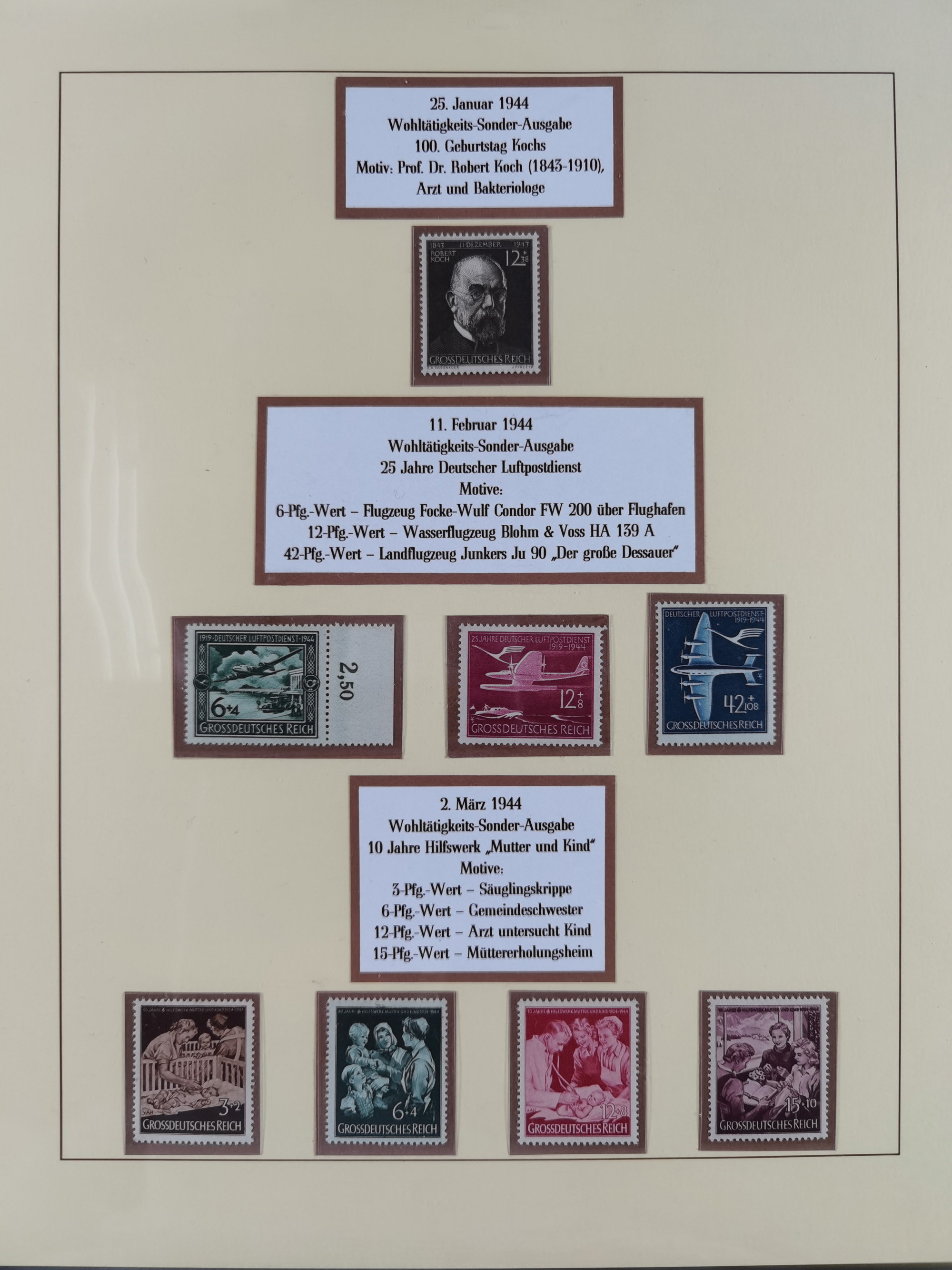 1933/45, umfangreiche meist postfrische und ungebrauchte Sammlung, inkl. Dienstmarken, Feldpost und General Gouvernement, mit einigen Einheiten, Zusammendruck, Dubletten und weiteren Besonderheiten, bessere Werte mit u.a. 482-495, 499-507, 529-539 postfrisch/ungebraucht, 505B postfrisch, Ostropa Bl. 3 (leicht fleckig), etc., teils signiert, meist in sehr schöner Gesamterhaltung, sauber im Falzlos-Album