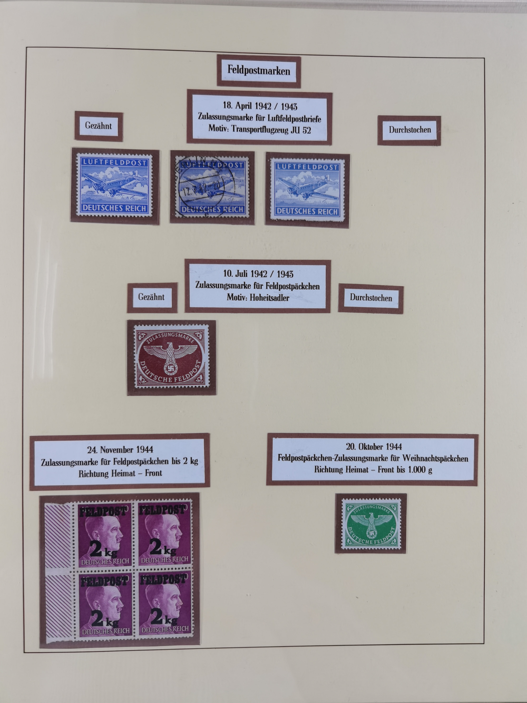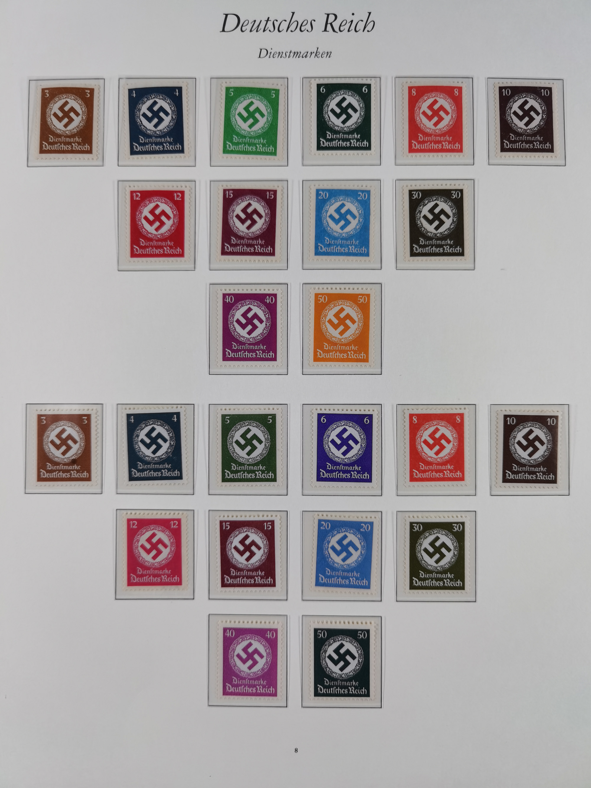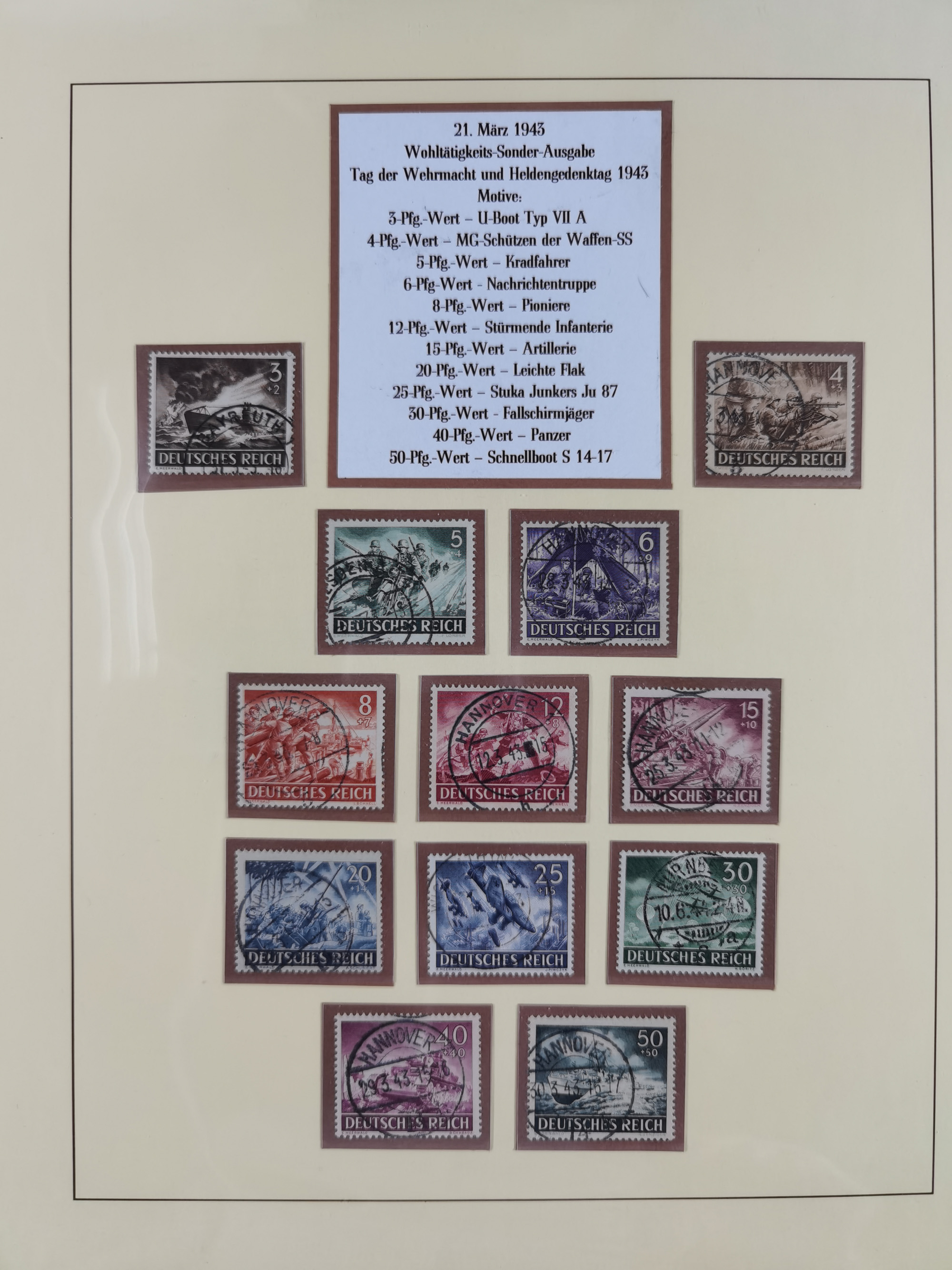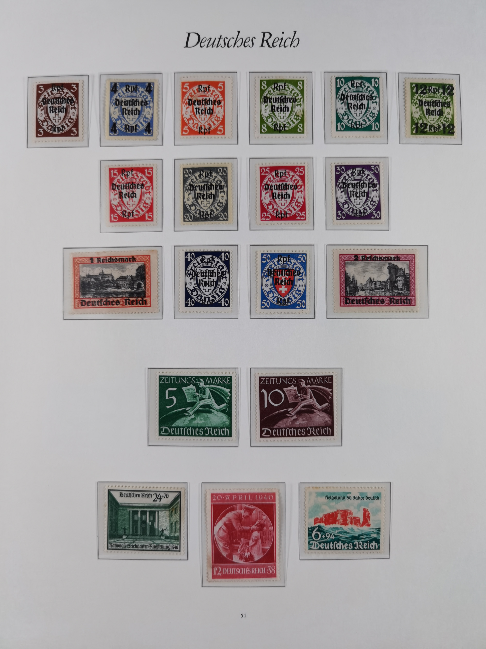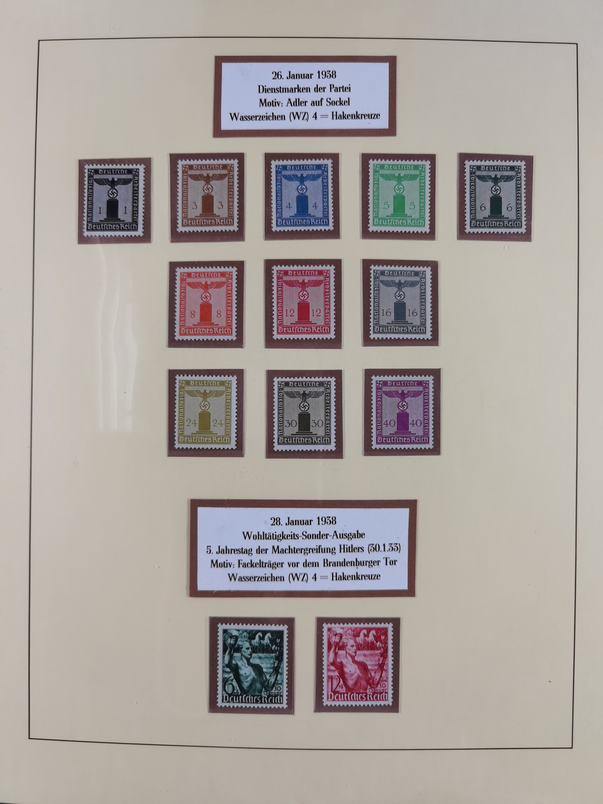 1933/45, umfangreiche meist postfrische und ungebrauchte Sammlung, inkl. Dienstmarken, Feldpost und General Gouvernement, mit einigen Einheiten, Zusammendruck, Dubletten und weiteren Besonderheiten, bessere Werte mit u.a. 482-495, 499-507, 529-539 postfrisch/ungebraucht, 505B postfrisch, Ostropa Bl. 3 (leicht fleckig), etc., teils signiert, meist in sehr schöner Gesamterhaltung, sauber im Falzlos-Album