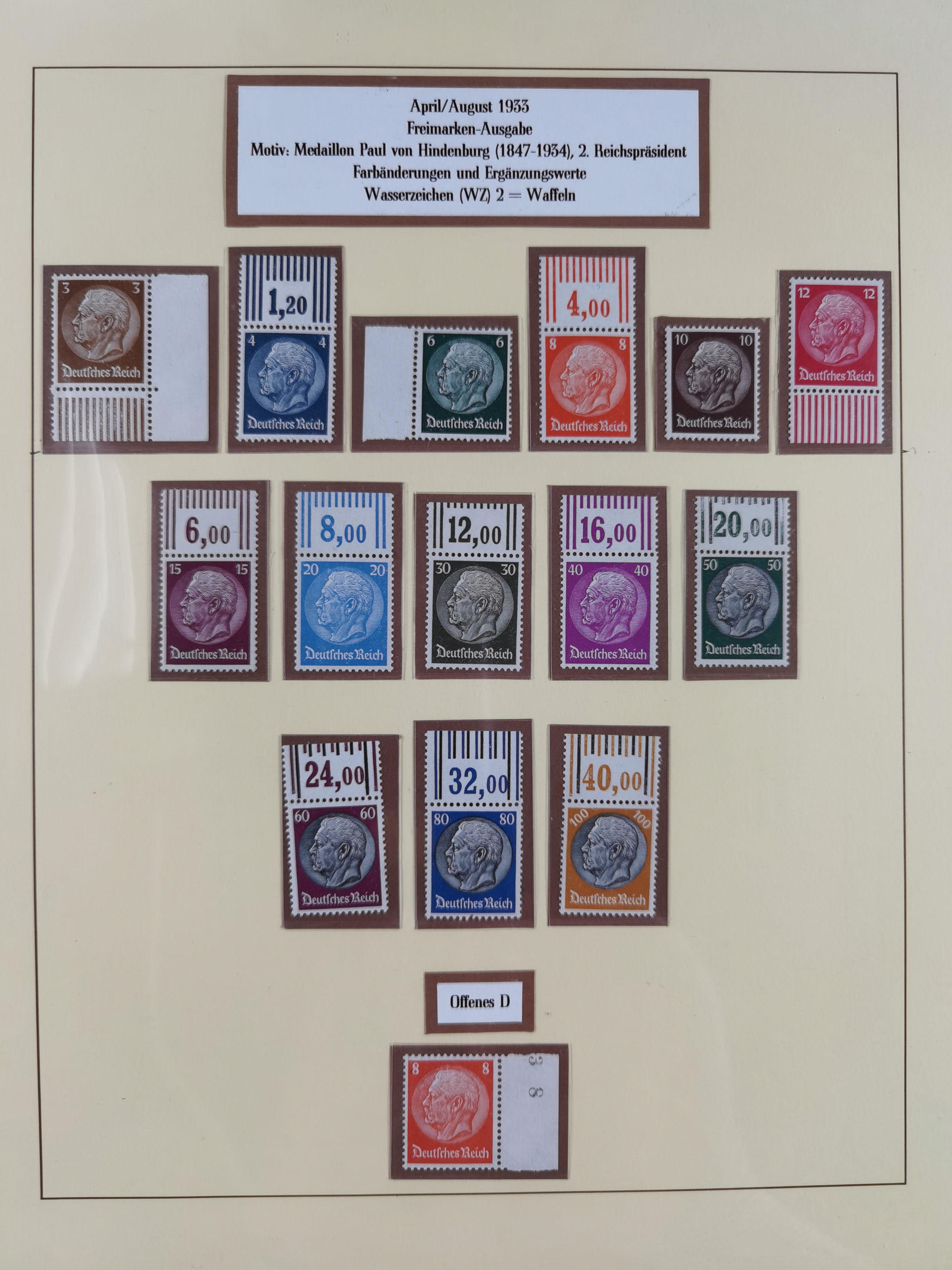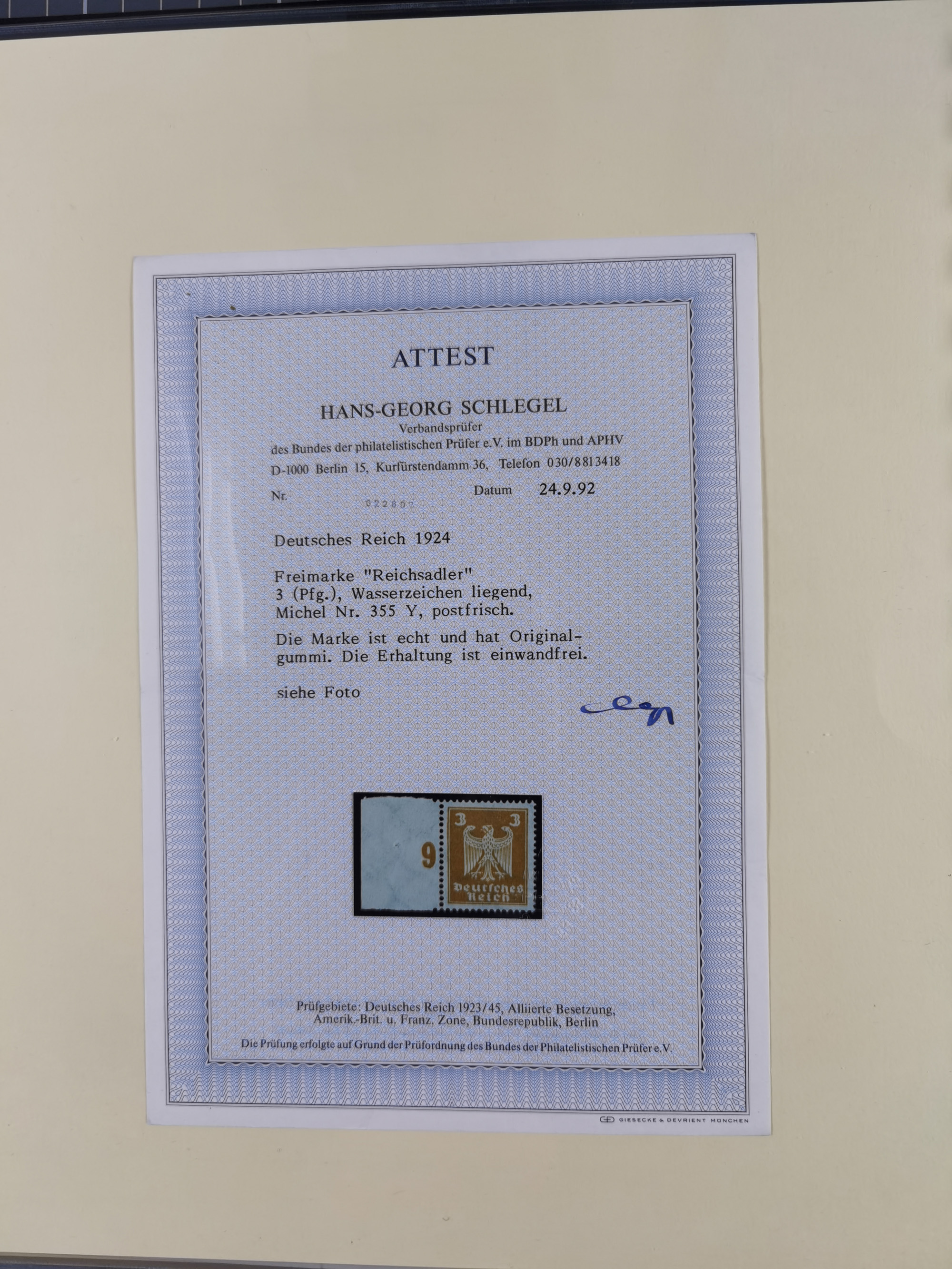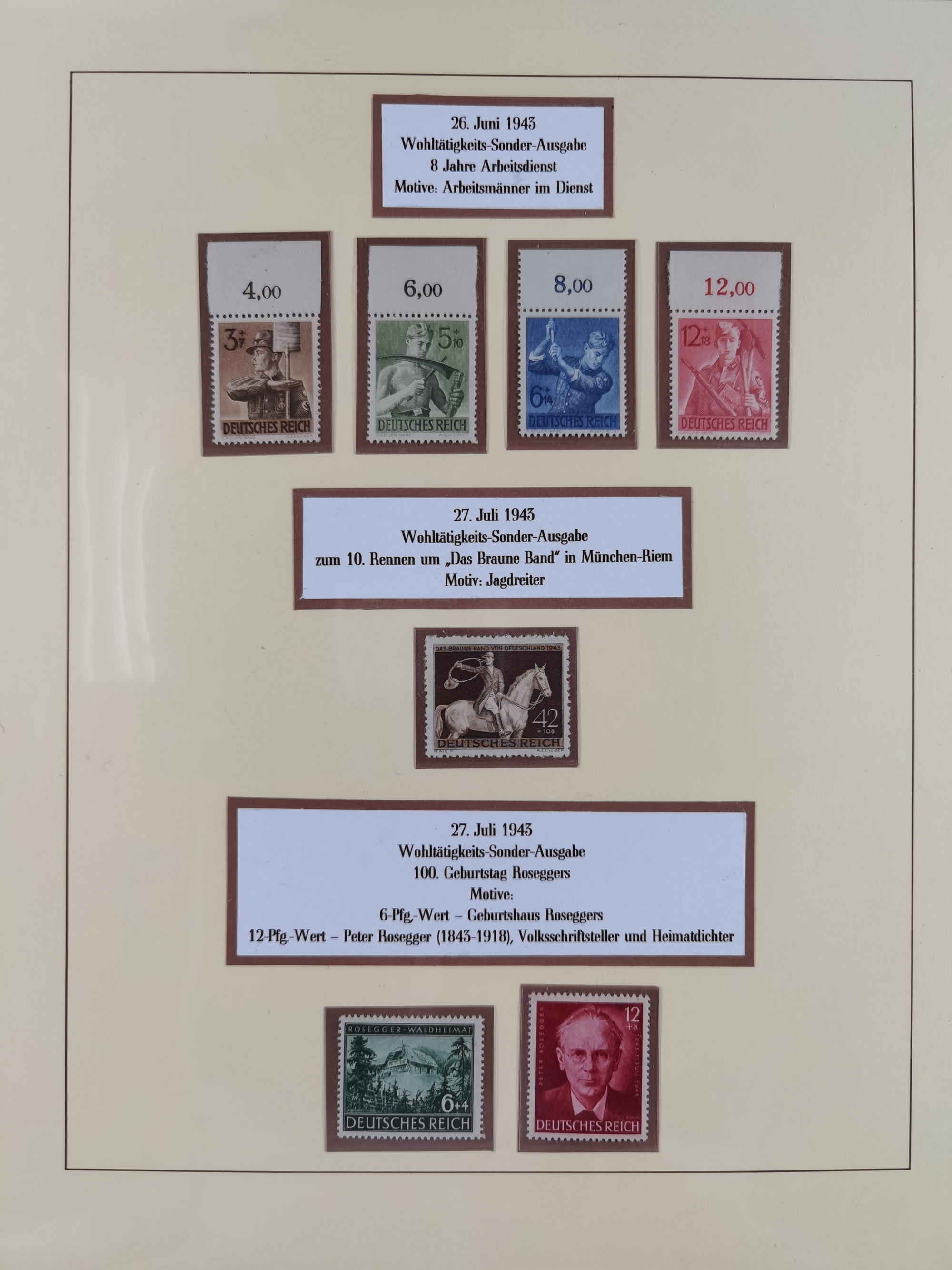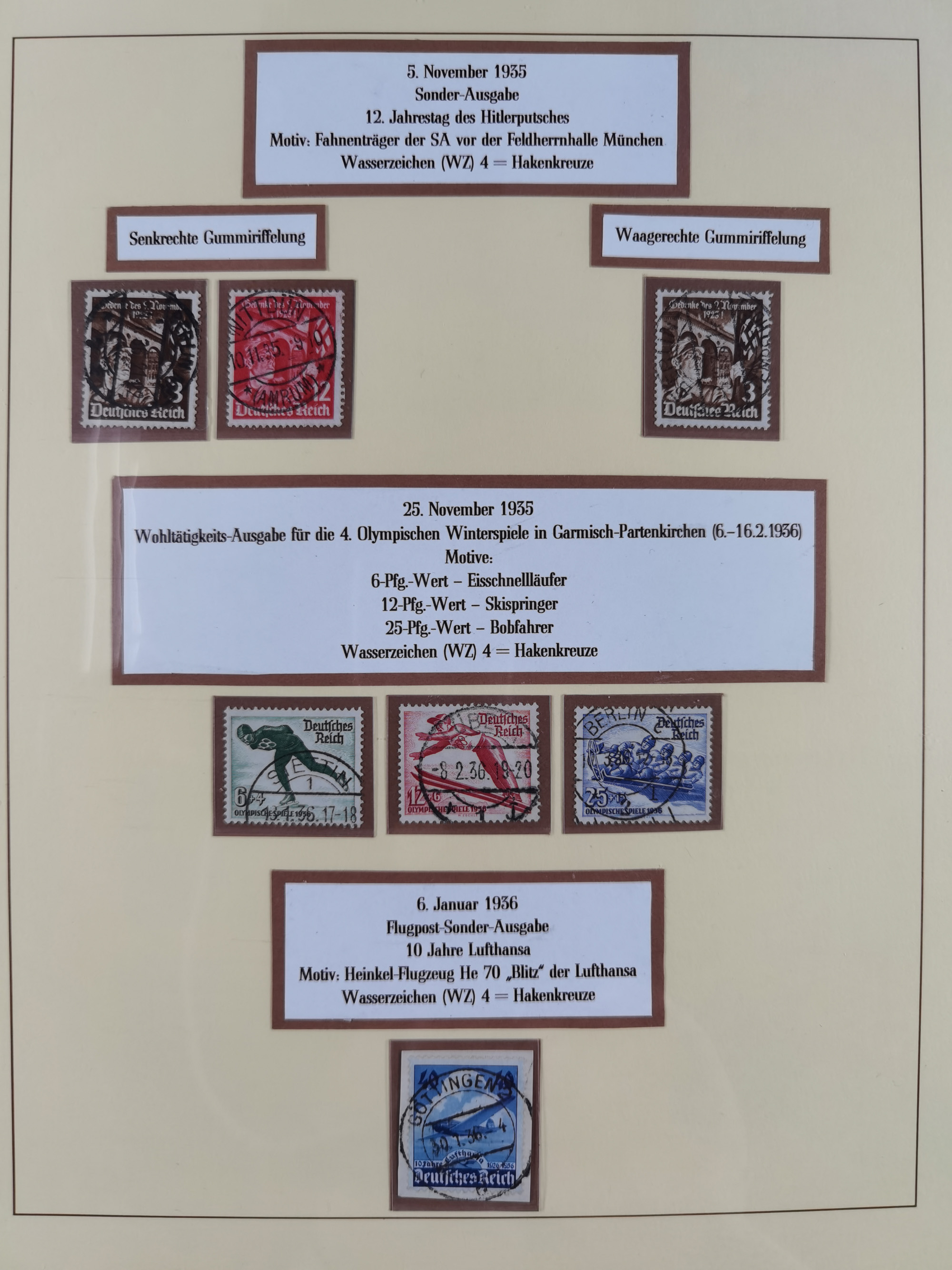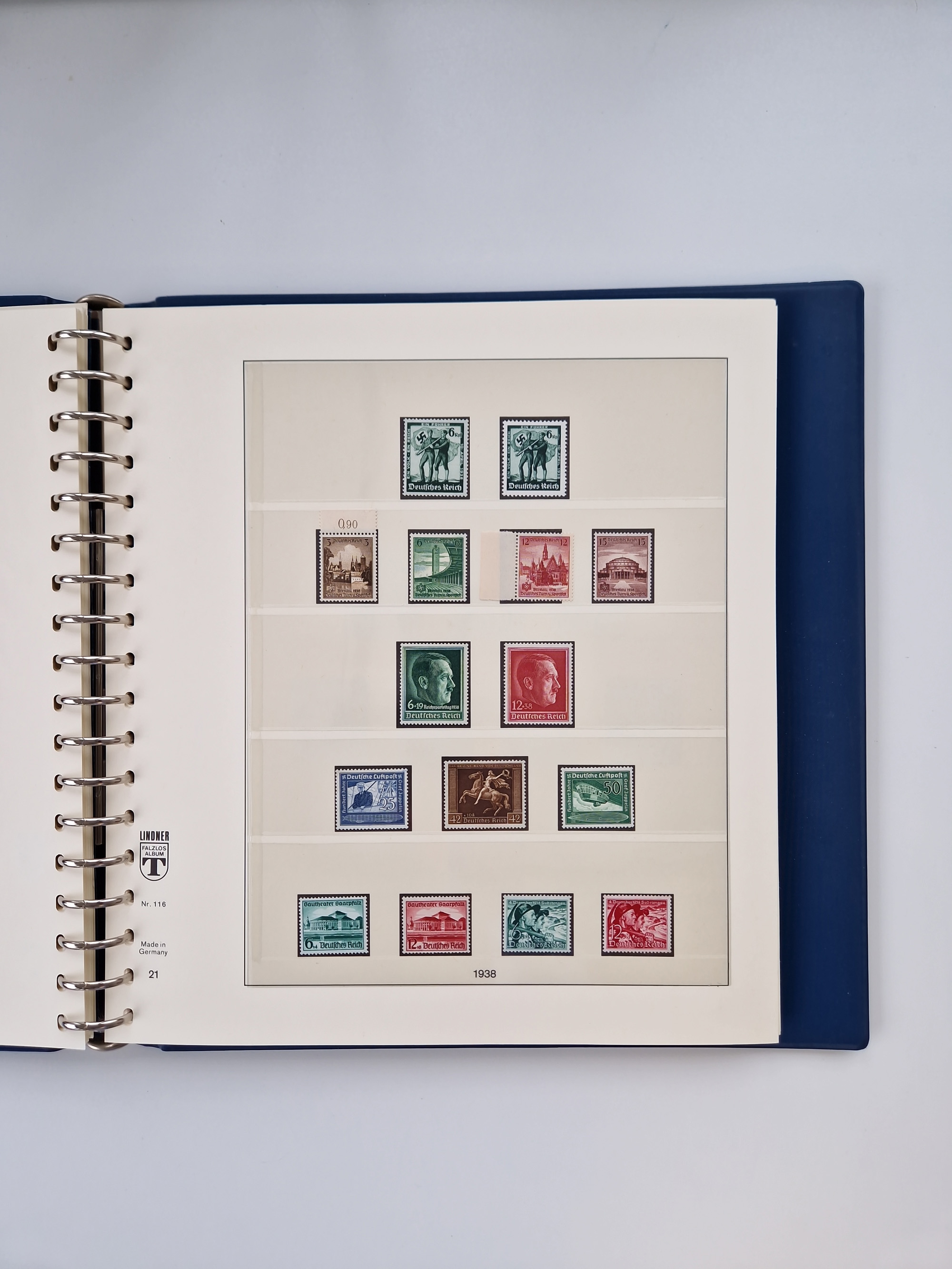 1933/45, meist postfrische Sammlung im Lindner-Falzlosalbum komplett mit vielen Besonderheiten. Mi. 482-495 postfrisch, Höchstwerte sign. A. Schlegel BPP, Mi. 496-98 ungebraucht, Mi. 507 postfrisch, Befund Schlegel BPP, Block 2 postfrisch (1 mm erhöht sign. Schlegel BPP), Mi. 529-539 x und Viererblock 539 y je postfrisch mit Attest Schlegel BPP, Bl. 3 Attest A. Schlegel BPP, Mi. 586 Y ungebraucht, Attest Oechsner BPP, Mi. 587 U ungebraucht, Attest H.-D. Schlegel BPP, Block 6z postfrisch, sign. Schlegel BPP, Mi. 641 x postfrisch, sign. D. Schlegel BPP, Mi. 659 x postfrisch, Befund Oechsner BPP, Mi. 671 x und 672 y sign., Mi. 814 Phasenabzug und Abzug vom Urstempel je postfrisch, viele Plattenfehler wie 909 I und 910 I und II je sign. A. Schlegel BPP.