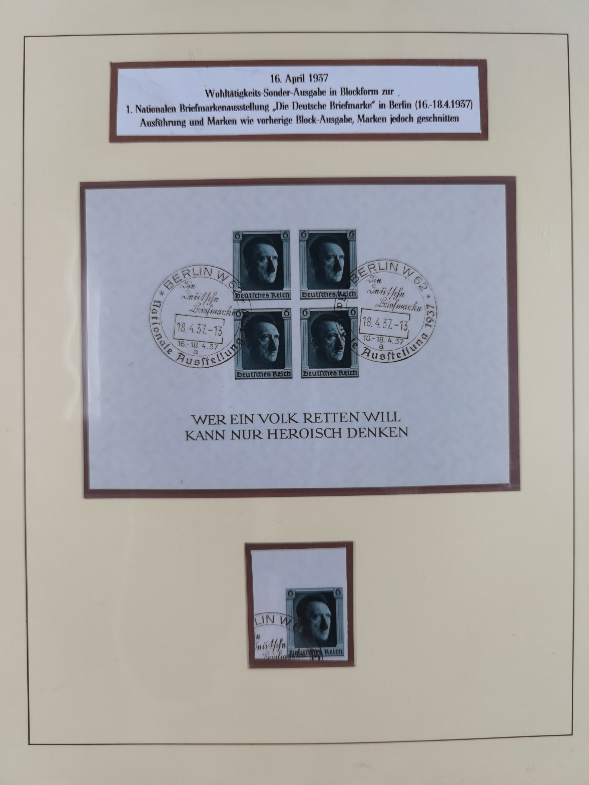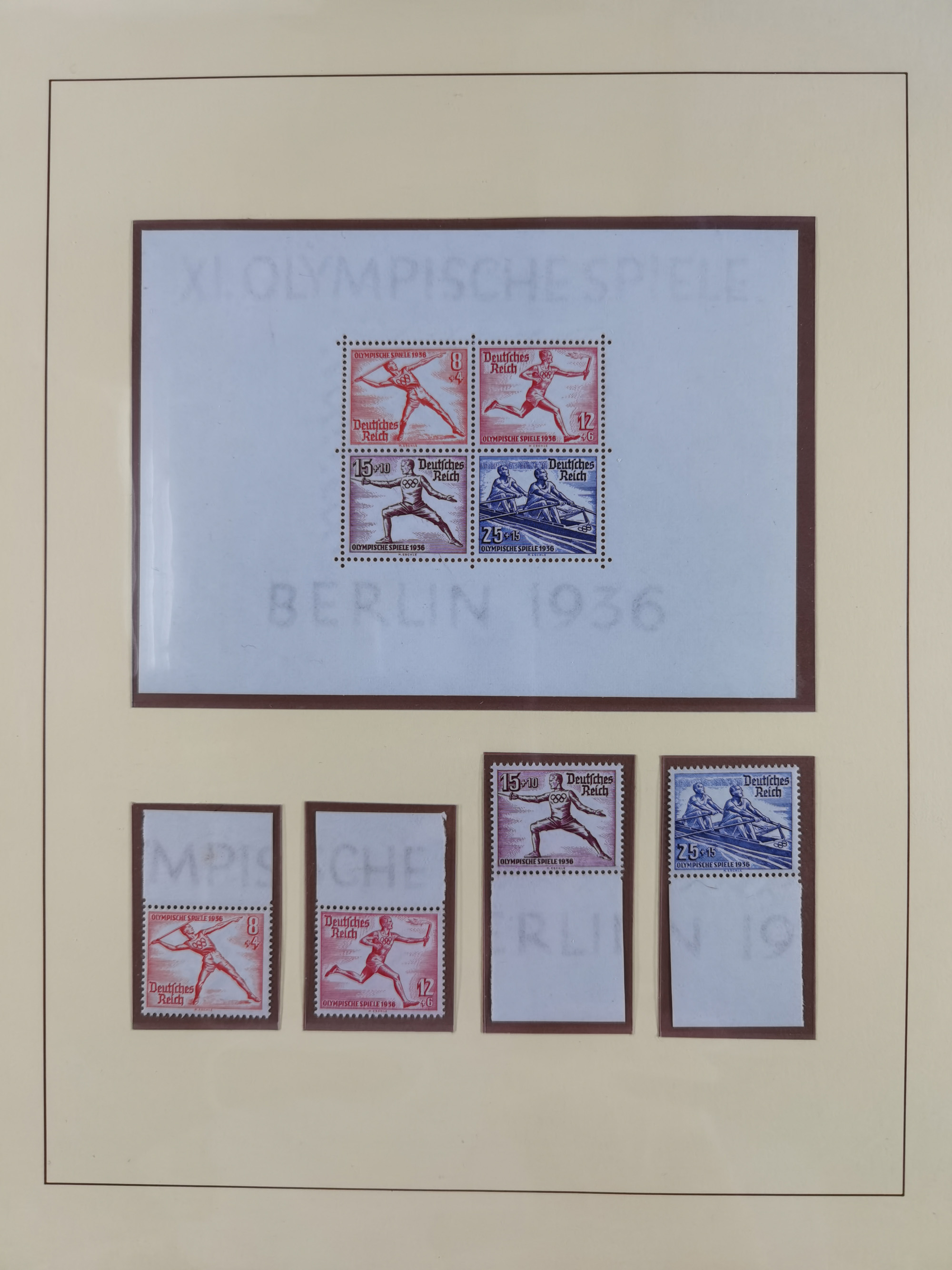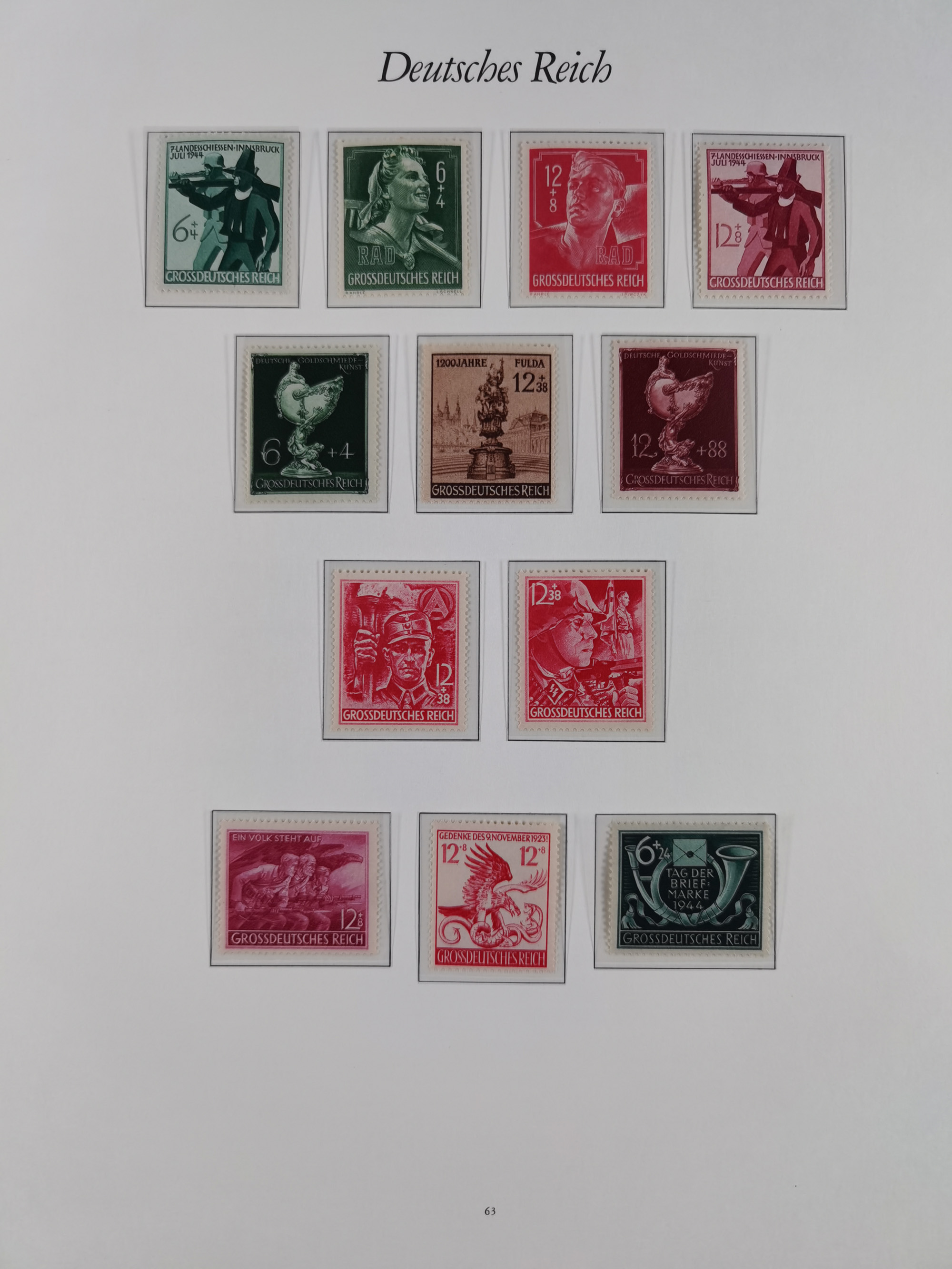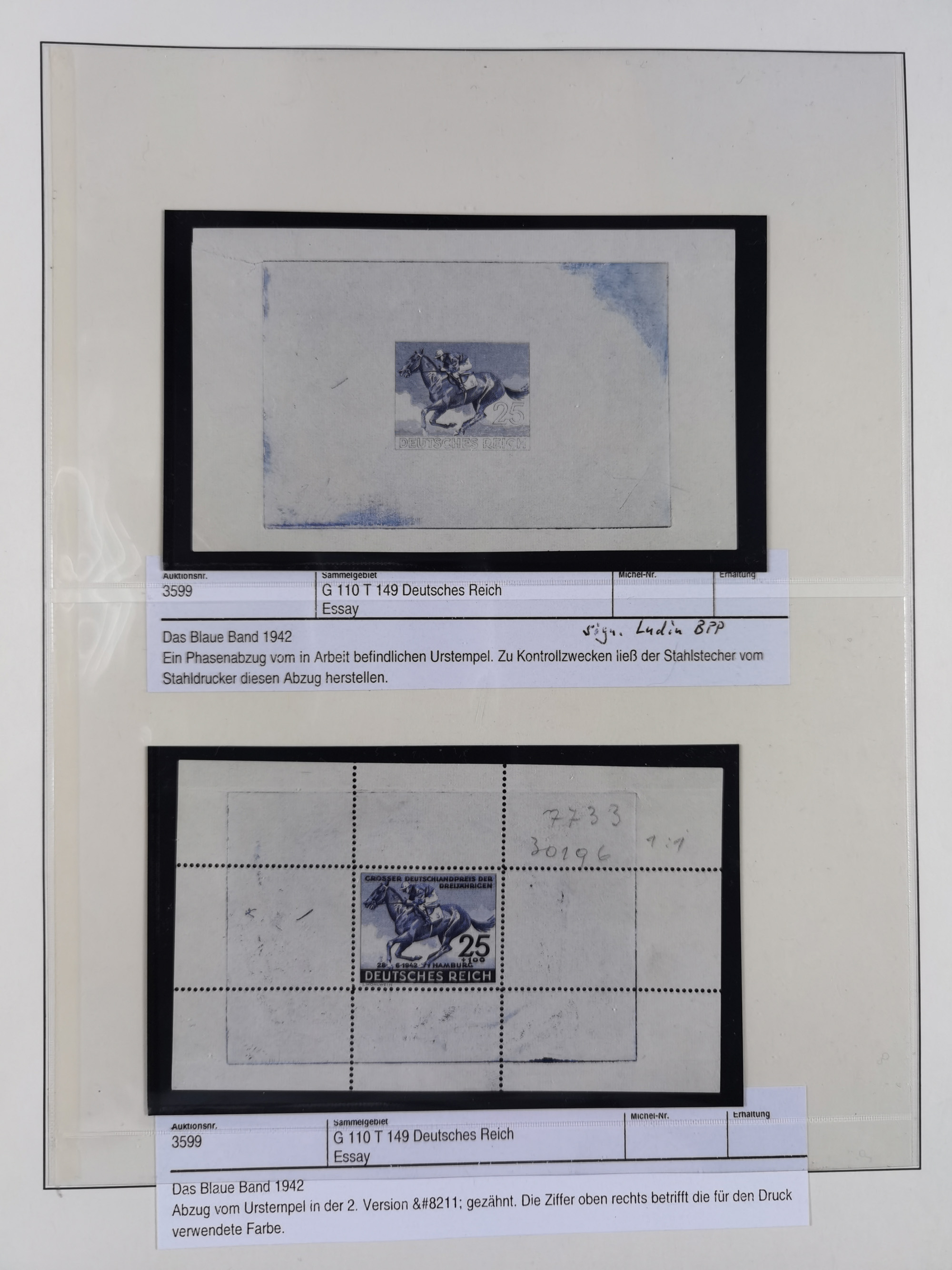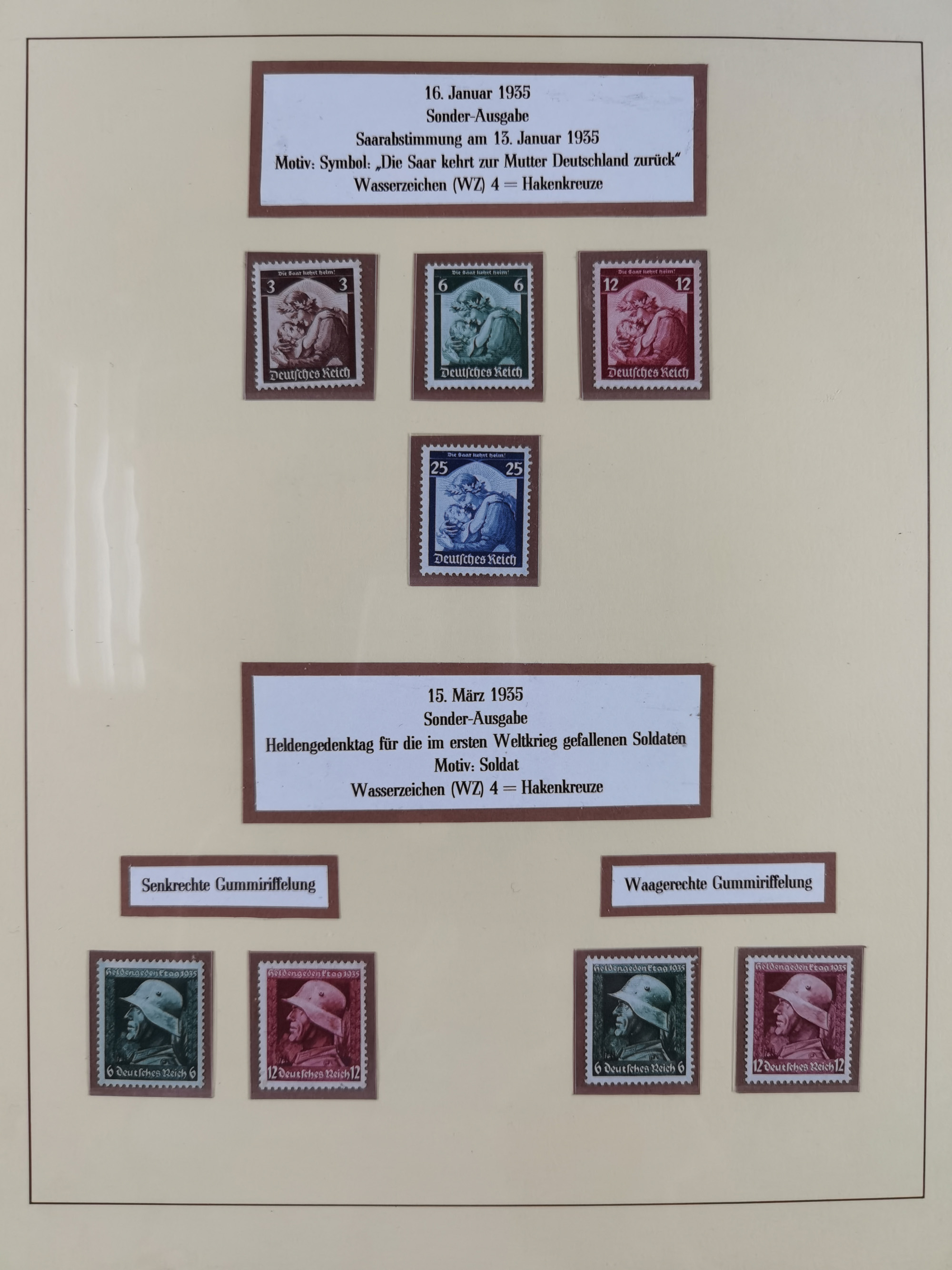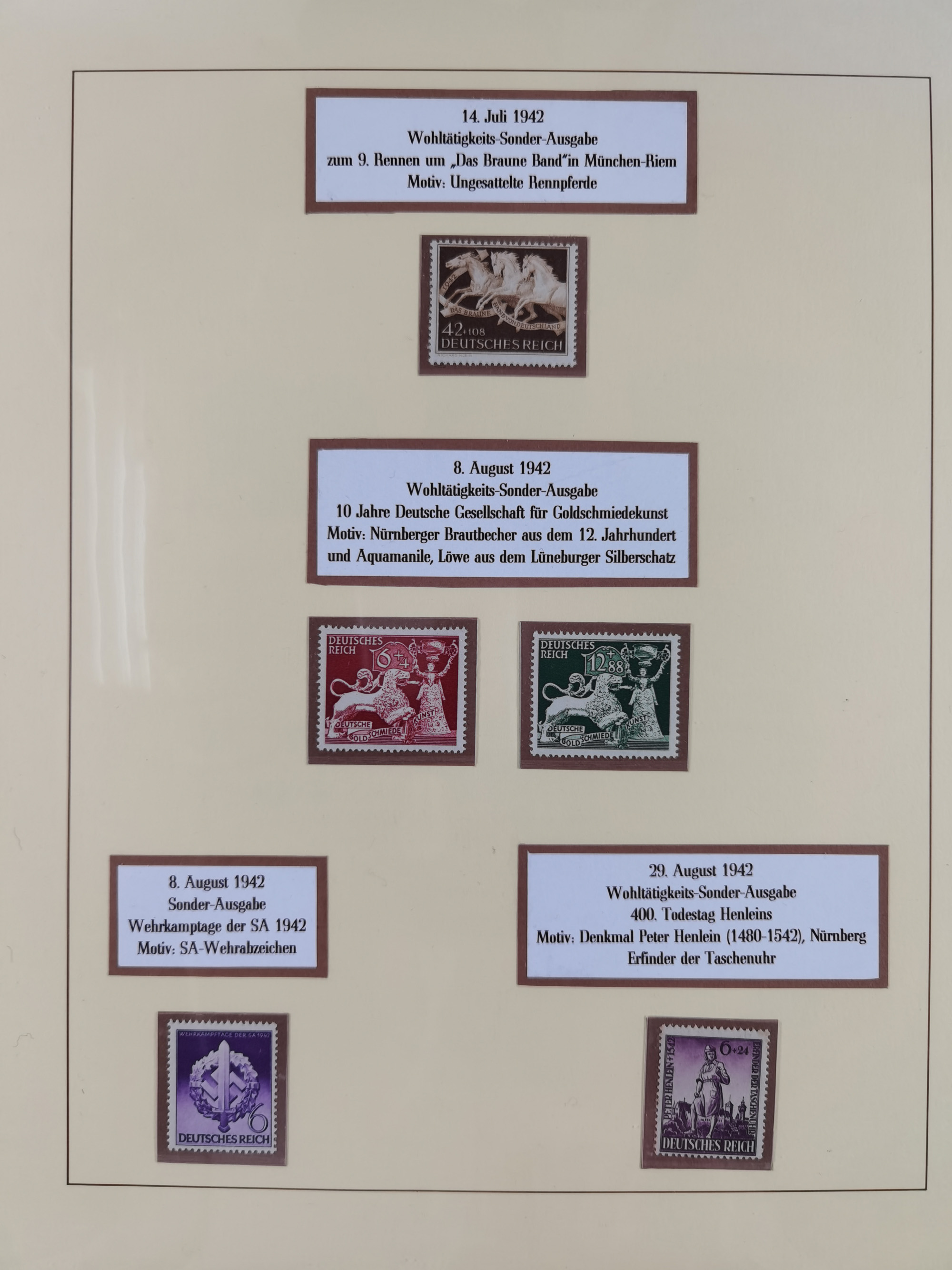 1933/45, meist postfrische Sammlung im Lindner-Falzlosalbum komplett mit vielen Besonderheiten. Mi. 482-495 postfrisch, Höchstwerte sign. A. Schlegel BPP, Mi. 496-98 ungebraucht, Mi. 507 postfrisch, Befund Schlegel BPP, Block 2 postfrisch (1 mm erhöht sign. Schlegel BPP), Mi. 529-539 x und Viererblock 539 y je postfrisch mit Attest Schlegel BPP, Bl. 3 Attest A. Schlegel BPP, Mi. 586 Y ungebraucht, Attest Oechsner BPP, Mi. 587 U ungebraucht, Attest H.-D. Schlegel BPP, Block 6z postfrisch, sign. Schlegel BPP, Mi. 641 x postfrisch, sign. D. Schlegel BPP, Mi. 659 x postfrisch, Befund Oechsner BPP, Mi. 671 x und 672 y sign., Mi. 814 Phasenabzug und Abzug vom Urstempel je postfrisch, viele Plattenfehler wie 909 I und 910 I und II je sign. A. Schlegel BPP.