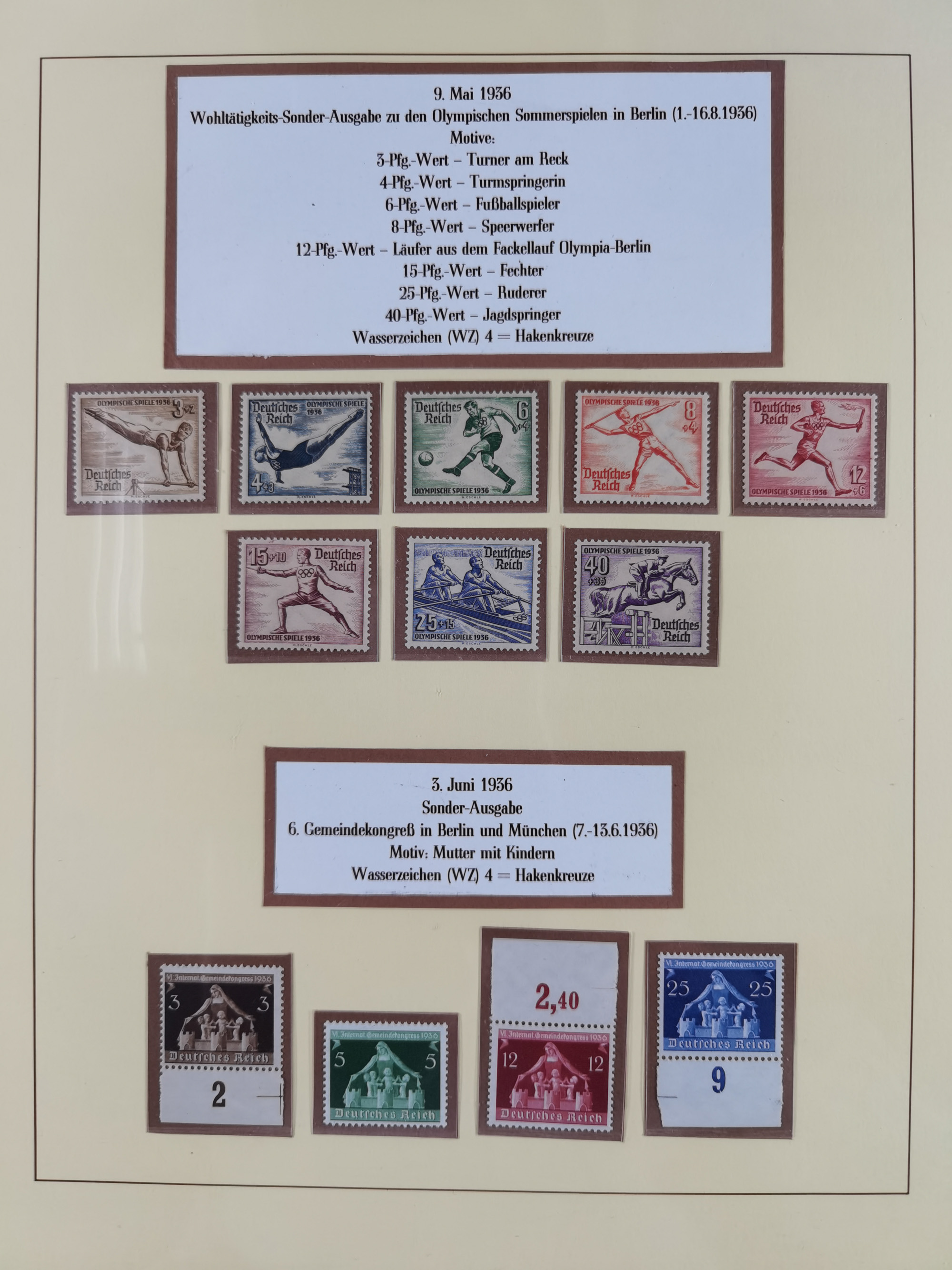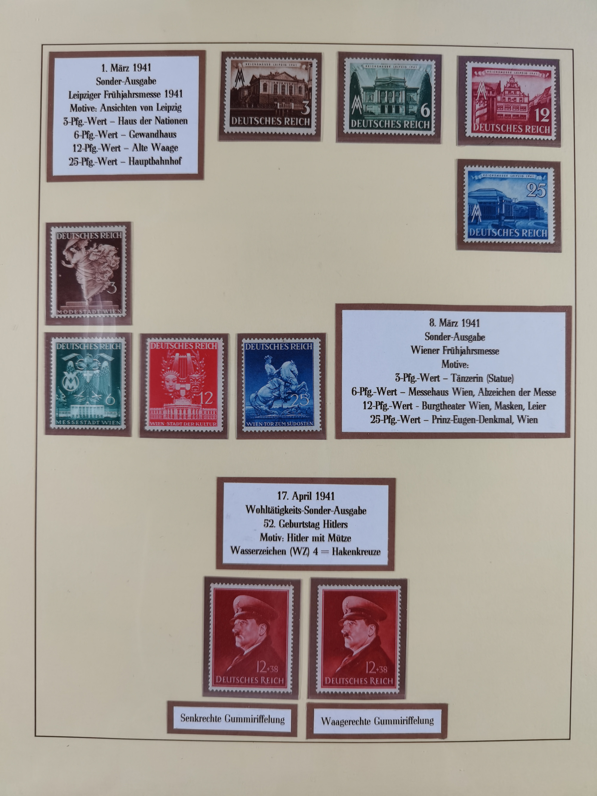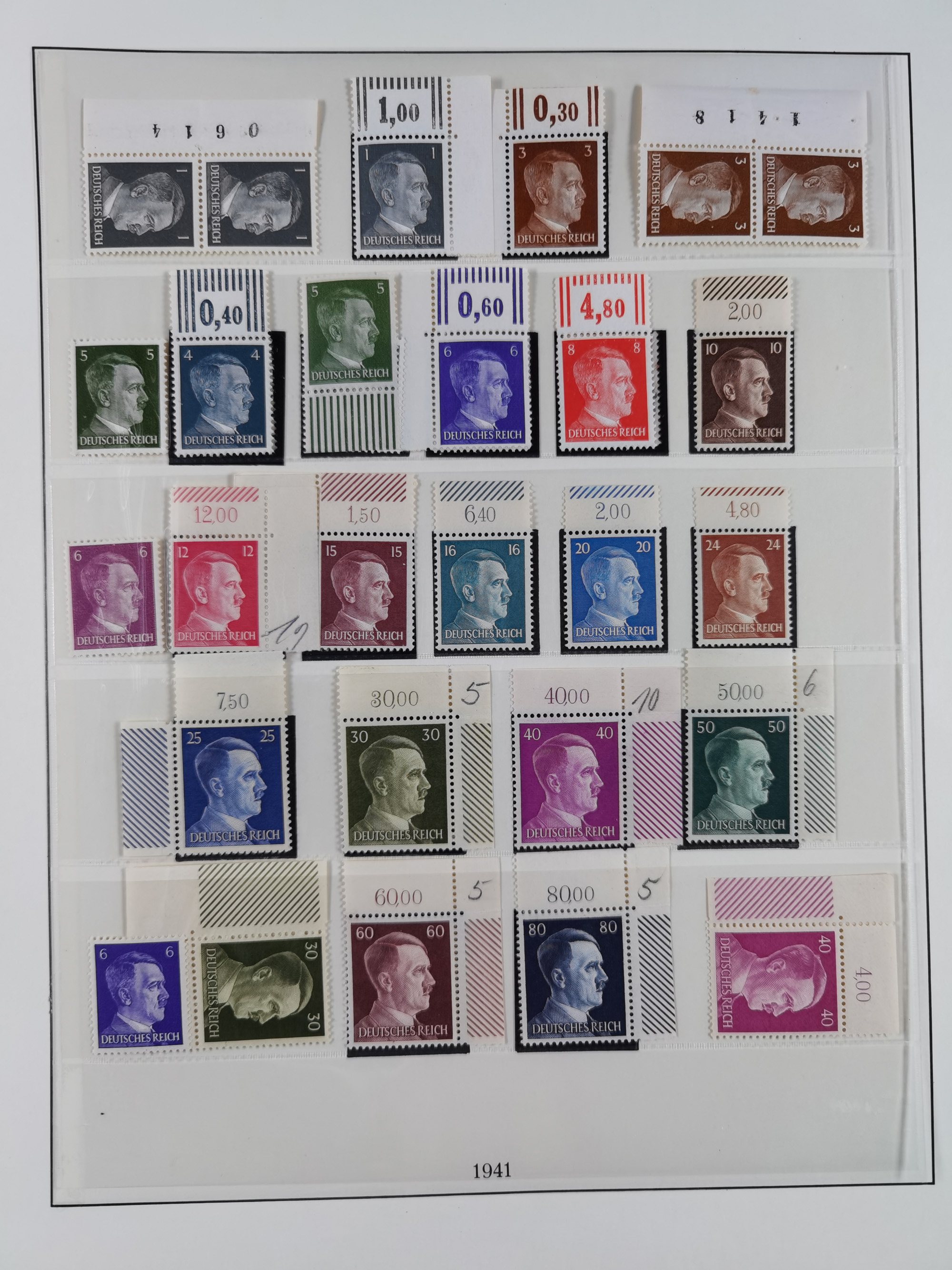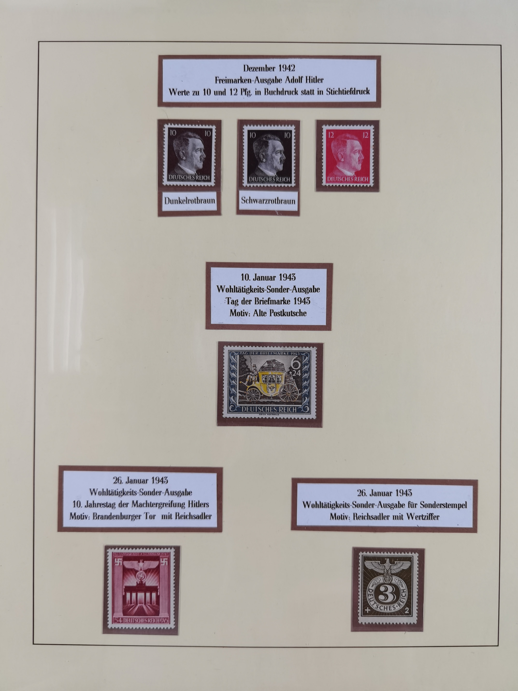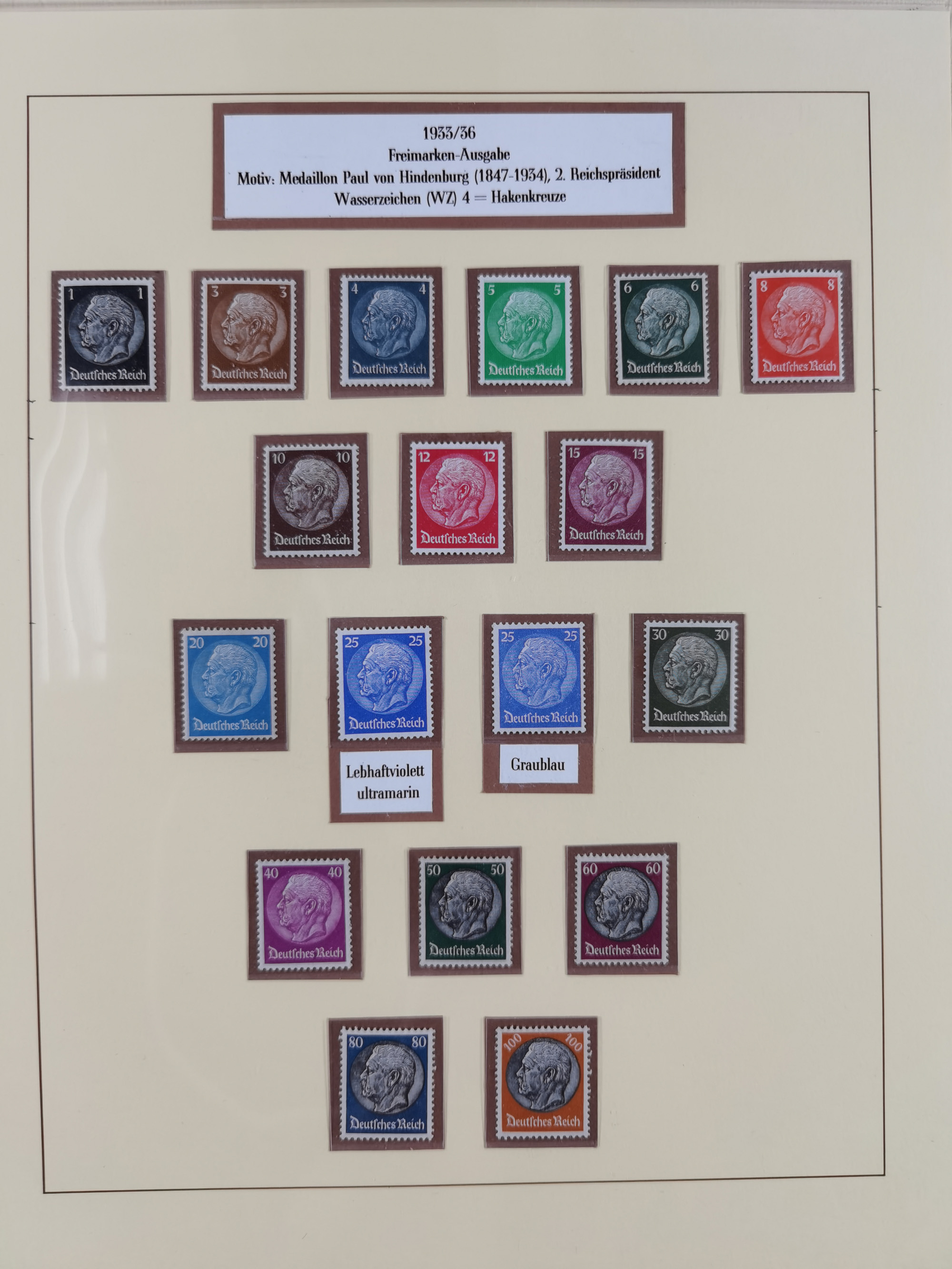 1933/45, meist postfrische Sammlung im Lindner-Falzlosalbum komplett mit vielen Besonderheiten. Mi. 482-495 postfrisch, Höchstwerte sign. A. Schlegel BPP, Mi. 496-98 ungebraucht, Mi. 507 postfrisch, Befund Schlegel BPP, Block 2 postfrisch (1 mm erhöht sign. Schlegel BPP), Mi. 529-539 x und Viererblock 539 y je postfrisch mit Attest Schlegel BPP, Bl. 3 Attest A. Schlegel BPP, Mi. 586 Y ungebraucht, Attest Oechsner BPP, Mi. 587 U ungebraucht, Attest H.-D. Schlegel BPP, Block 6z postfrisch, sign. Schlegel BPP, Mi. 641 x postfrisch, sign. D. Schlegel BPP, Mi. 659 x postfrisch, Befund Oechsner BPP, Mi. 671 x und 672 y sign., Mi. 814 Phasenabzug und Abzug vom Urstempel je postfrisch, viele Plattenfehler wie 909 I und 910 I und II je sign. A. Schlegel BPP.