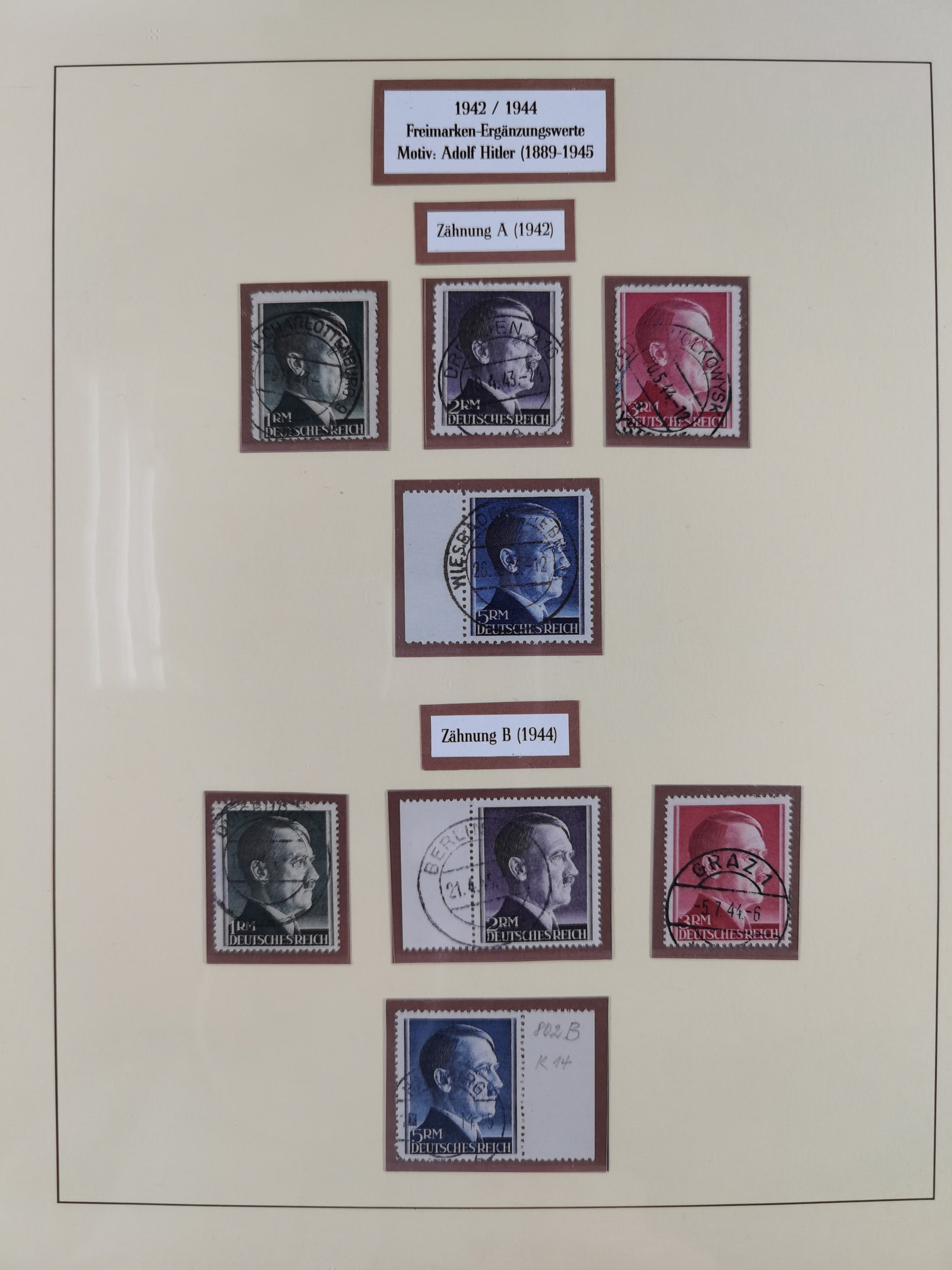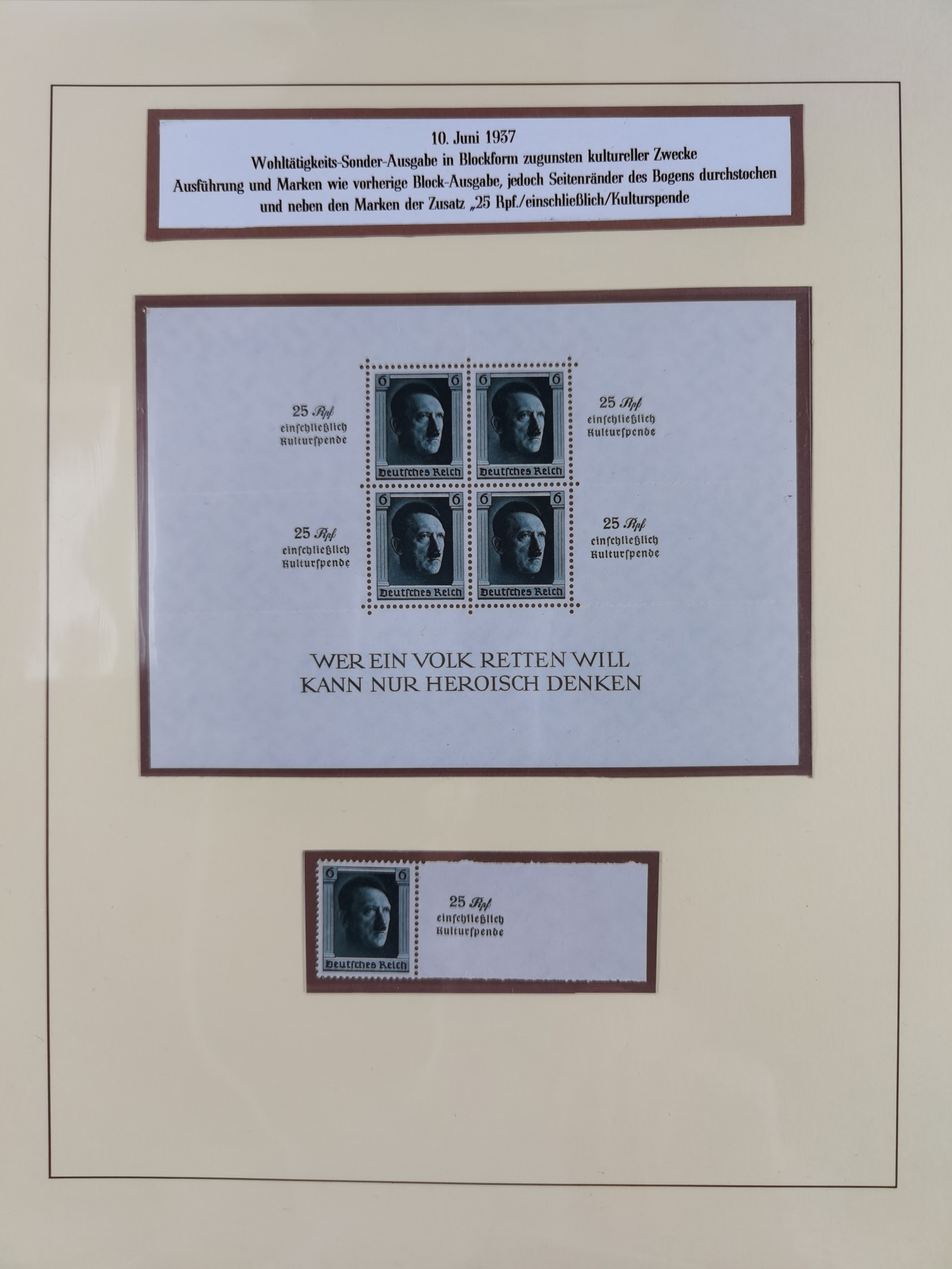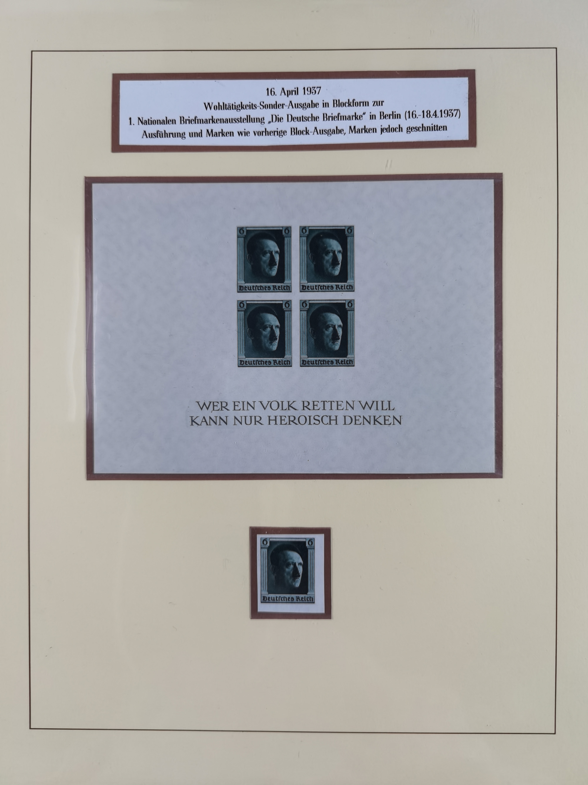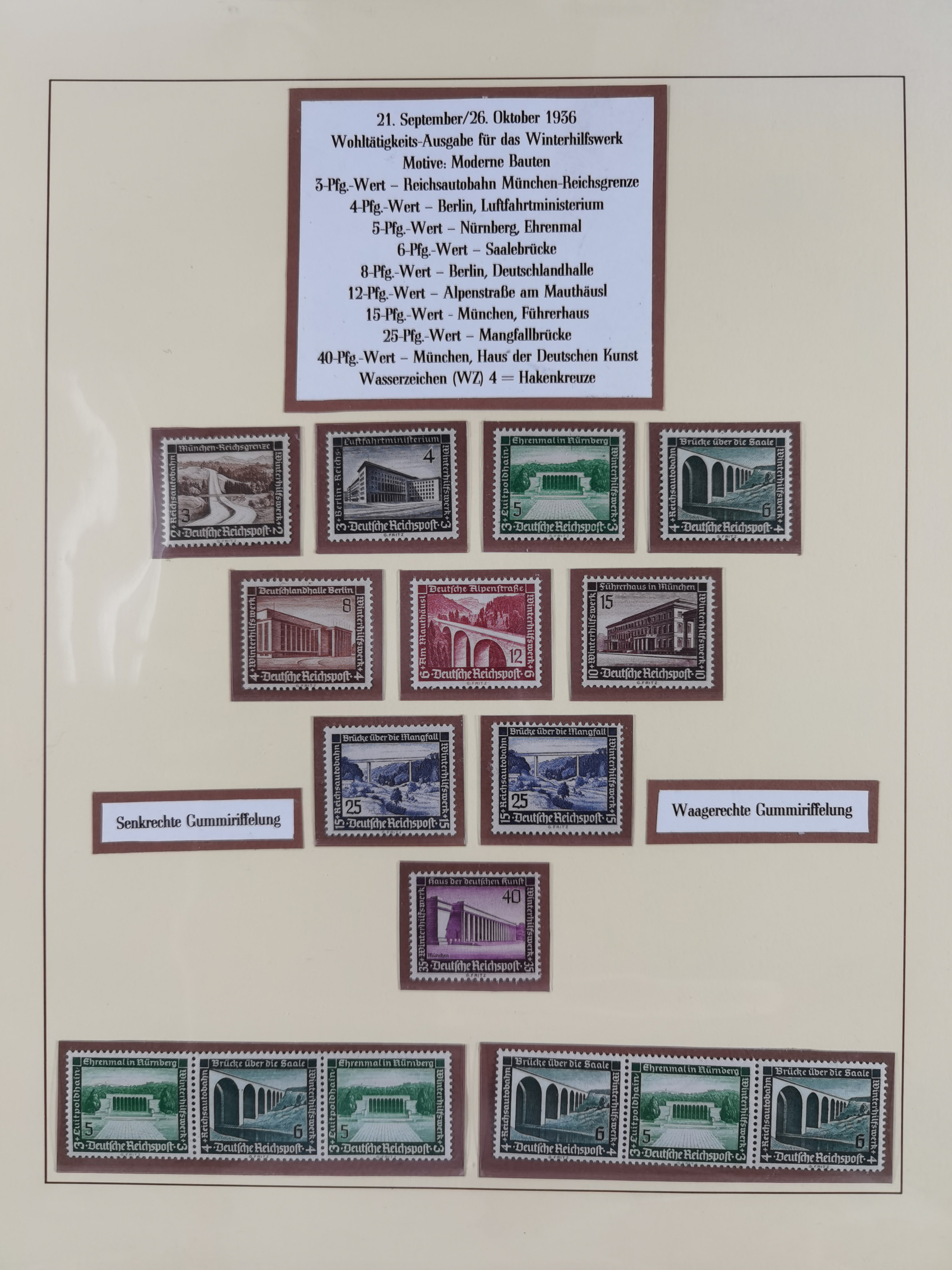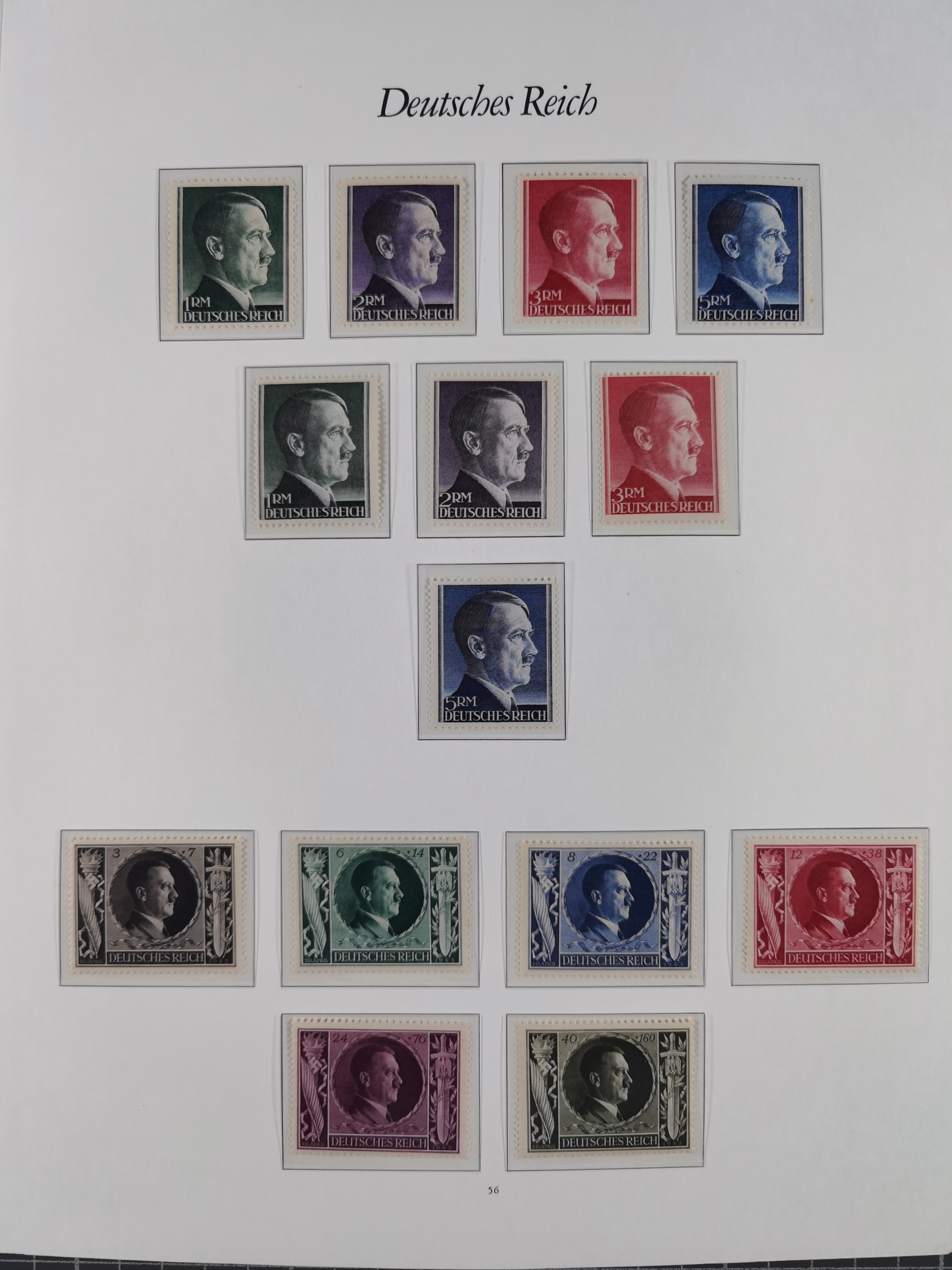 1933/45, meist postfrische Sammlung im Lindner-Falzlosalbum komplett mit vielen Besonderheiten. Mi. 482-495 postfrisch, Höchstwerte sign. A. Schlegel BPP, Mi. 496-98 ungebraucht, Mi. 507 postfrisch, Befund Schlegel BPP, Block 2 postfrisch (1 mm erhöht sign. Schlegel BPP), Mi. 529-539 x und Viererblock 539 y je postfrisch mit Attest Schlegel BPP, Bl. 3 Attest A. Schlegel BPP, Mi. 586 Y ungebraucht, Attest Oechsner BPP, Mi. 587 U ungebraucht, Attest H.-D. Schlegel BPP, Block 6z postfrisch, sign. Schlegel BPP, Mi. 641 x postfrisch, sign. D. Schlegel BPP, Mi. 659 x postfrisch, Befund Oechsner BPP, Mi. 671 x und 672 y sign., Mi. 814 Phasenabzug und Abzug vom Urstempel je postfrisch, viele Plattenfehler wie 909 I und 910 I und II je sign. A. Schlegel BPP.