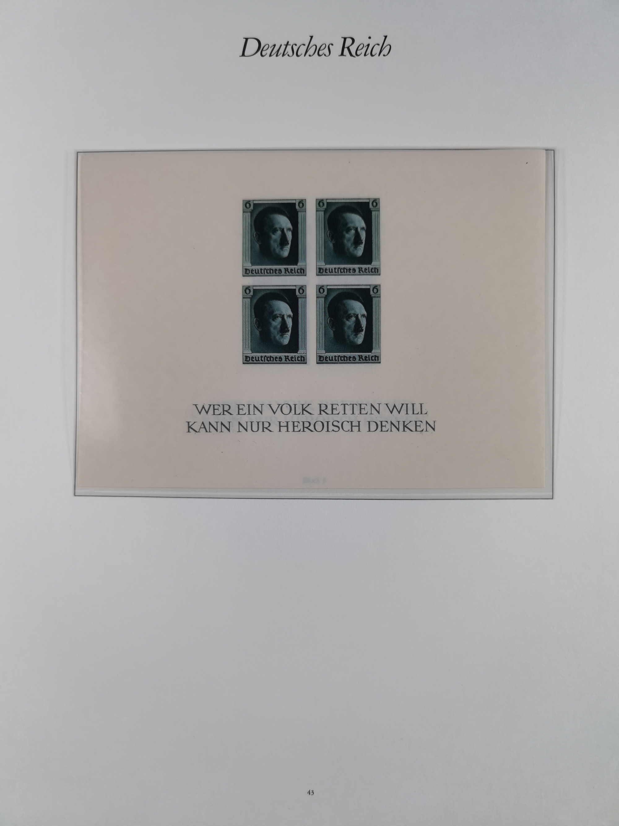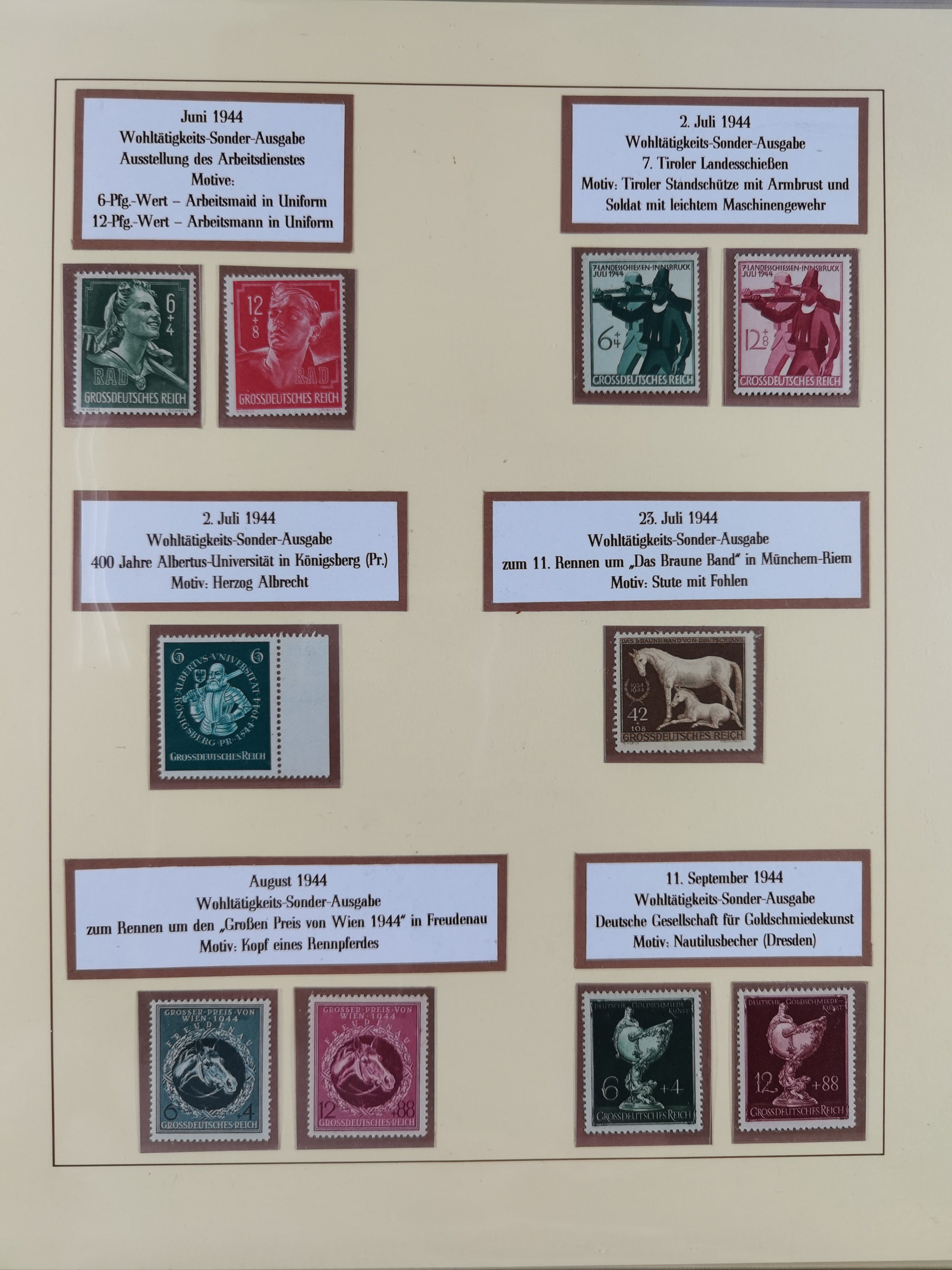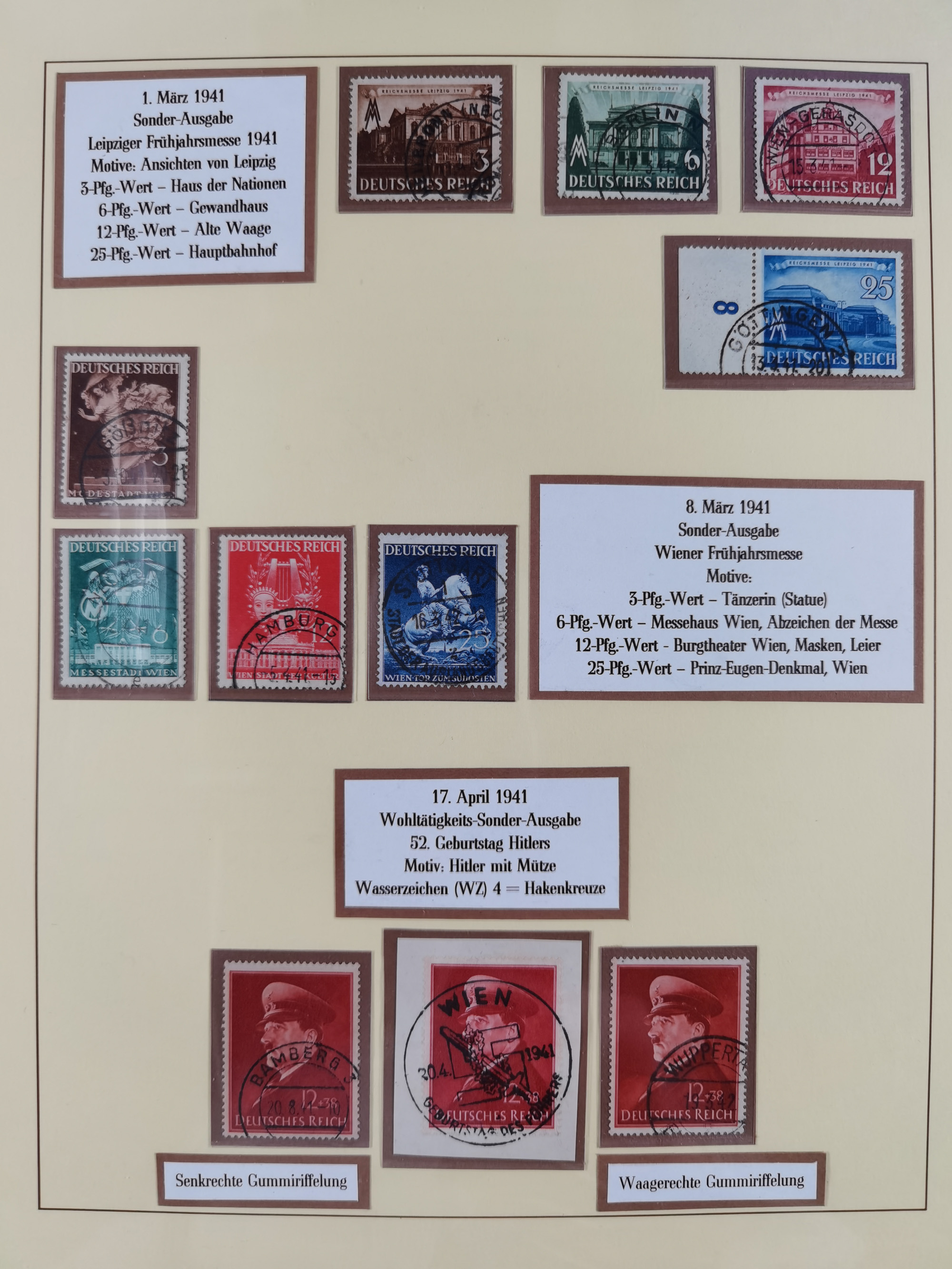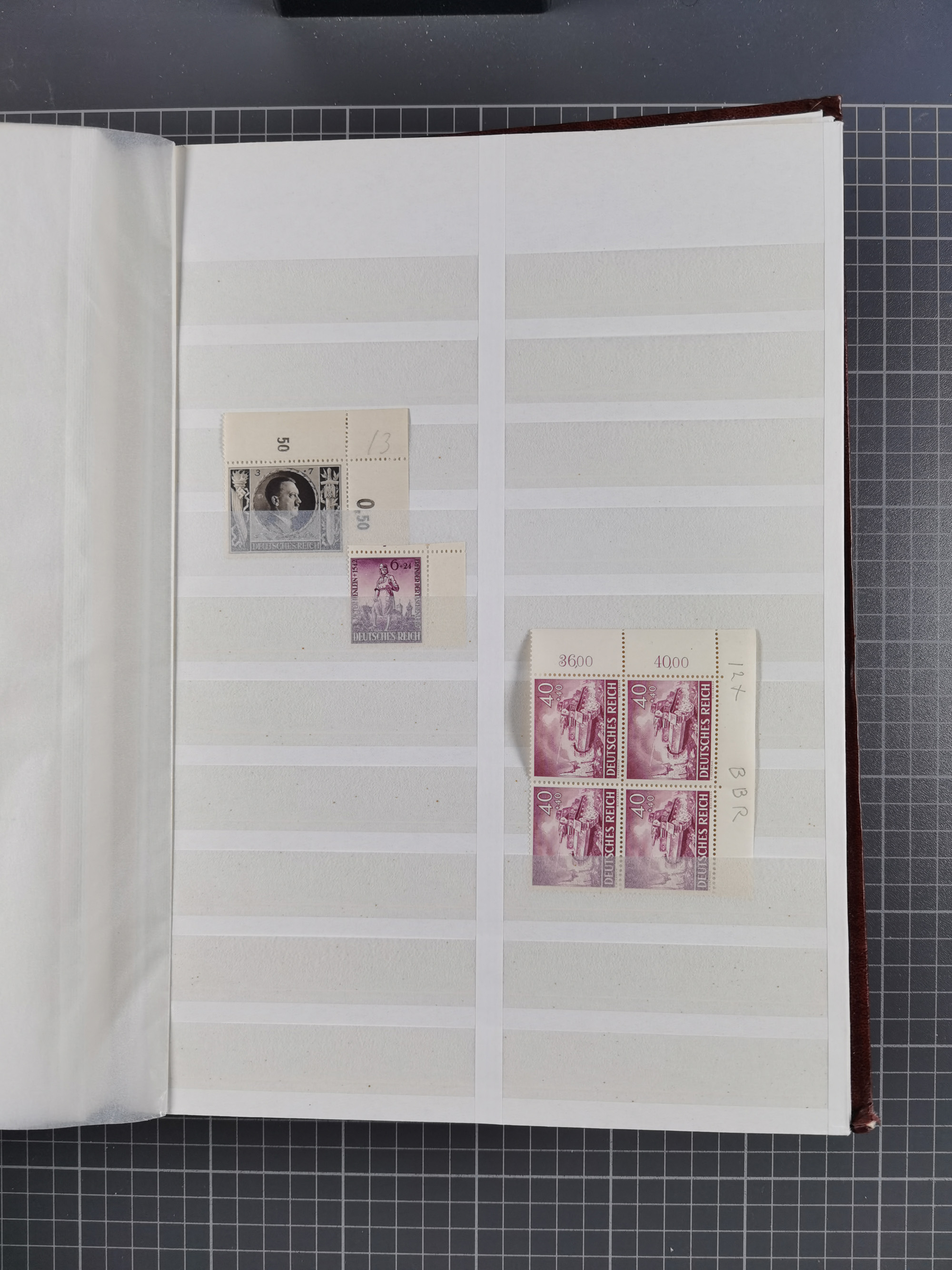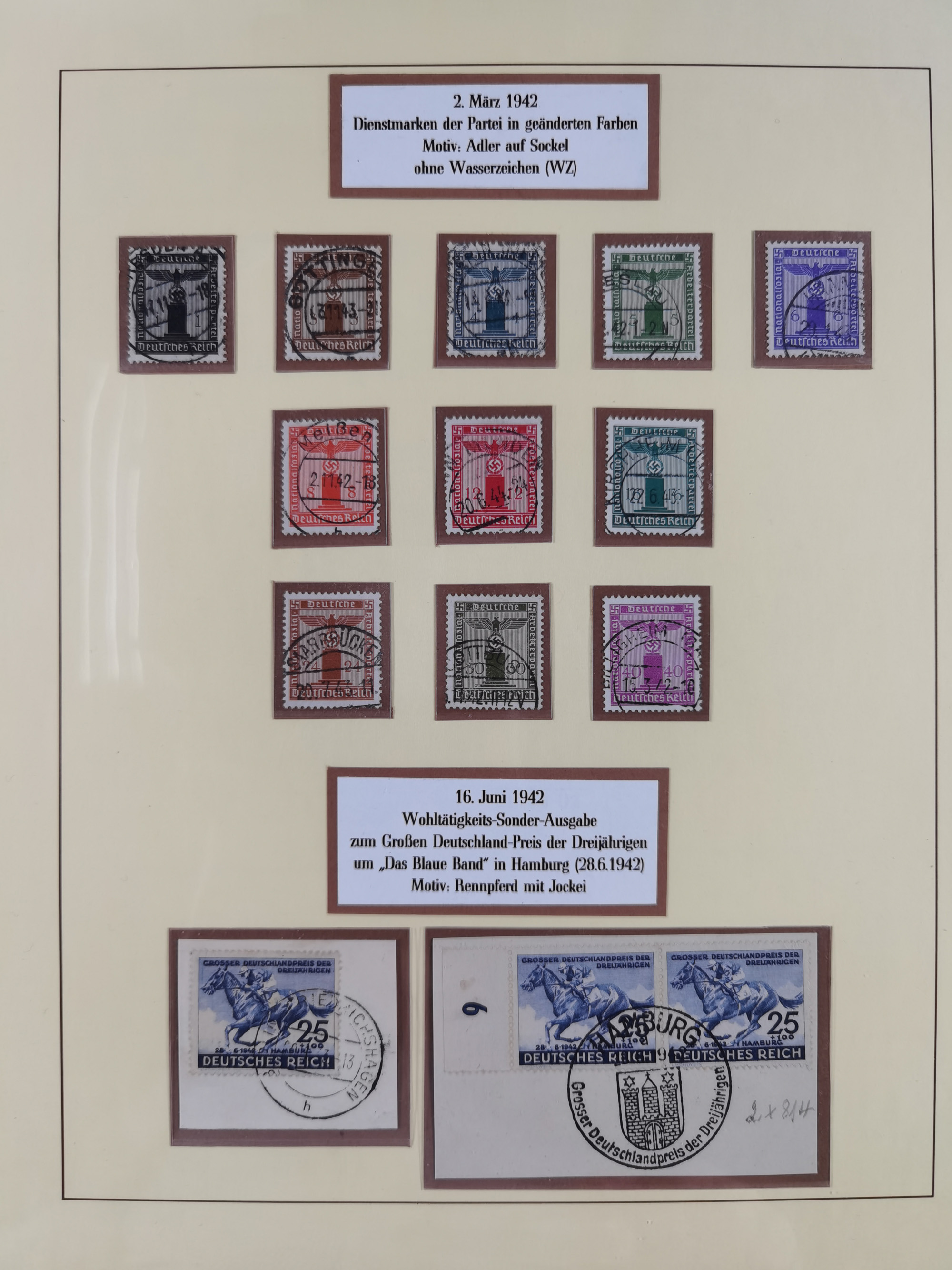 1933/45, meist postfrische Sammlung im Lindner-Falzlosalbum komplett mit vielen Besonderheiten. Mi. 482-495 postfrisch, Höchstwerte sign. A. Schlegel BPP, Mi. 496-98 ungebraucht, Mi. 507 postfrisch, Befund Schlegel BPP, Block 2 postfrisch (1 mm erhöht sign. Schlegel BPP), Mi. 529-539 x und Viererblock 539 y je postfrisch mit Attest Schlegel BPP, Bl. 3 Attest A. Schlegel BPP, Mi. 586 Y ungebraucht, Attest Oechsner BPP, Mi. 587 U ungebraucht, Attest H.-D. Schlegel BPP, Block 6z postfrisch, sign. Schlegel BPP, Mi. 641 x postfrisch, sign. D. Schlegel BPP, Mi. 659 x postfrisch, Befund Oechsner BPP, Mi. 671 x und 672 y sign., Mi. 814 Phasenabzug und Abzug vom Urstempel je postfrisch, viele Plattenfehler wie 909 I und 910 I und II je sign. A. Schlegel BPP.