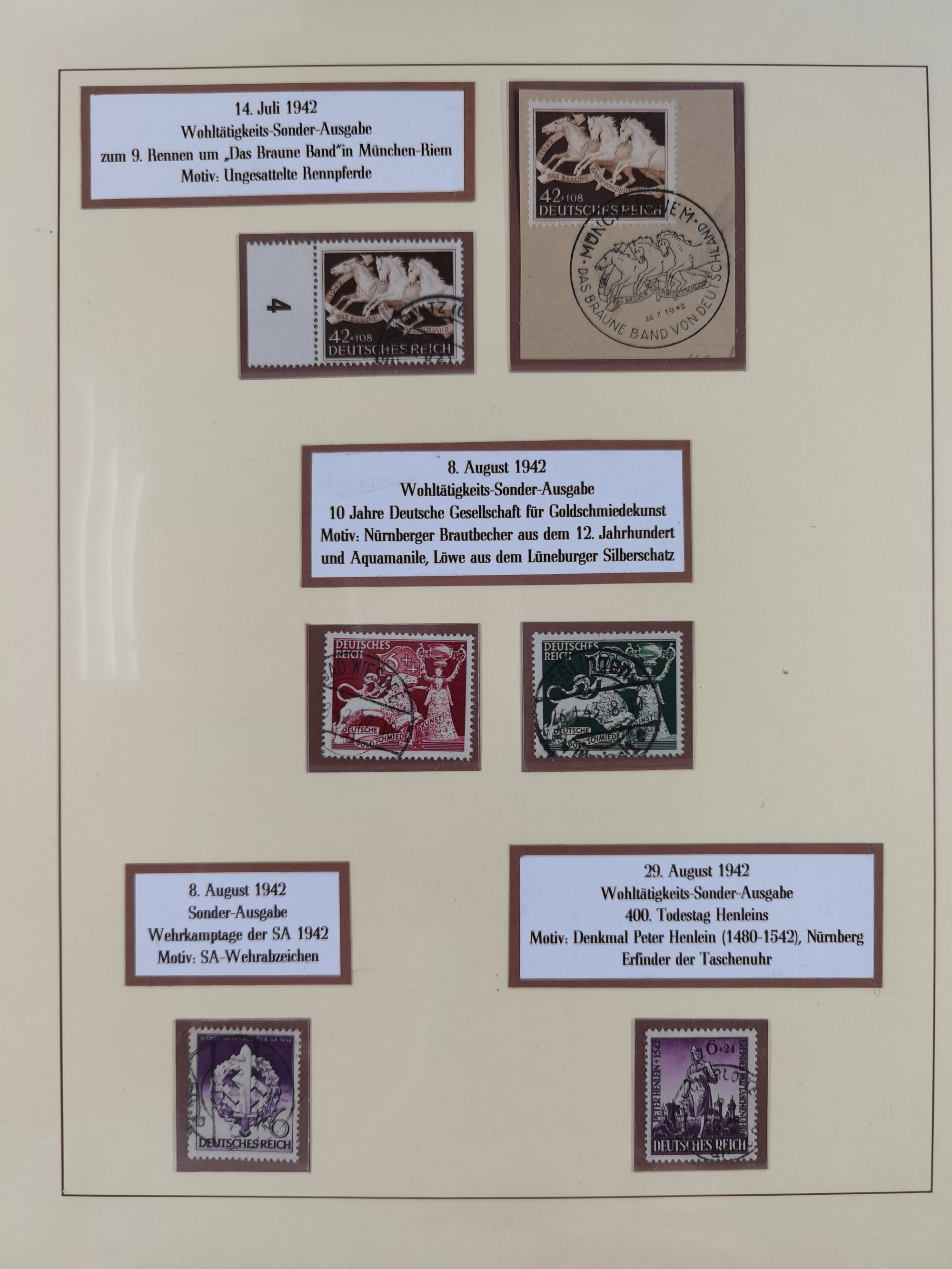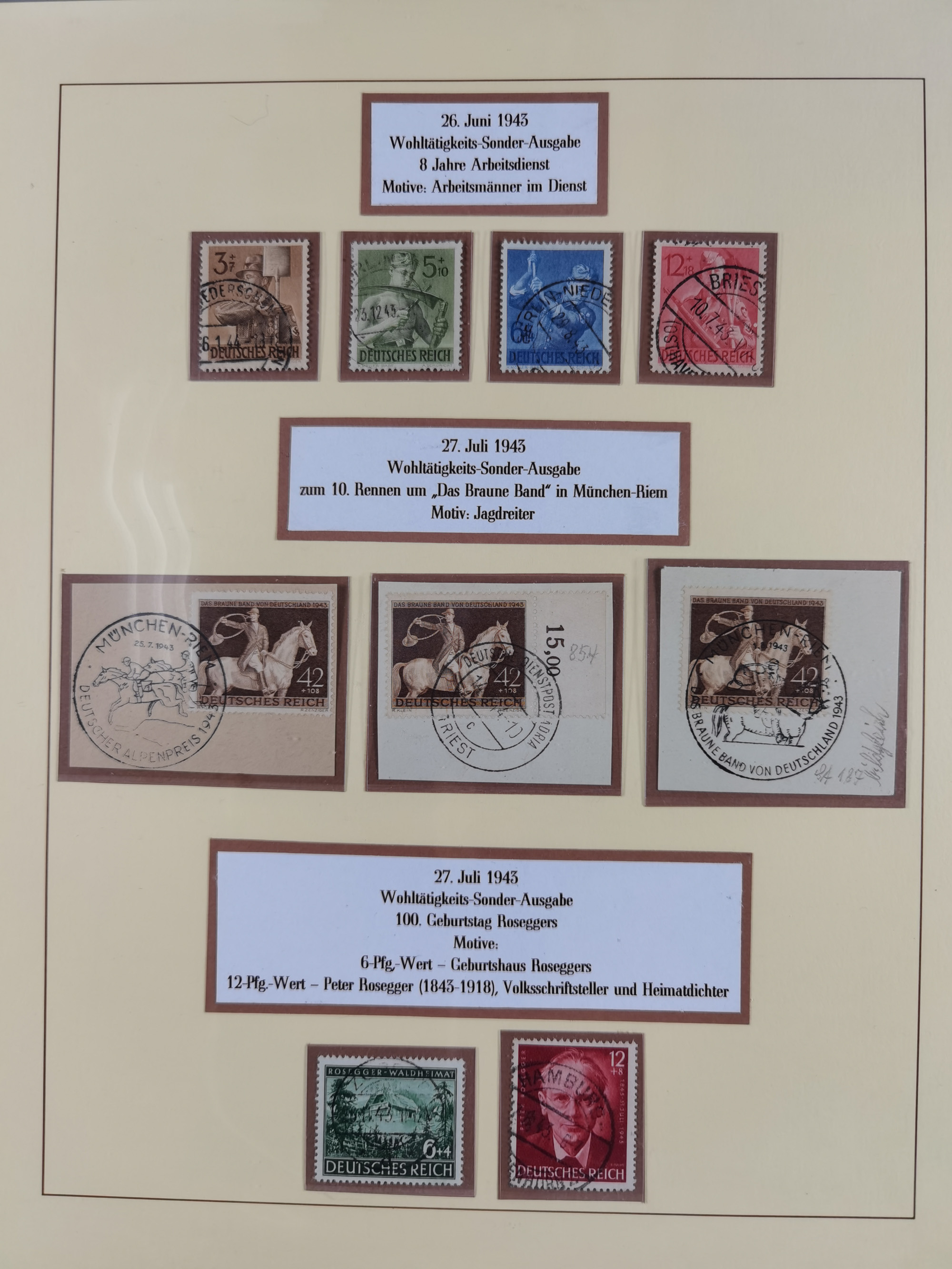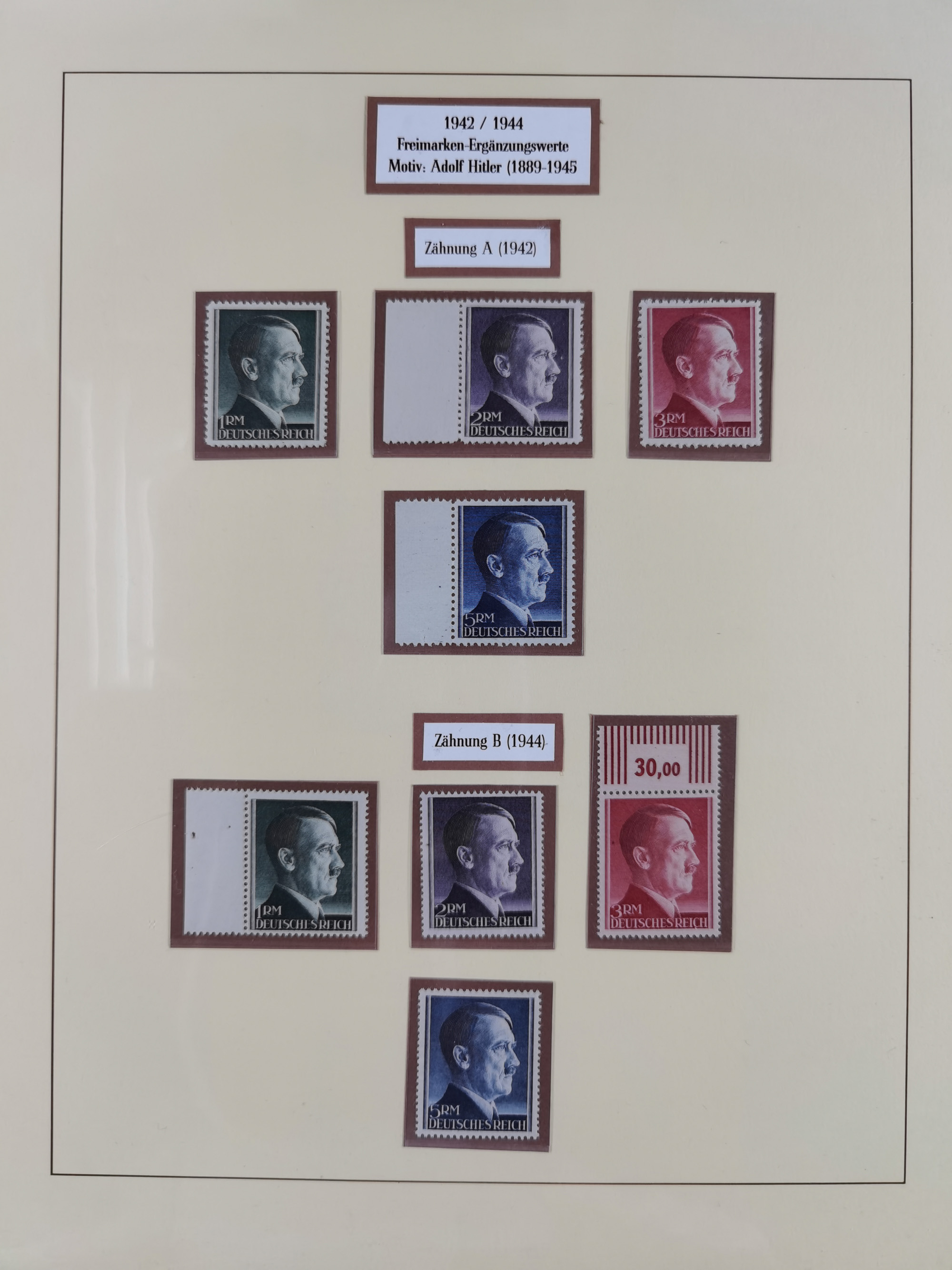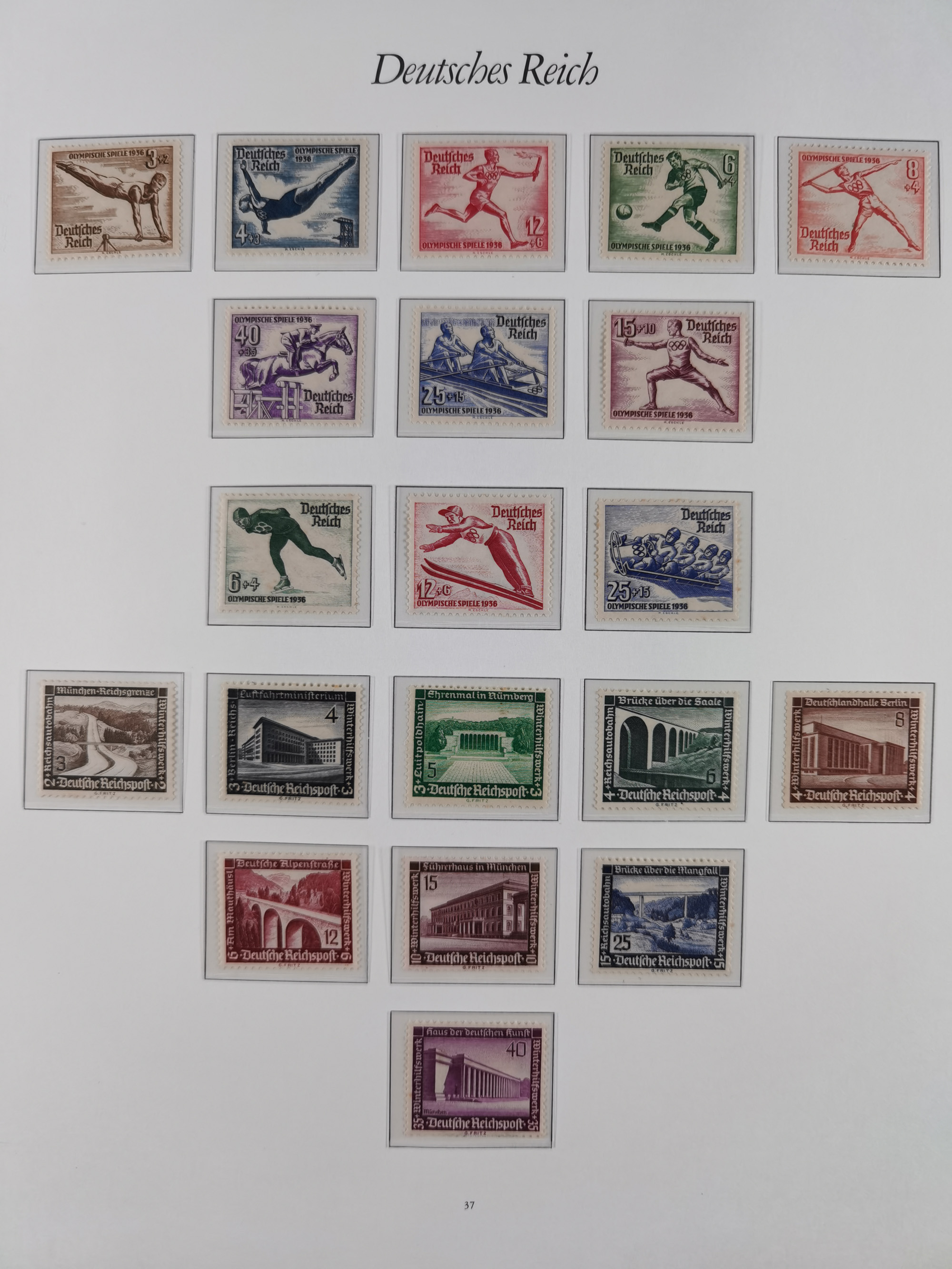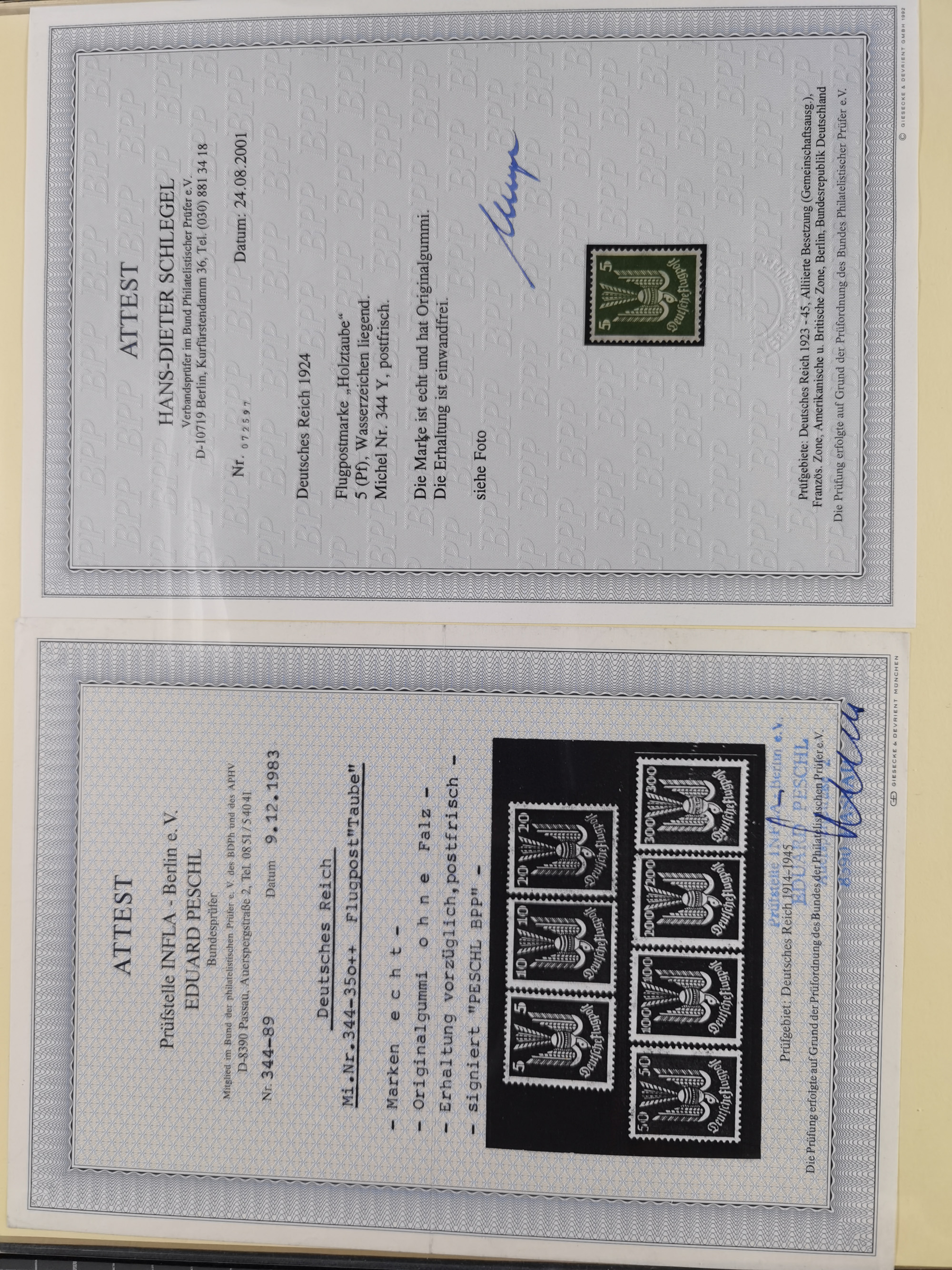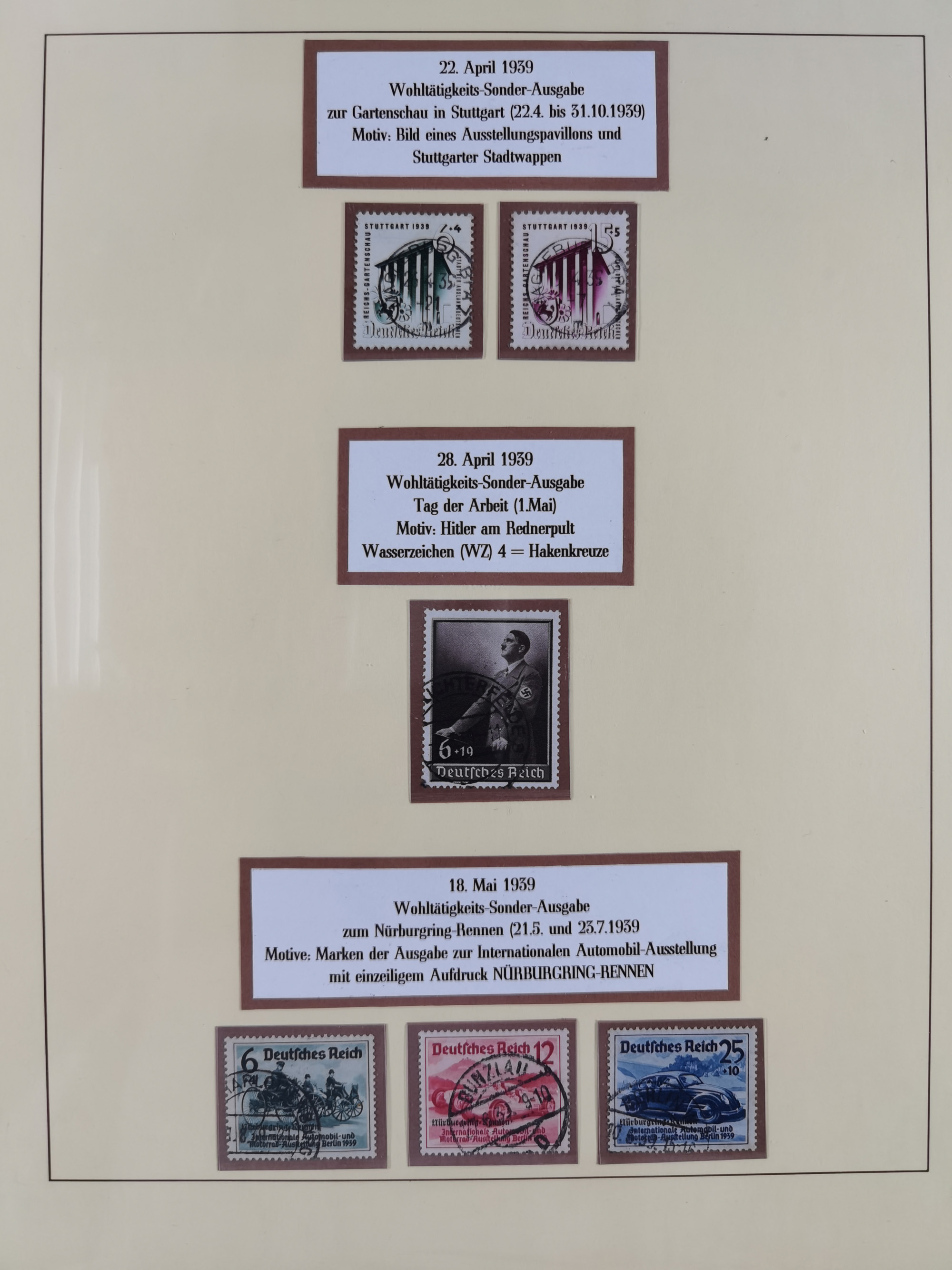 1933/45, meist postfrische Sammlung im Lindner-Falzlosalbum komplett mit vielen Besonderheiten. Mi. 482-495 postfrisch, Höchstwerte sign. A. Schlegel BPP, Mi. 496-98 ungebraucht, Mi. 507 postfrisch, Befund Schlegel BPP, Block 2 postfrisch (1 mm erhöht sign. Schlegel BPP), Mi. 529-539 x und Viererblock 539 y je postfrisch mit Attest Schlegel BPP, Bl. 3 Attest A. Schlegel BPP, Mi. 586 Y ungebraucht, Attest Oechsner BPP, Mi. 587 U ungebraucht, Attest H.-D. Schlegel BPP, Block 6z postfrisch, sign. Schlegel BPP, Mi. 641 x postfrisch, sign. D. Schlegel BPP, Mi. 659 x postfrisch, Befund Oechsner BPP, Mi. 671 x und 672 y sign., Mi. 814 Phasenabzug und Abzug vom Urstempel je postfrisch, viele Plattenfehler wie 909 I und 910 I und II je sign. A. Schlegel BPP.