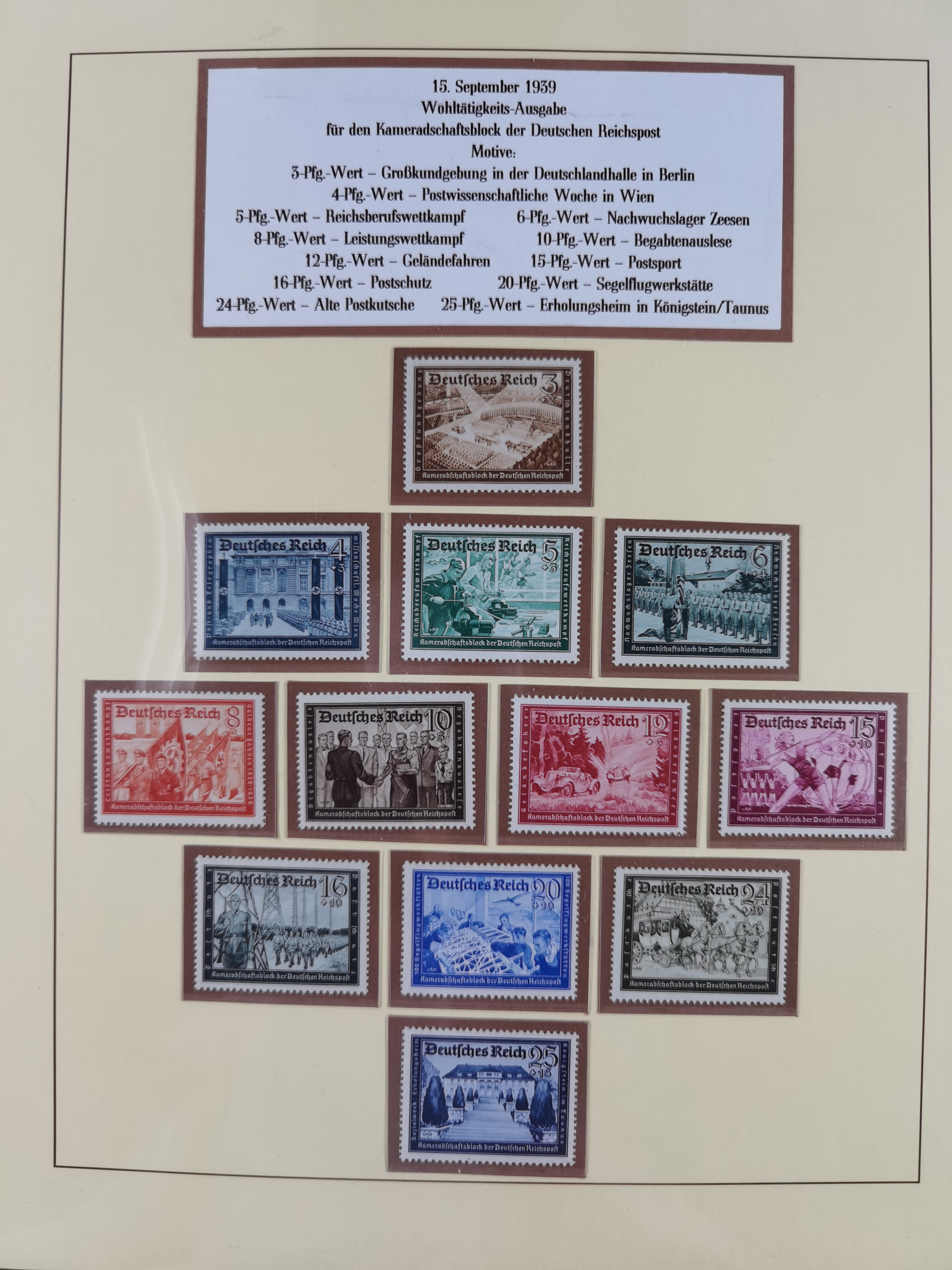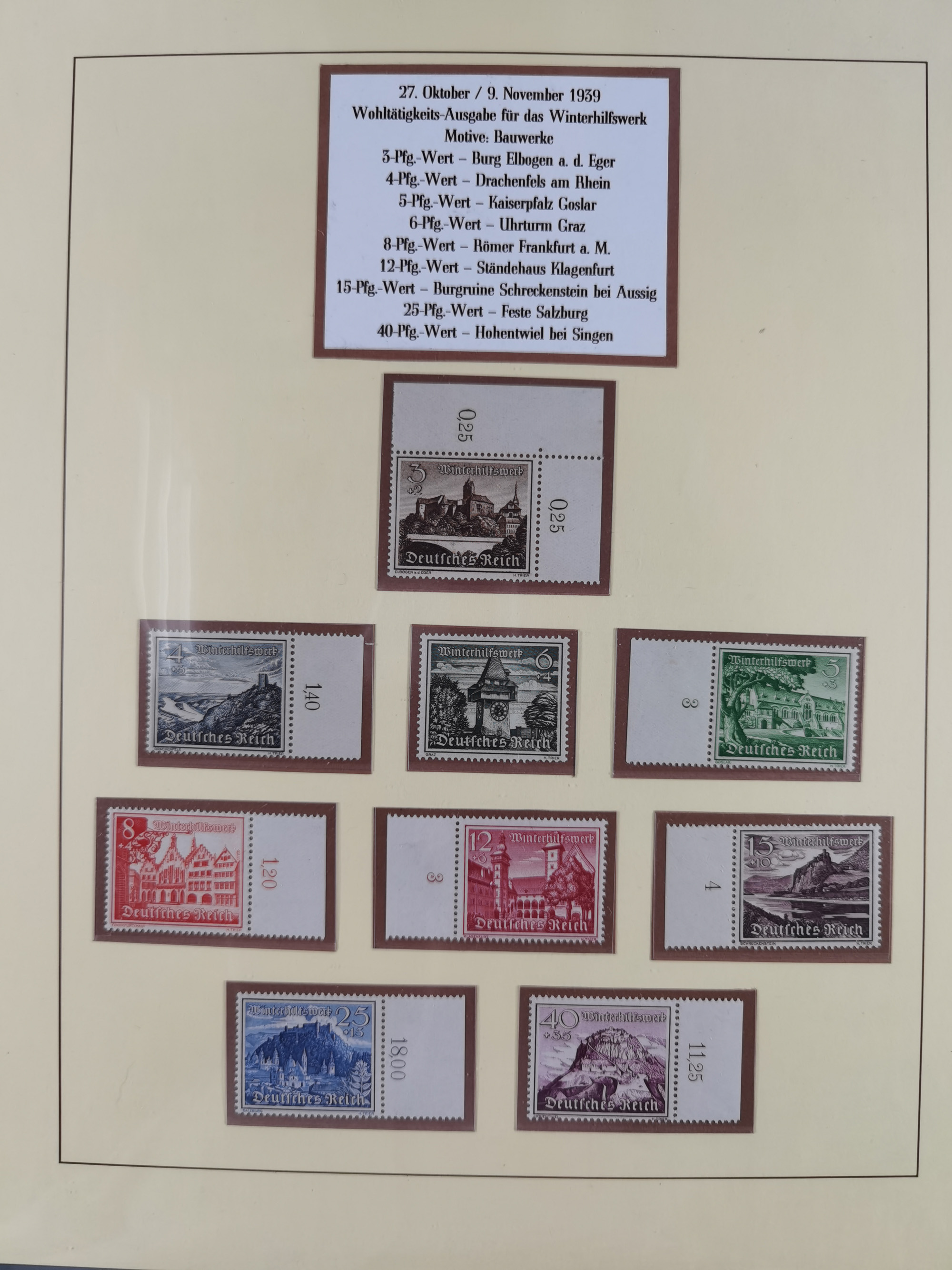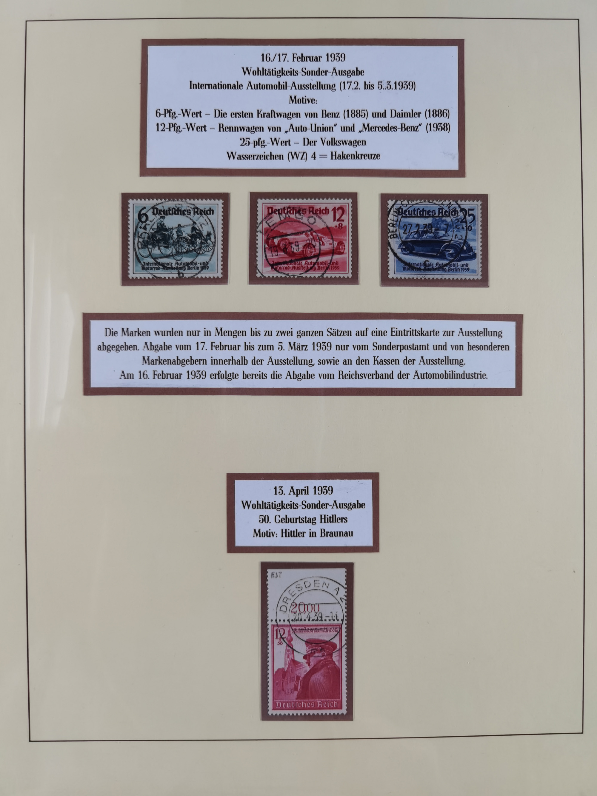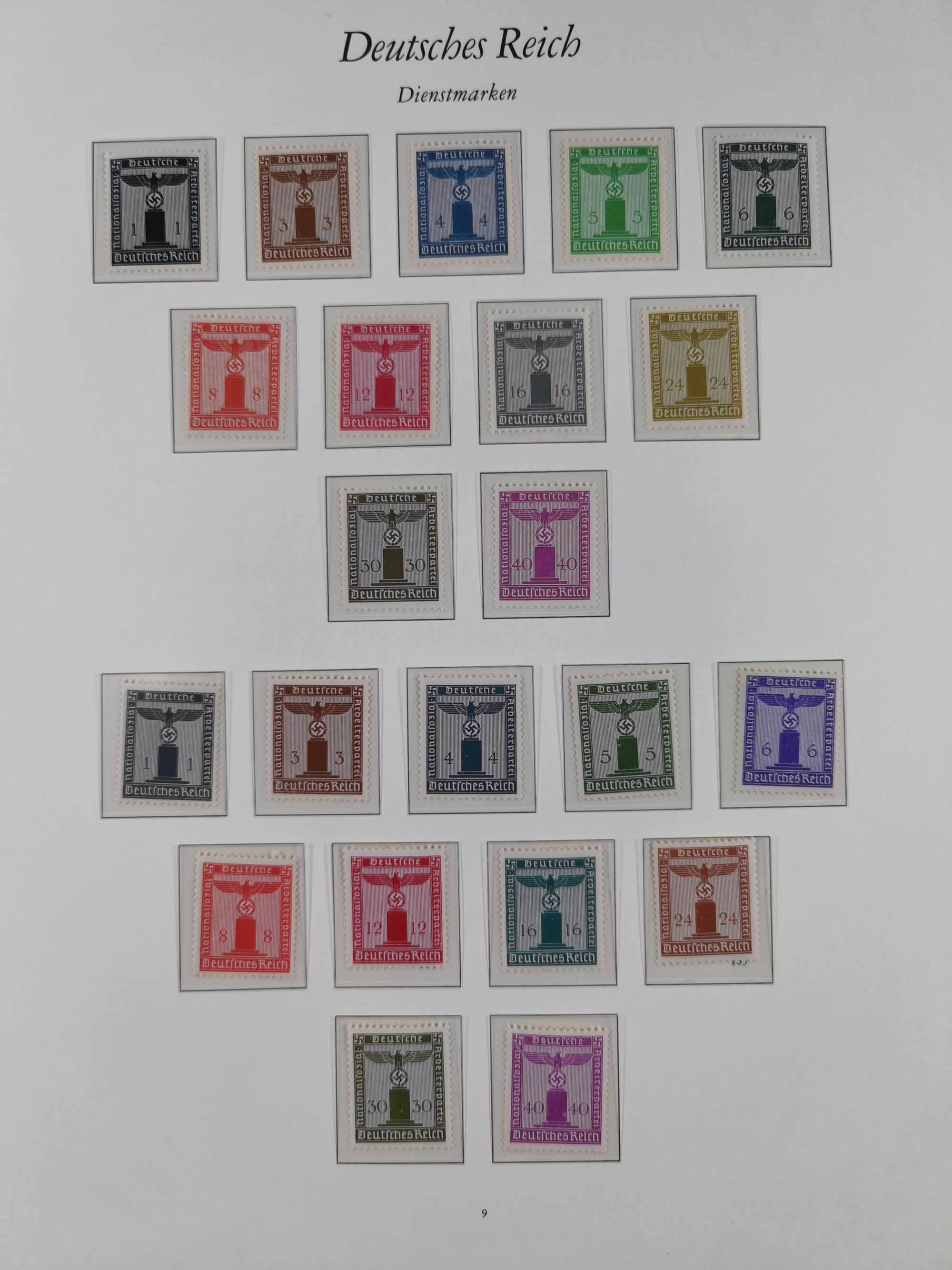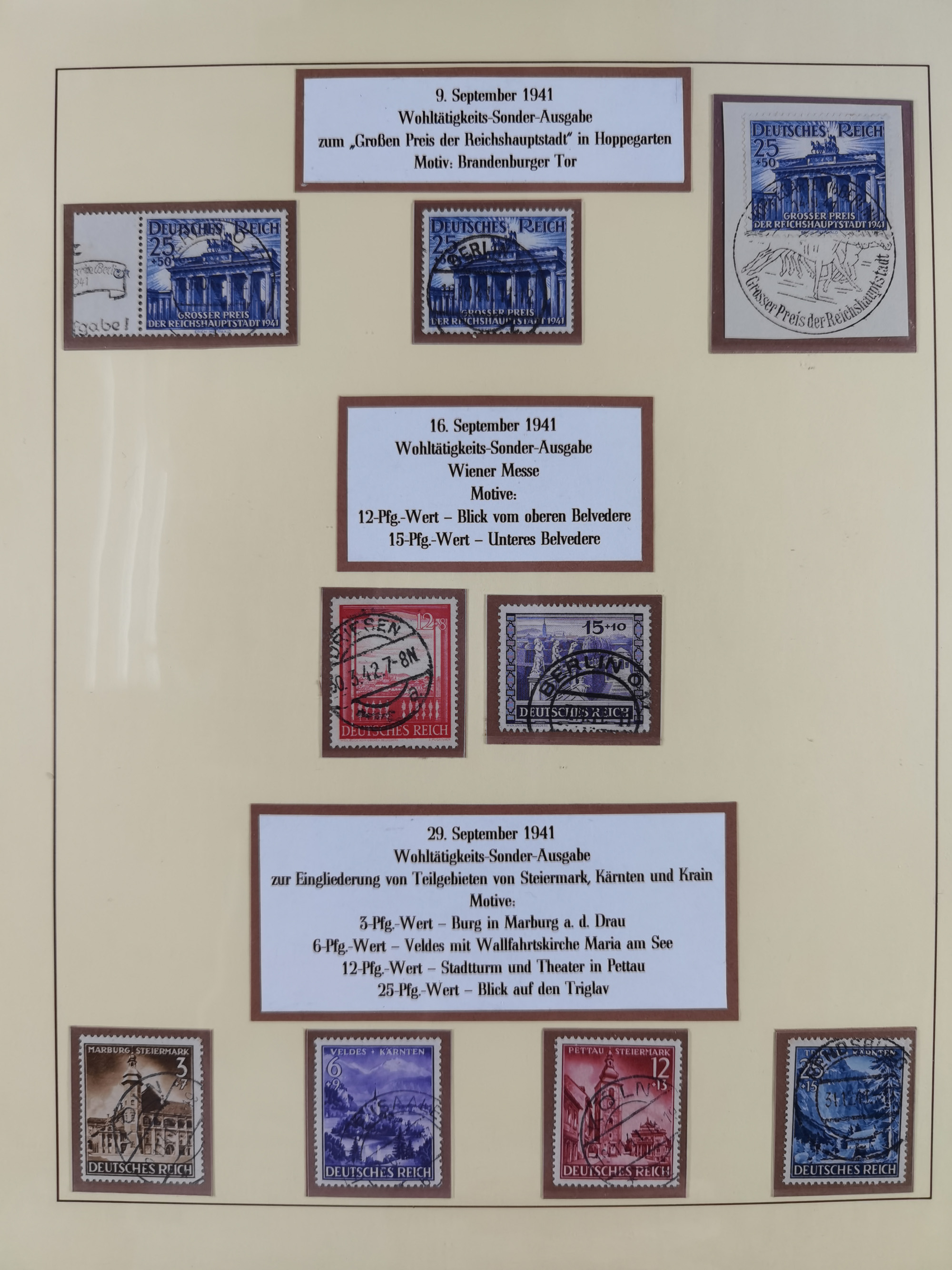 1933/45, meist postfrische Sammlung im Lindner-Falzlosalbum komplett mit vielen Besonderheiten. Mi. 482-495 postfrisch, Höchstwerte sign. A. Schlegel BPP, Mi. 496-98 ungebraucht, Mi. 507 postfrisch, Befund Schlegel BPP, Block 2 postfrisch (1 mm erhöht sign. Schlegel BPP), Mi. 529-539 x und Viererblock 539 y je postfrisch mit Attest Schlegel BPP, Bl. 3 Attest A. Schlegel BPP, Mi. 586 Y ungebraucht, Attest Oechsner BPP, Mi. 587 U ungebraucht, Attest H.-D. Schlegel BPP, Block 6z postfrisch, sign. Schlegel BPP, Mi. 641 x postfrisch, sign. D. Schlegel BPP, Mi. 659 x postfrisch, Befund Oechsner BPP, Mi. 671 x und 672 y sign., Mi. 814 Phasenabzug und Abzug vom Urstempel je postfrisch, viele Plattenfehler wie 909 I und 910 I und II je sign. A. Schlegel BPP.