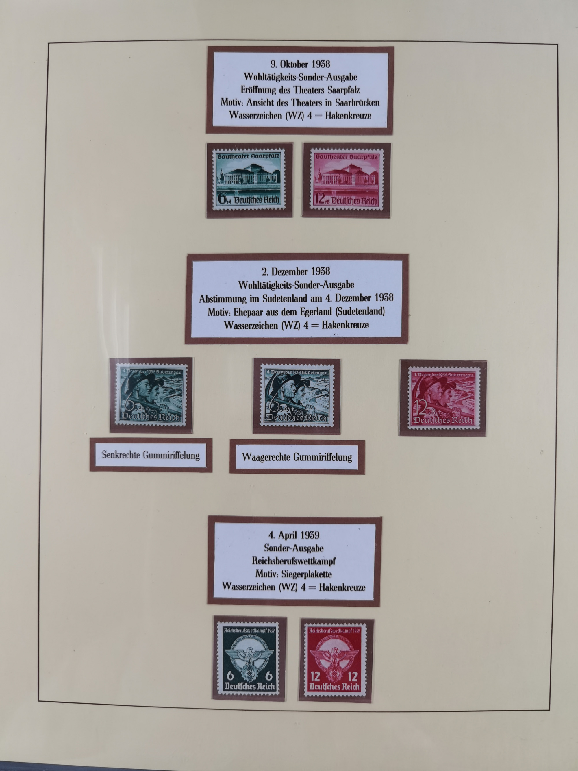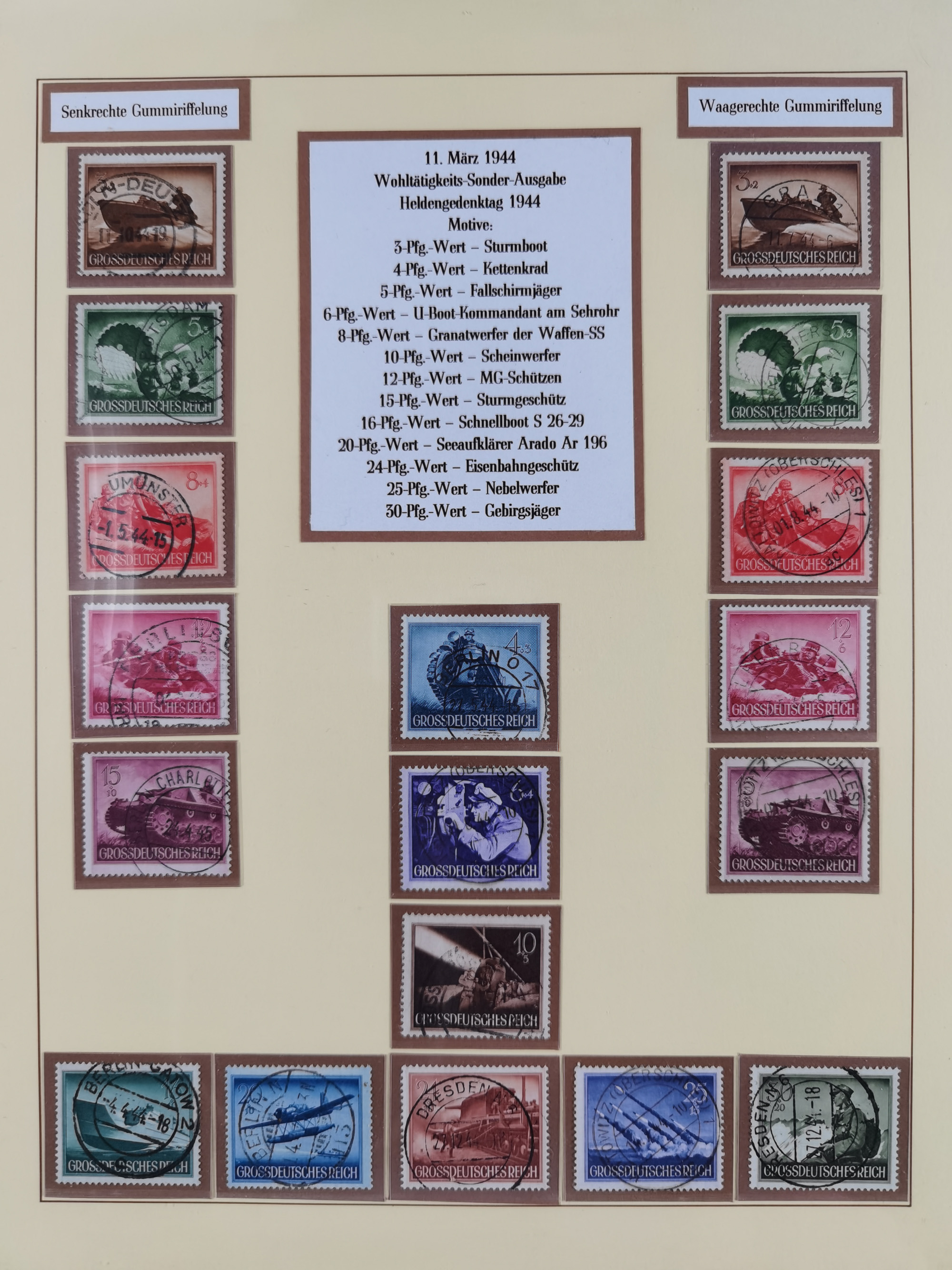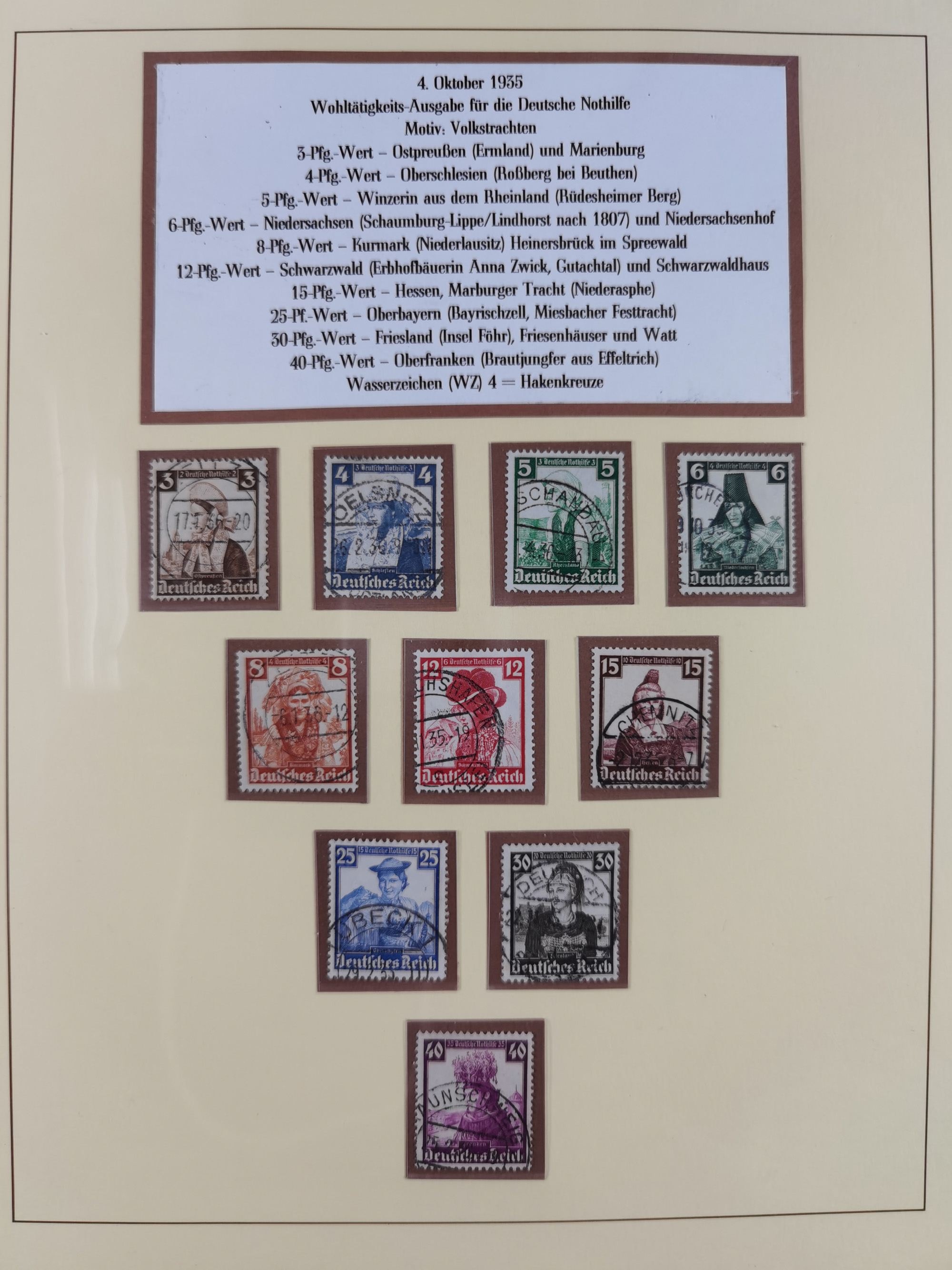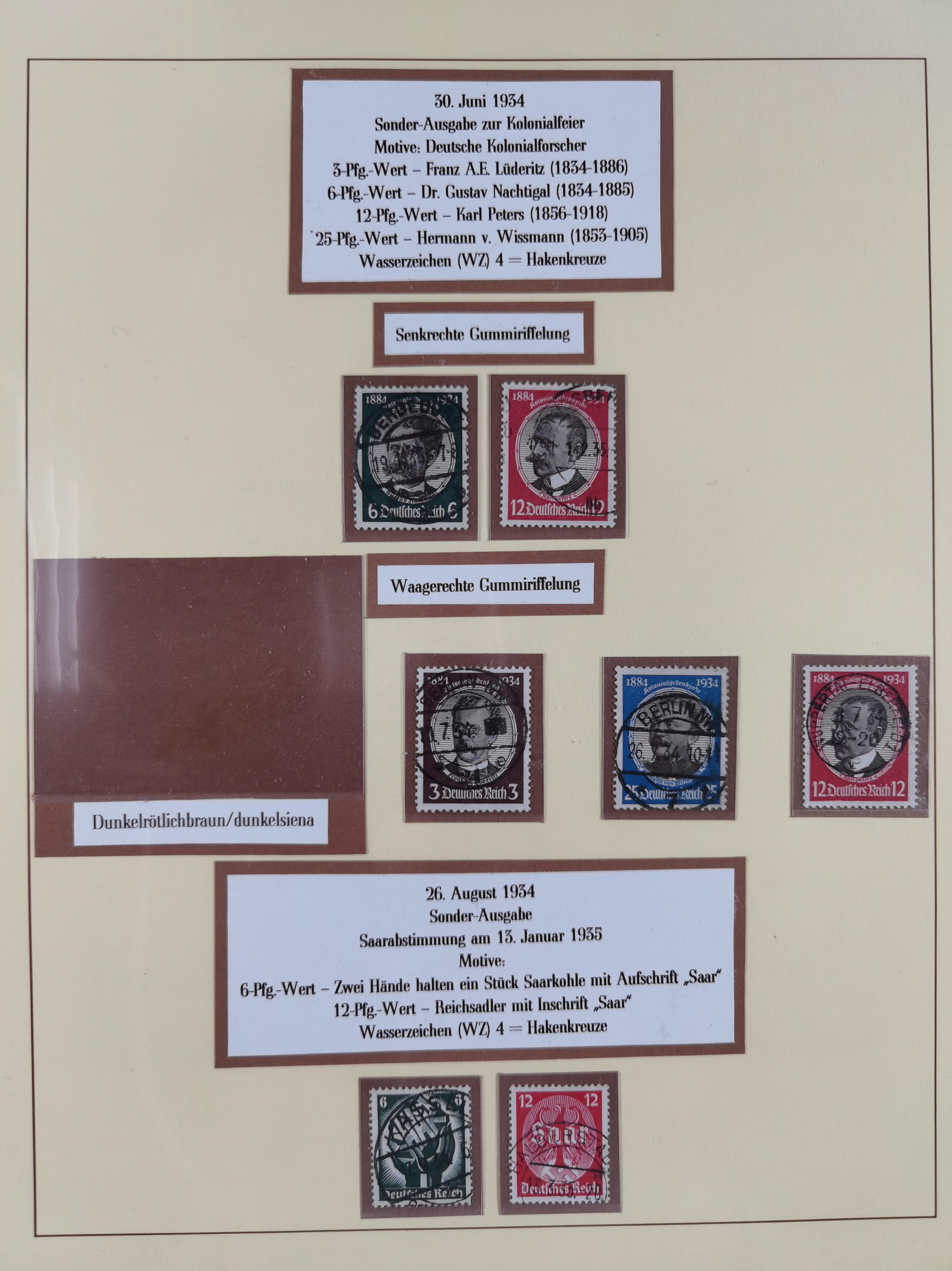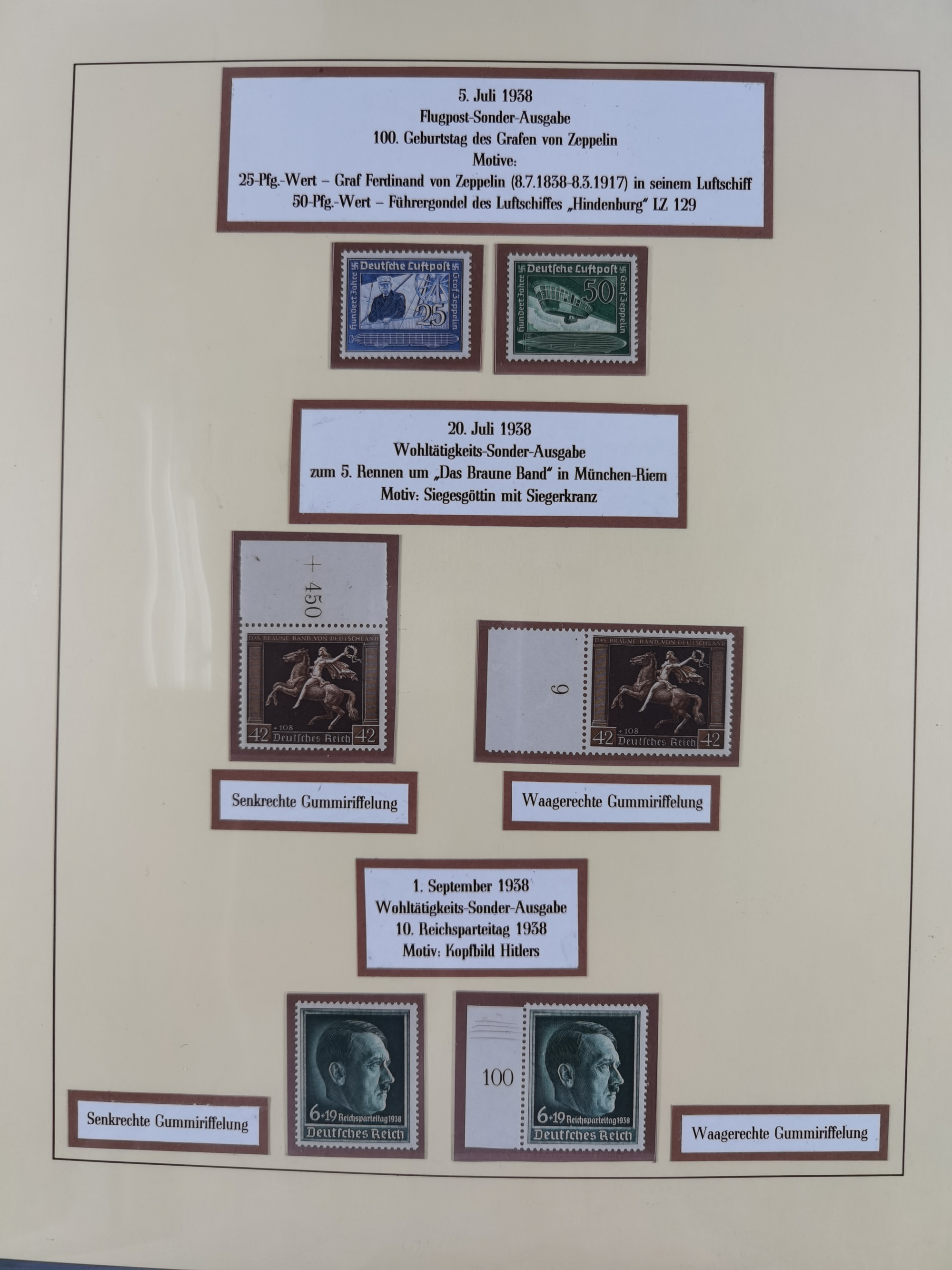 1933/45, meist postfrische Sammlung im Lindner-Falzlosalbum komplett mit vielen Besonderheiten. Mi. 482-495 postfrisch, Höchstwerte sign. A. Schlegel BPP, Mi. 496-98 ungebraucht, Mi. 507 postfrisch, Befund Schlegel BPP, Block 2 postfrisch (1 mm erhöht sign. Schlegel BPP), Mi. 529-539 x und Viererblock 539 y je postfrisch mit Attest Schlegel BPP, Bl. 3 Attest A. Schlegel BPP, Mi. 586 Y ungebraucht, Attest Oechsner BPP, Mi. 587 U ungebraucht, Attest H.-D. Schlegel BPP, Block 6z postfrisch, sign. Schlegel BPP, Mi. 641 x postfrisch, sign. D. Schlegel BPP, Mi. 659 x postfrisch, Befund Oechsner BPP, Mi. 671 x und 672 y sign., Mi. 814 Phasenabzug und Abzug vom Urstempel je postfrisch, viele Plattenfehler wie 909 I und 910 I und II je sign. A. Schlegel BPP.