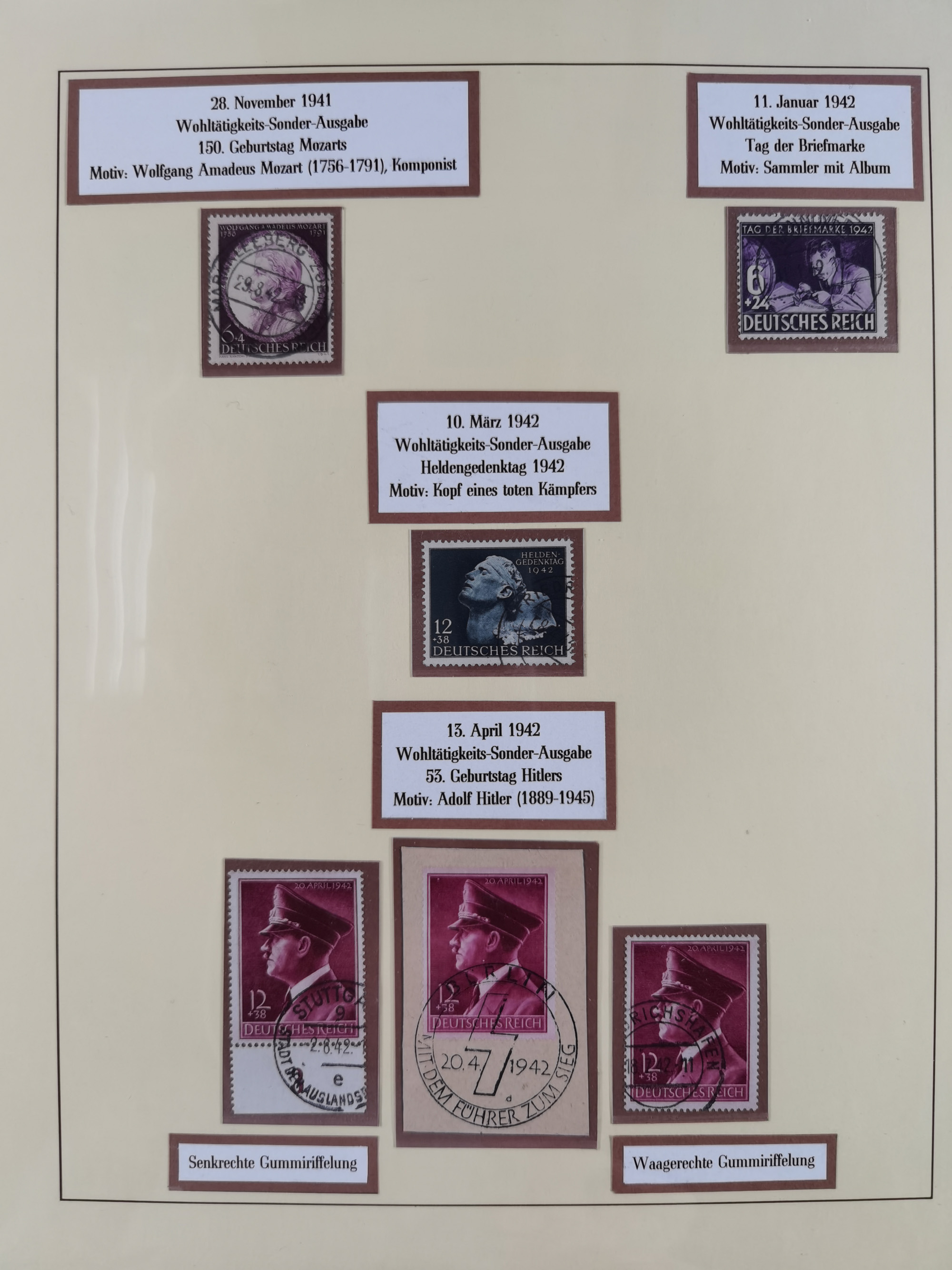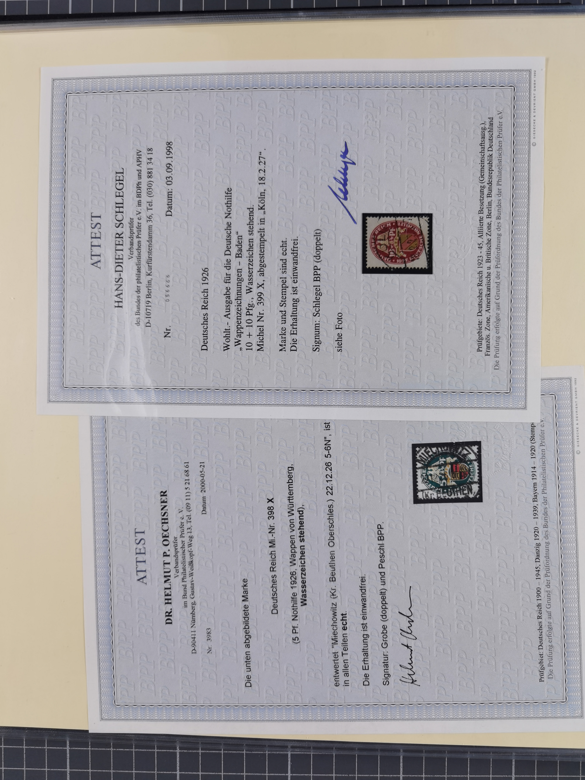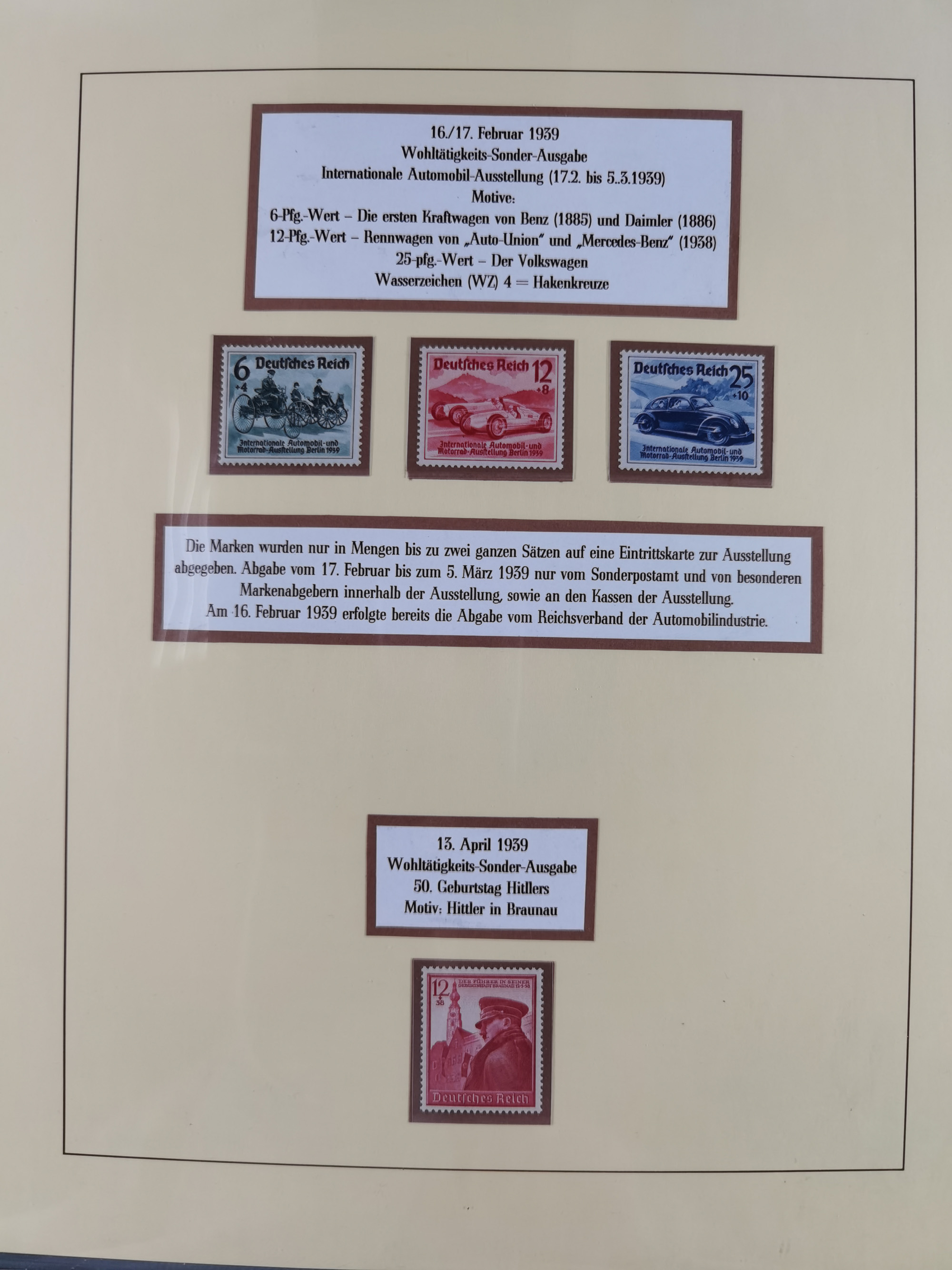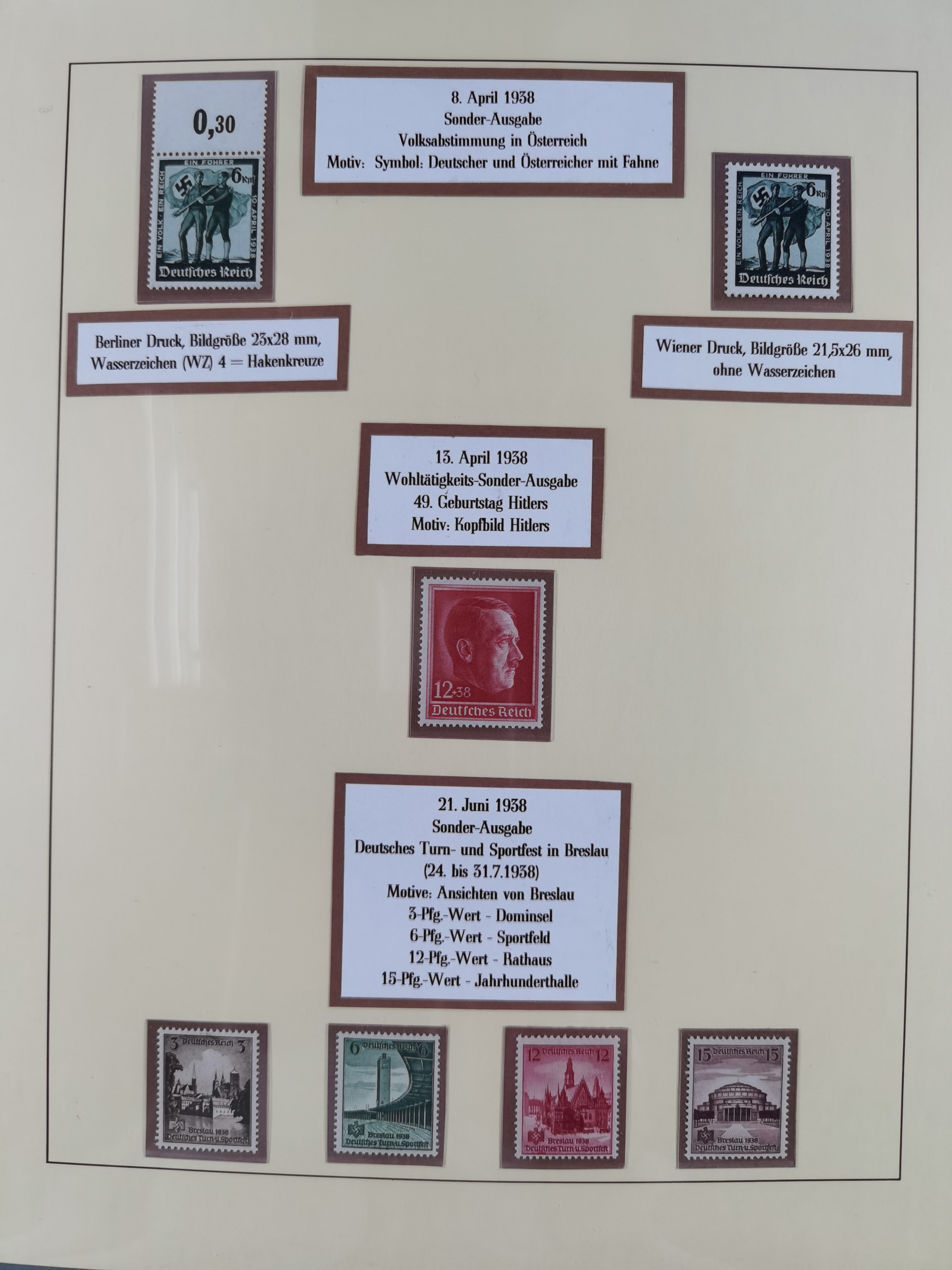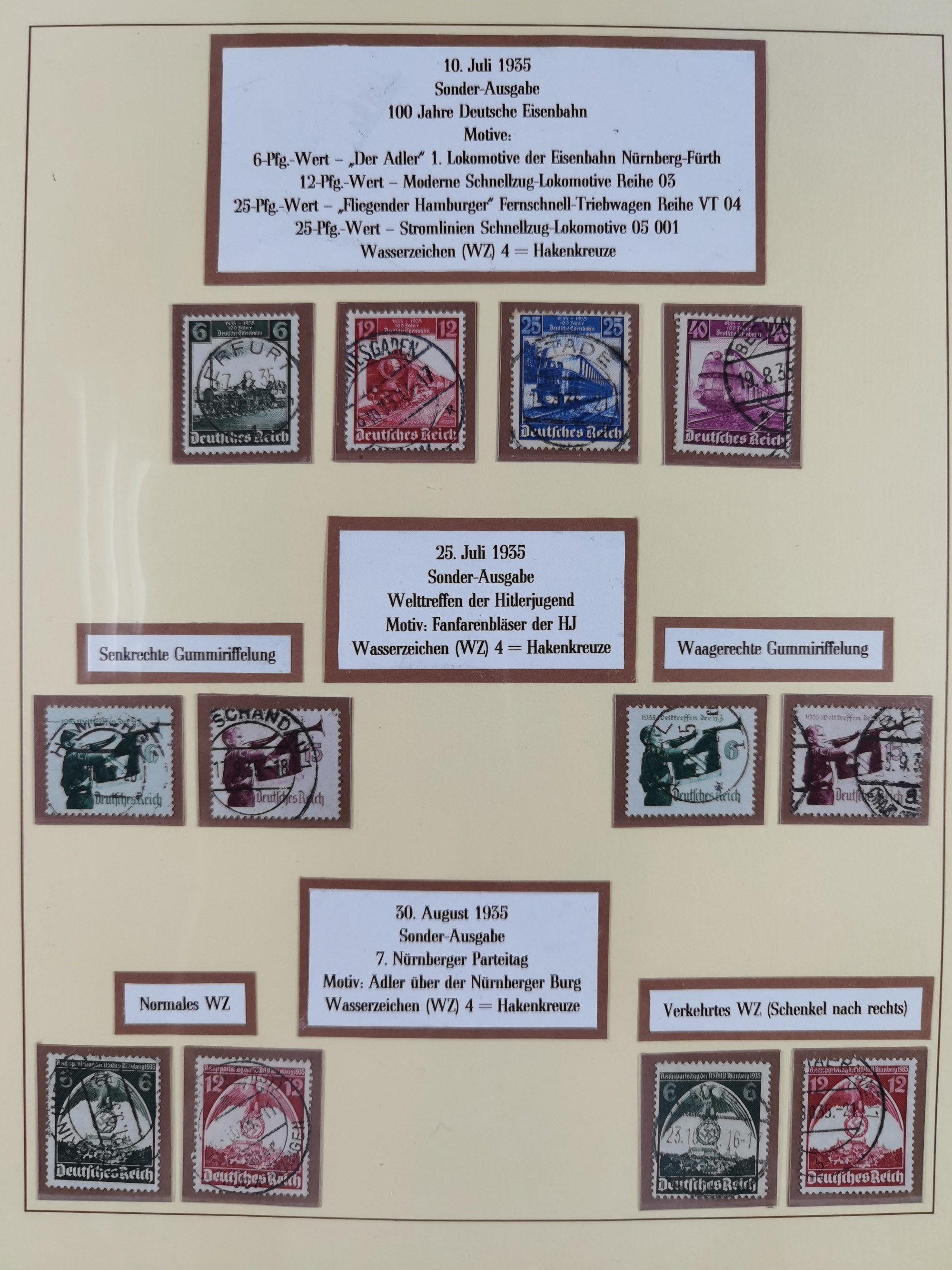 1933/45, meist postfrische Sammlung im Lindner-Falzlosalbum komplett mit vielen Besonderheiten. Mi. 482-495 postfrisch, Höchstwerte sign. A. Schlegel BPP, Mi. 496-98 ungebraucht, Mi. 507 postfrisch, Befund Schlegel BPP, Block 2 postfrisch (1 mm erhöht sign. Schlegel BPP), Mi. 529-539 x und Viererblock 539 y je postfrisch mit Attest Schlegel BPP, Bl. 3 Attest A. Schlegel BPP, Mi. 586 Y ungebraucht, Attest Oechsner BPP, Mi. 587 U ungebraucht, Attest H.-D. Schlegel BPP, Block 6z postfrisch, sign. Schlegel BPP, Mi. 641 x postfrisch, sign. D. Schlegel BPP, Mi. 659 x postfrisch, Befund Oechsner BPP, Mi. 671 x und 672 y sign., Mi. 814 Phasenabzug und Abzug vom Urstempel je postfrisch, viele Plattenfehler wie 909 I und 910 I und II je sign. A. Schlegel BPP.