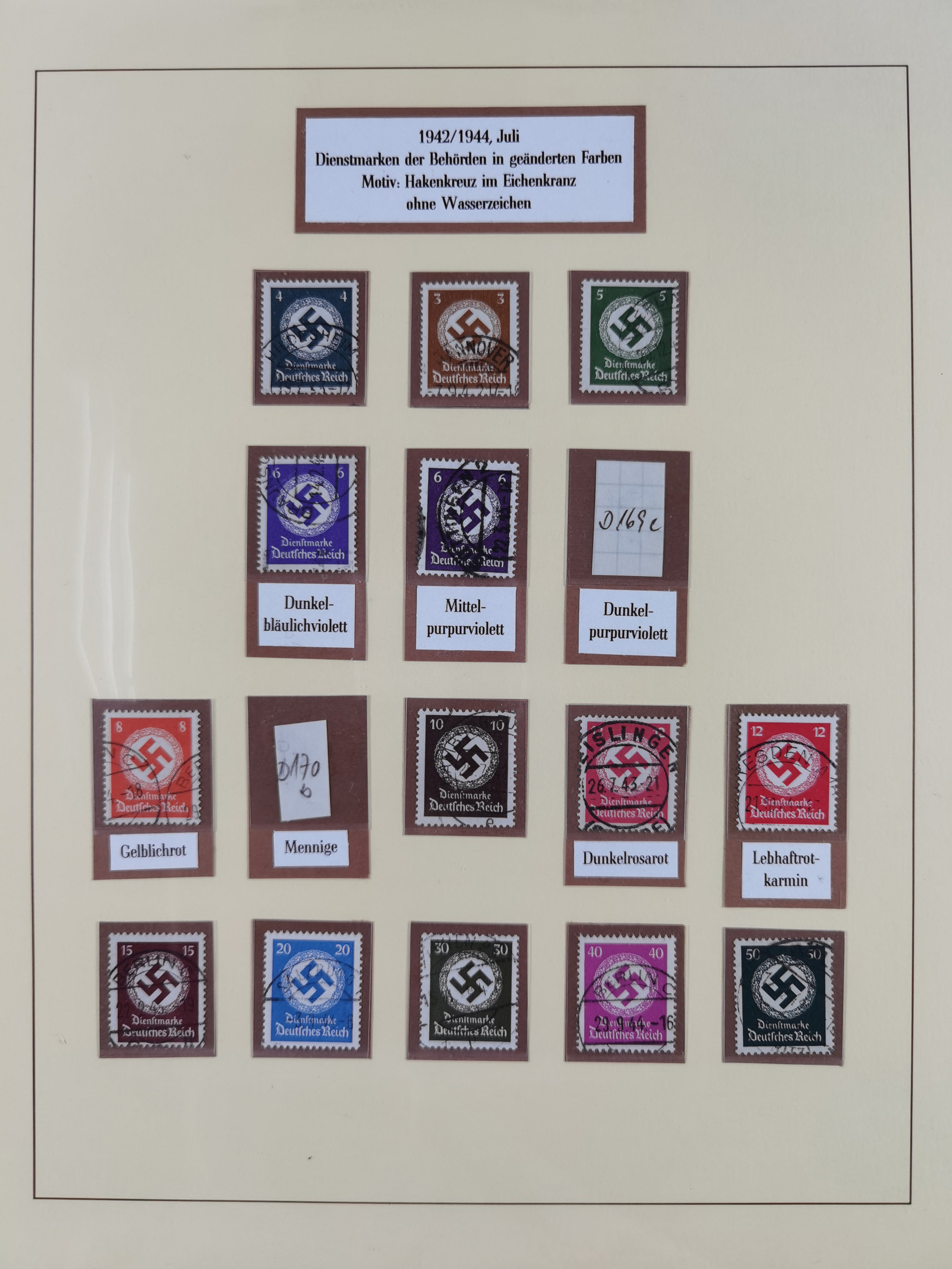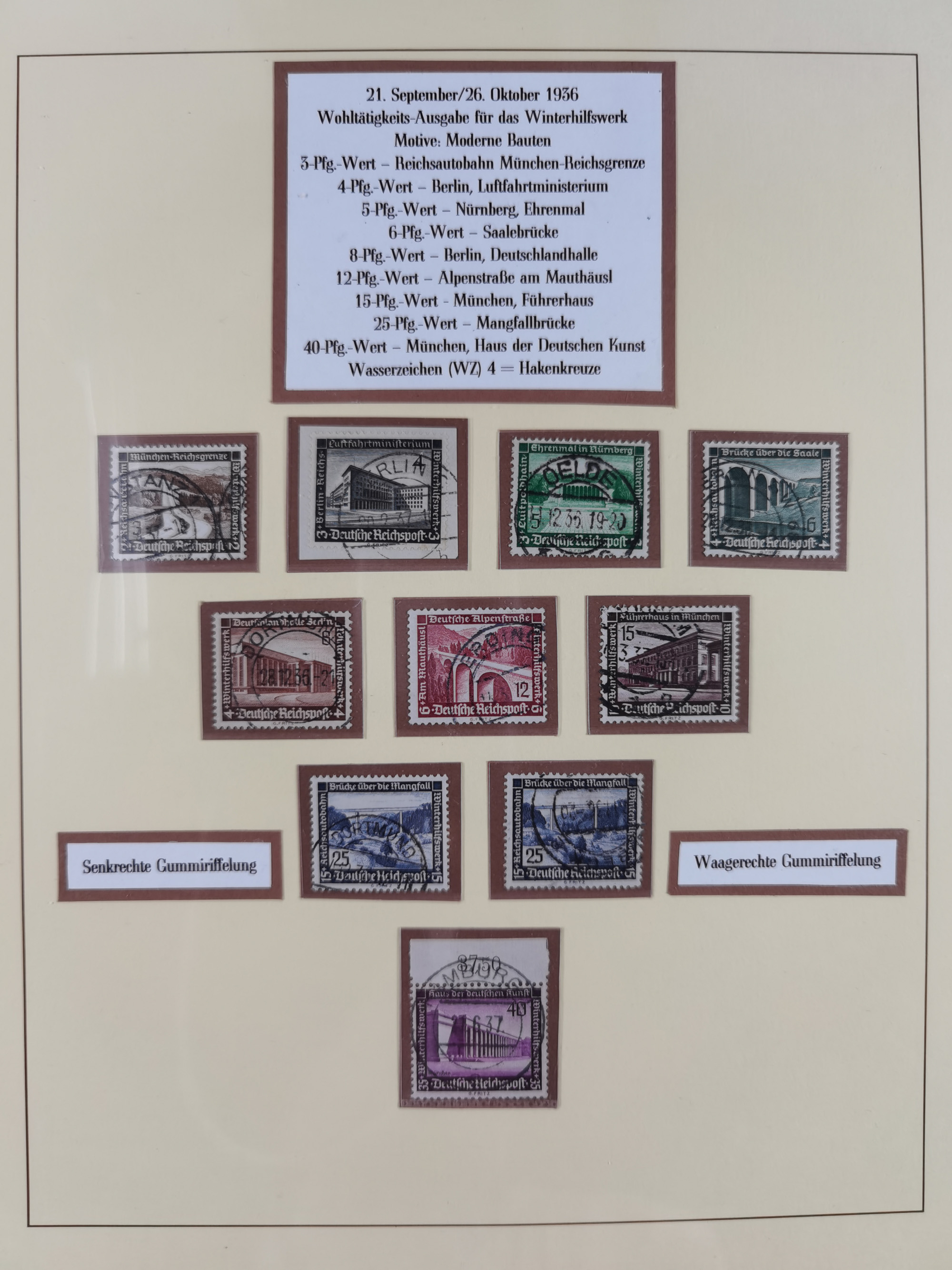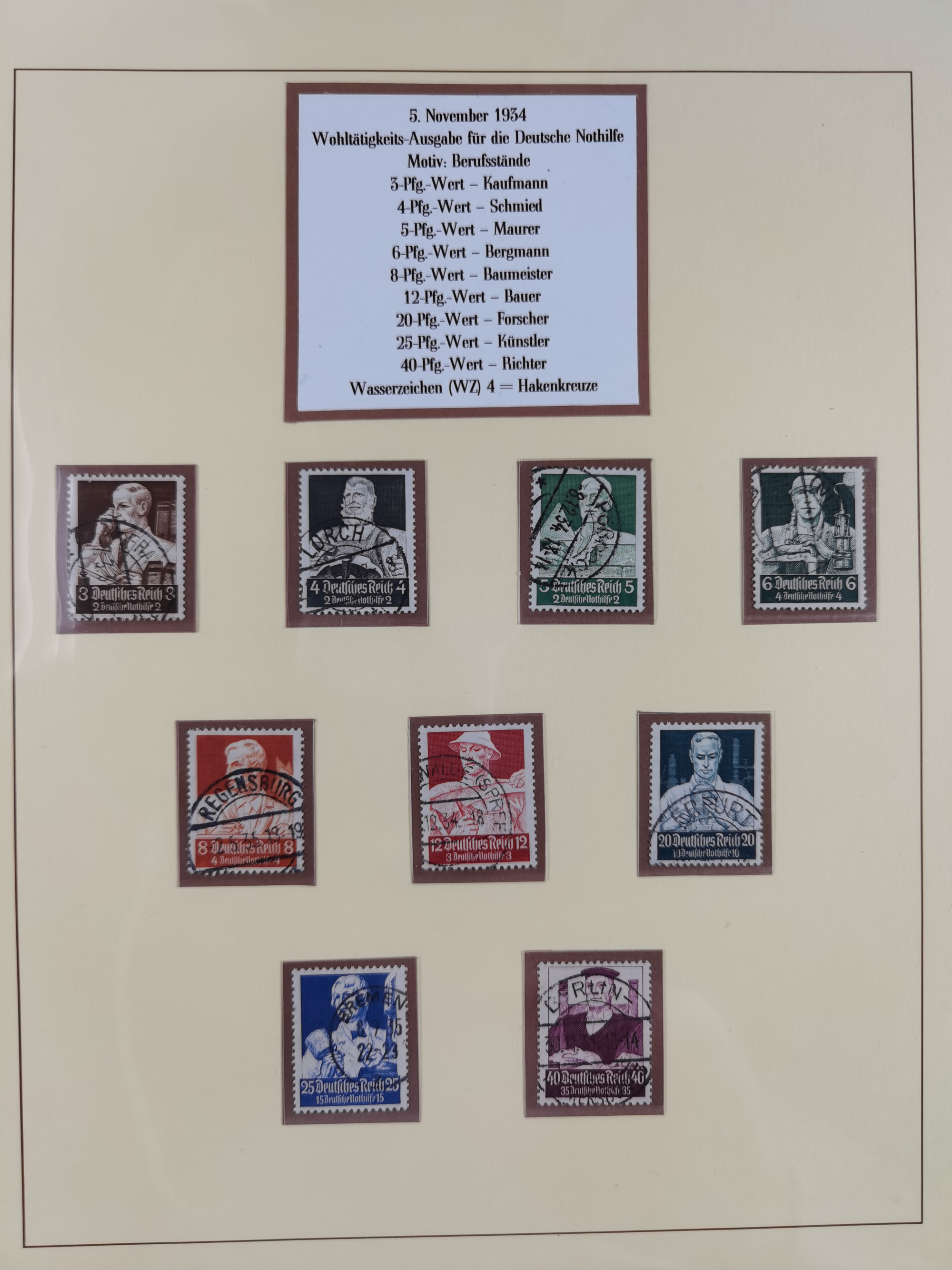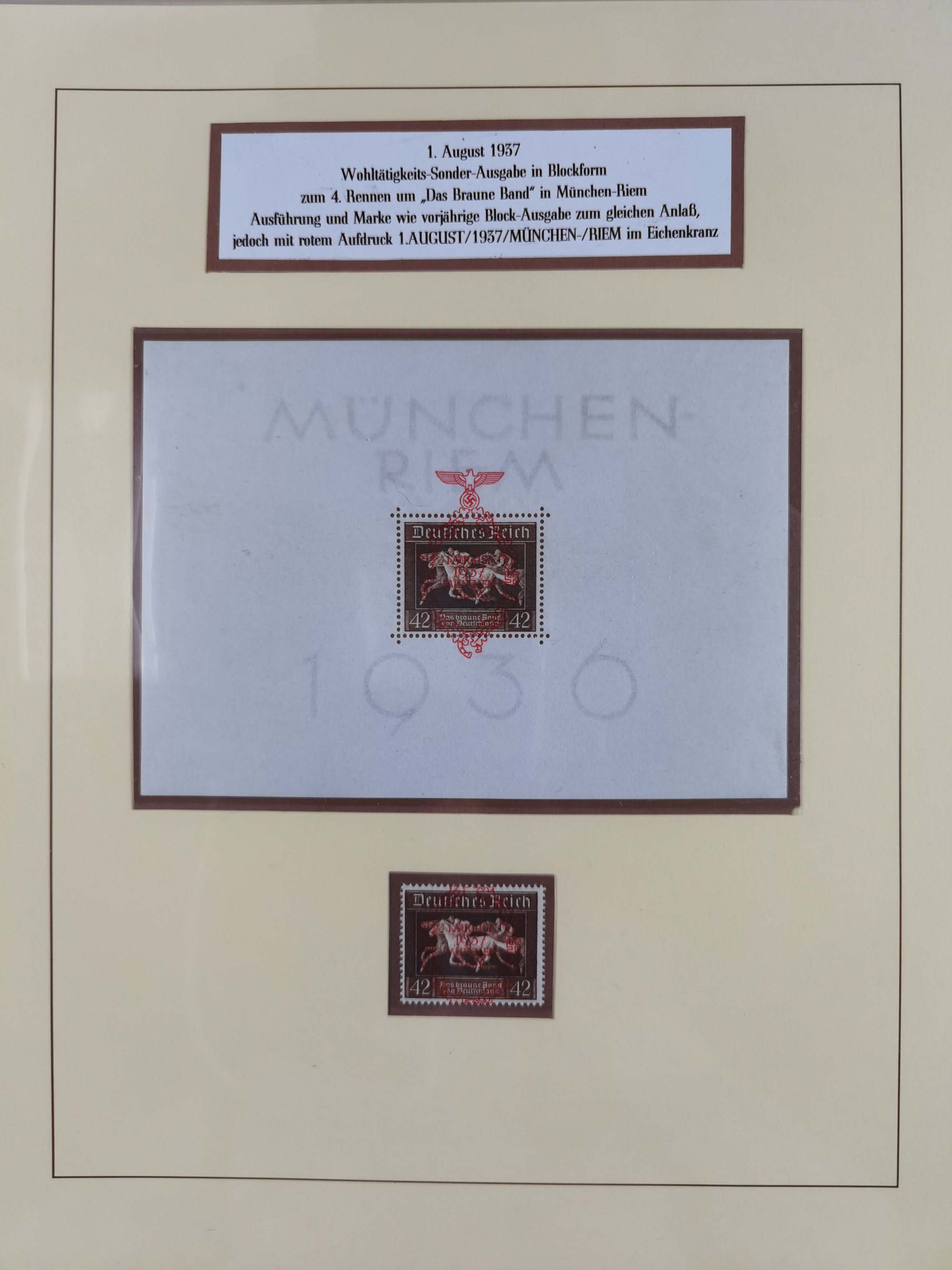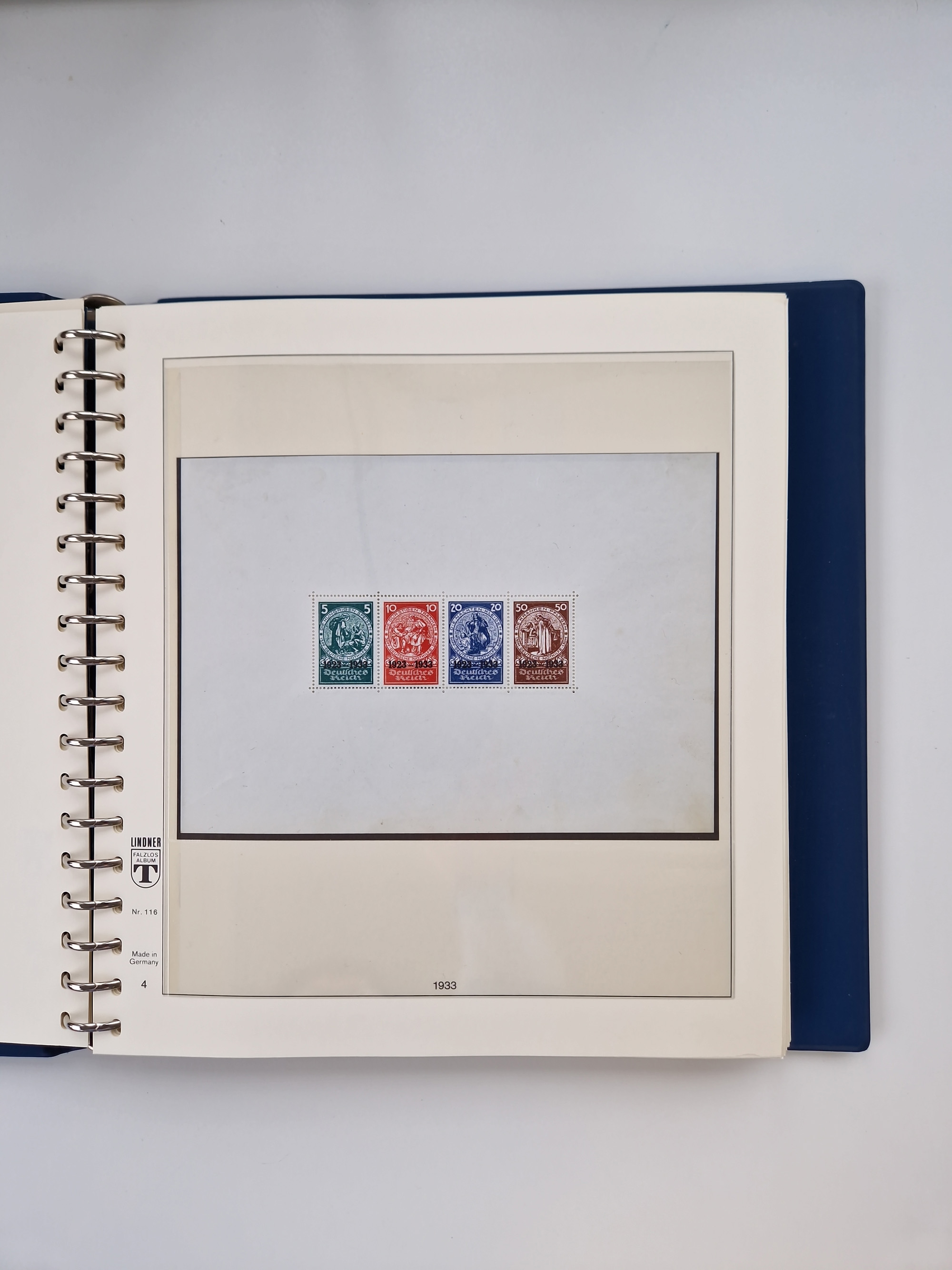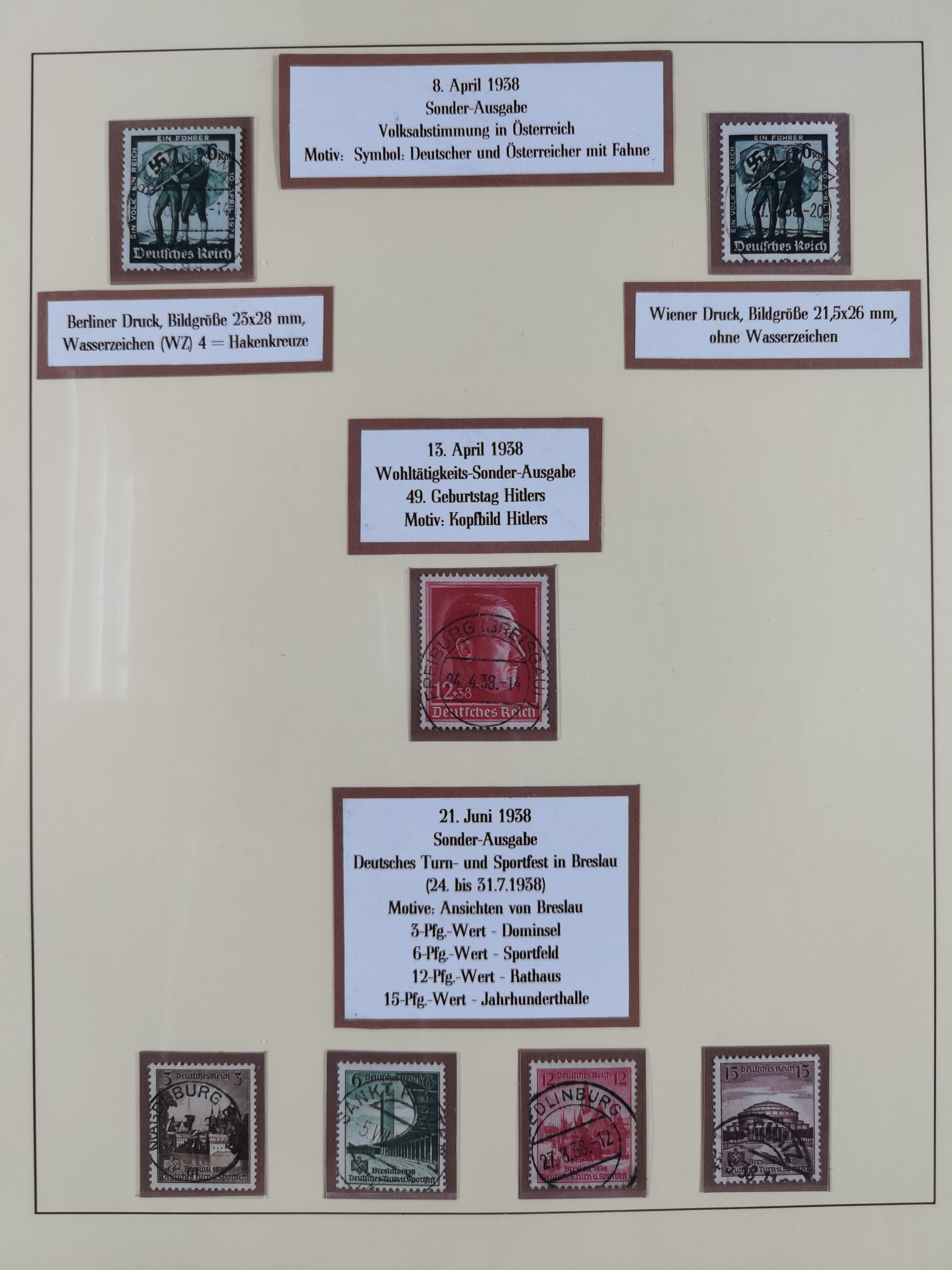 1933/45, meist postfrische Sammlung im Lindner-Falzlosalbum komplett mit vielen Besonderheiten. Mi. 482-495 postfrisch, Höchstwerte sign. A. Schlegel BPP, Mi. 496-98 ungebraucht, Mi. 507 postfrisch, Befund Schlegel BPP, Block 2 postfrisch (1 mm erhöht sign. Schlegel BPP), Mi. 529-539 x und Viererblock 539 y je postfrisch mit Attest Schlegel BPP, Bl. 3 Attest A. Schlegel BPP, Mi. 586 Y ungebraucht, Attest Oechsner BPP, Mi. 587 U ungebraucht, Attest H.-D. Schlegel BPP, Block 6z postfrisch, sign. Schlegel BPP, Mi. 641 x postfrisch, sign. D. Schlegel BPP, Mi. 659 x postfrisch, Befund Oechsner BPP, Mi. 671 x und 672 y sign., Mi. 814 Phasenabzug und Abzug vom Urstempel je postfrisch, viele Plattenfehler wie 909 I und 910 I und II je sign. A. Schlegel BPP.