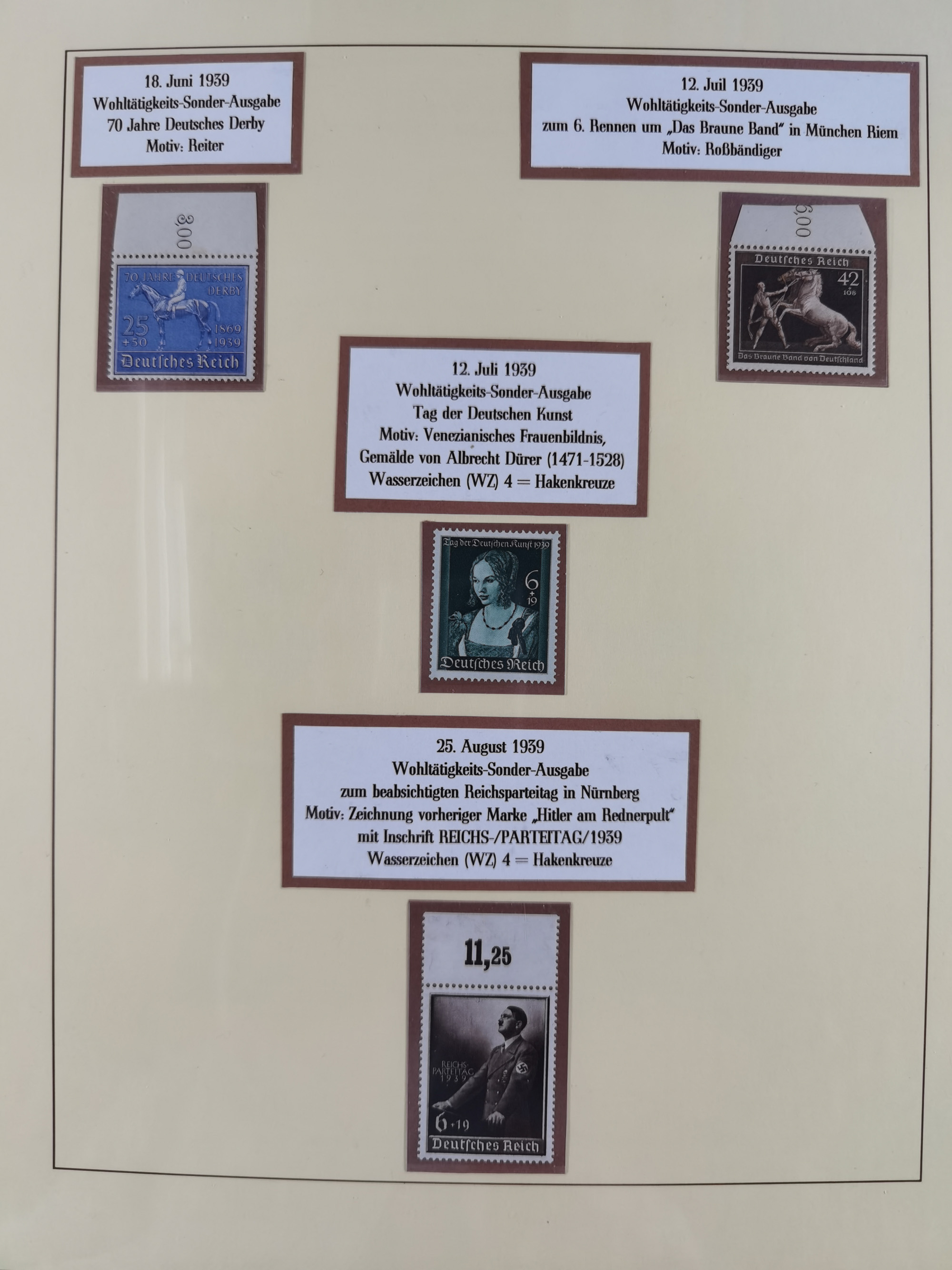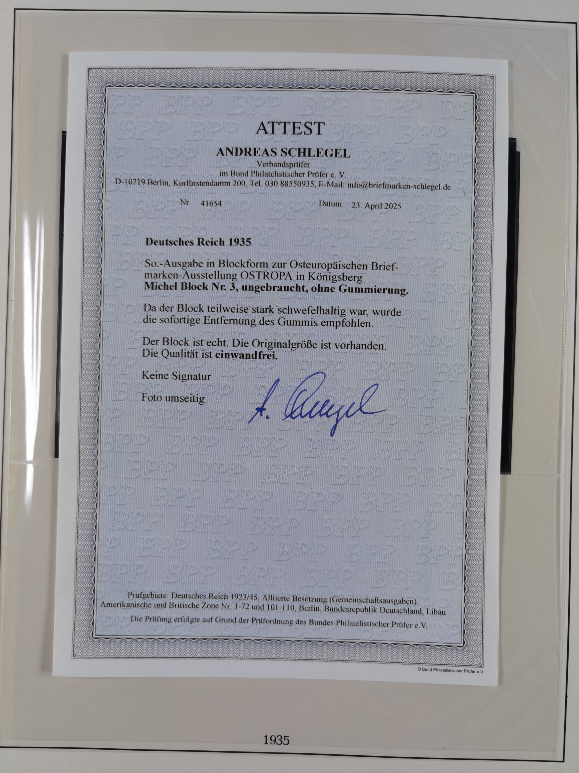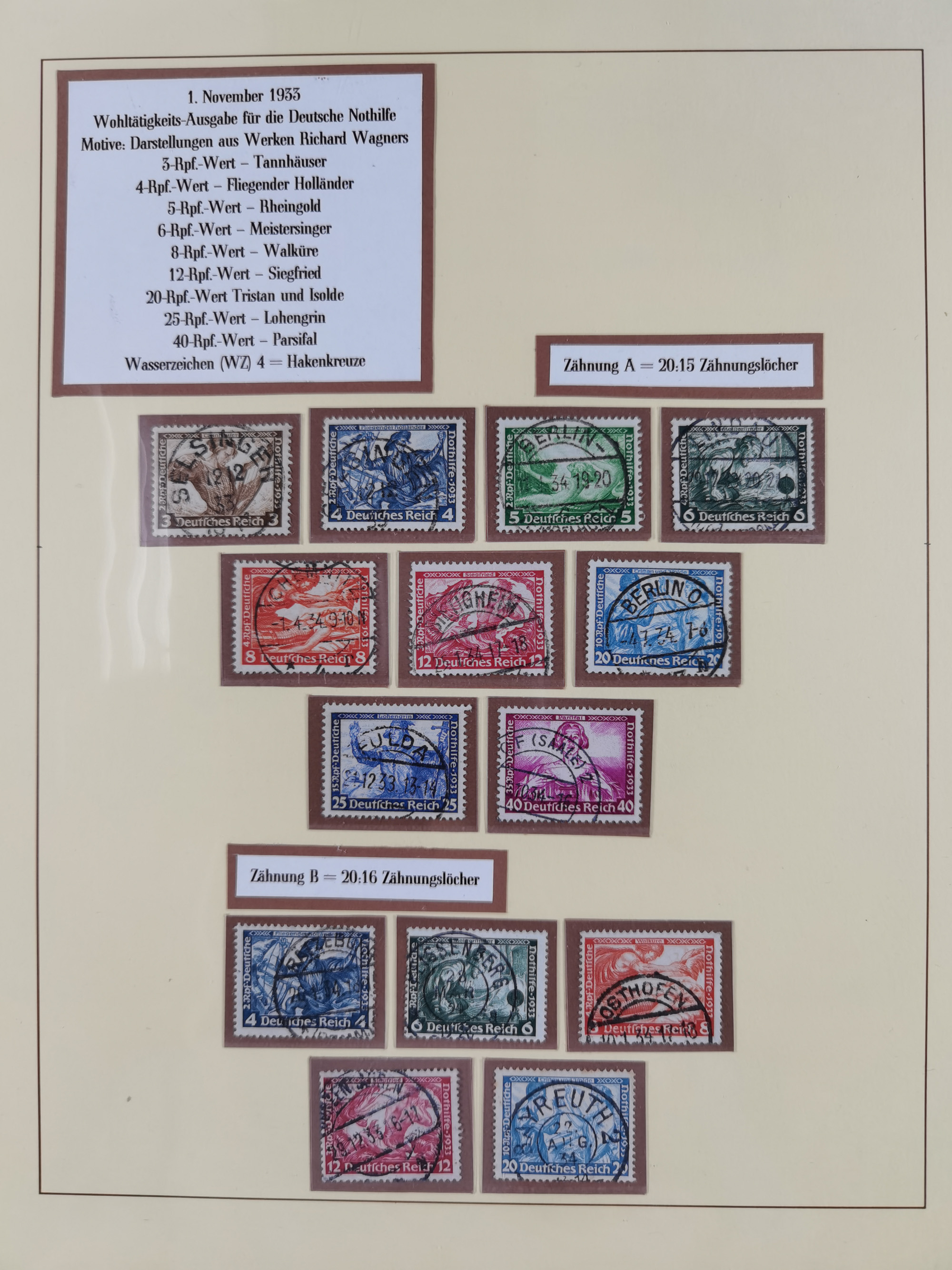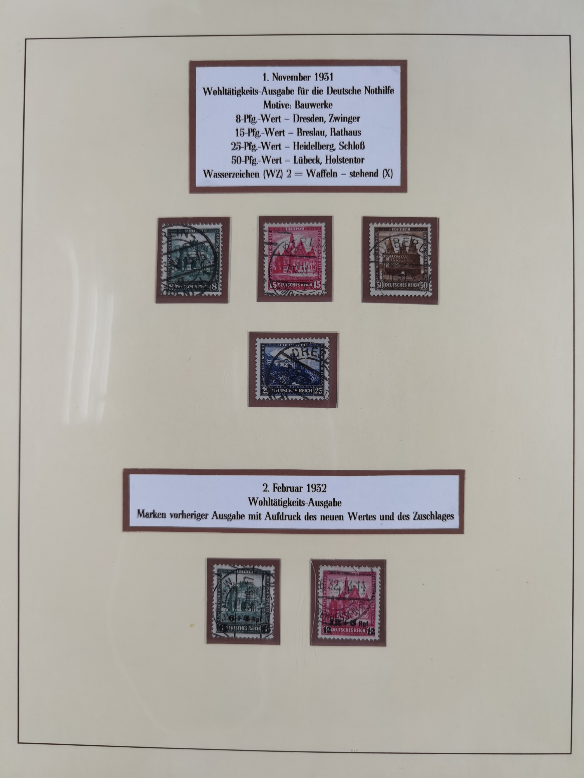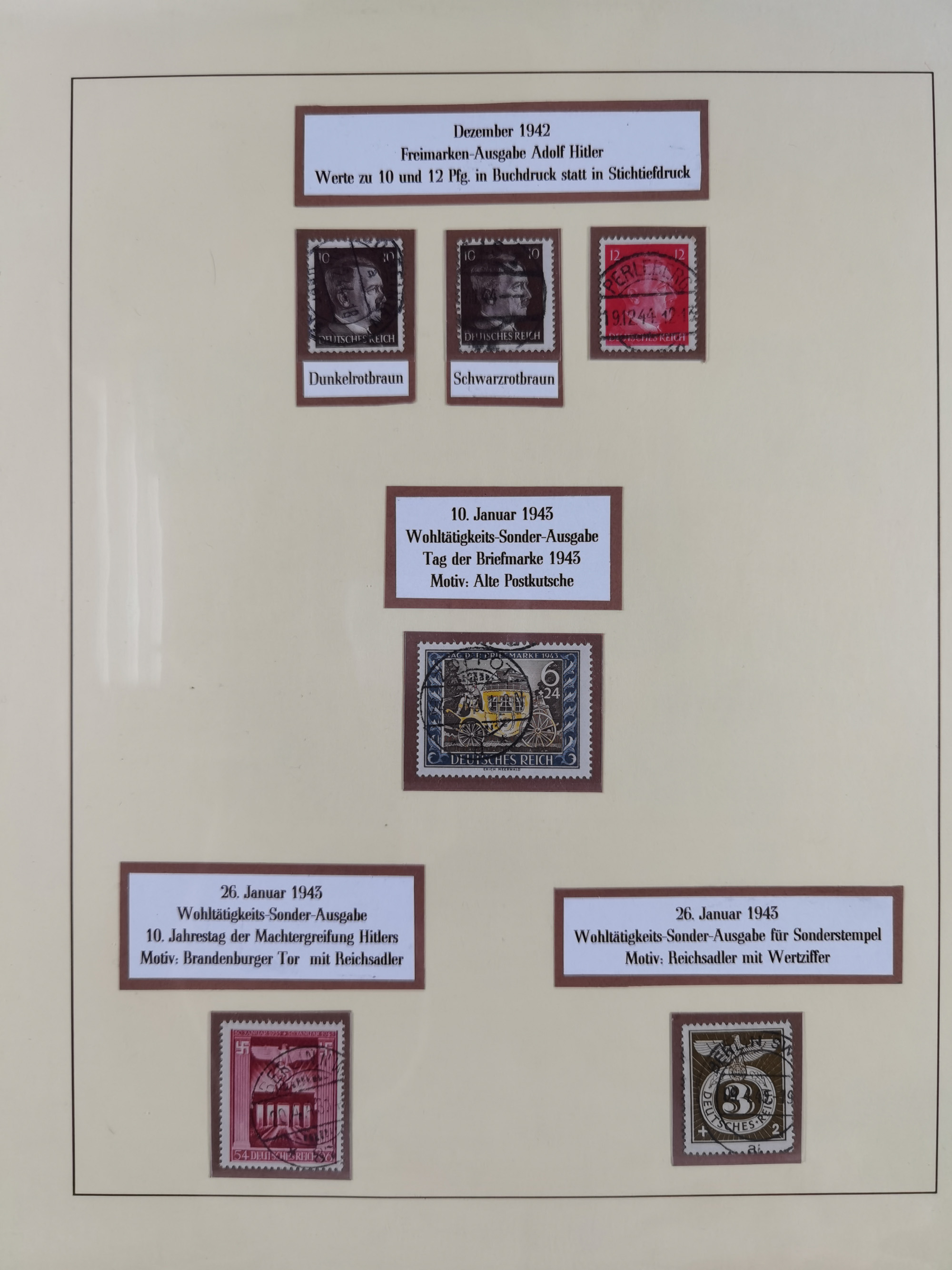 1933/45, meist postfrische Sammlung im Lindner-Falzlosalbum komplett mit vielen Besonderheiten. Mi. 482-495 postfrisch, Höchstwerte sign. A. Schlegel BPP, Mi. 496-98 ungebraucht, Mi. 507 postfrisch, Befund Schlegel BPP, Block 2 postfrisch (1 mm erhöht sign. Schlegel BPP), Mi. 529-539 x und Viererblock 539 y je postfrisch mit Attest Schlegel BPP, Bl. 3 Attest A. Schlegel BPP, Mi. 586 Y ungebraucht, Attest Oechsner BPP, Mi. 587 U ungebraucht, Attest H.-D. Schlegel BPP, Block 6z postfrisch, sign. Schlegel BPP, Mi. 641 x postfrisch, sign. D. Schlegel BPP, Mi. 659 x postfrisch, Befund Oechsner BPP, Mi. 671 x und 672 y sign., Mi. 814 Phasenabzug und Abzug vom Urstempel je postfrisch, viele Plattenfehler wie 909 I und 910 I und II je sign. A. Schlegel BPP.
