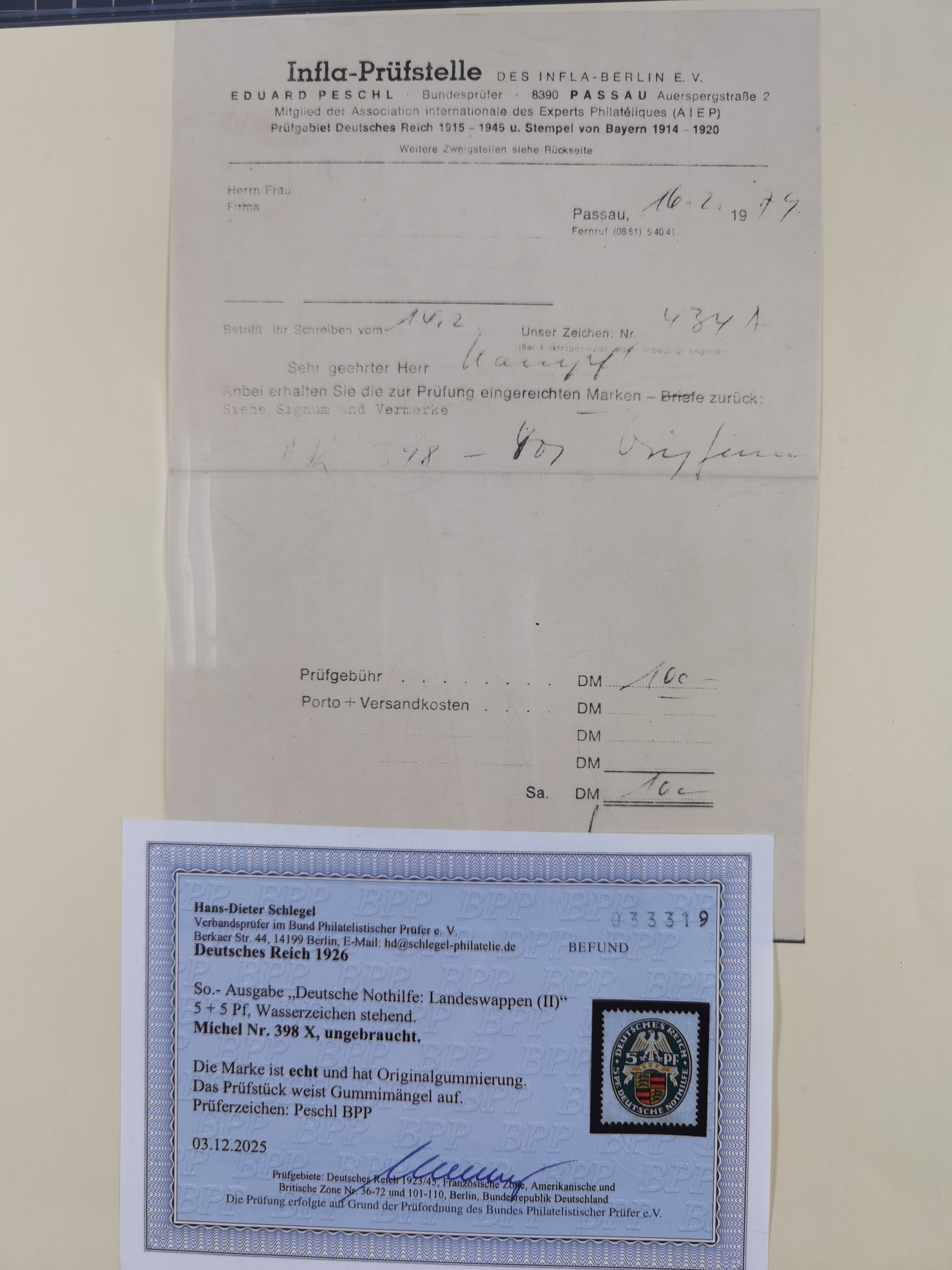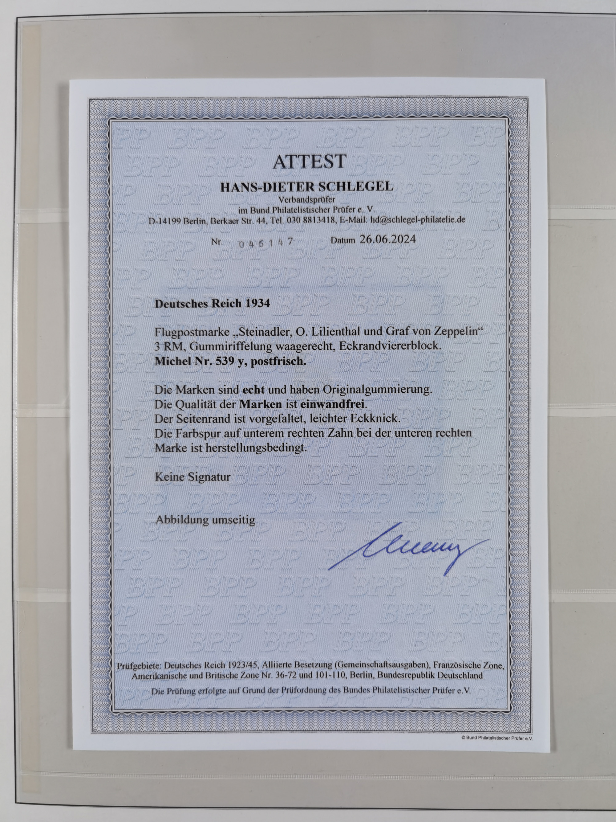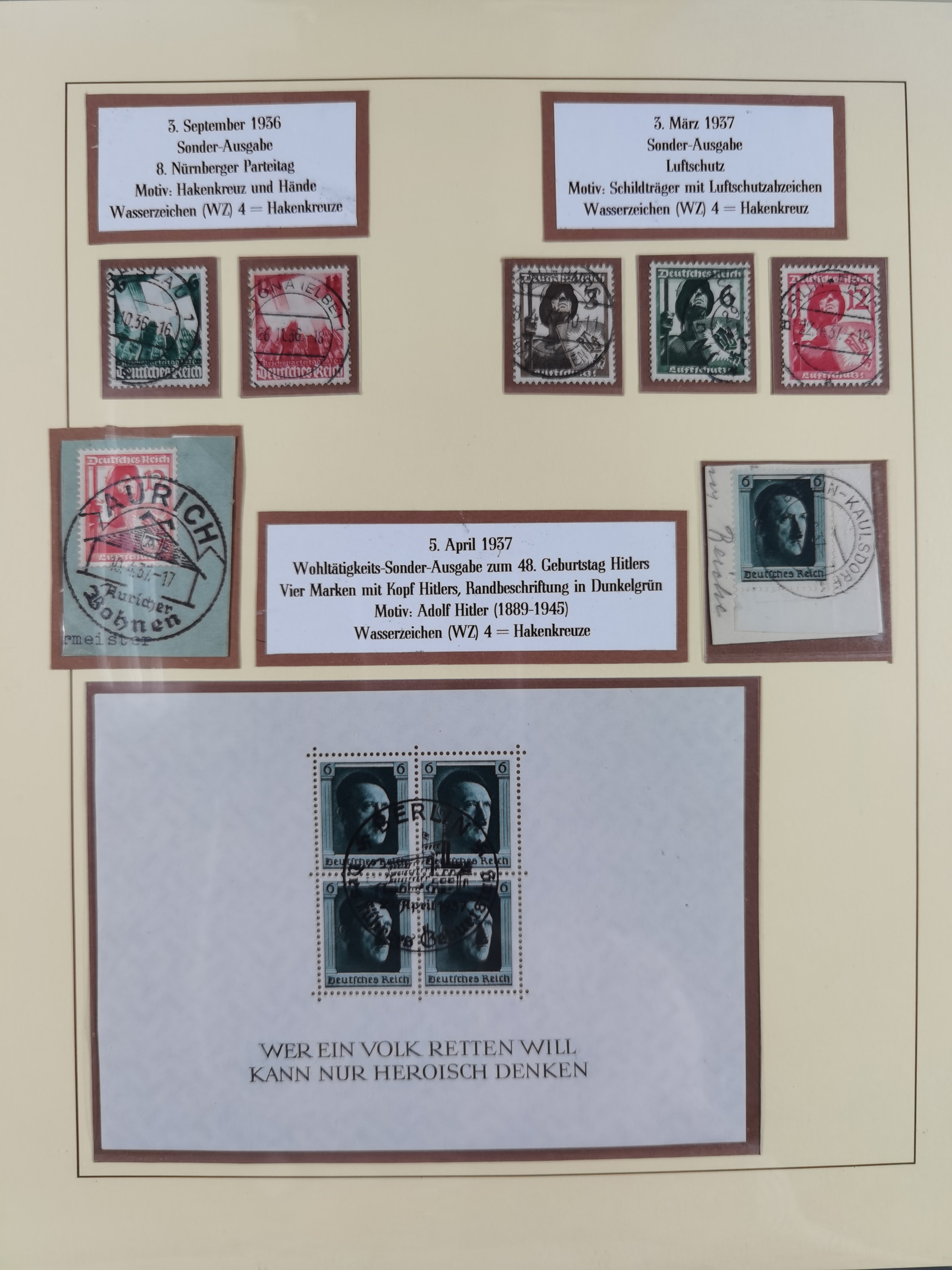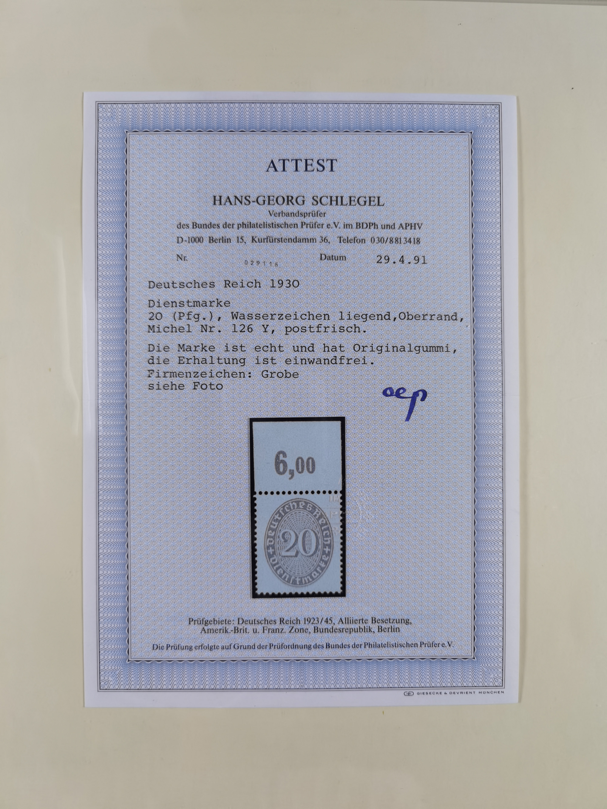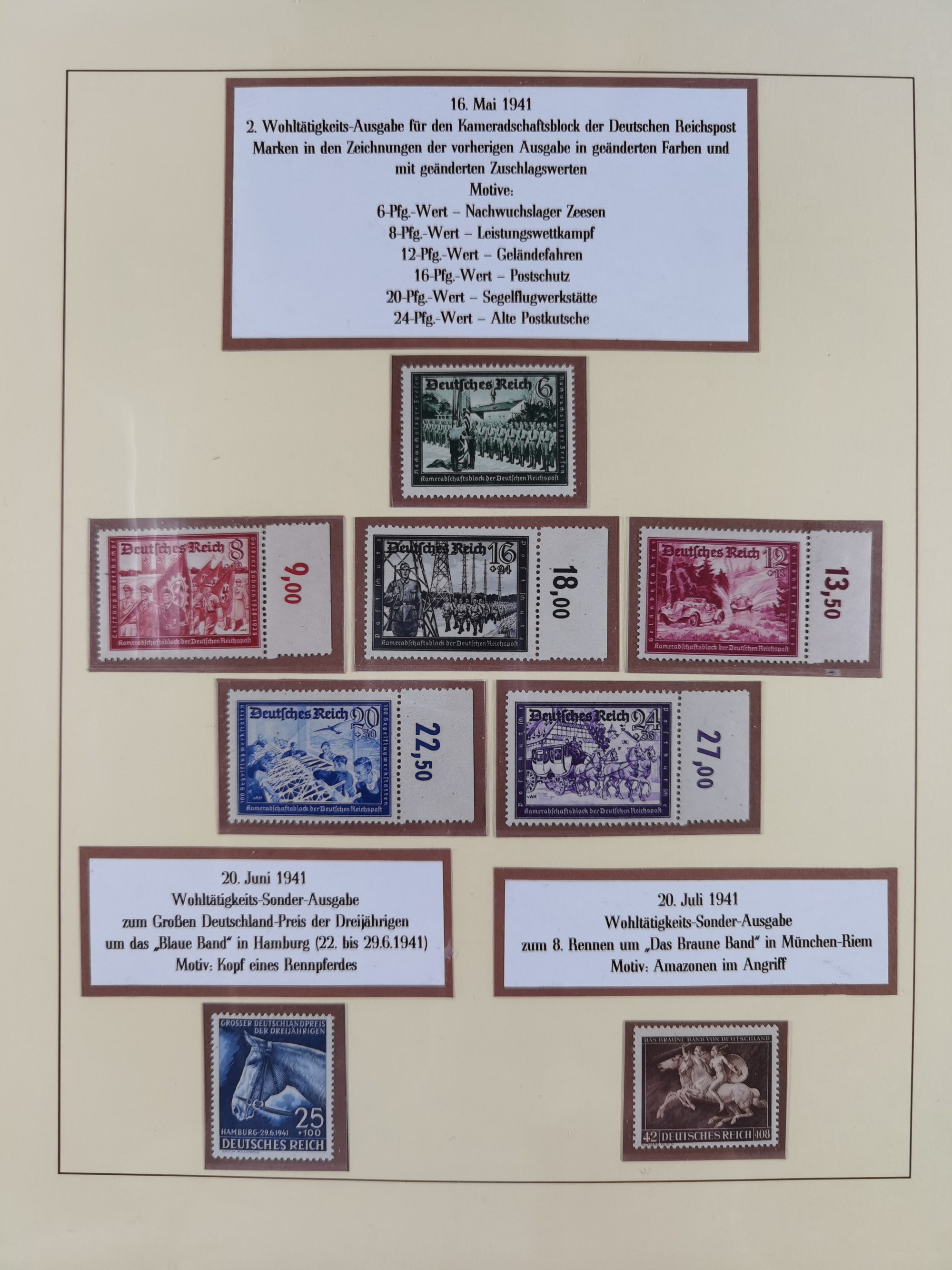 1933/45, meist postfrische Sammlung im Lindner-Falzlosalbum komplett mit vielen Besonderheiten. Mi. 482-495 postfrisch, Höchstwerte sign. A. Schlegel BPP, Mi. 496-98 ungebraucht, Mi. 507 postfrisch, Befund Schlegel BPP, Block 2 postfrisch (1 mm erhöht sign. Schlegel BPP), Mi. 529-539 x und Viererblock 539 y je postfrisch mit Attest Schlegel BPP, Bl. 3 Attest A. Schlegel BPP, Mi. 586 Y ungebraucht, Attest Oechsner BPP, Mi. 587 U ungebraucht, Attest H.-D. Schlegel BPP, Block 6z postfrisch, sign. Schlegel BPP, Mi. 641 x postfrisch, sign. D. Schlegel BPP, Mi. 659 x postfrisch, Befund Oechsner BPP, Mi. 671 x und 672 y sign., Mi. 814 Phasenabzug und Abzug vom Urstempel je postfrisch, viele Plattenfehler wie 909 I und 910 I und II je sign. A. Schlegel BPP.