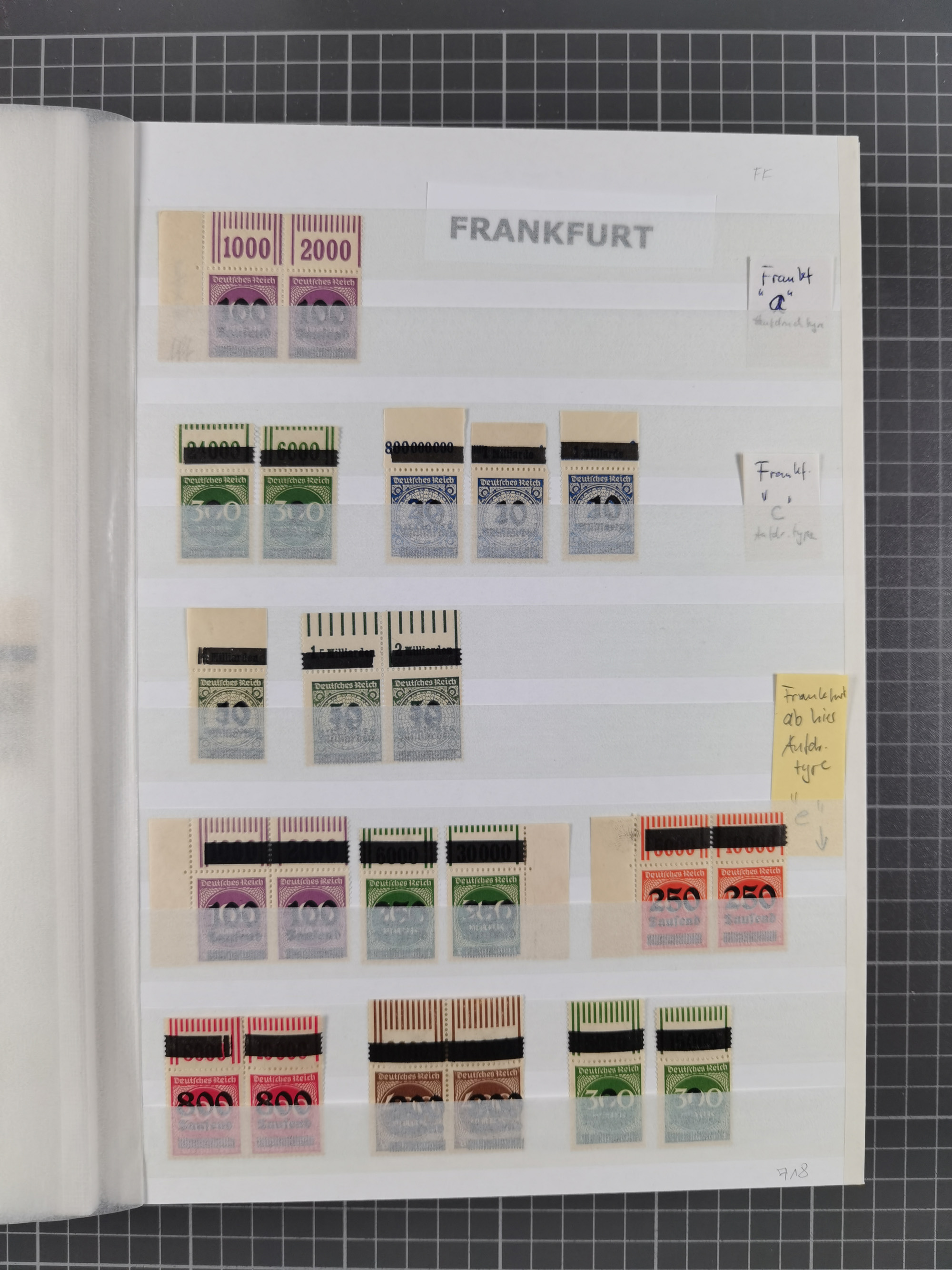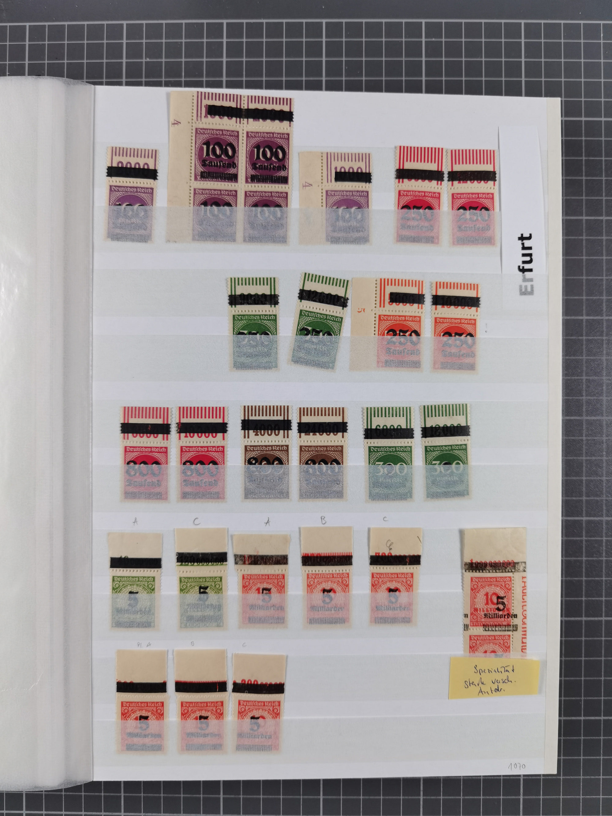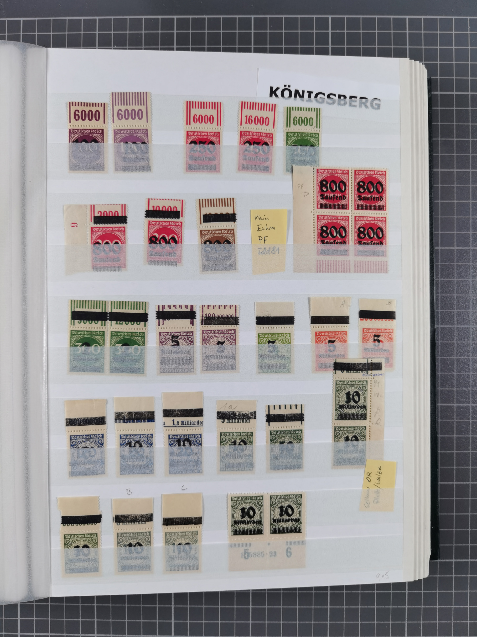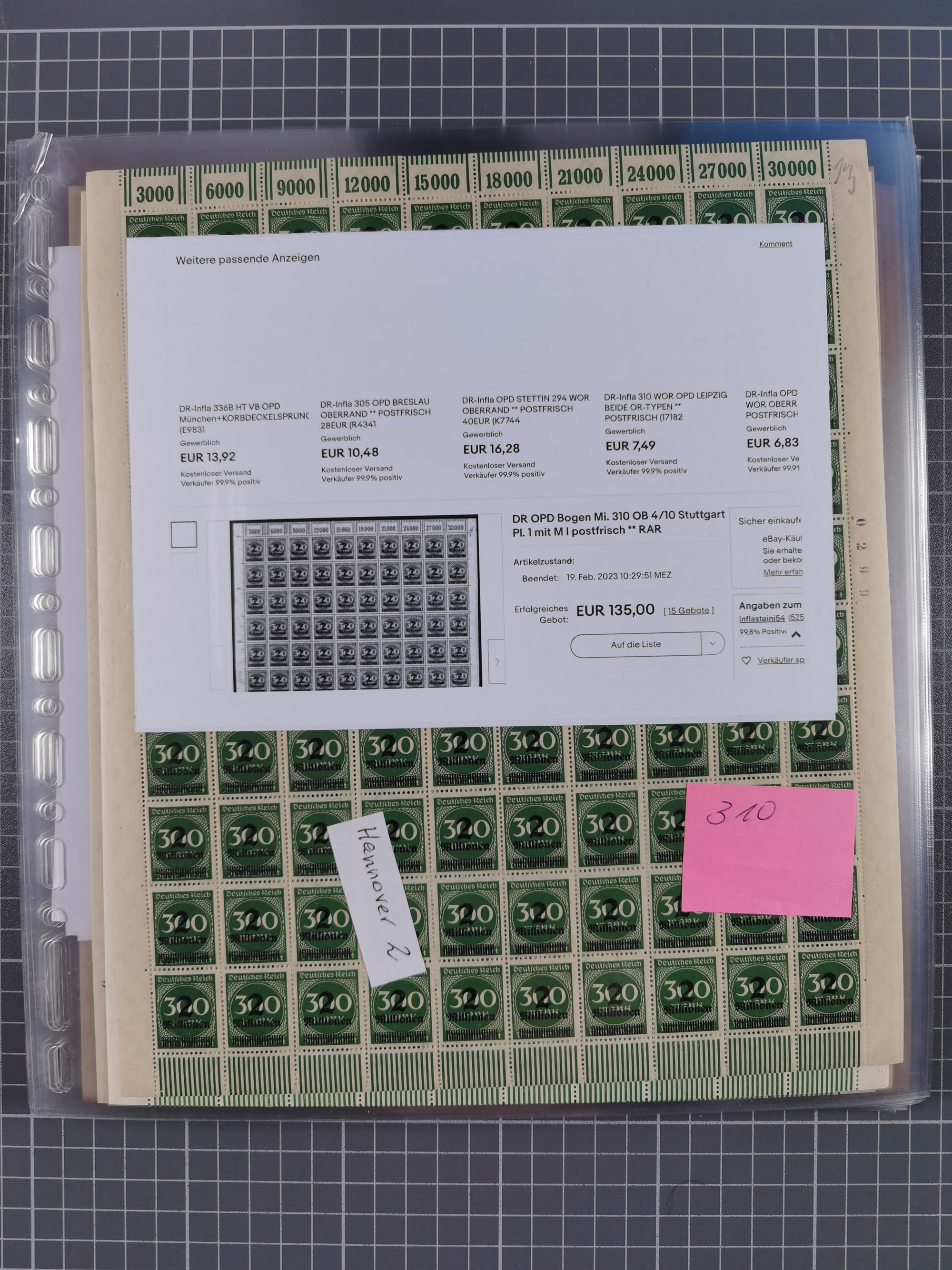 1923, OPD-Bogen, Sammlung von rund 70 Stück, einige mehrfach, dabei u. A. 333AW (Frankfurt) und 335B (Breslau und Stuttgart). Teils übliche kleine Mängel, jedoch insgesamt sehr sauber, meist einzeln in Kunststoffhüllen