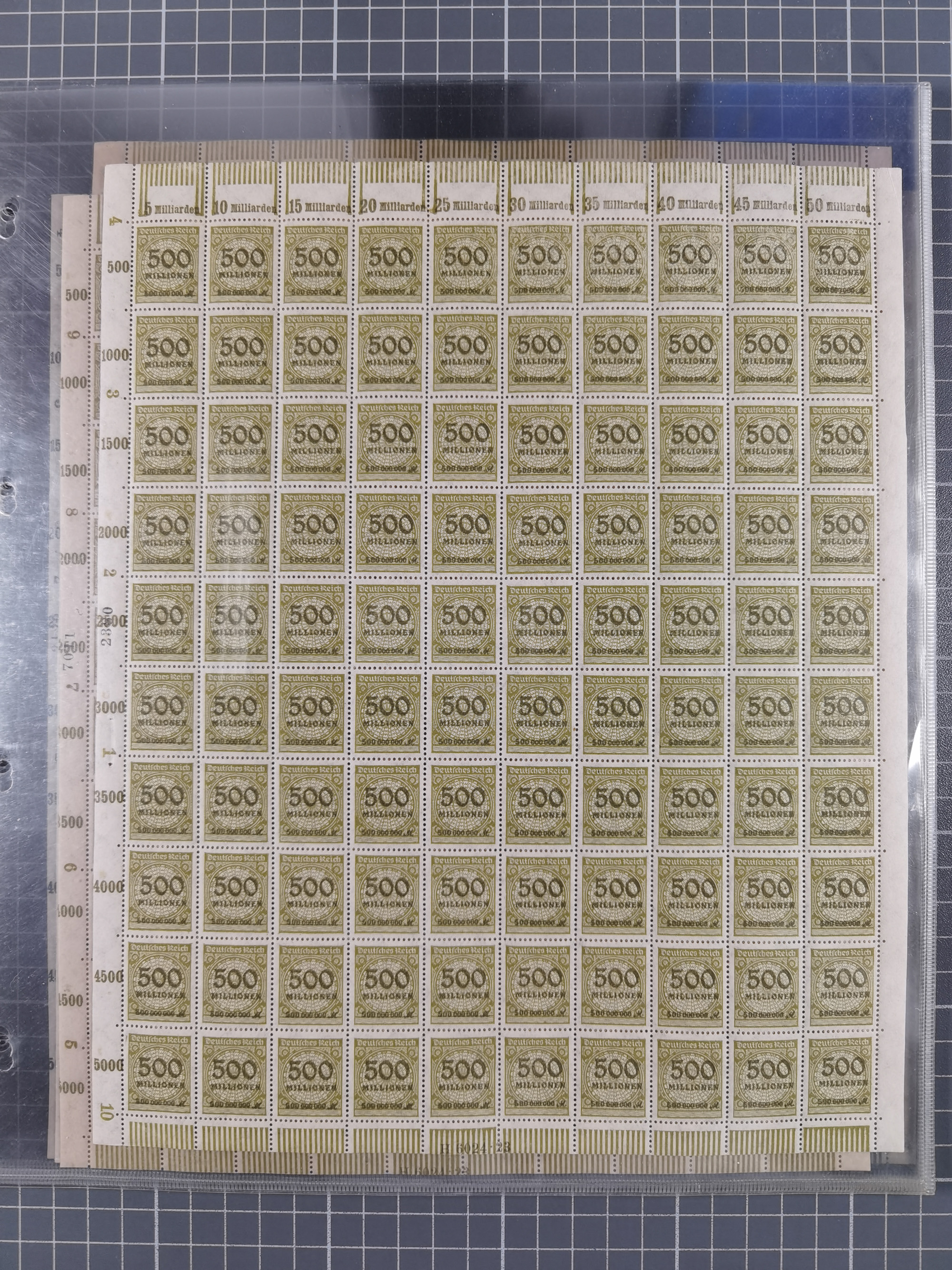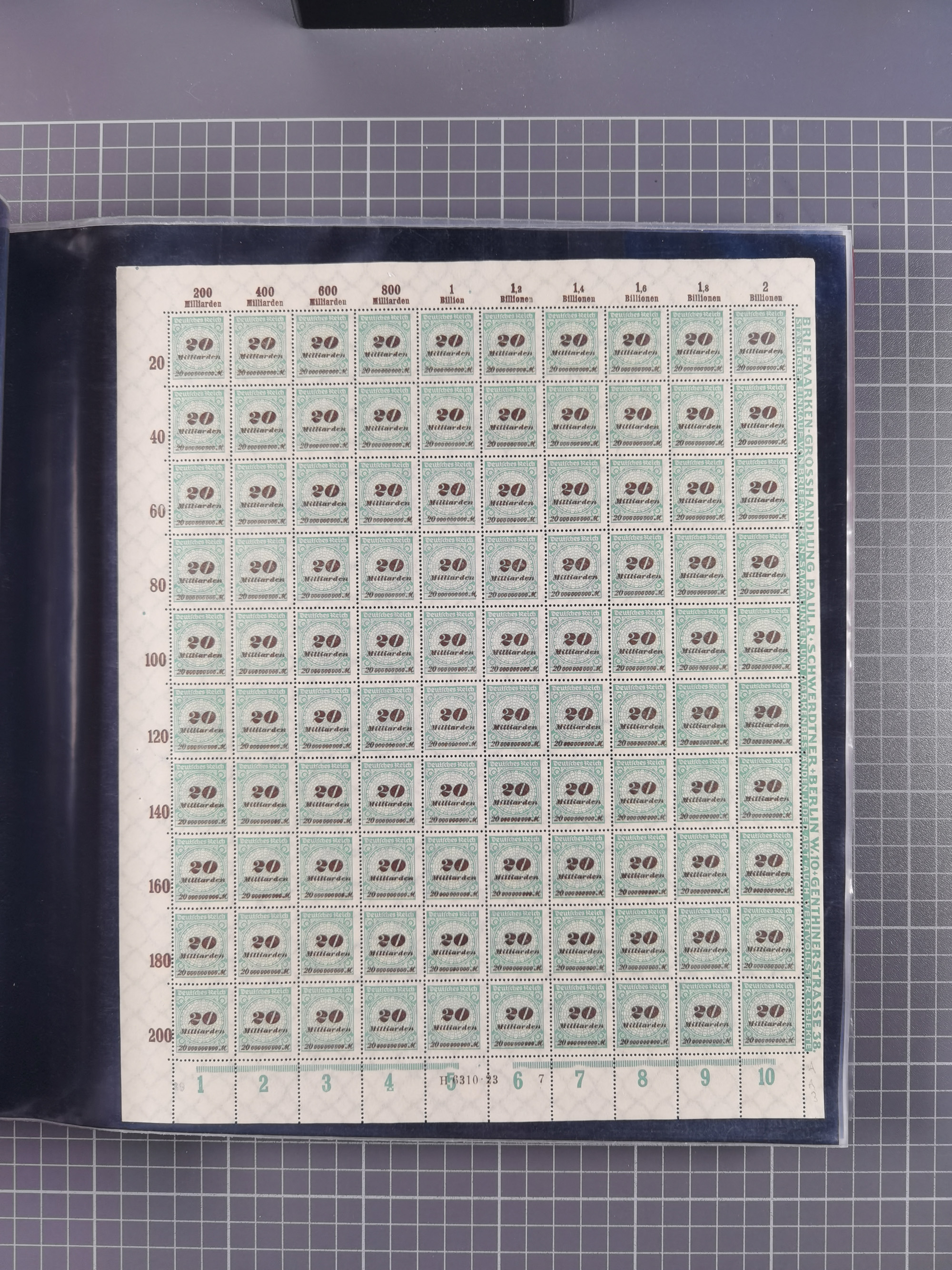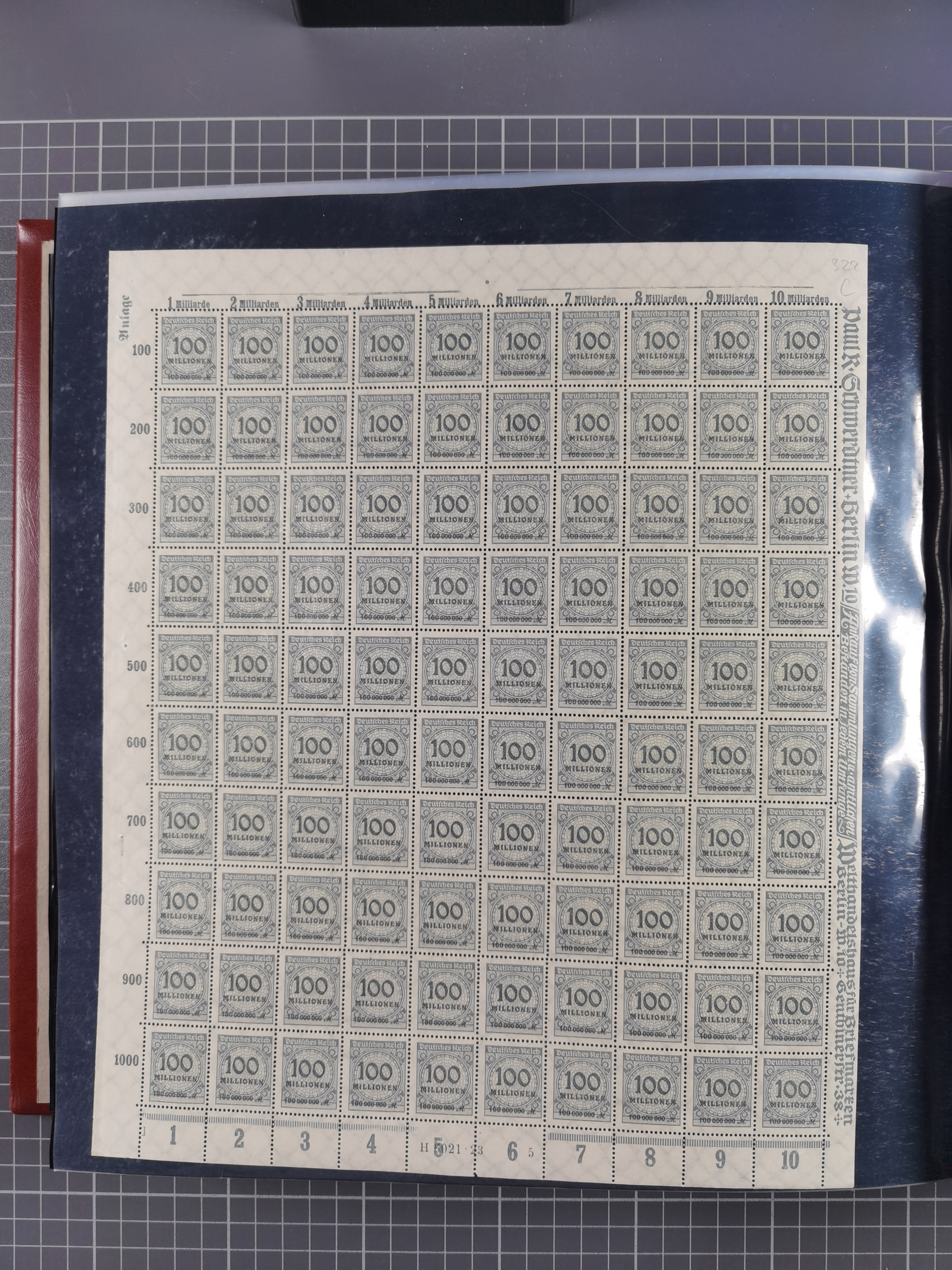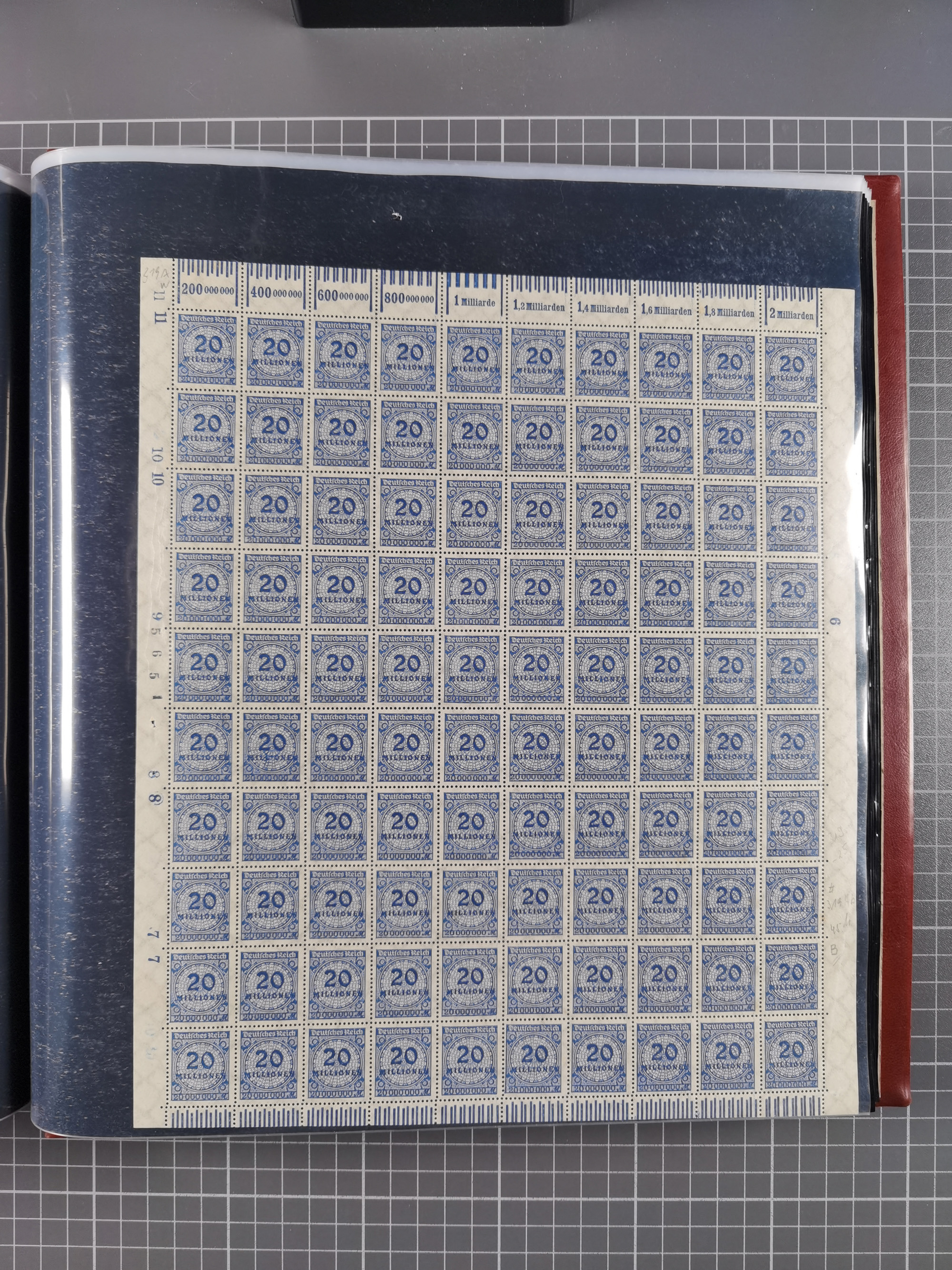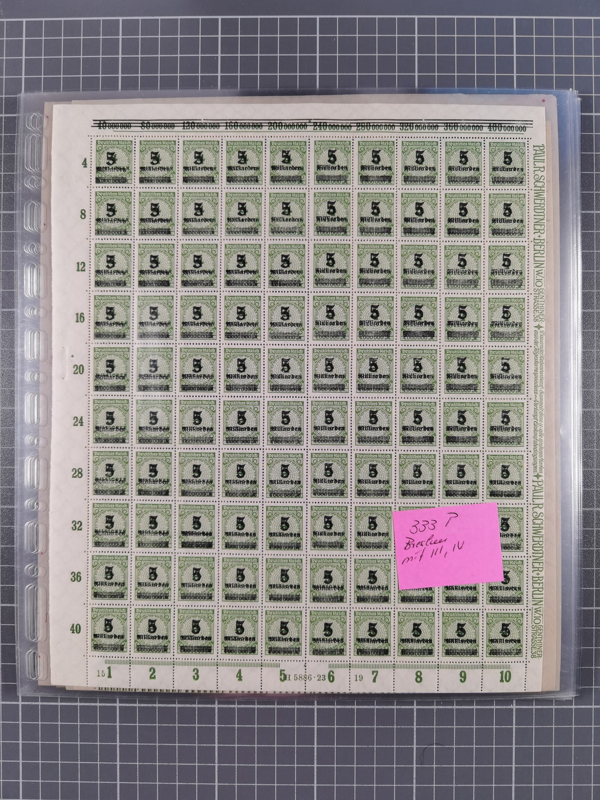 1923, meist postfrische Sammlung mit ca. 200 Bogen ex Mi.-Nr. 313-30, dabei u.a. Mi.-Nr. 330A (4) und 330B (3), gute Erhaltung, teils übliche Einschränkungen, in zwei Alben