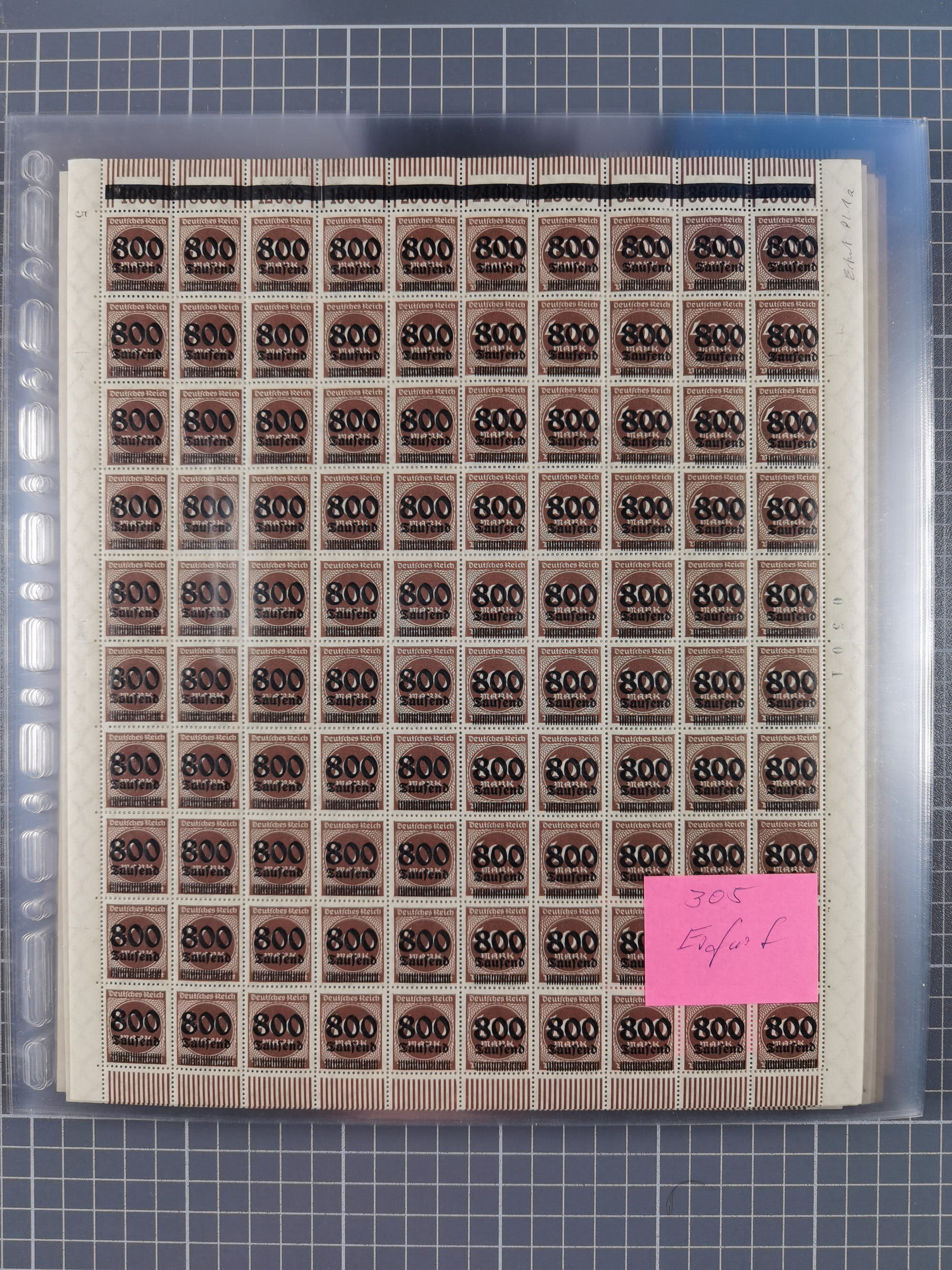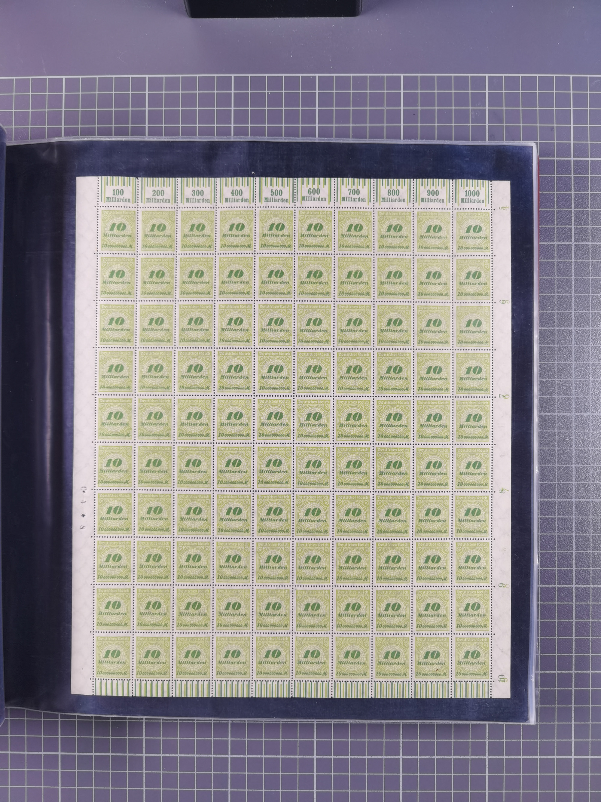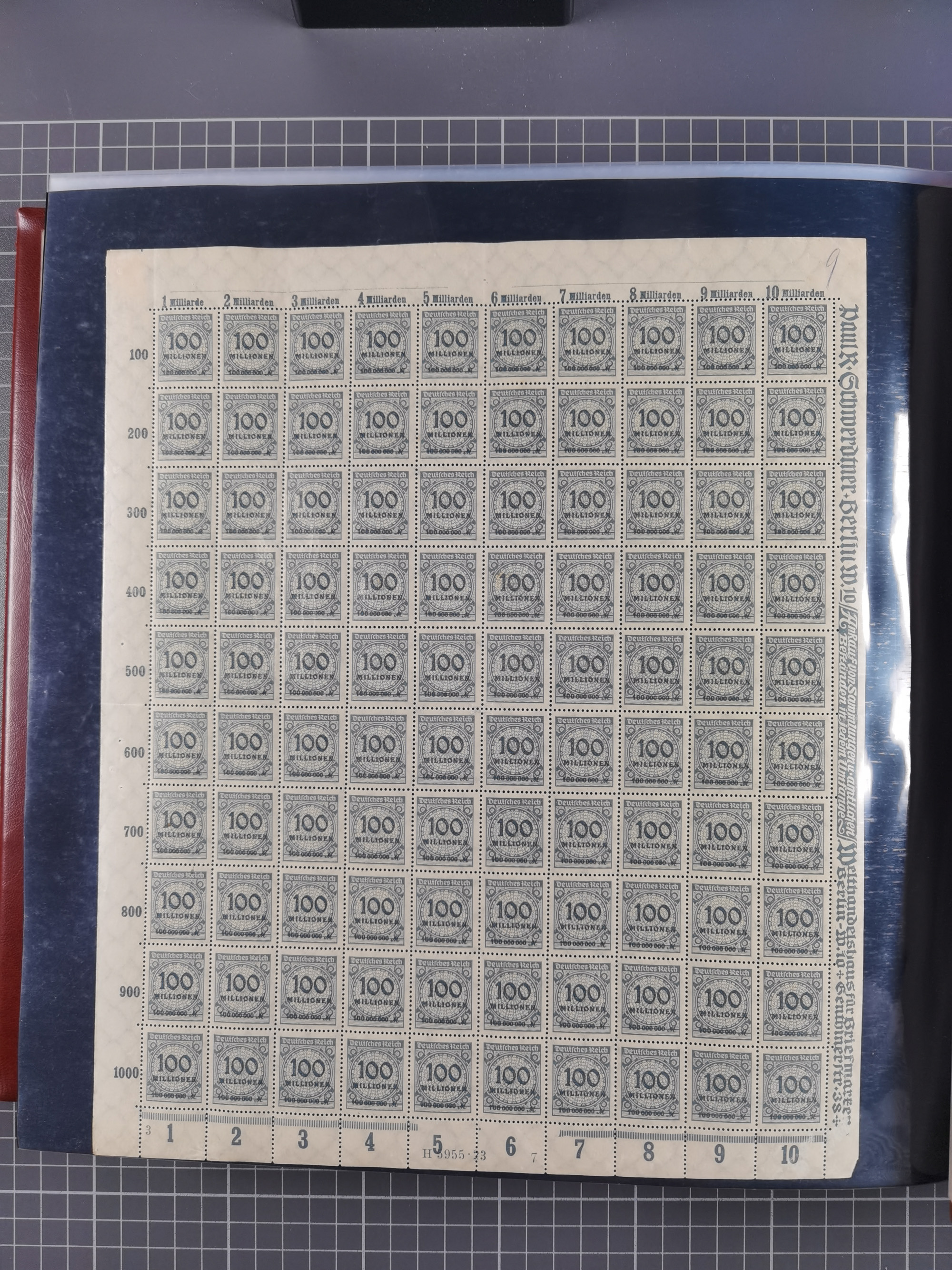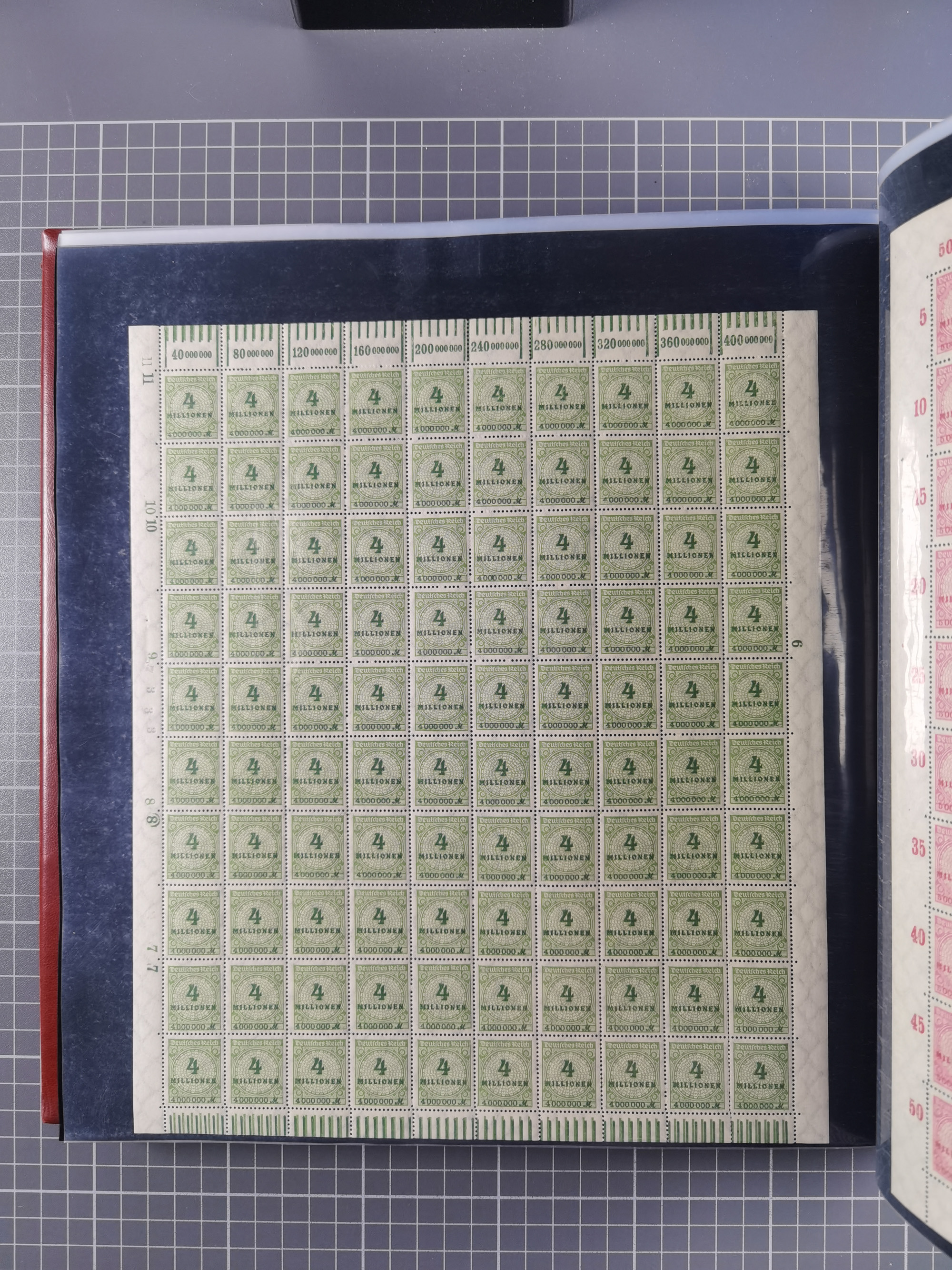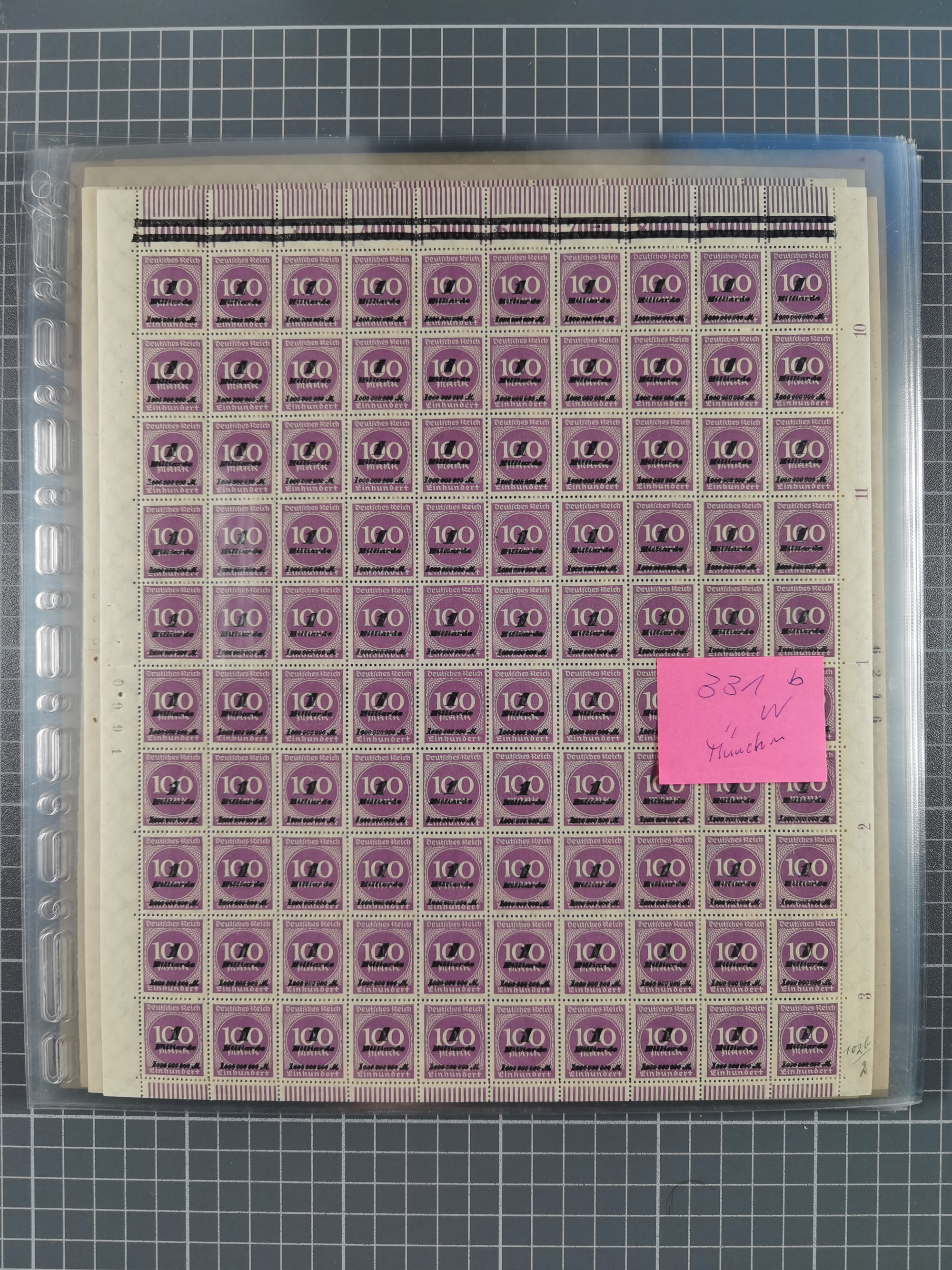 1923, meist postfrische Sammlung mit ca. 200 Bogen ex Mi.-Nr. 313-30, dabei u.a. Mi.-Nr. 330A (4) und 330B (3), gute Erhaltung, teils übliche Einschränkungen, in zwei Alben