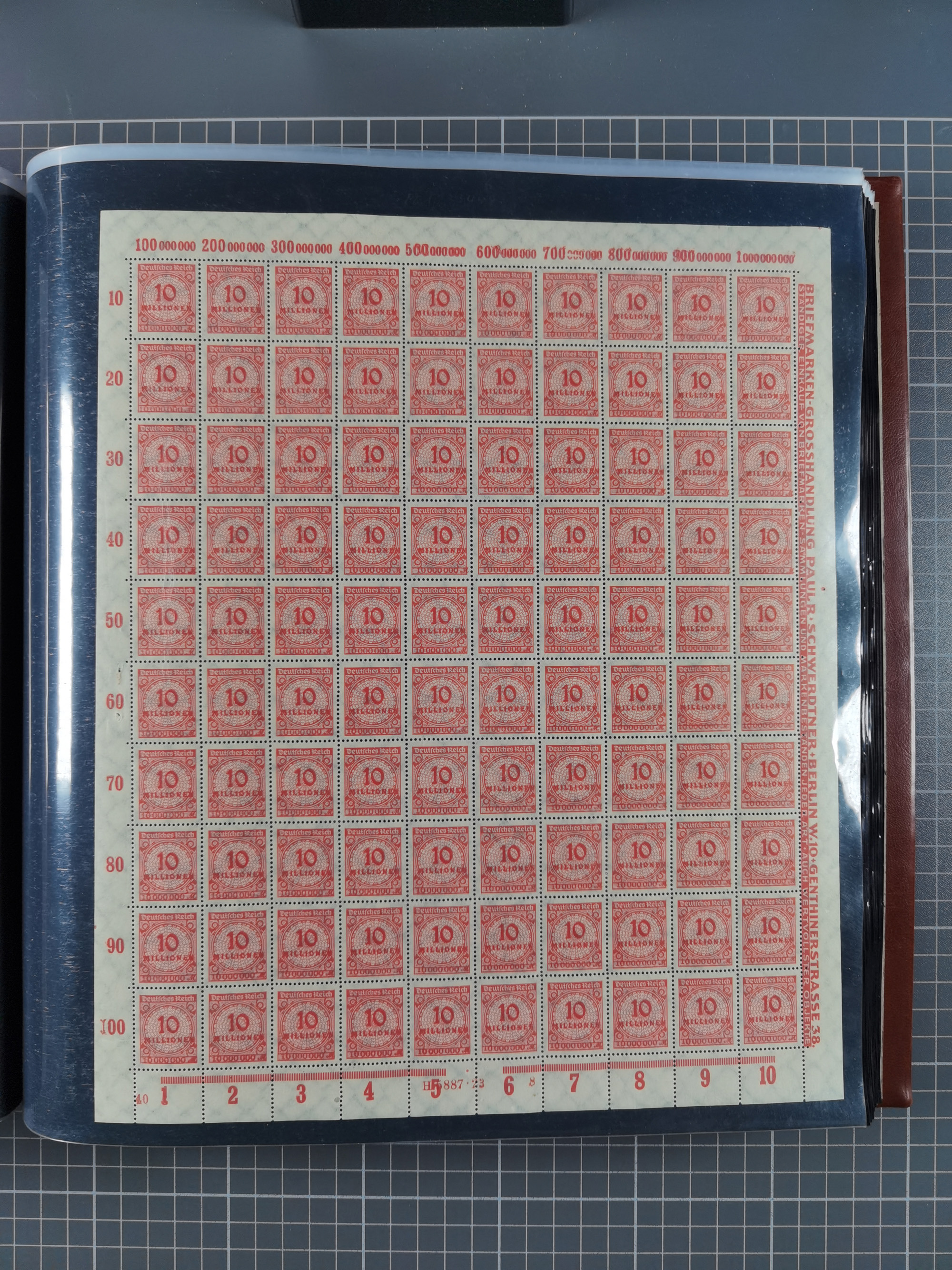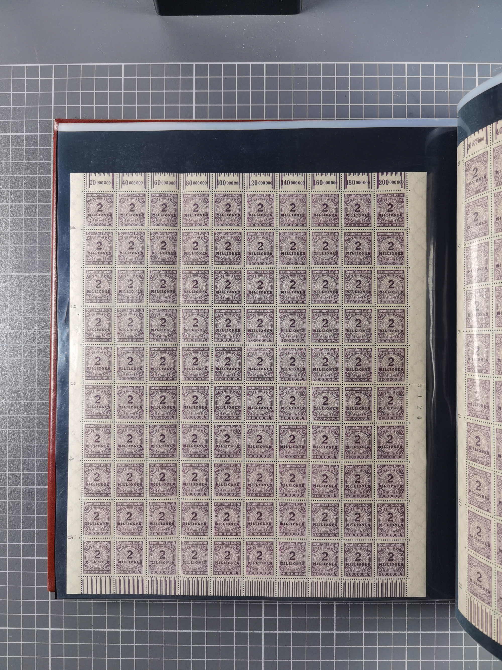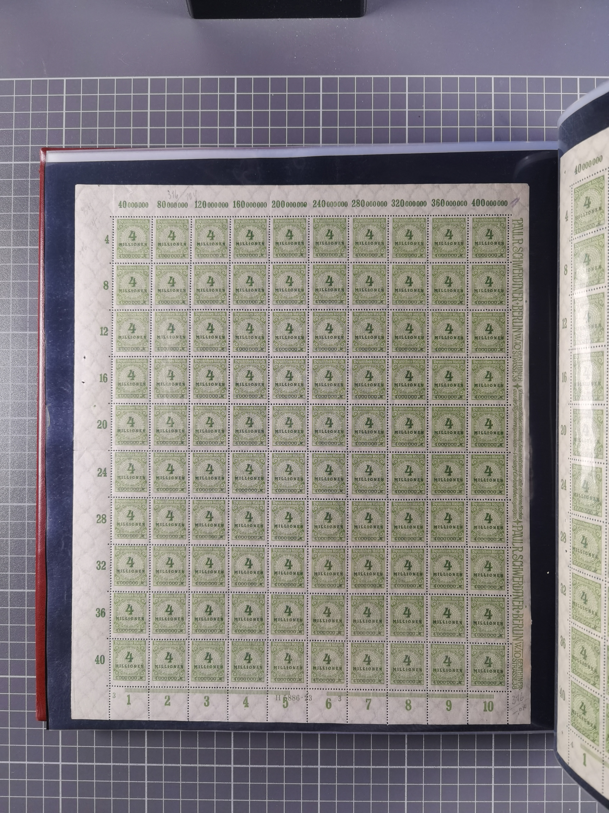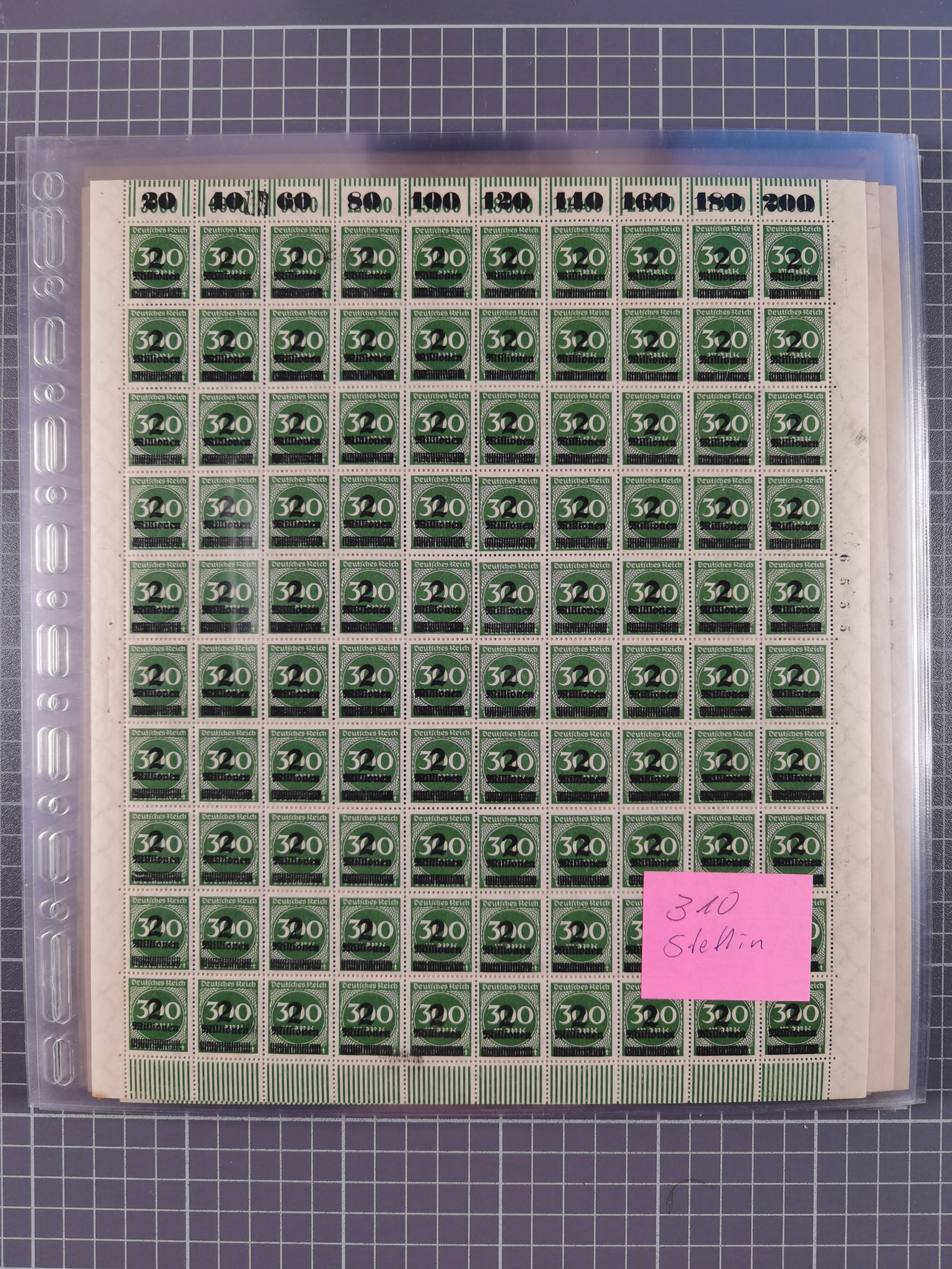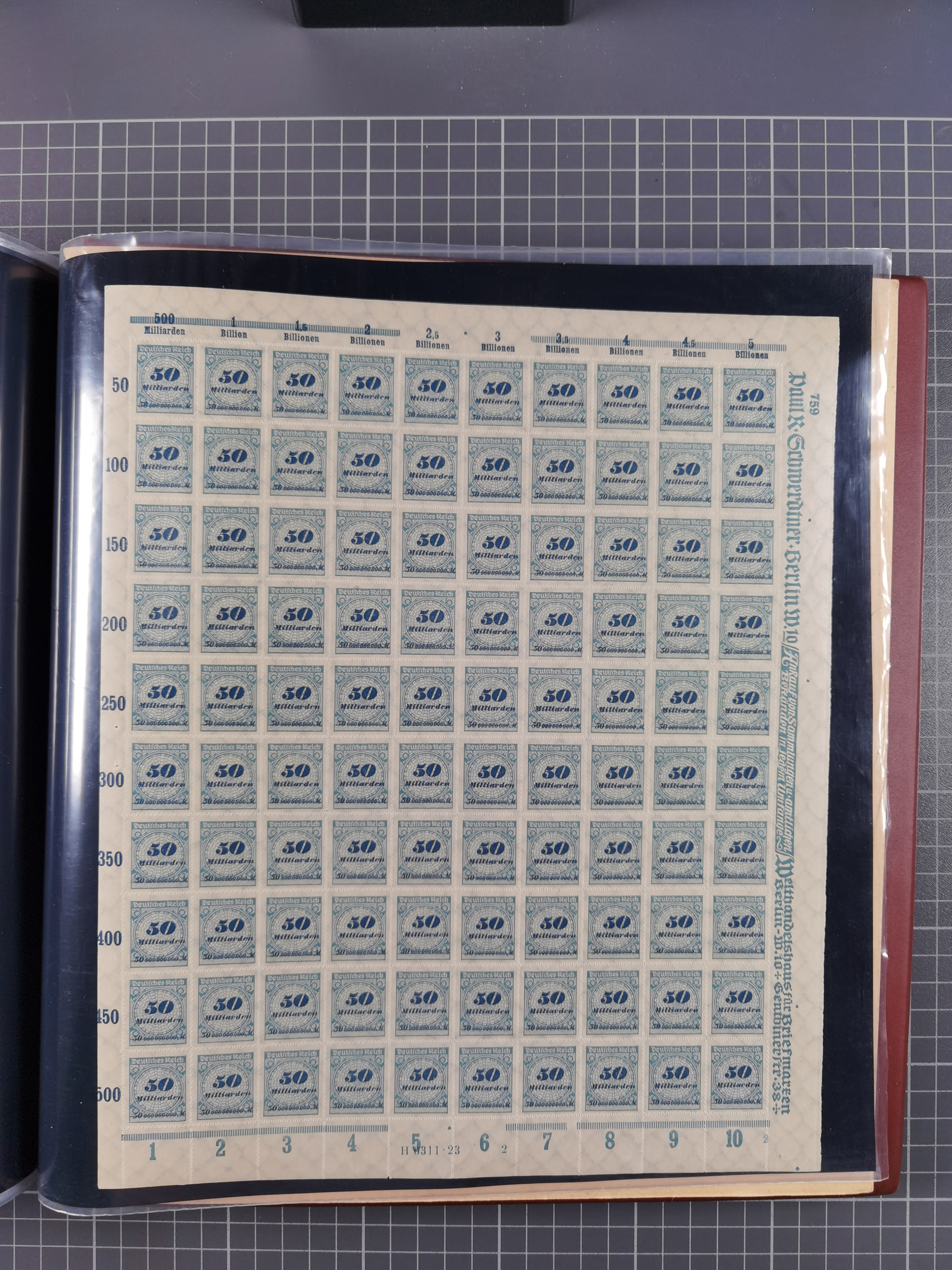 1923, meist postfrische Sammlung mit ca. 200 Bogen ex Mi.-Nr. 313-30, dabei u.a. Mi.-Nr. 330A (4) und 330B (3), gute Erhaltung, teils übliche Einschränkungen, in zwei Alben