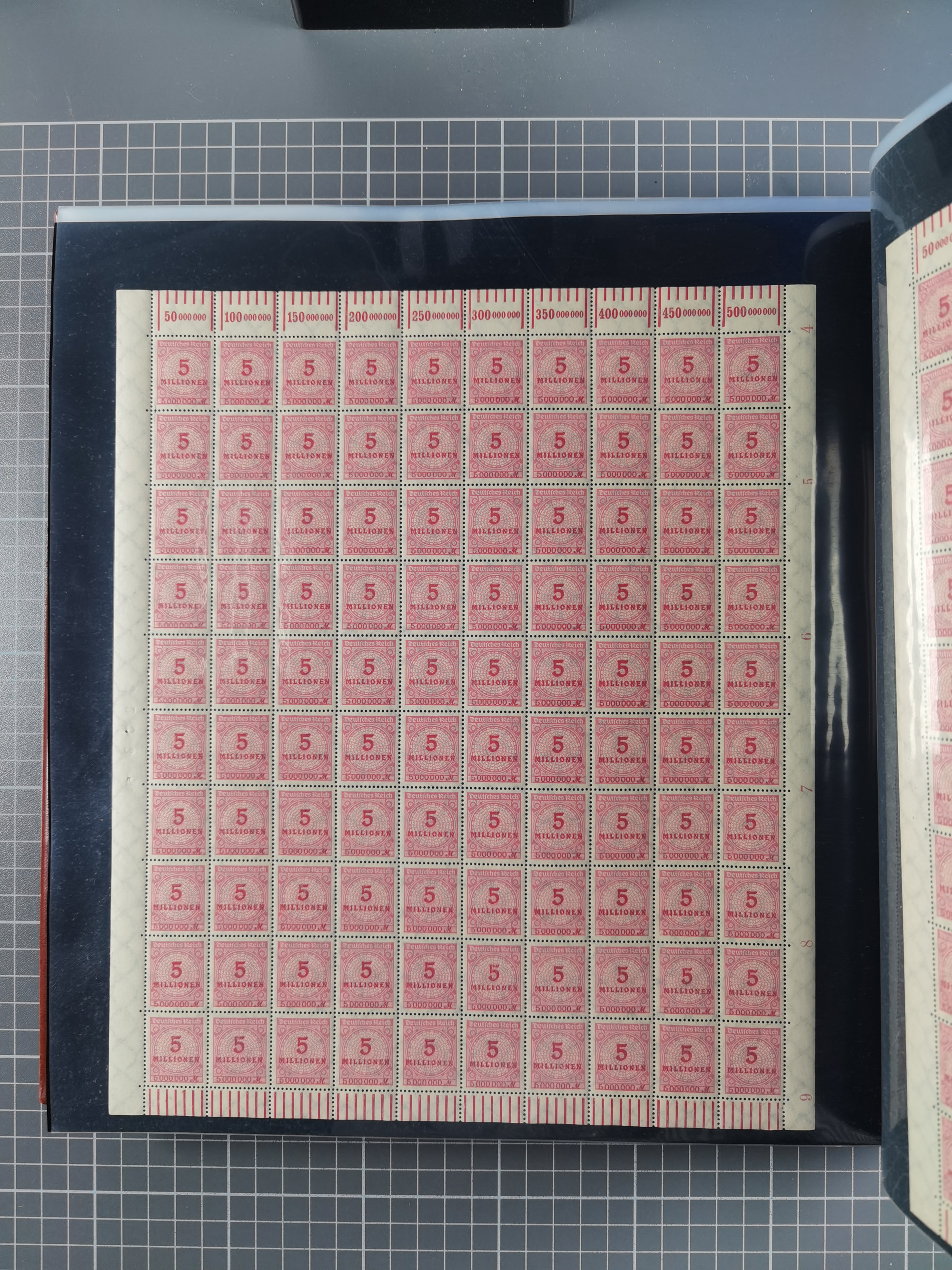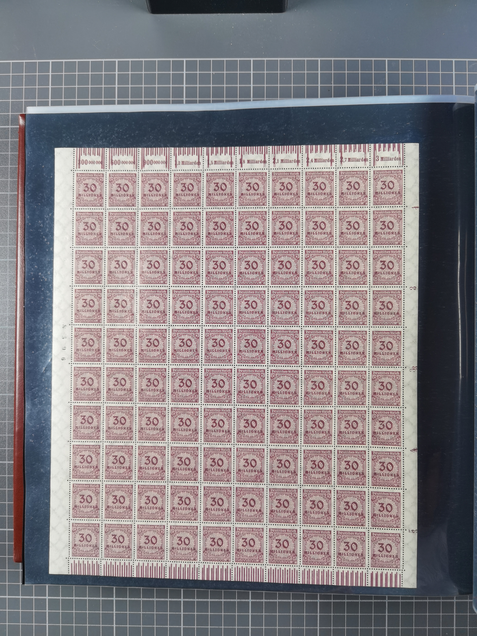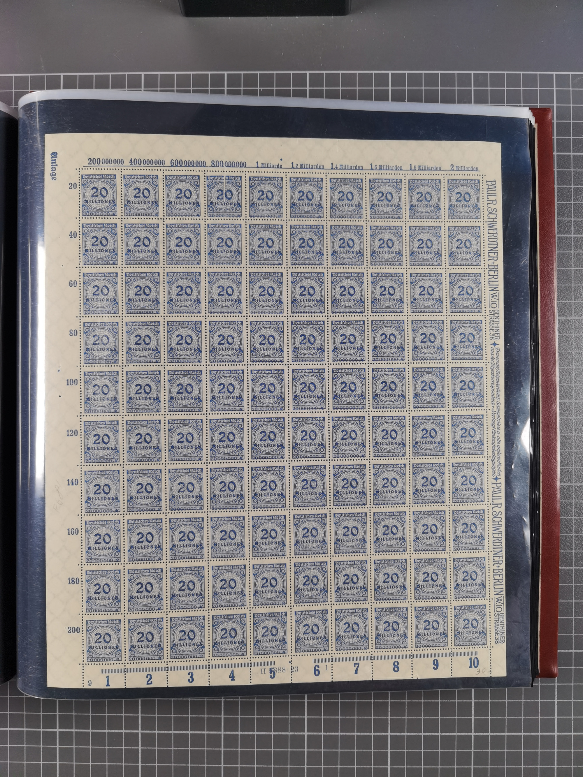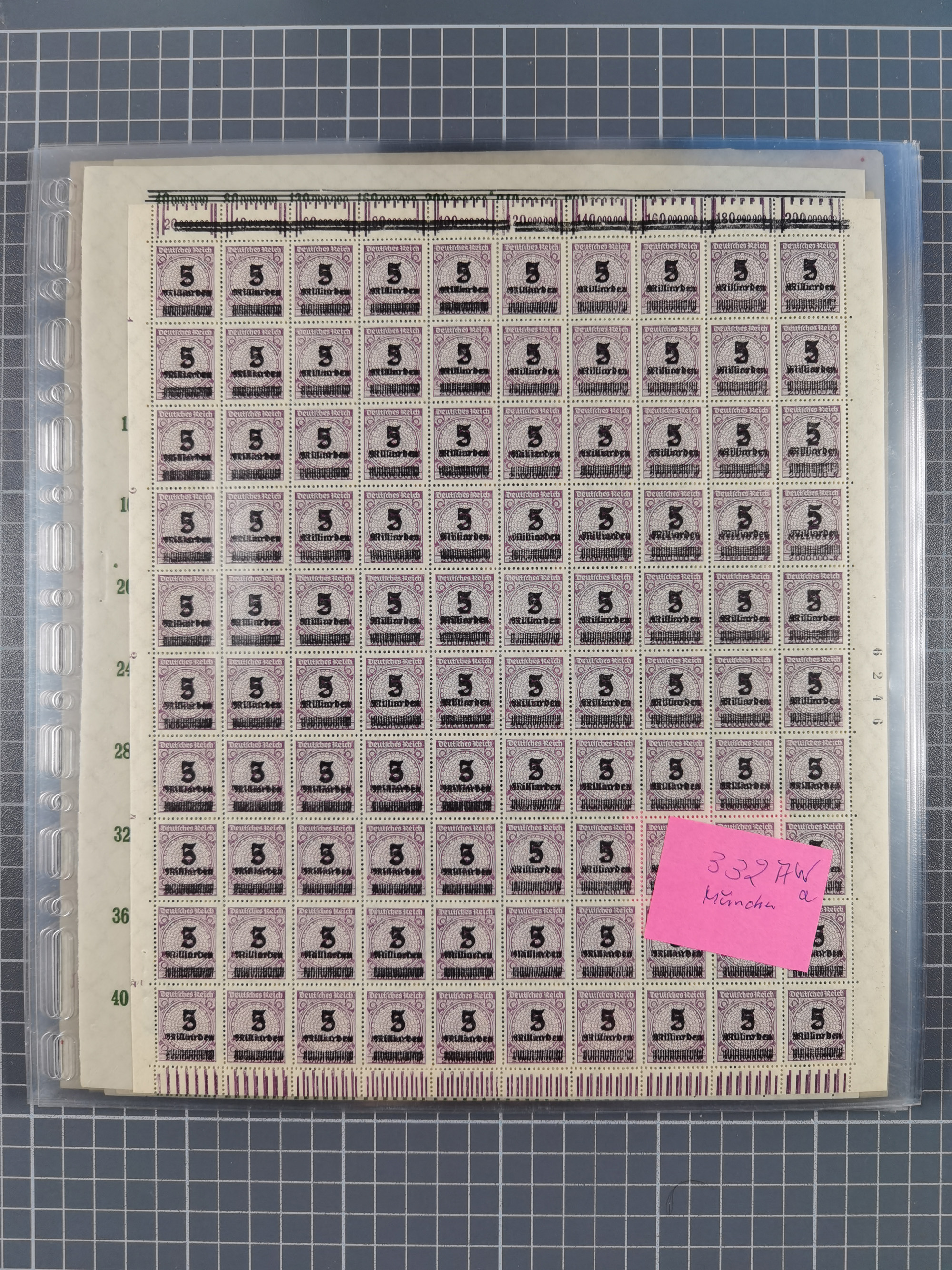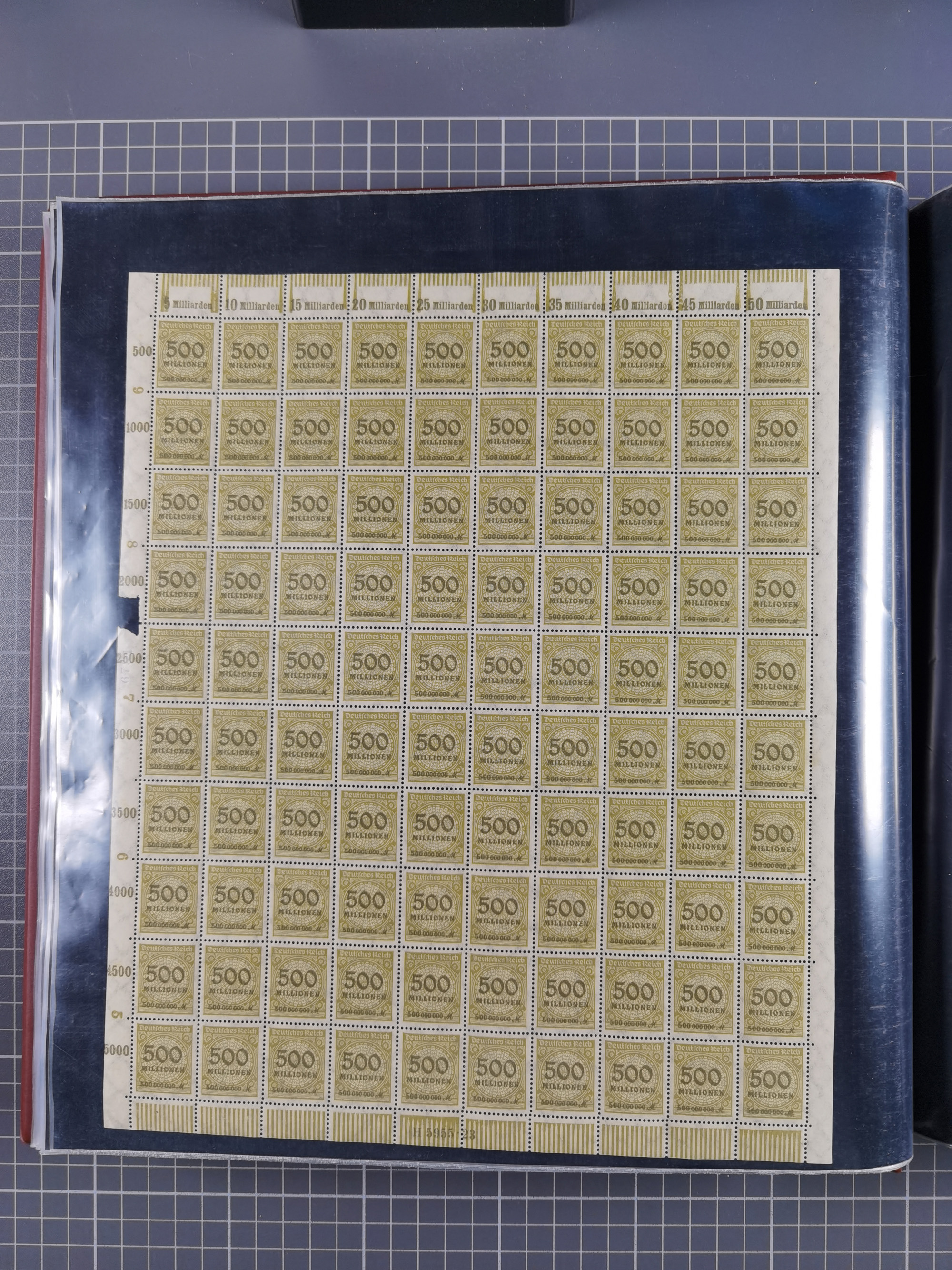 1923, meist postfrische Sammlung mit ca. 200 Bogen ex Mi.-Nr. 313-30, dabei u.a. Mi.-Nr. 330A (4) und 330B (3), gute Erhaltung, teils übliche Einschränkungen, in zwei Alben