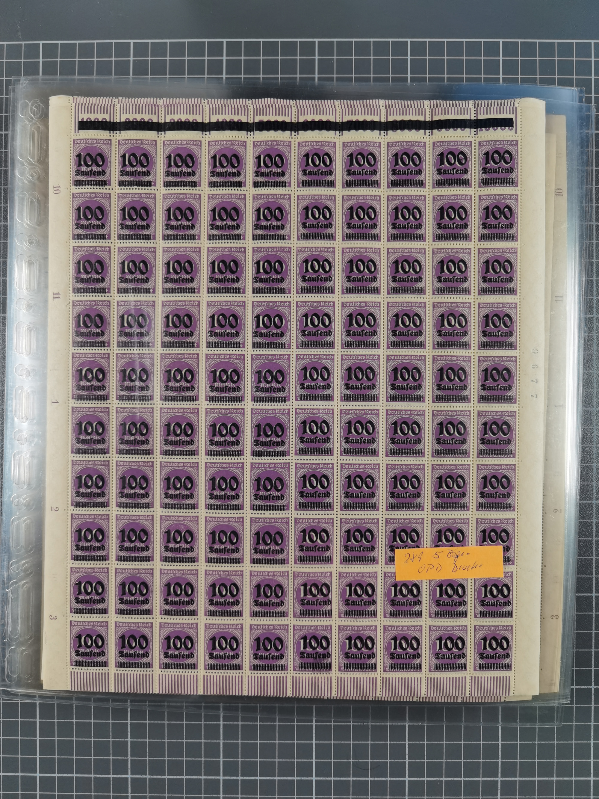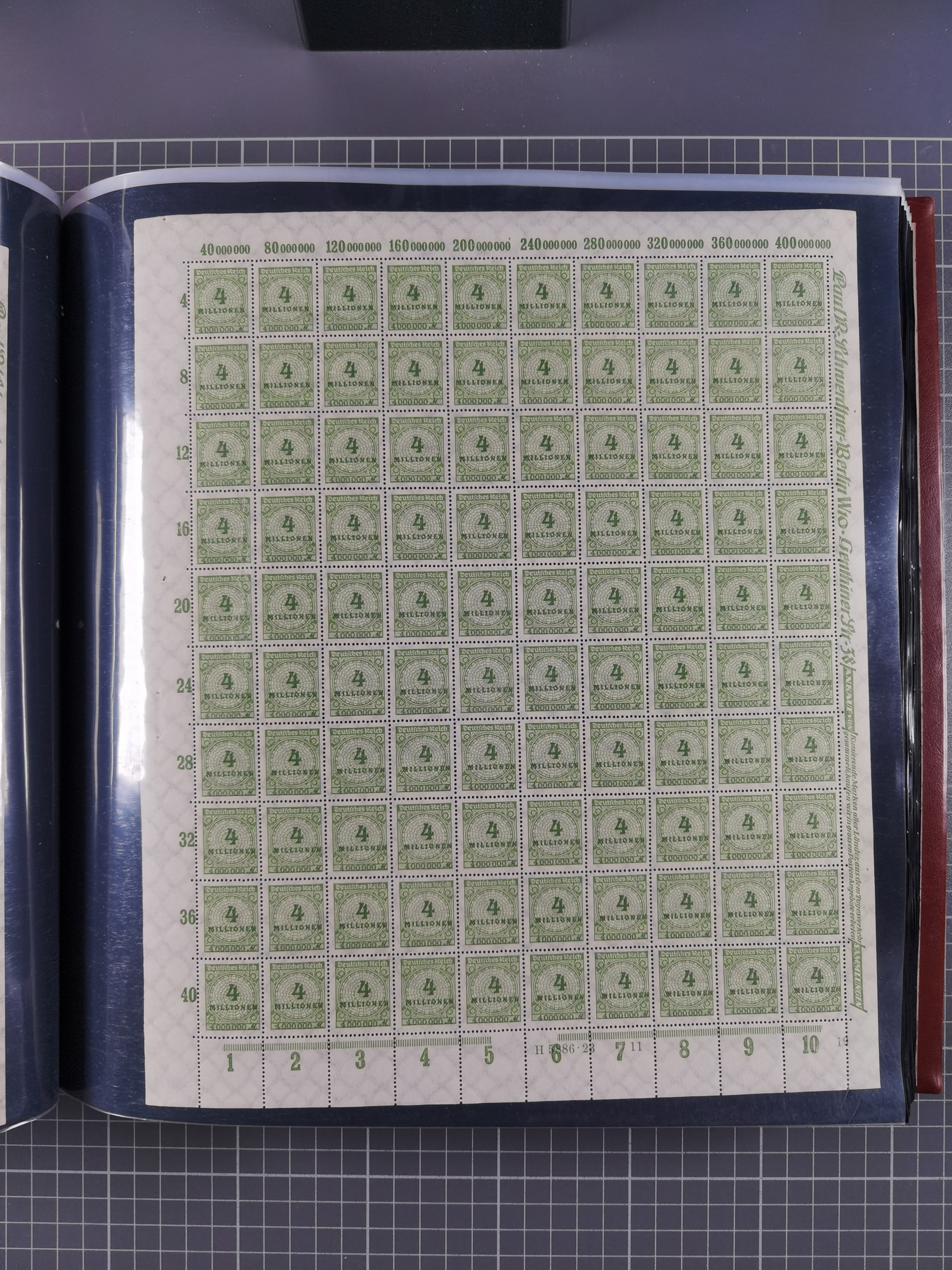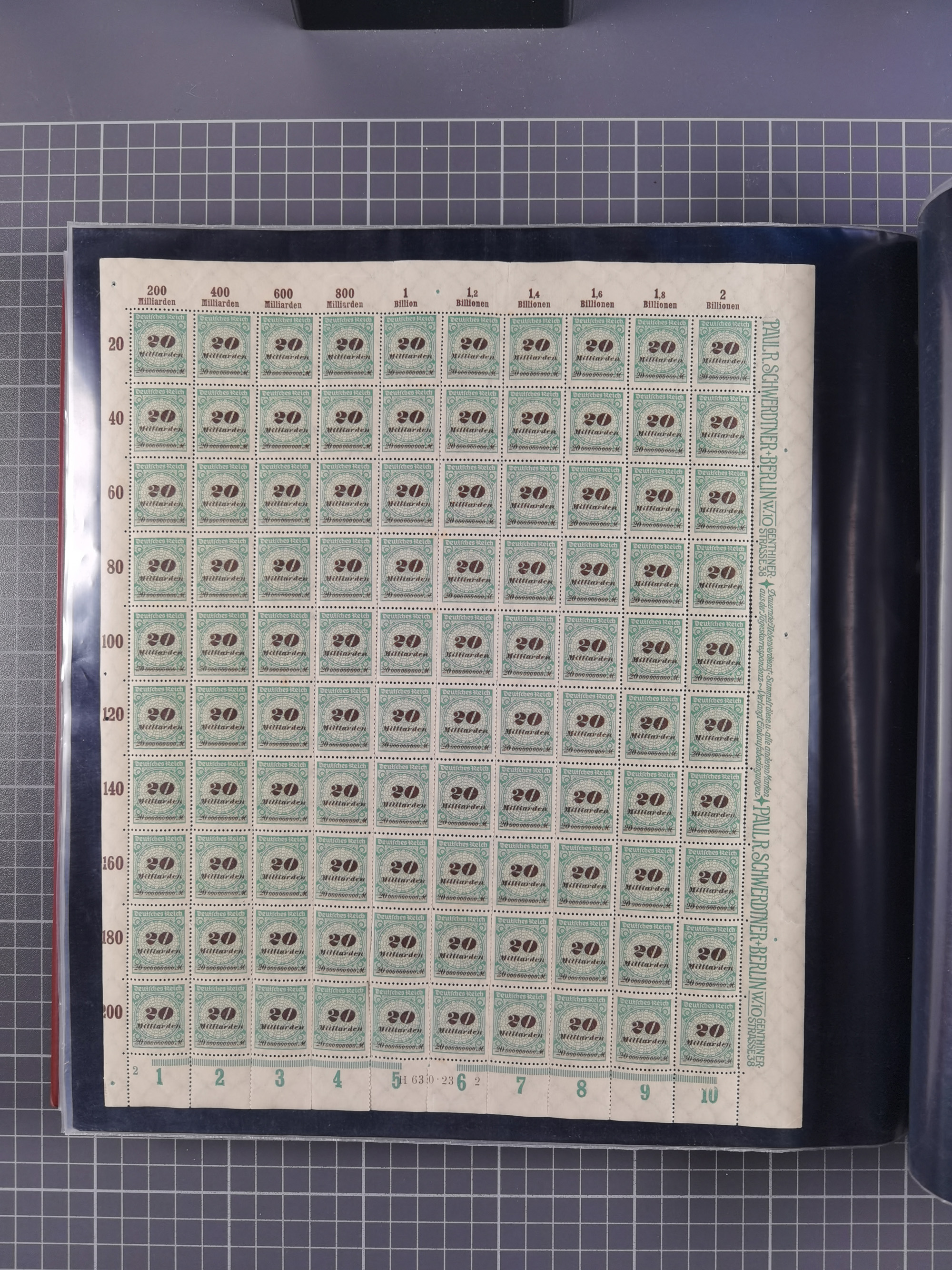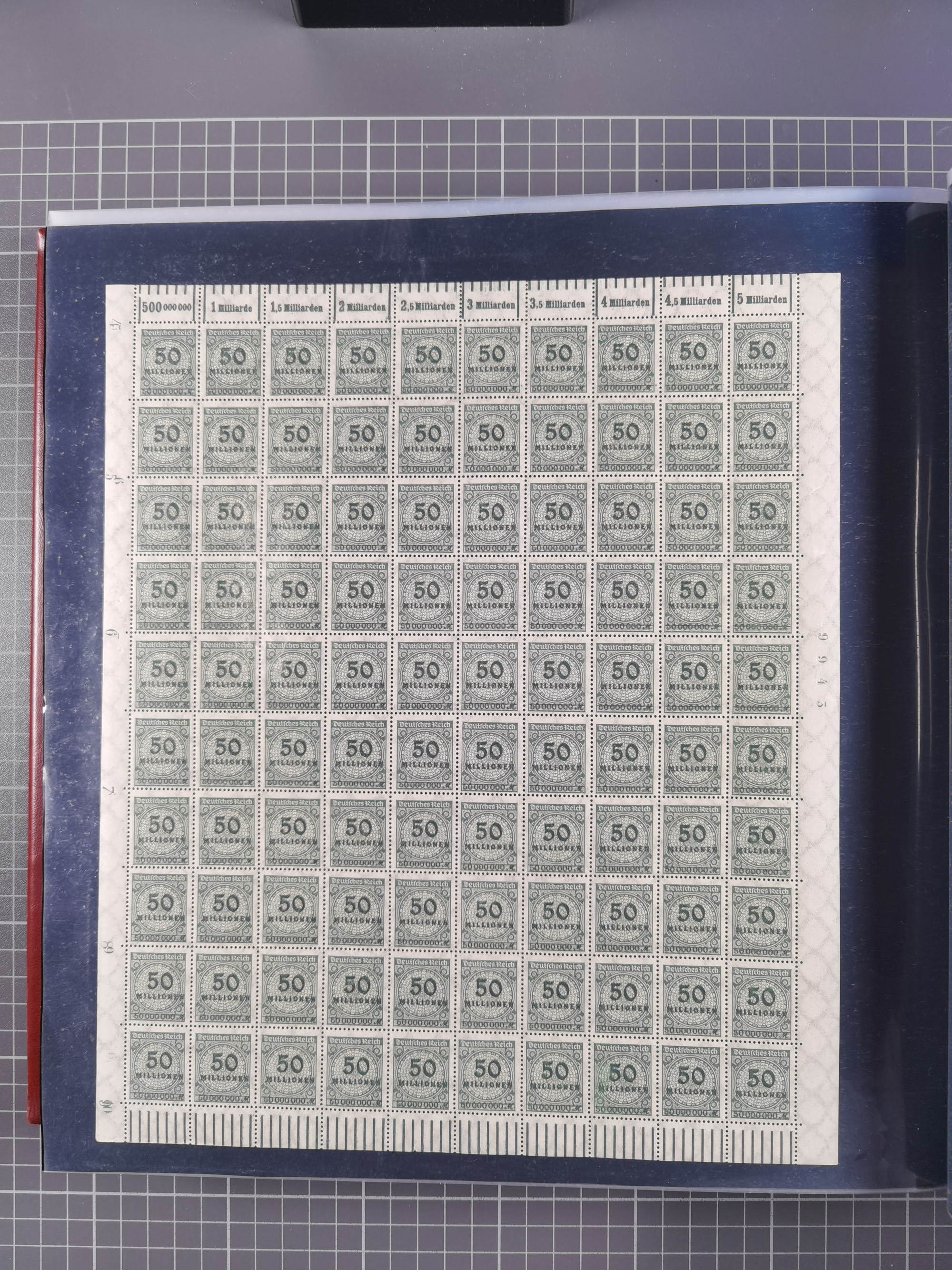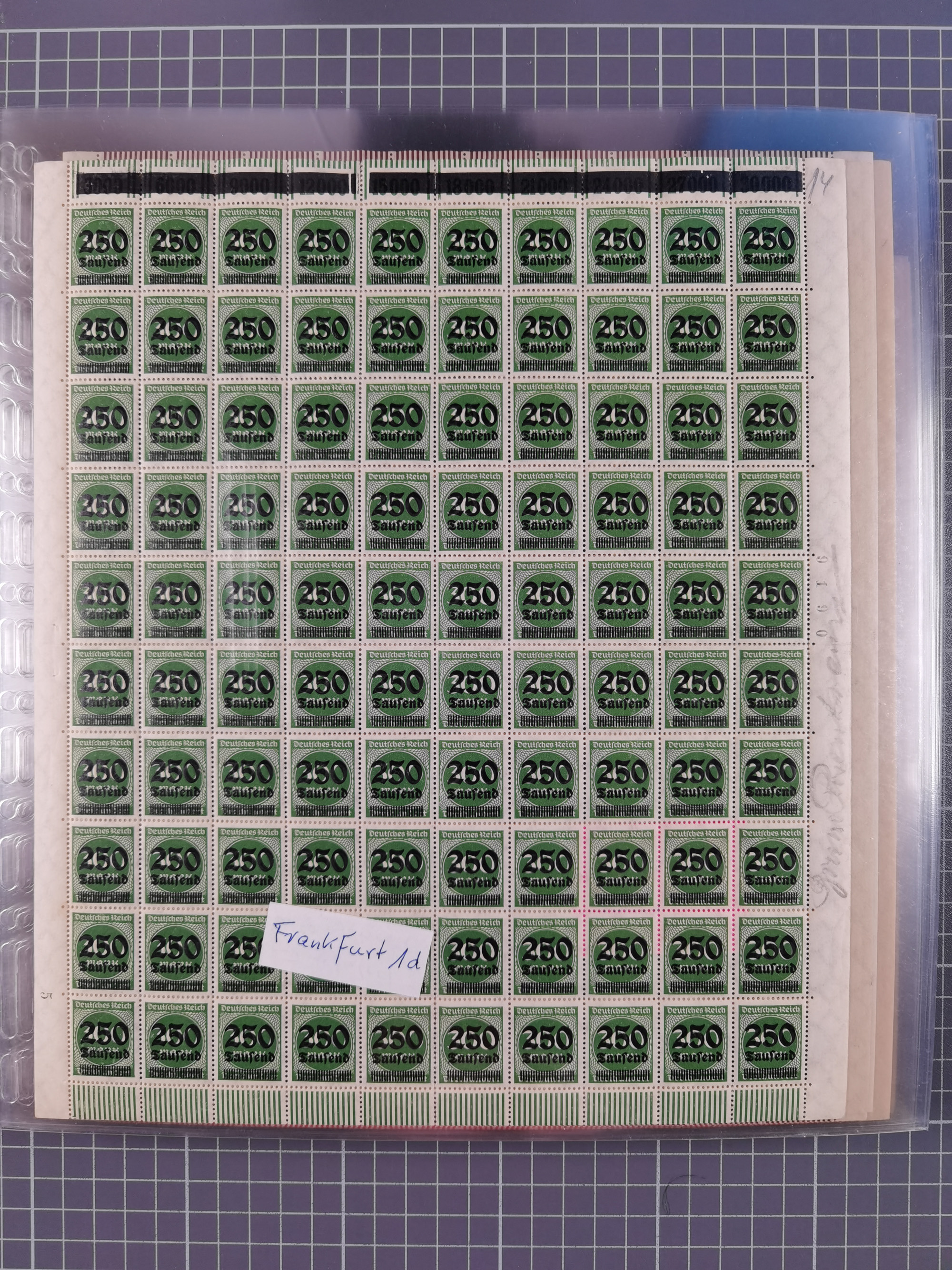 1923, meist postfrische Sammlung mit ca. 200 Bogen ex Mi.-Nr. 313-30, dabei u.a. Mi.-Nr. 330A (4) und 330B (3), gute Erhaltung, teils übliche Einschränkungen, in zwei Alben