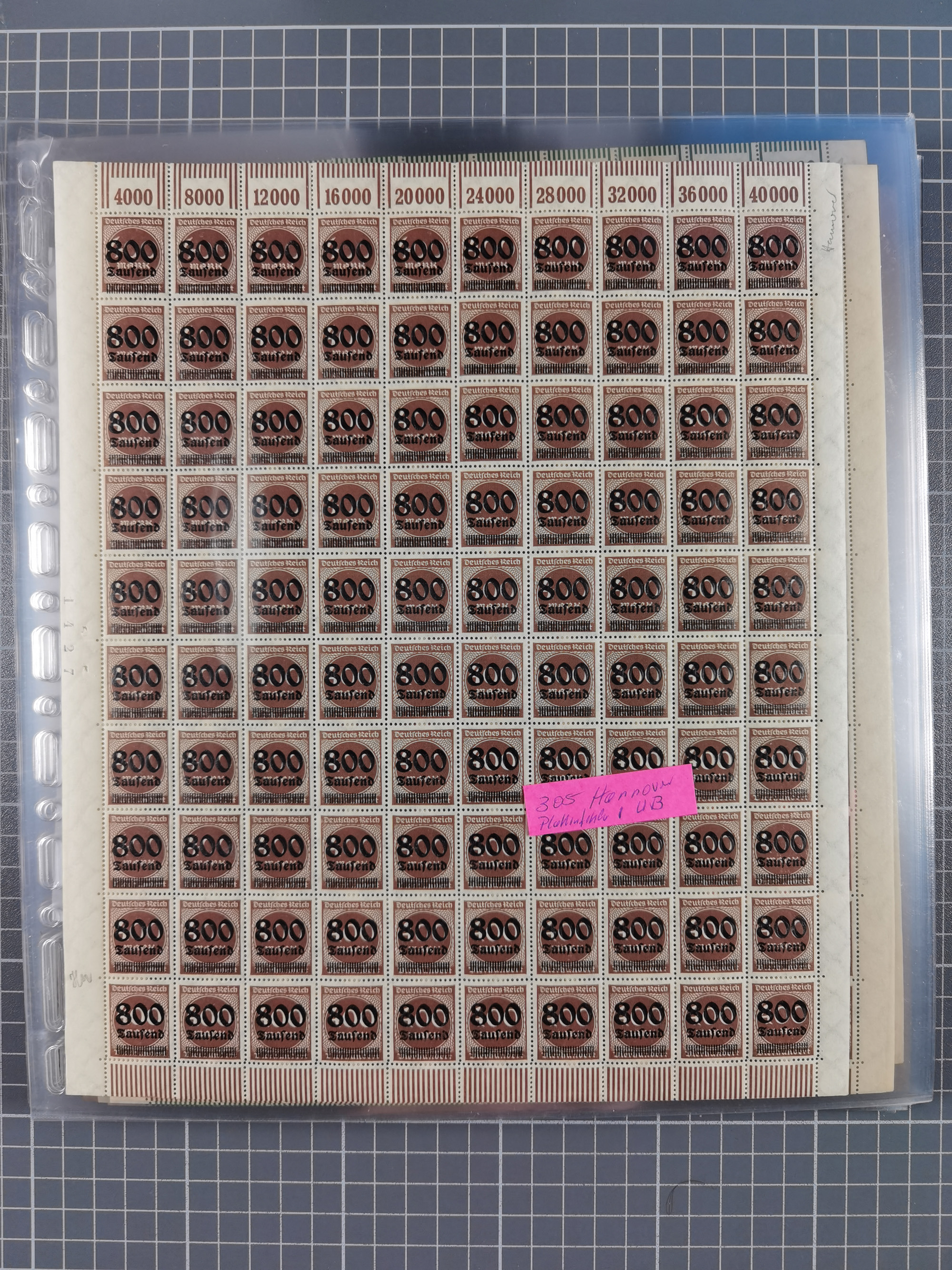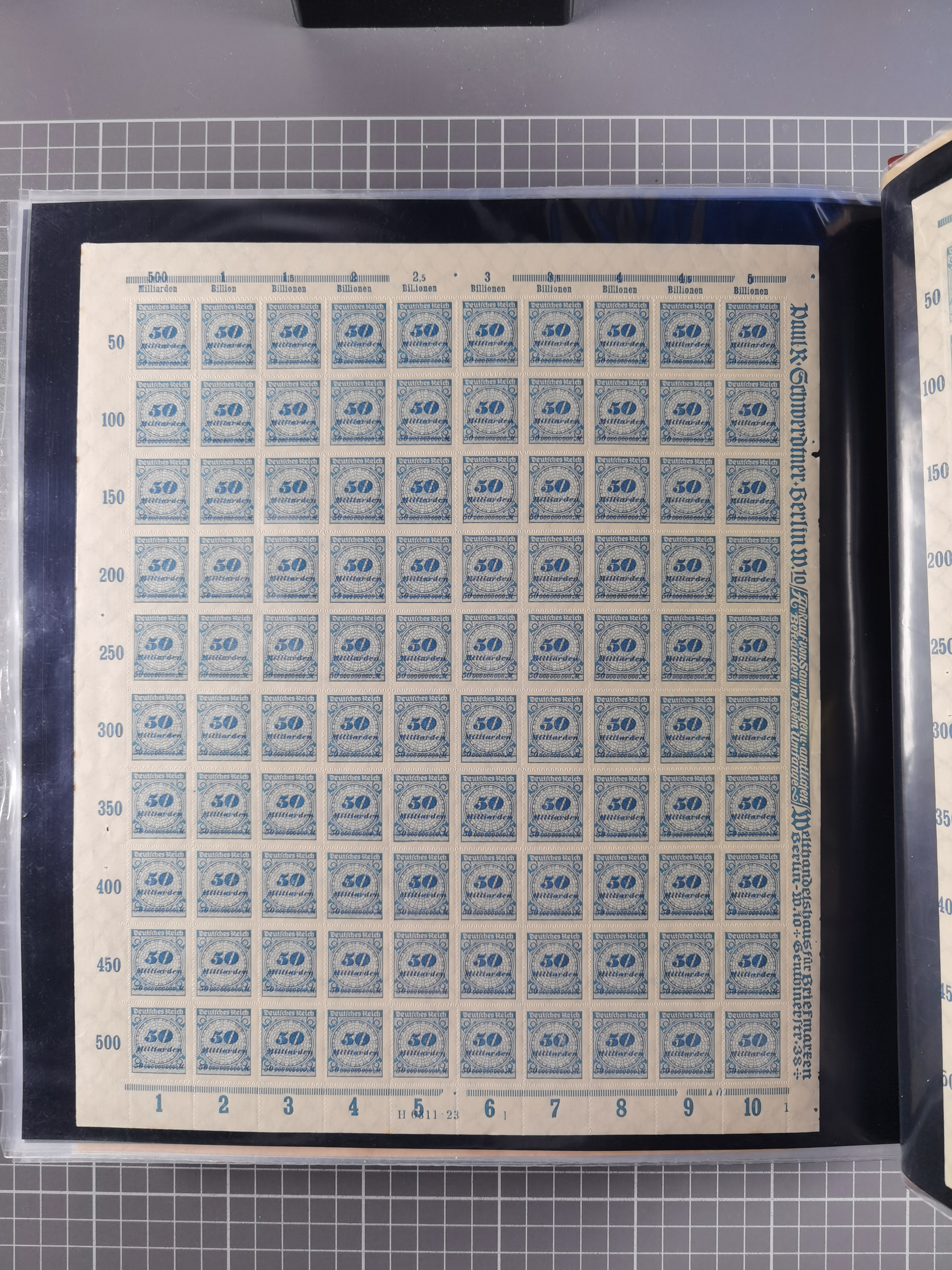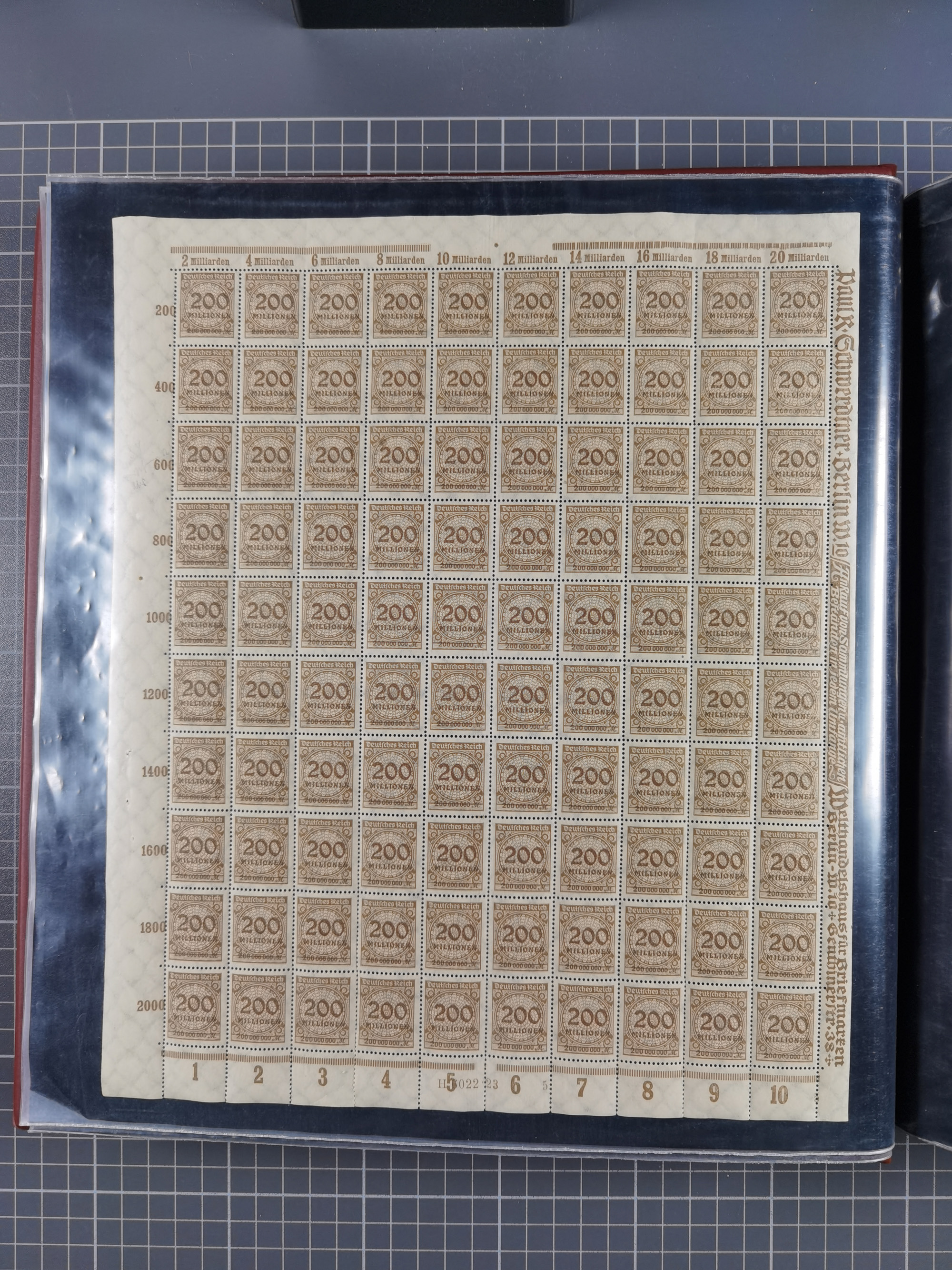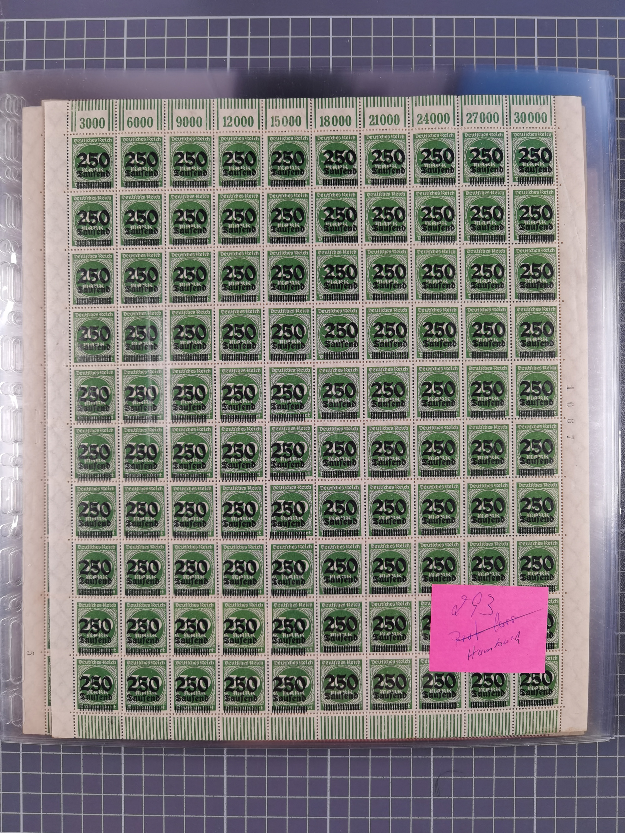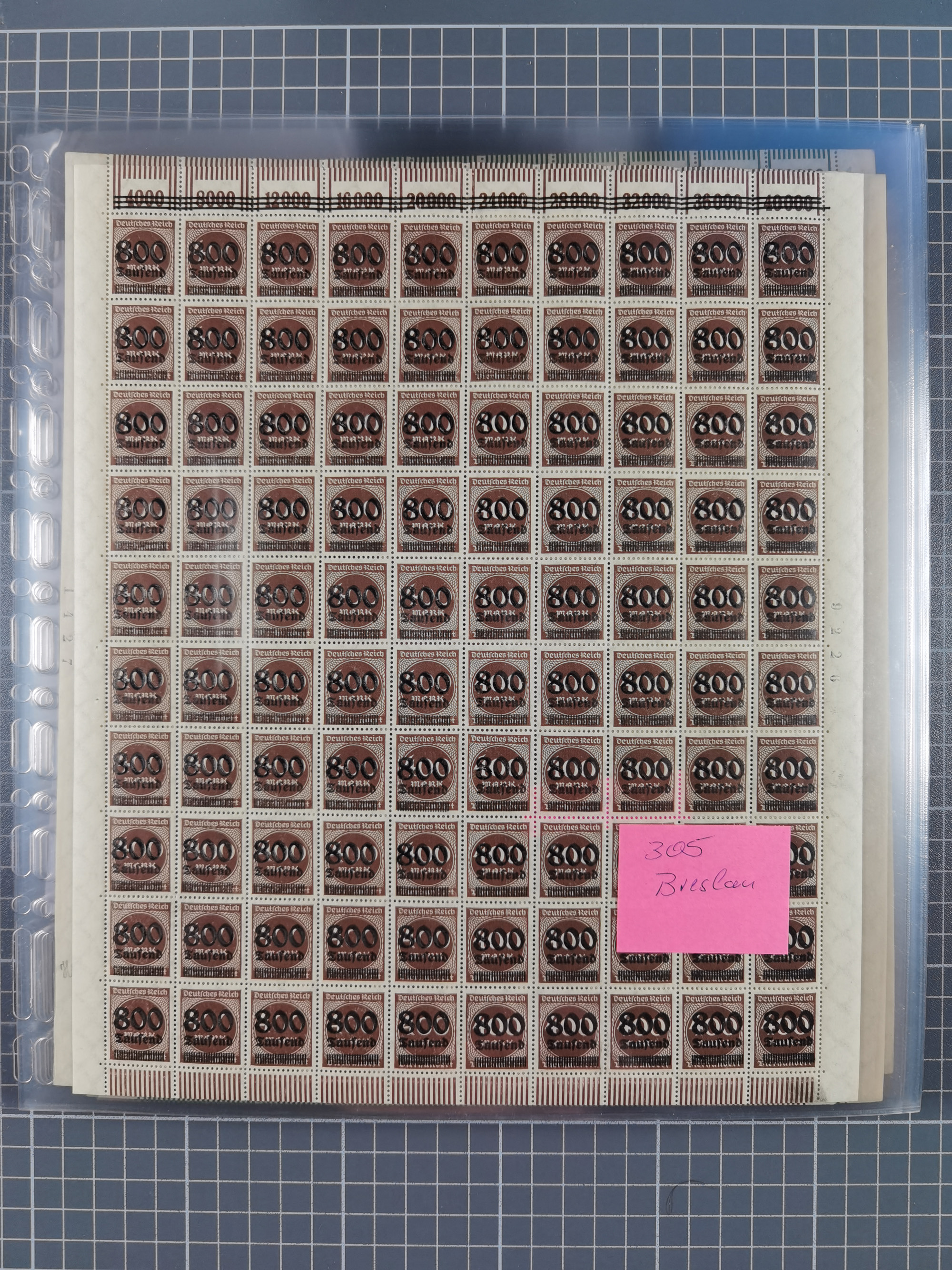 1923, meist postfrische Sammlung mit ca. 200 Bogen ex Mi.-Nr. 313-30, dabei u.a. Mi.-Nr. 330A (4) und 330B (3), gute Erhaltung, teils übliche Einschränkungen, in zwei Alben