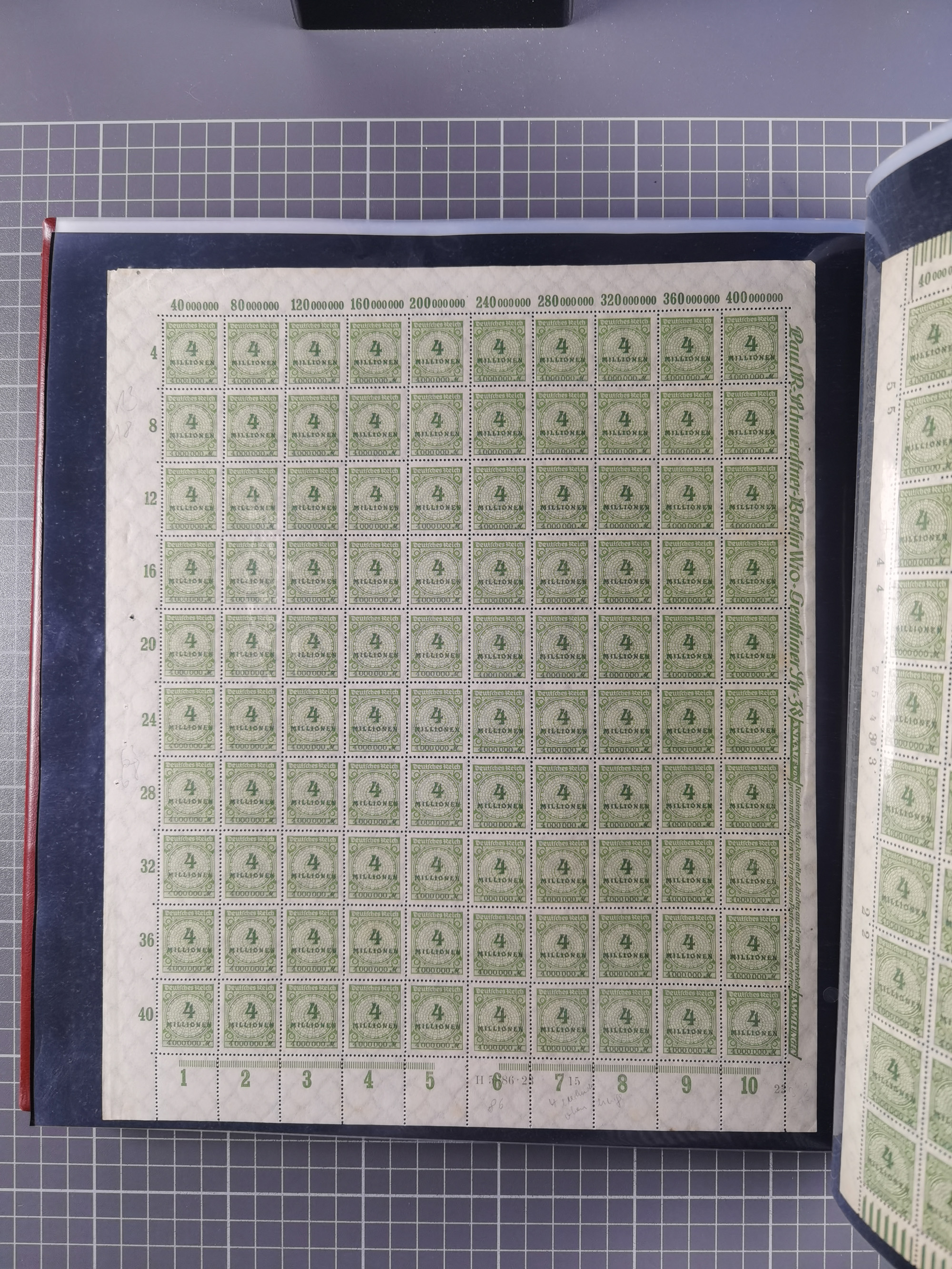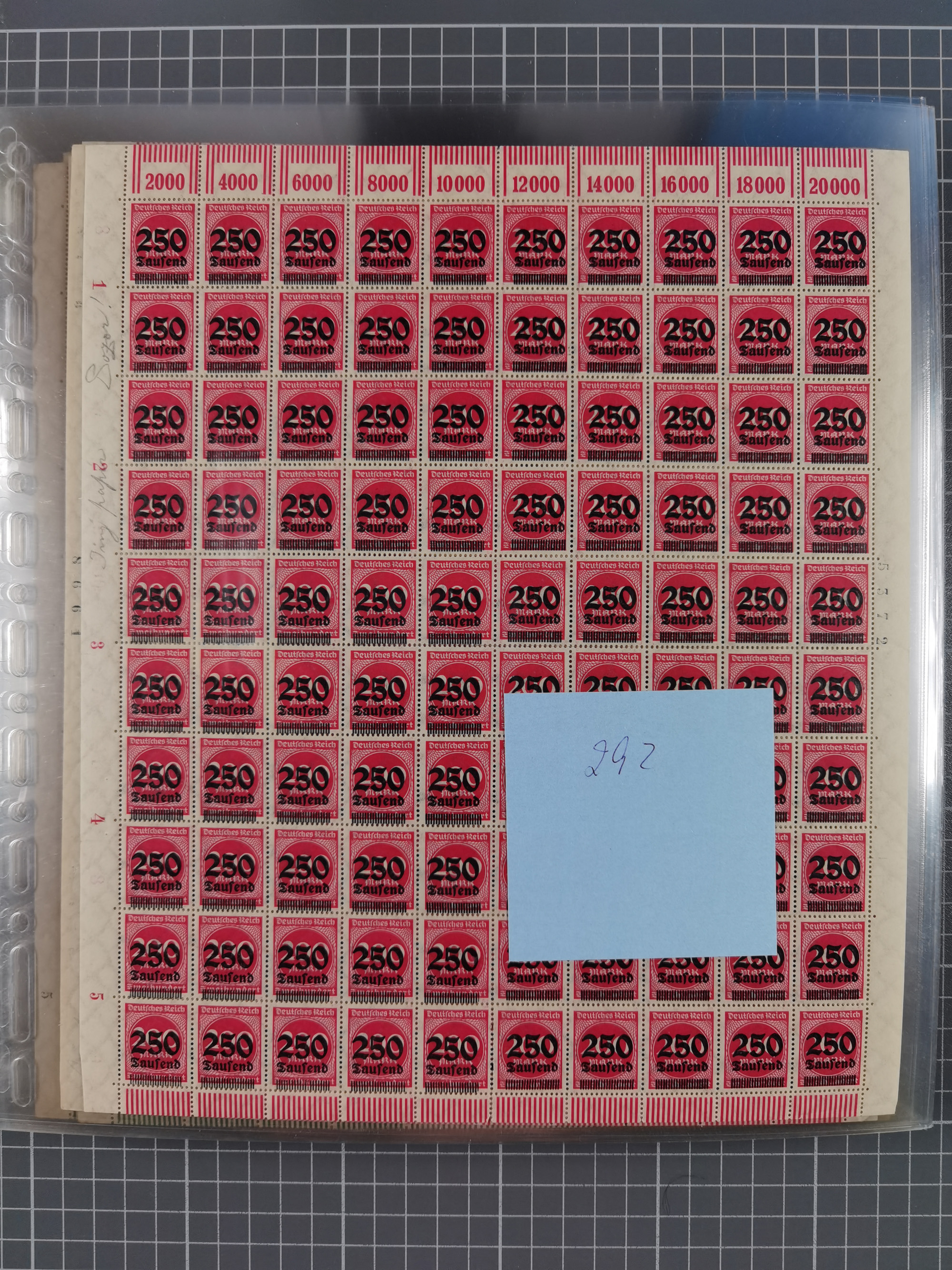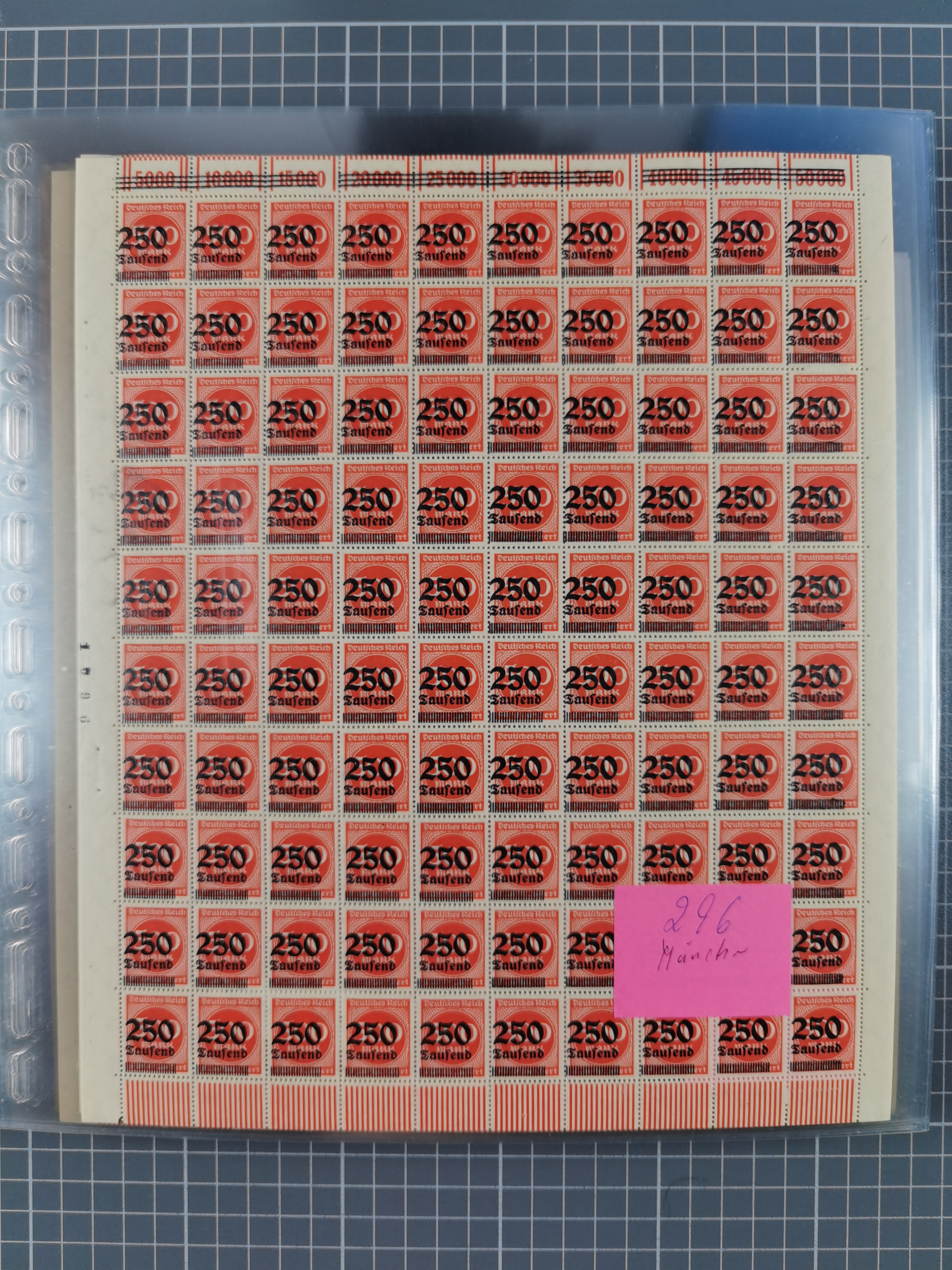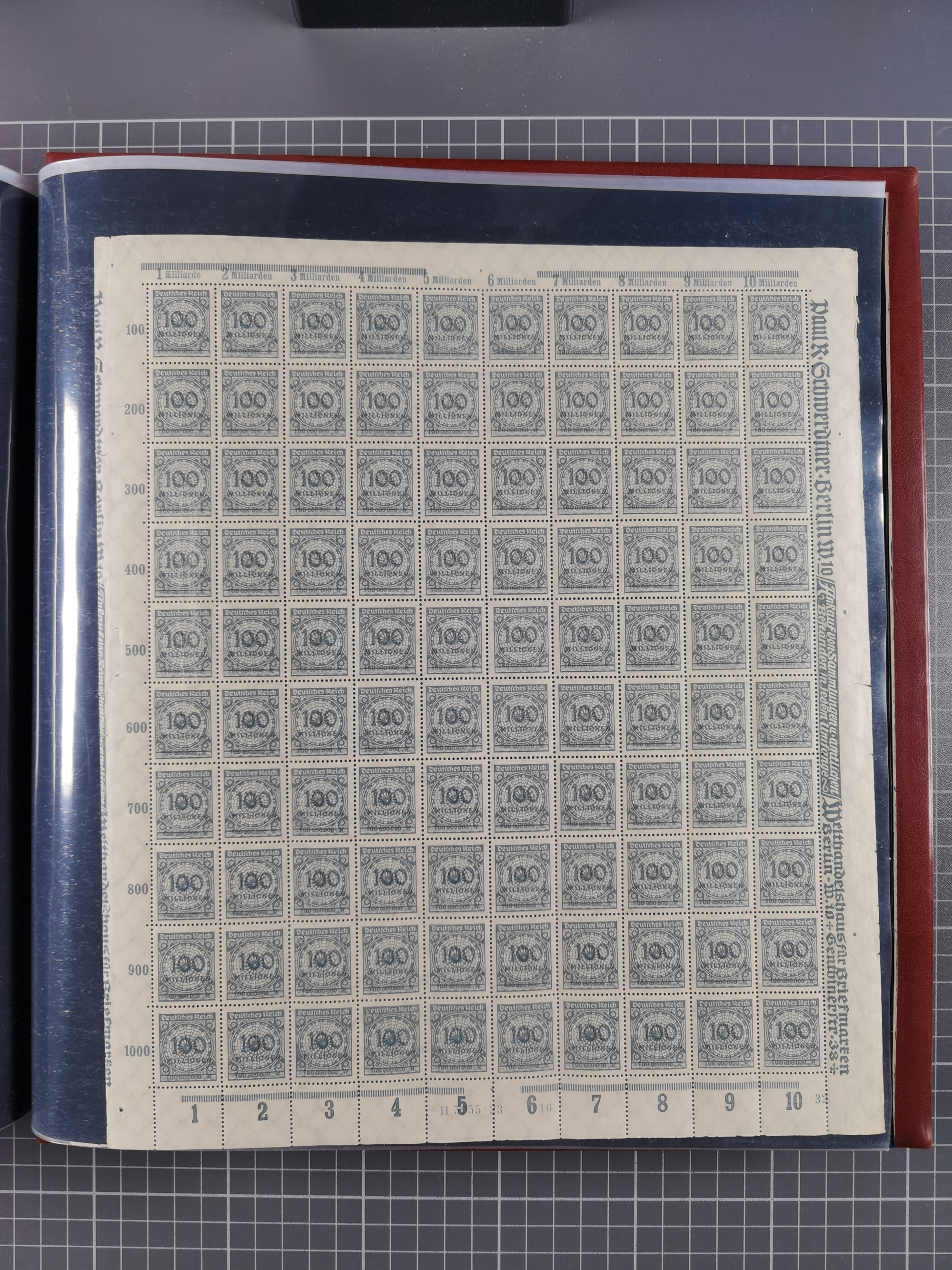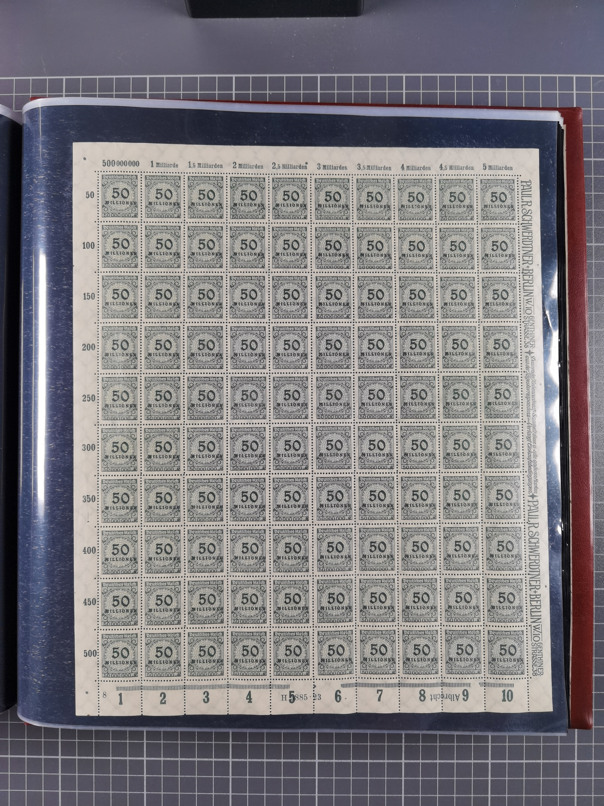 1923, meist postfrische Sammlung mit ca. 200 Bogen ex Mi.-Nr. 313-30, dabei u.a. Mi.-Nr. 330A (4) und 330B (3), gute Erhaltung, teils übliche Einschränkungen, in zwei Alben