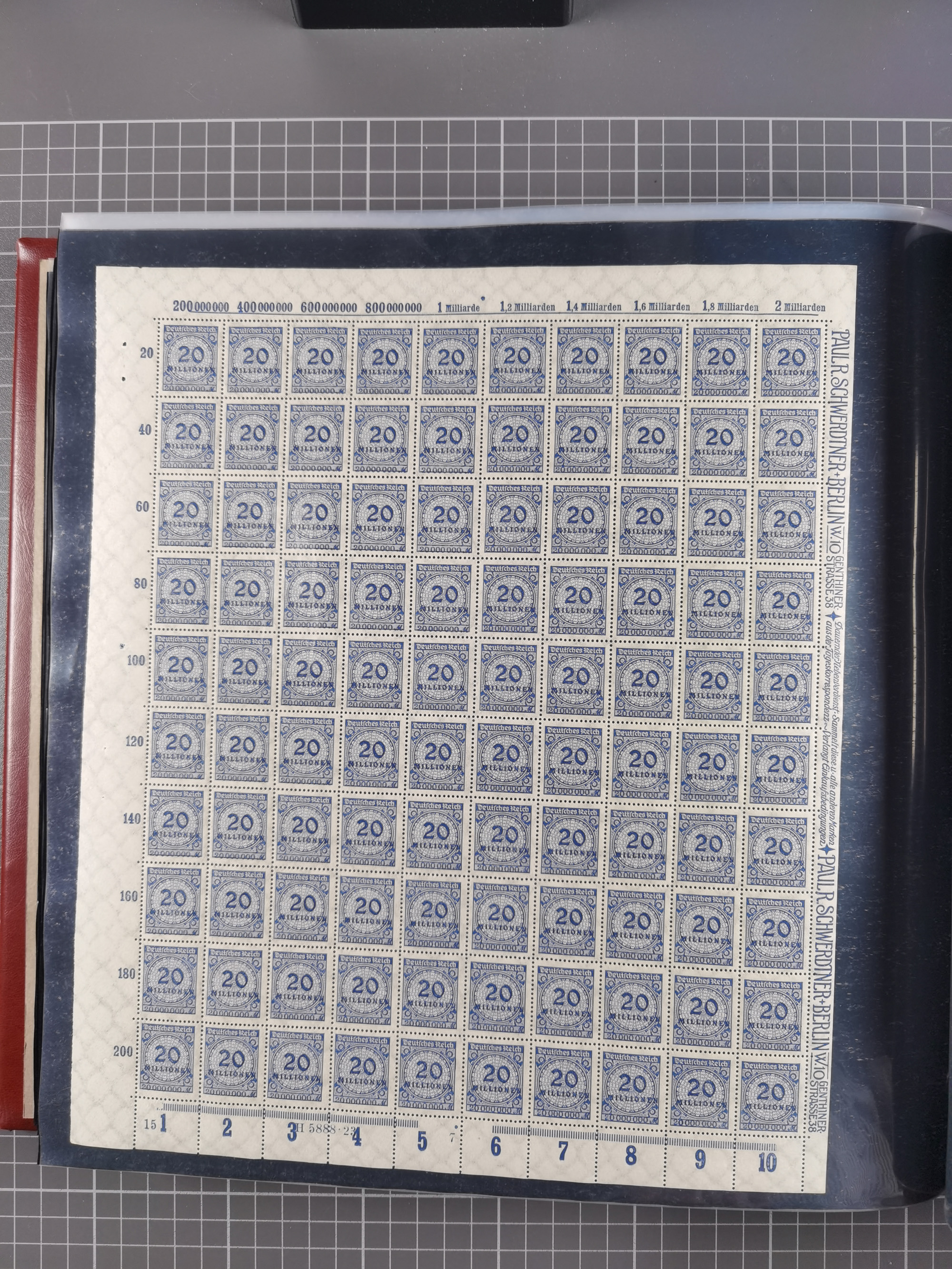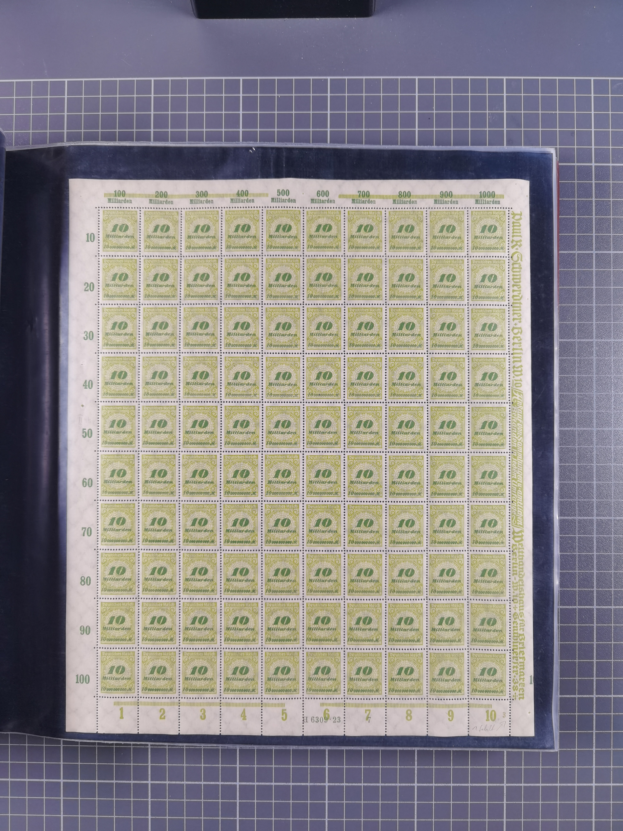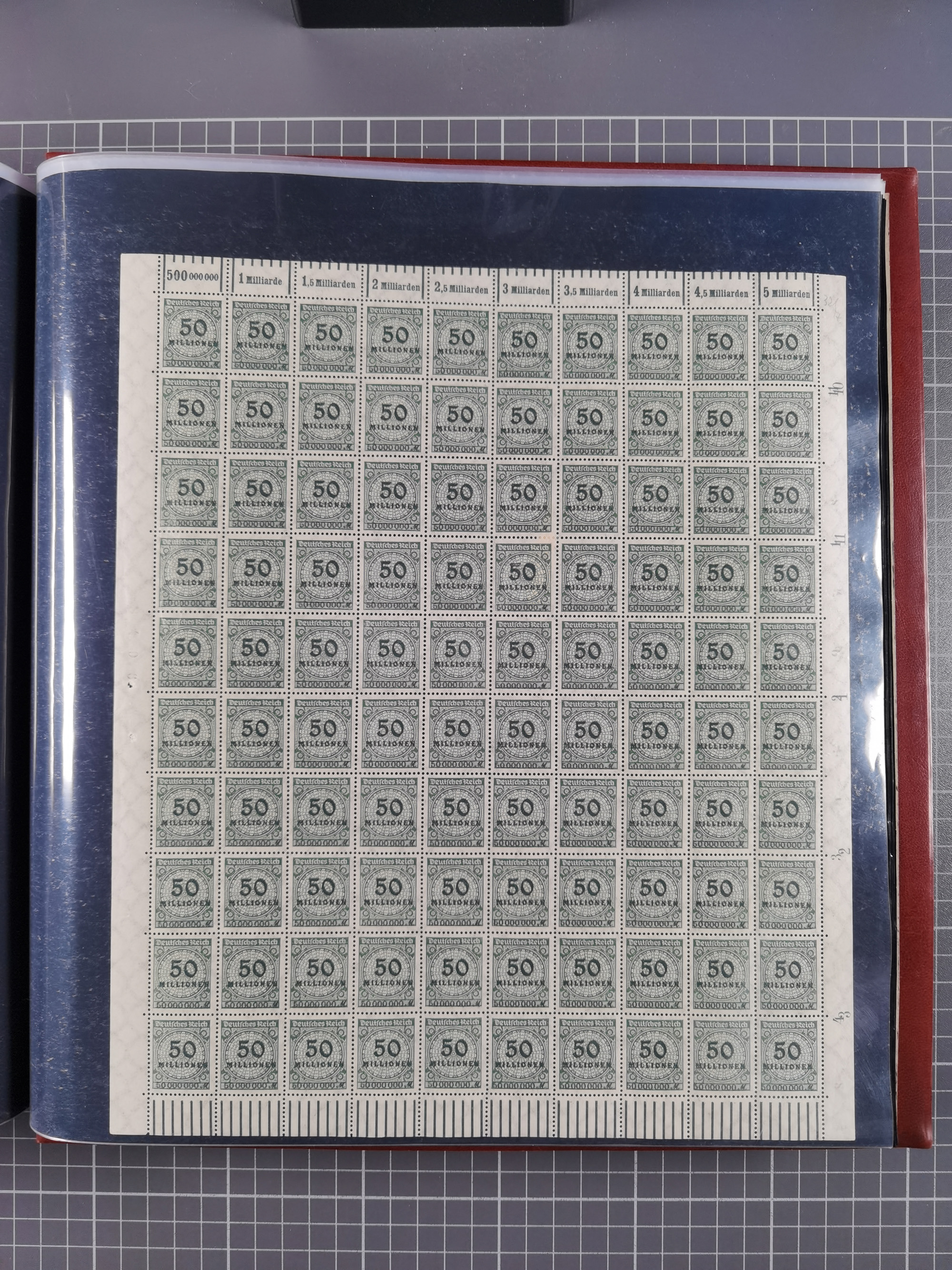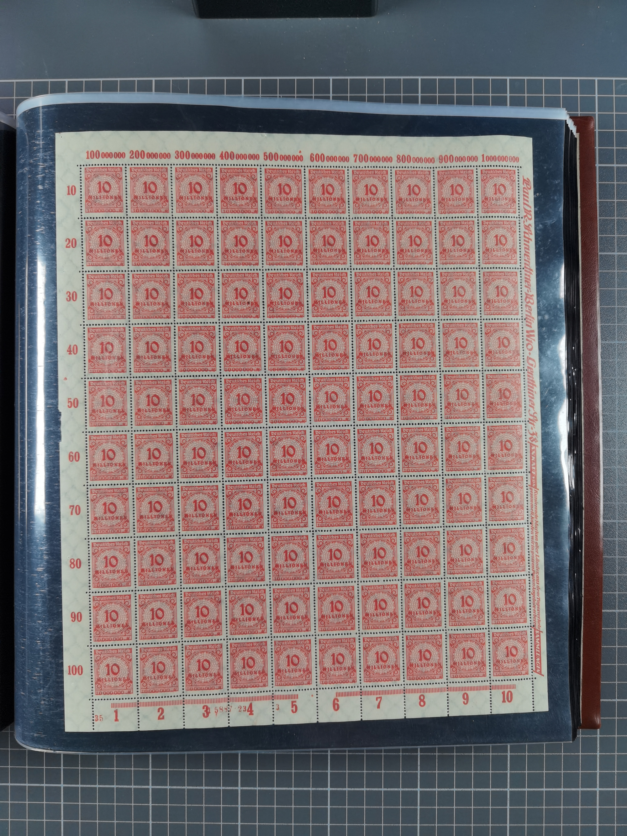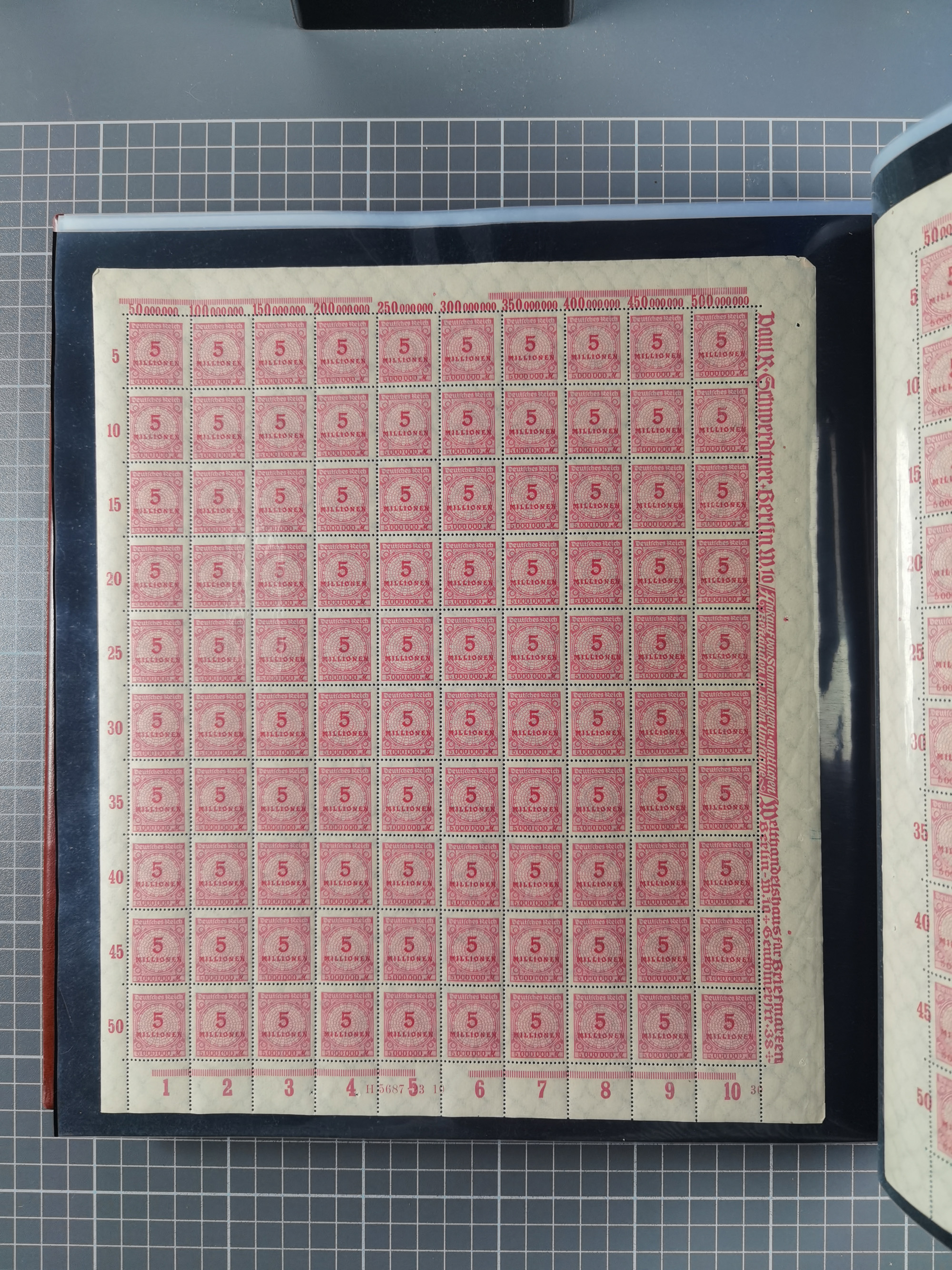 1923, meist postfrische Sammlung mit ca. 200 Bogen ex Mi.-Nr. 313-30, dabei u.a. Mi.-Nr. 330A (4) und 330B (3), gute Erhaltung, teils übliche Einschränkungen, in zwei Alben