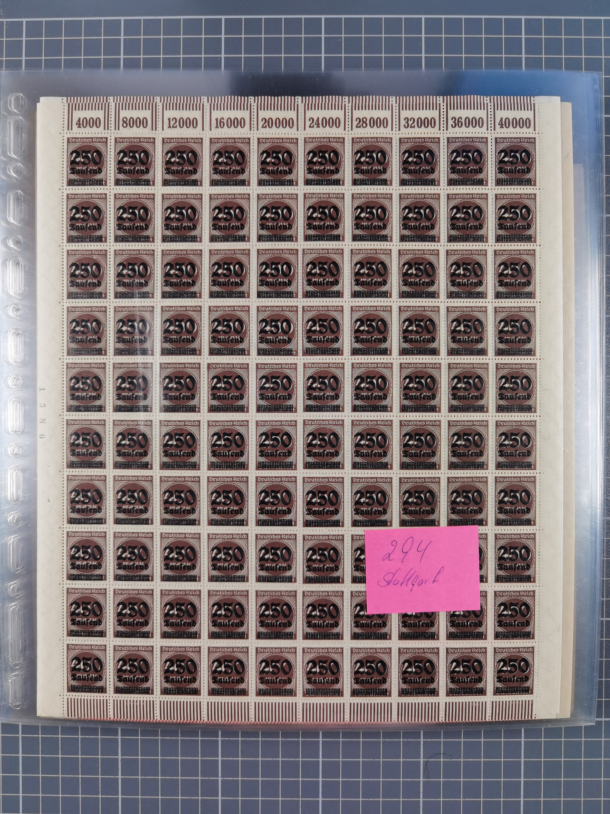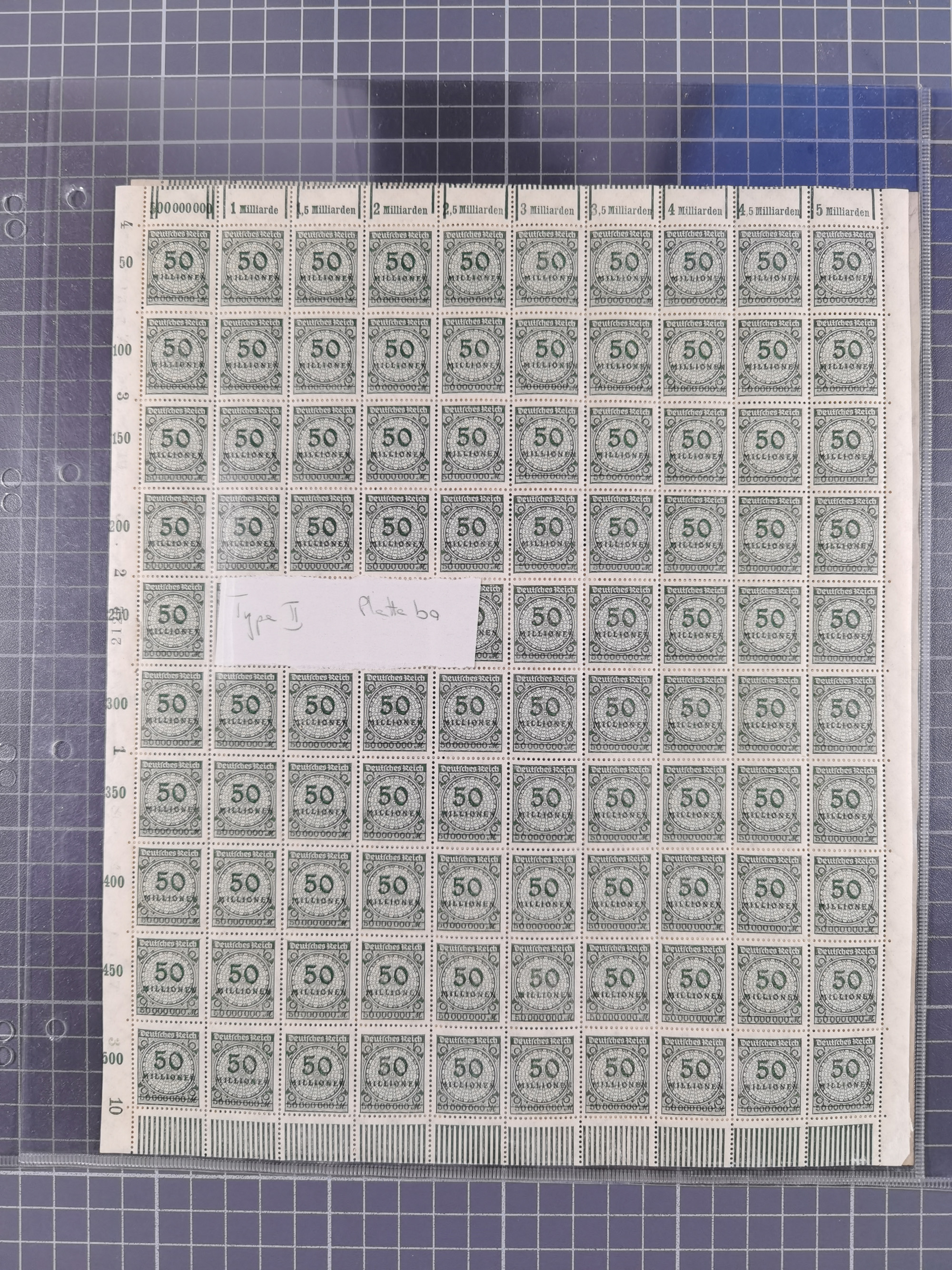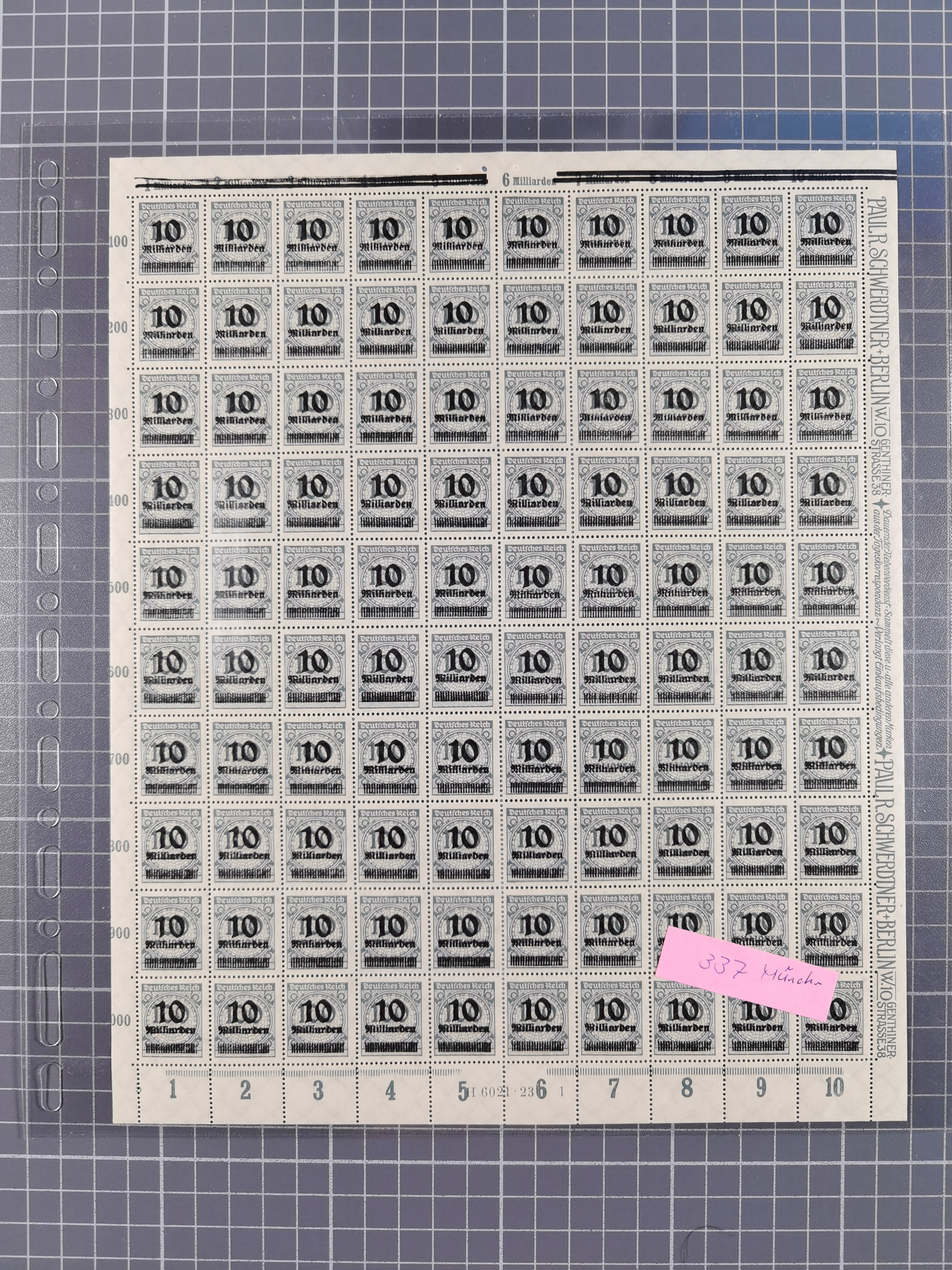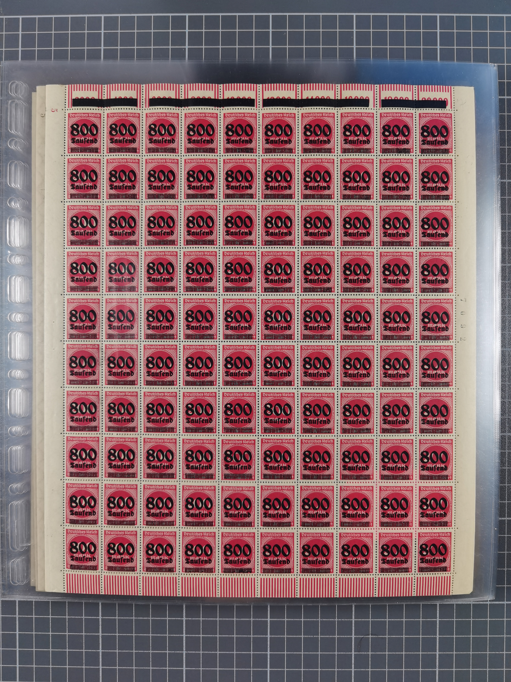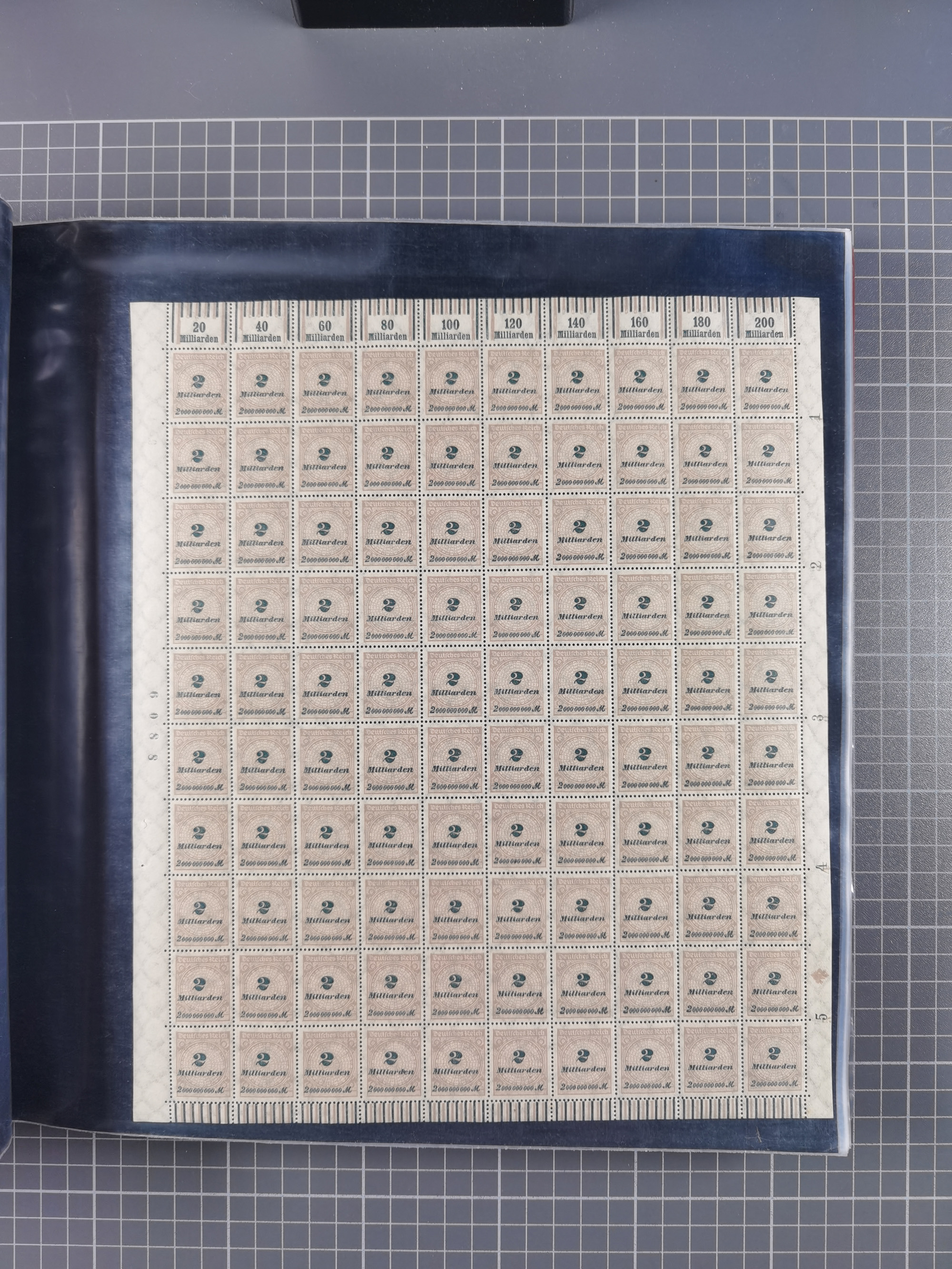 1923, meist postfrische Sammlung mit ca. 200 Bogen ex Mi.-Nr. 313-30, dabei u.a. Mi.-Nr. 330A (4) und 330B (3), gute Erhaltung, teils übliche Einschränkungen, in zwei Alben