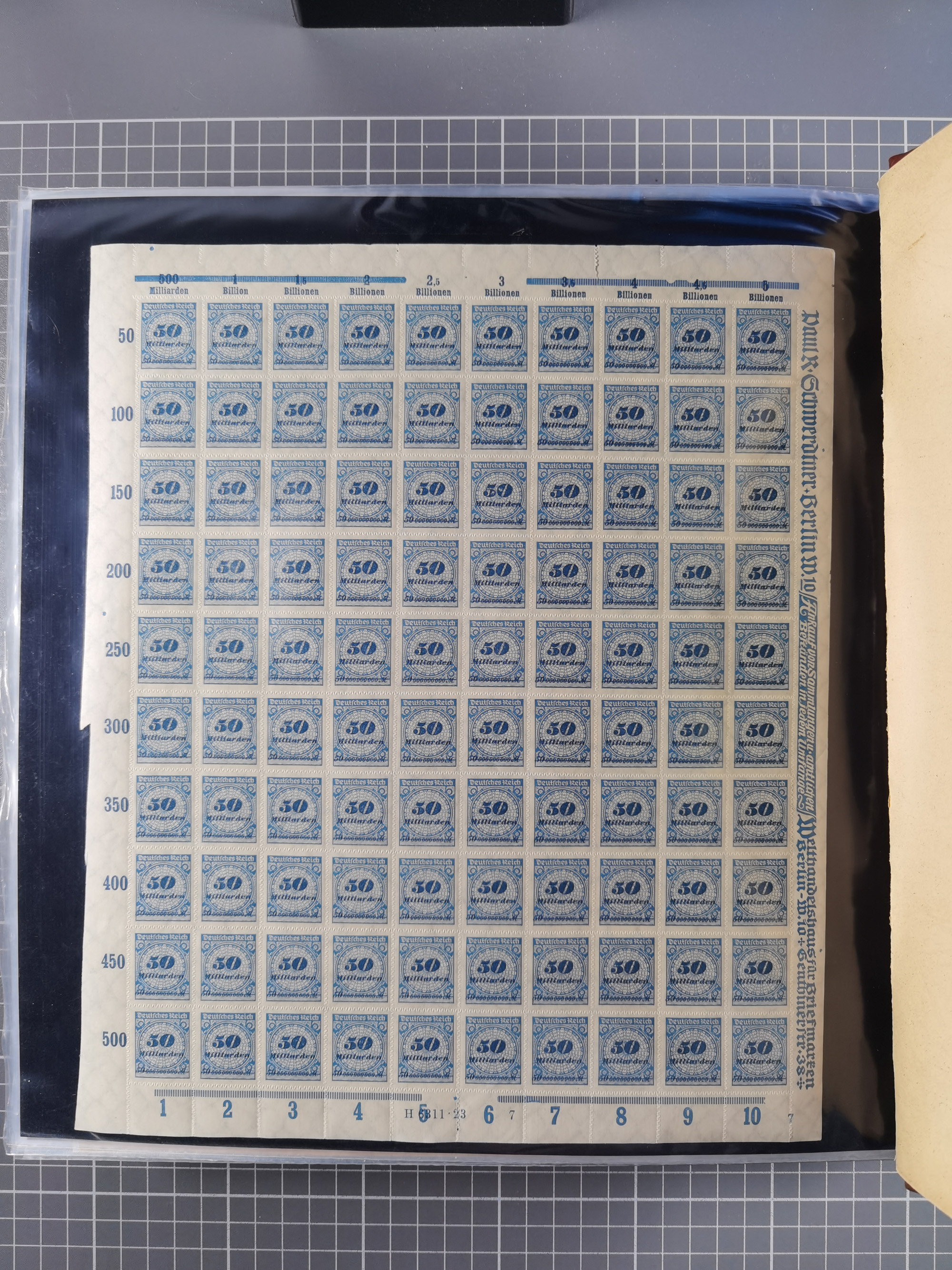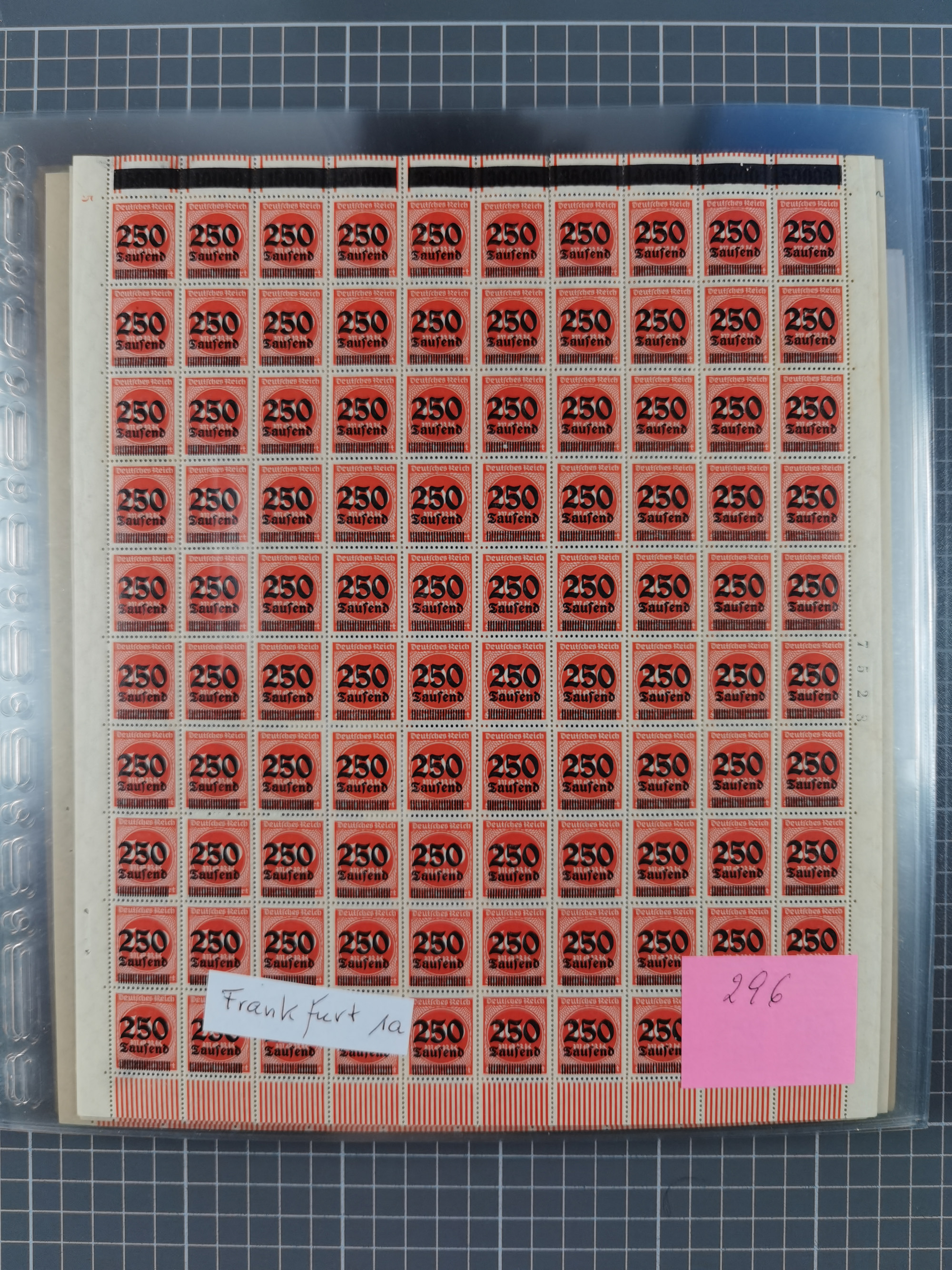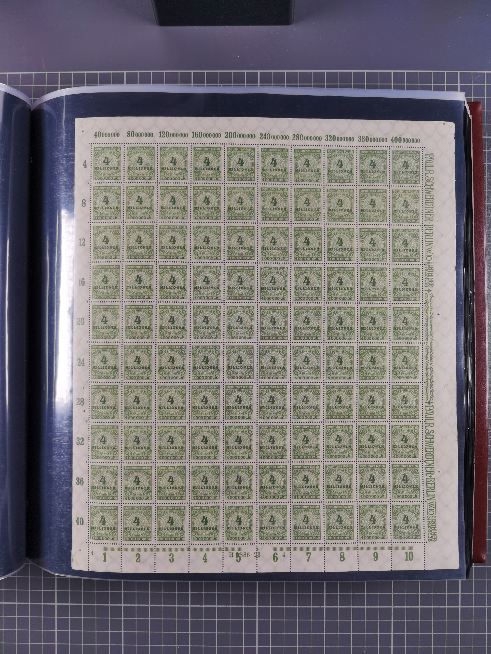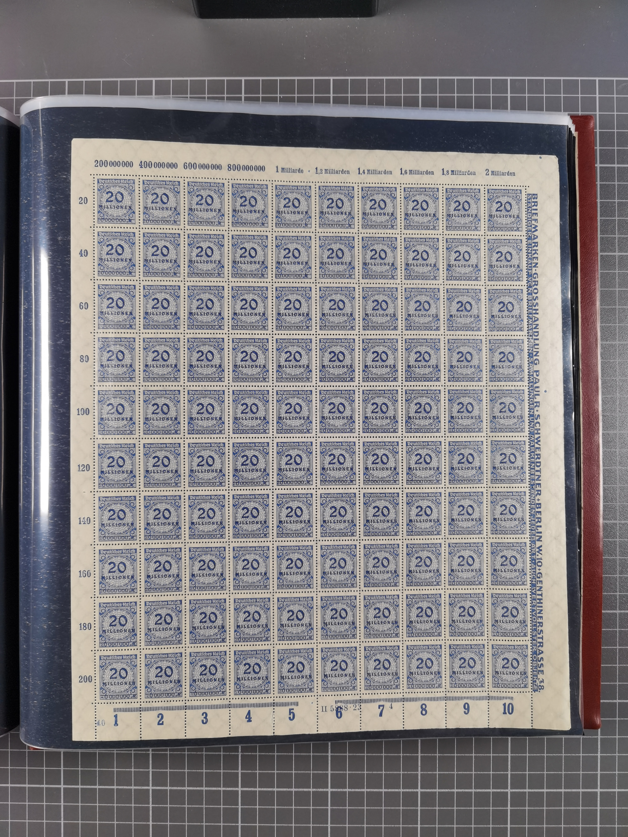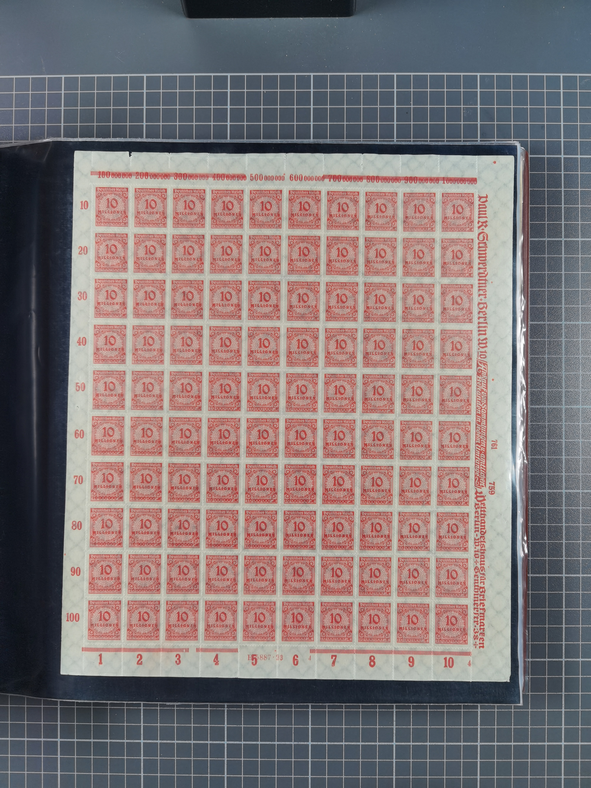 1923, meist postfrische Sammlung mit ca. 200 Bogen ex Mi.-Nr. 313-30, dabei u.a. Mi.-Nr. 330A (4) und 330B (3), gute Erhaltung, teils übliche Einschränkungen, in zwei Alben