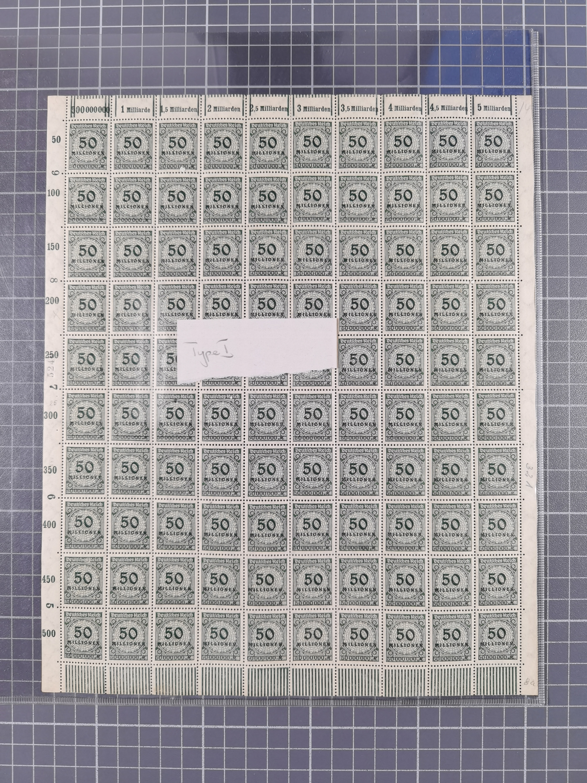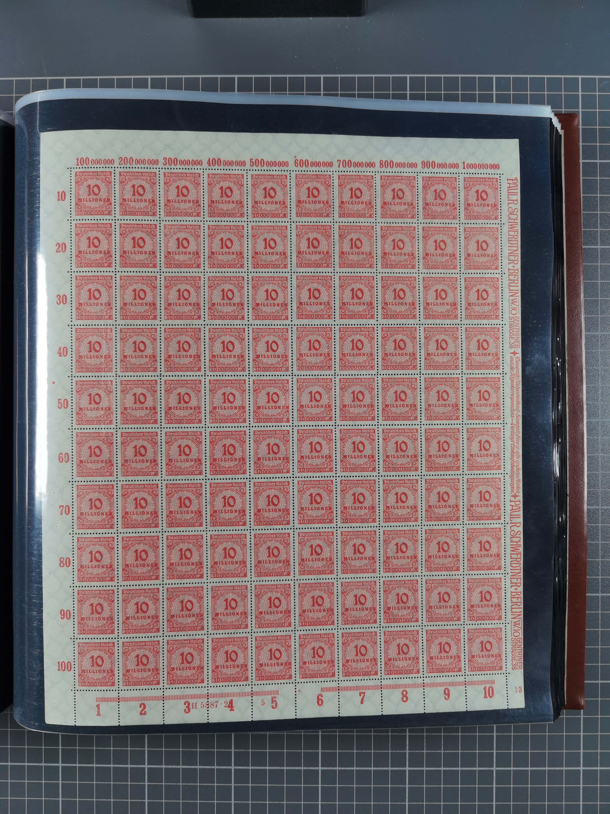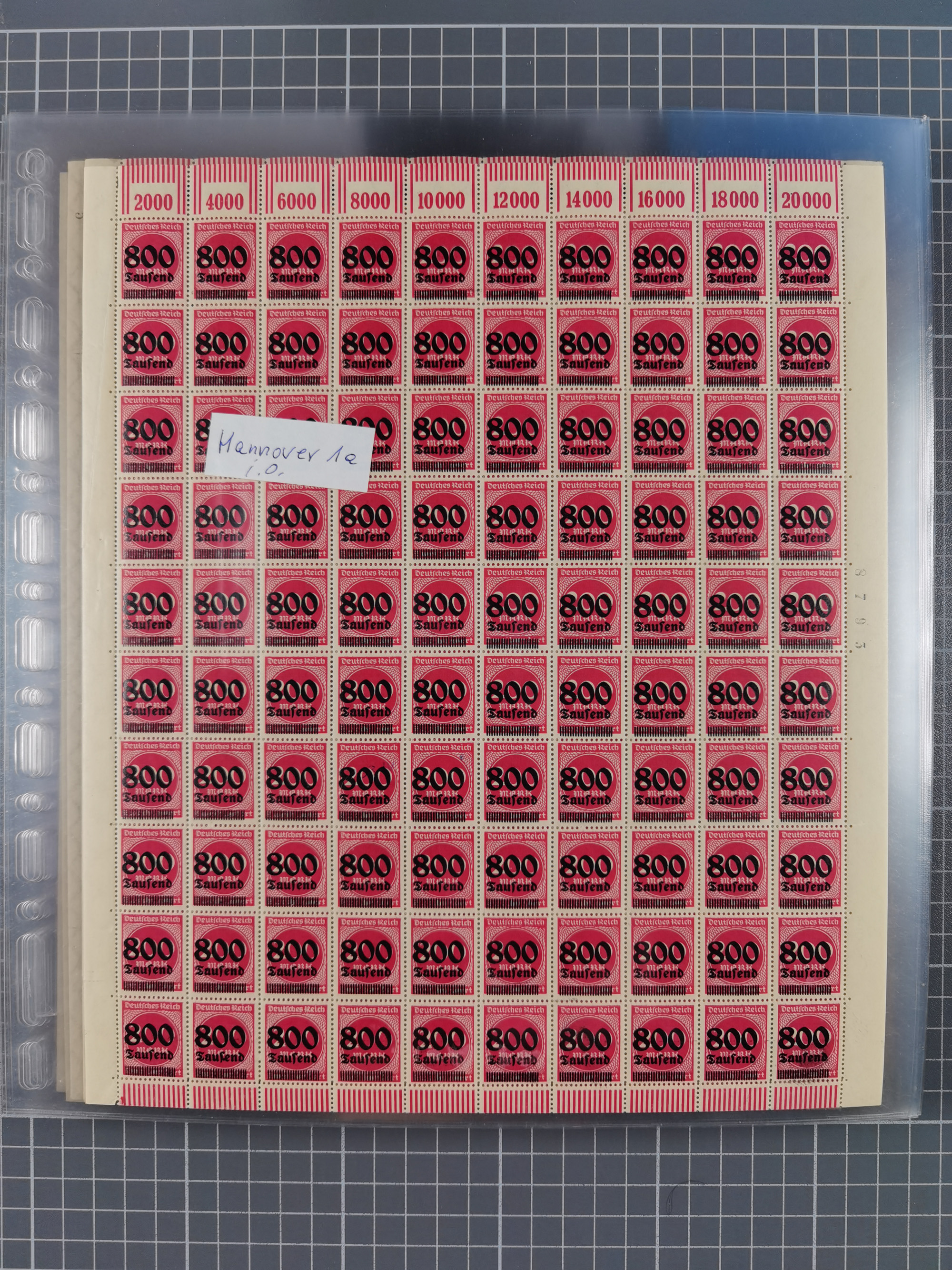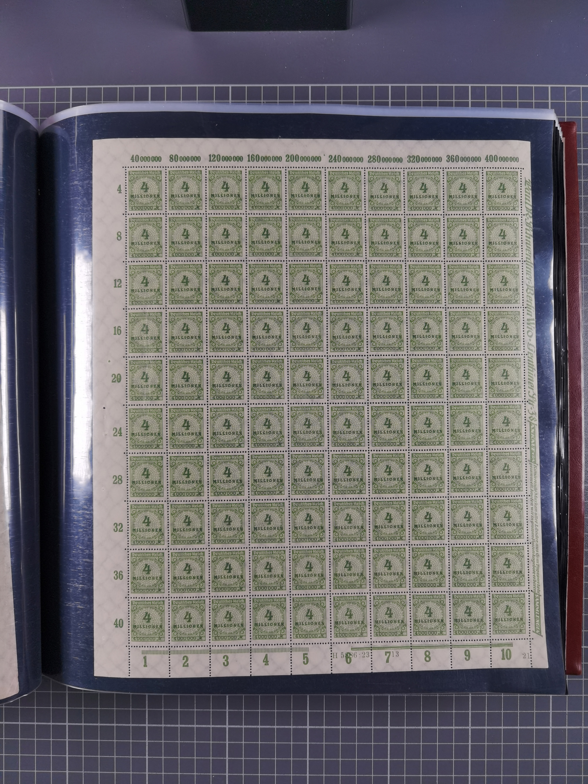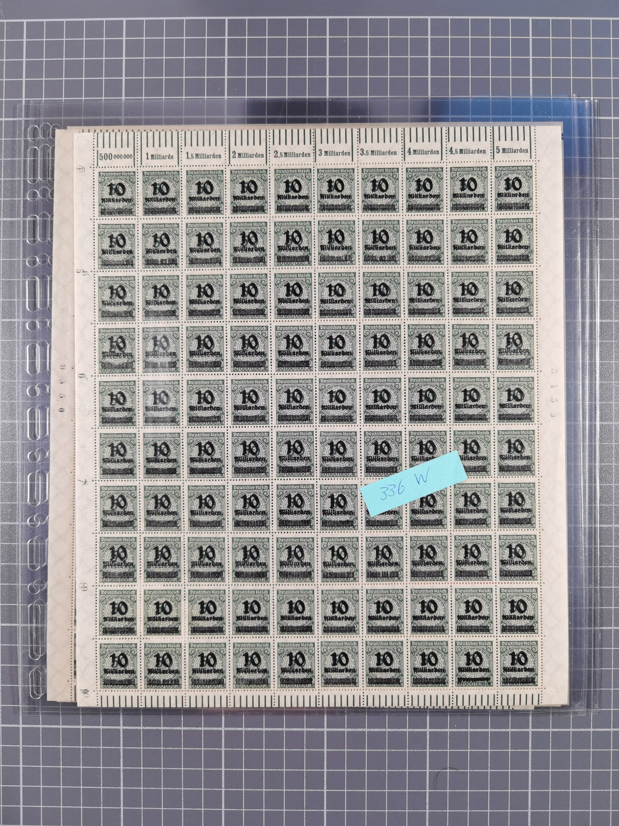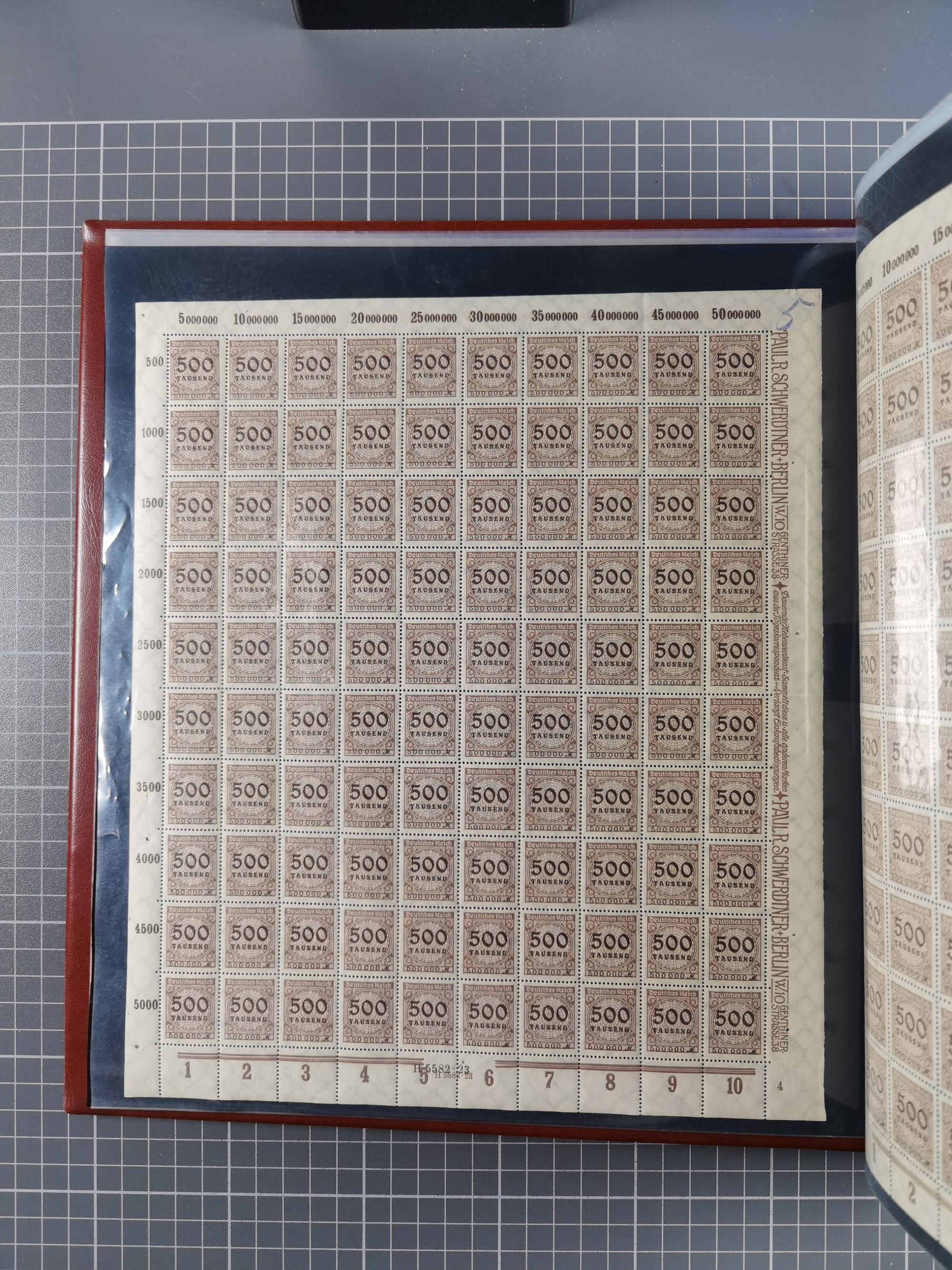 1923, meist postfrische Sammlung mit ca. 200 Bogen ex Mi.-Nr. 313-30, dabei u.a. Mi.-Nr. 330A (4) und 330B (3), gute Erhaltung, teils übliche Einschränkungen, in zwei Alben