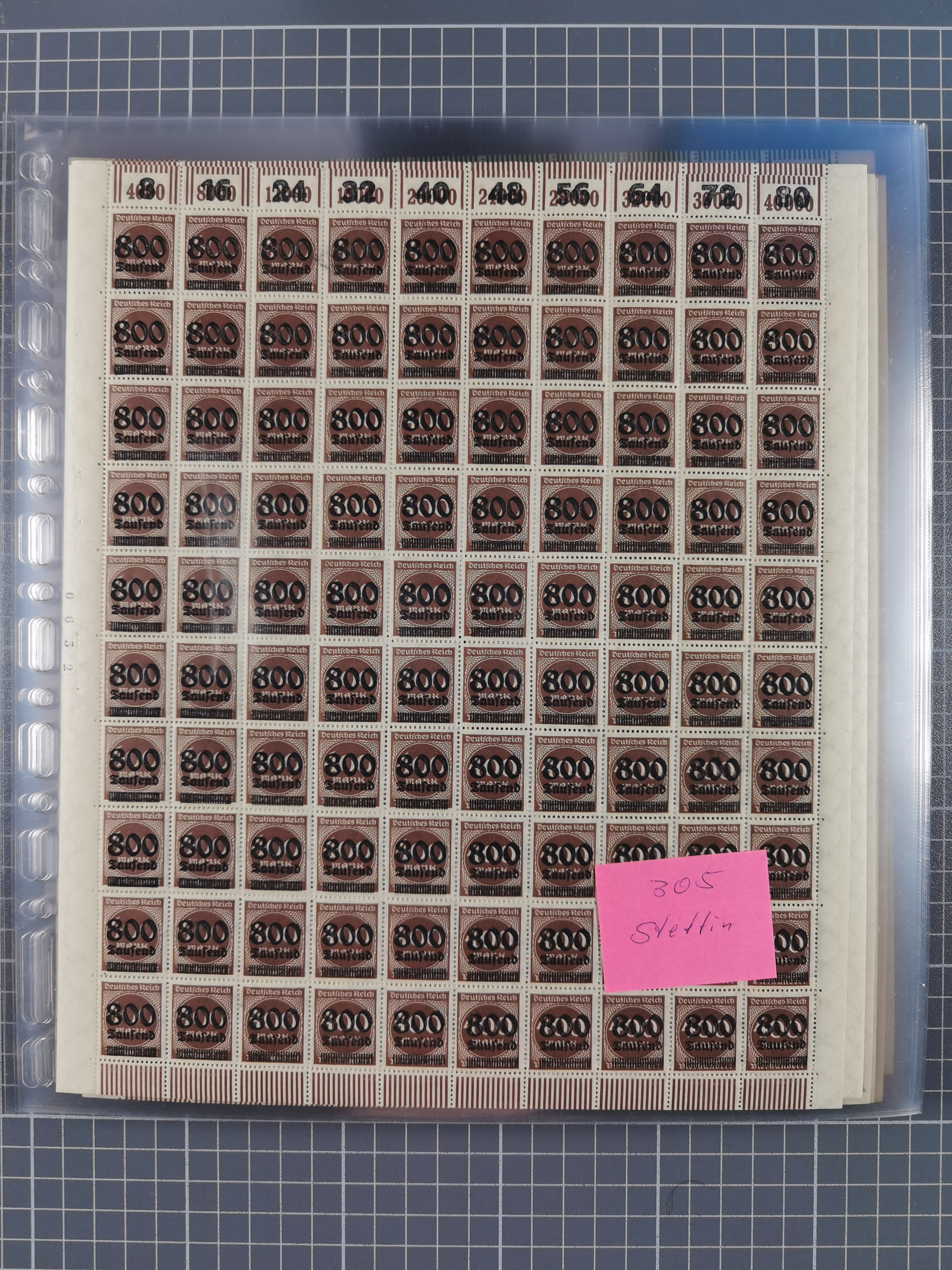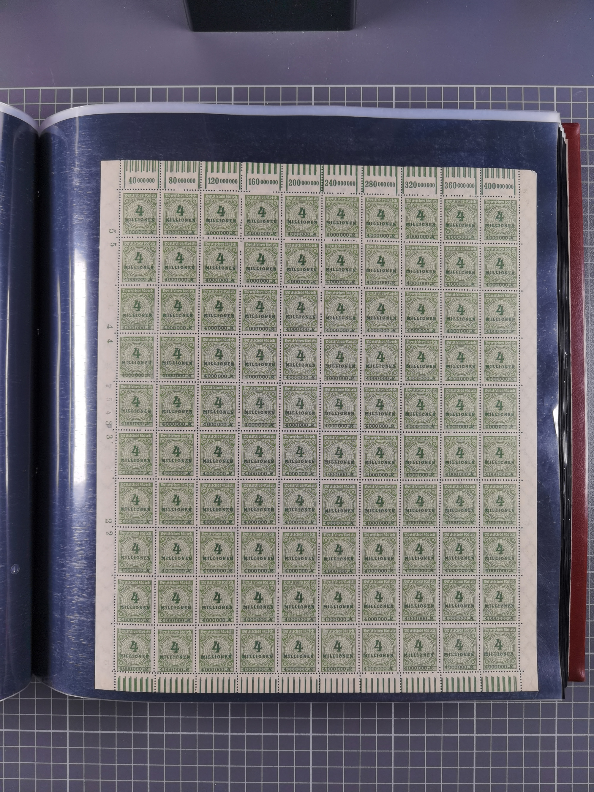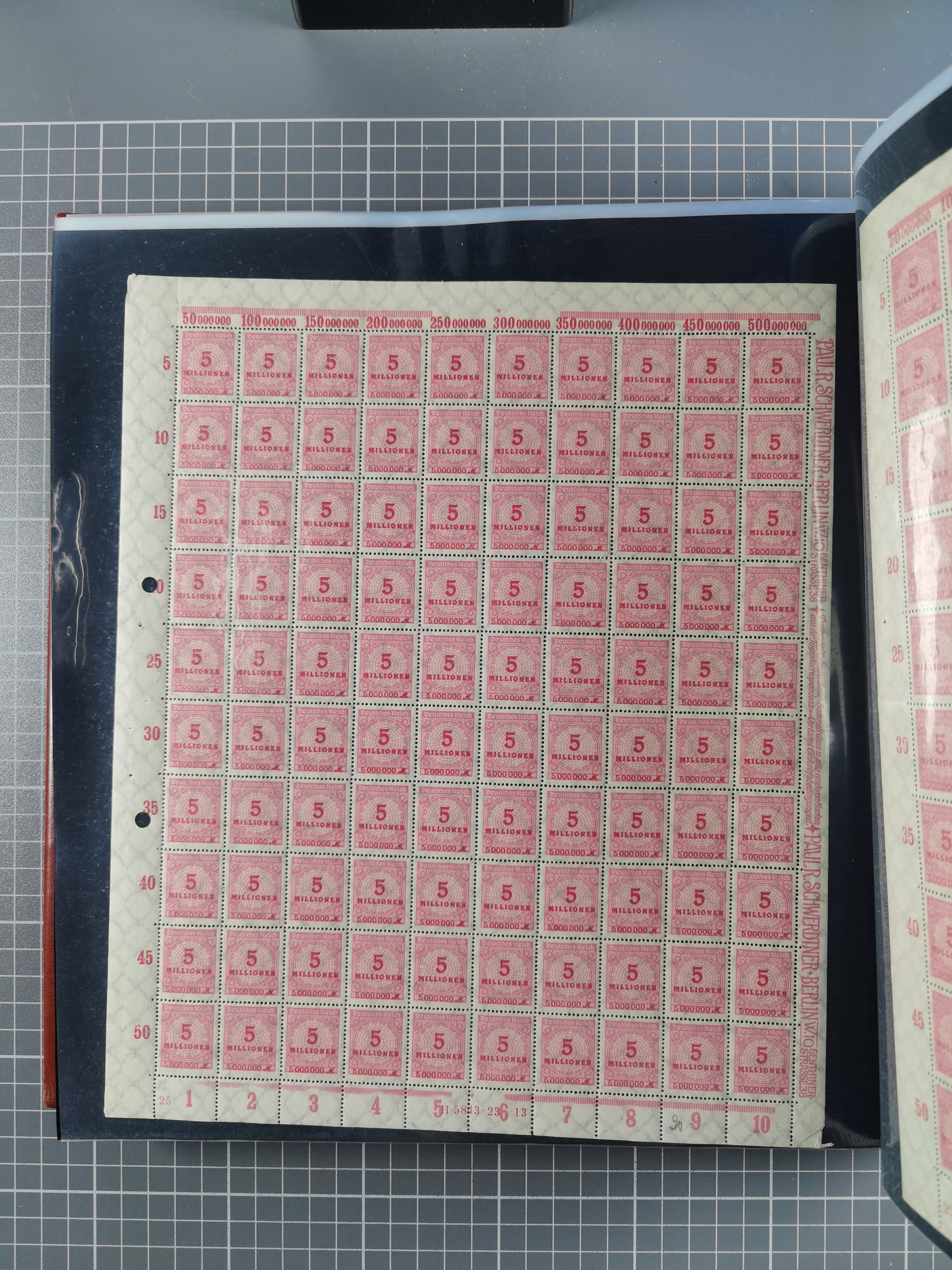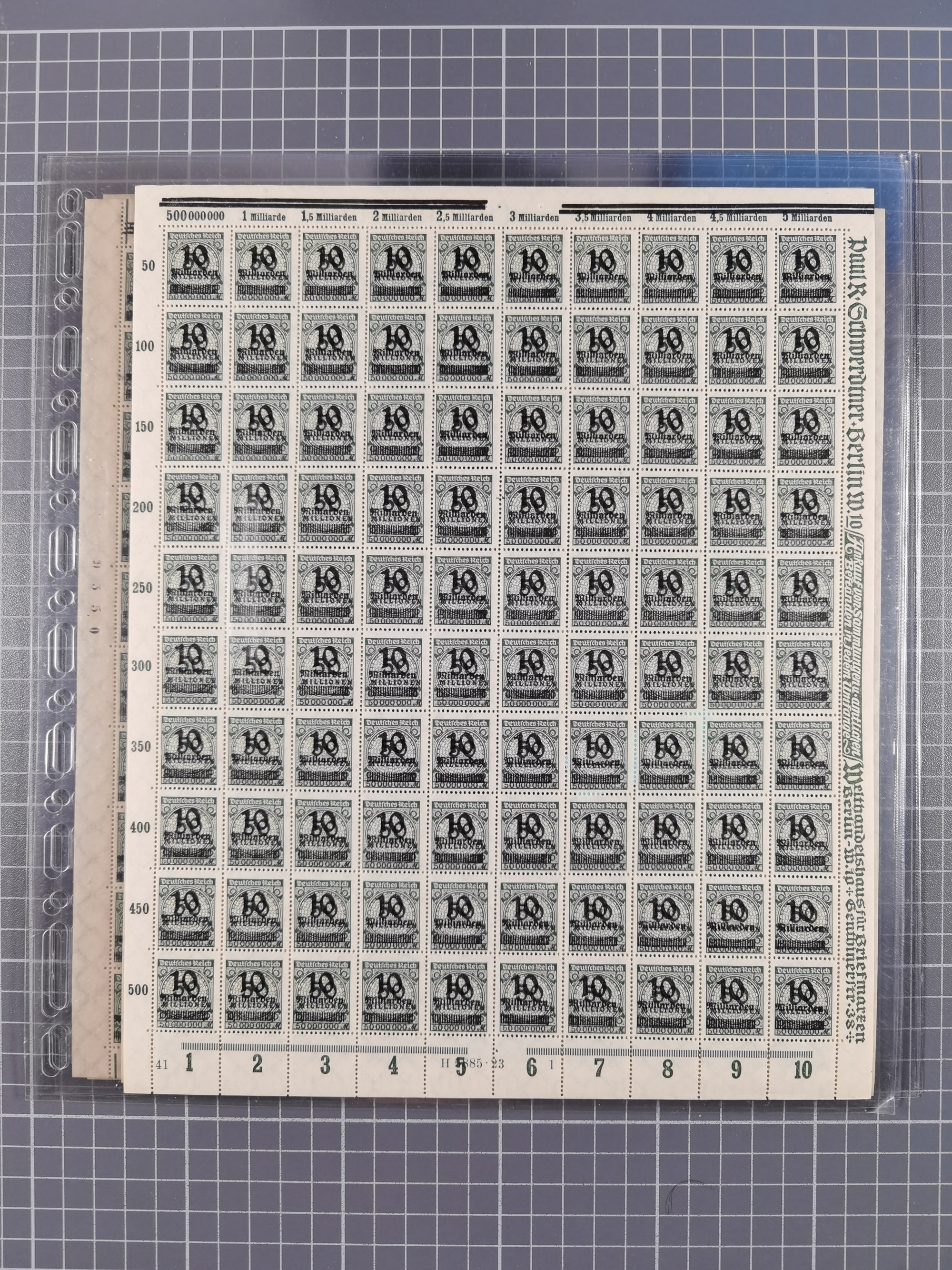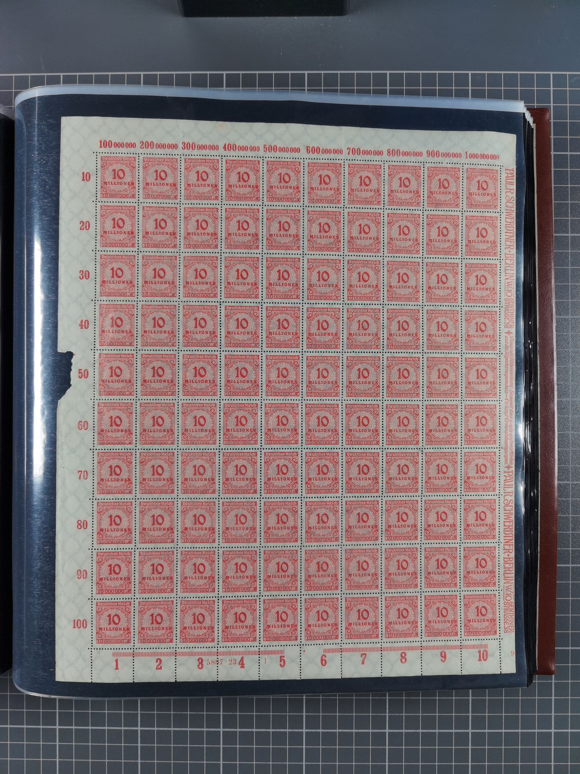 1923, meist postfrische Sammlung mit ca. 200 Bogen ex Mi.-Nr. 313-30, dabei u.a. Mi.-Nr. 330A (4) und 330B (3), gute Erhaltung, teils übliche Einschränkungen, in zwei Alben