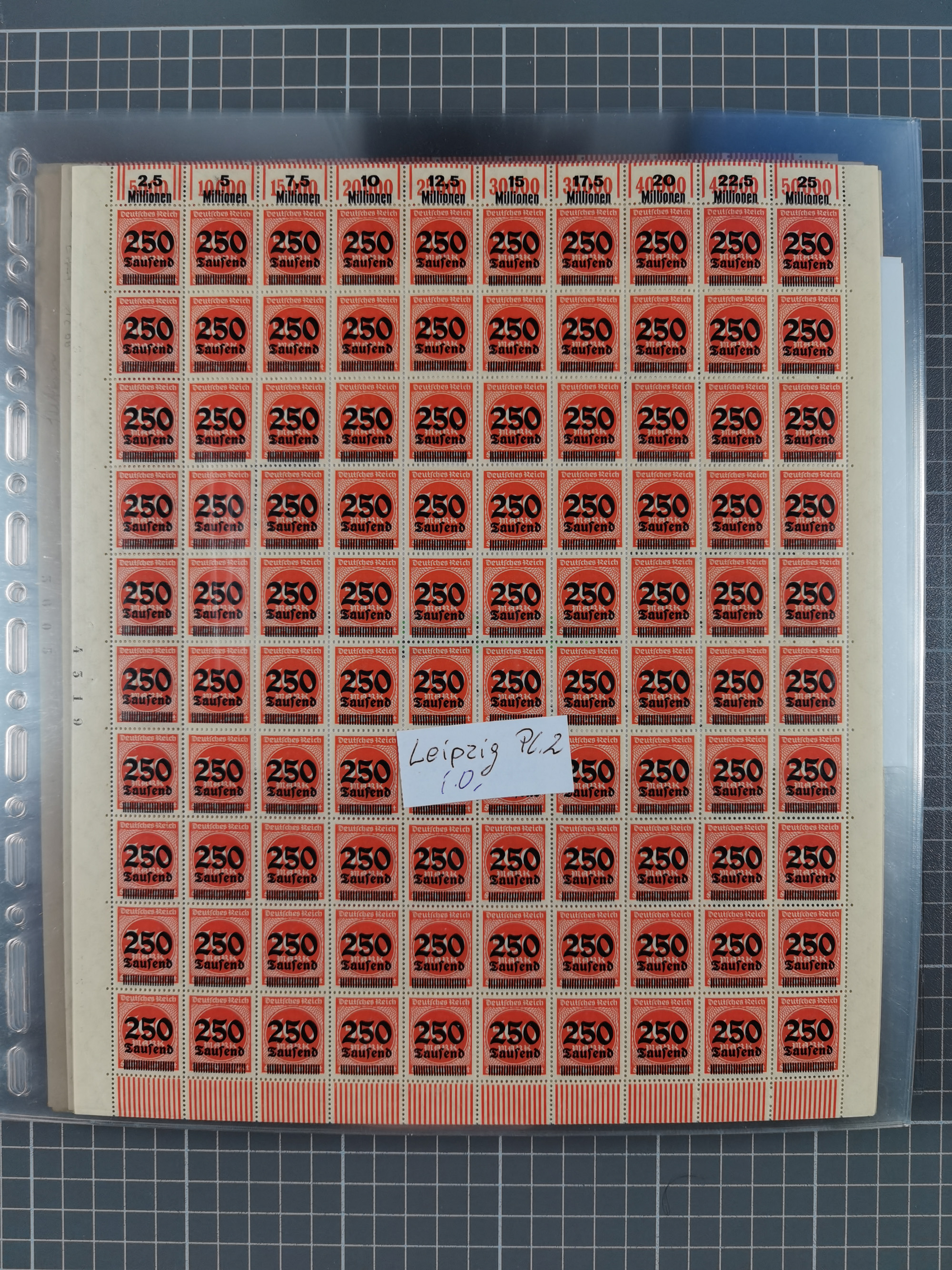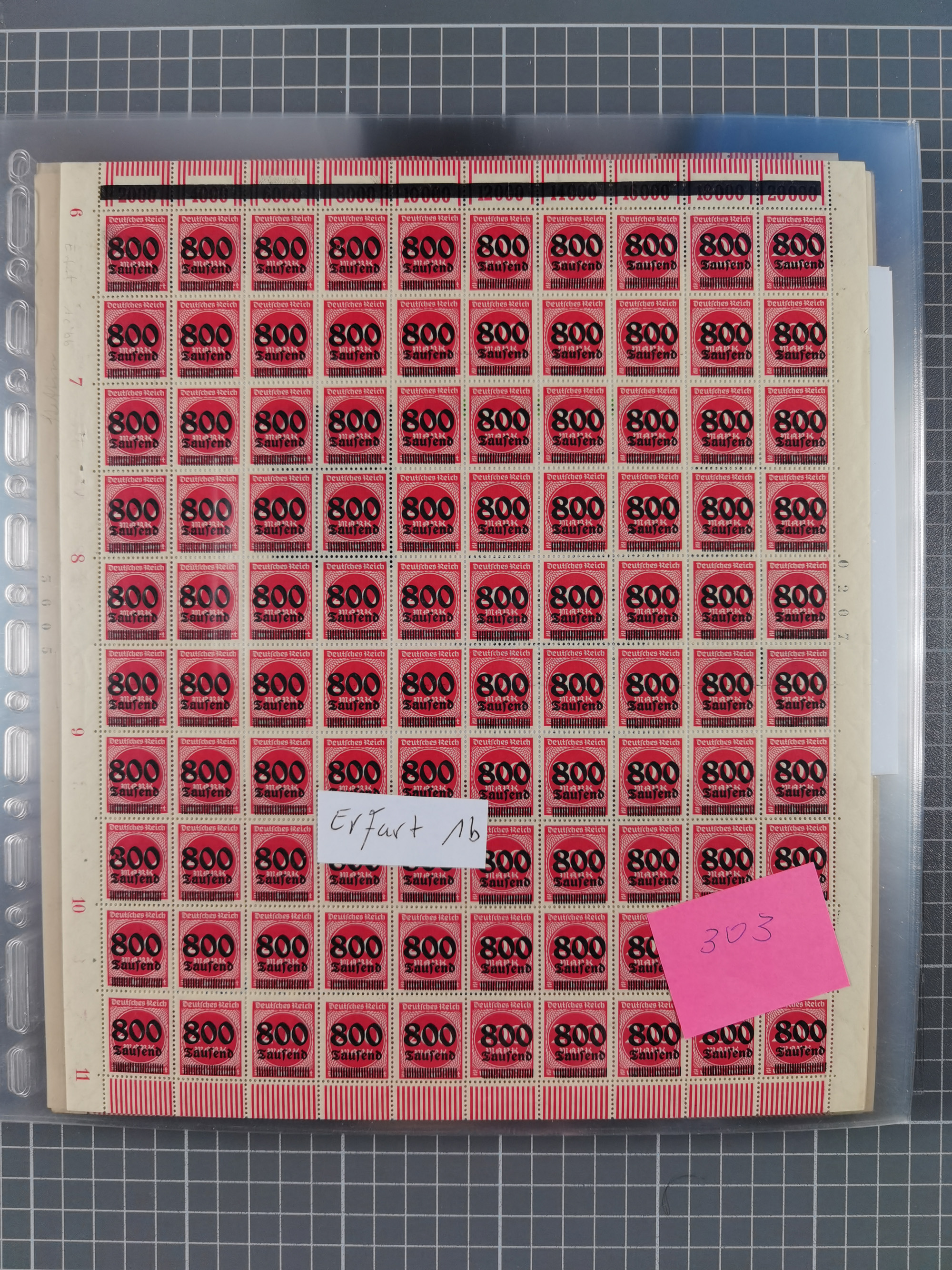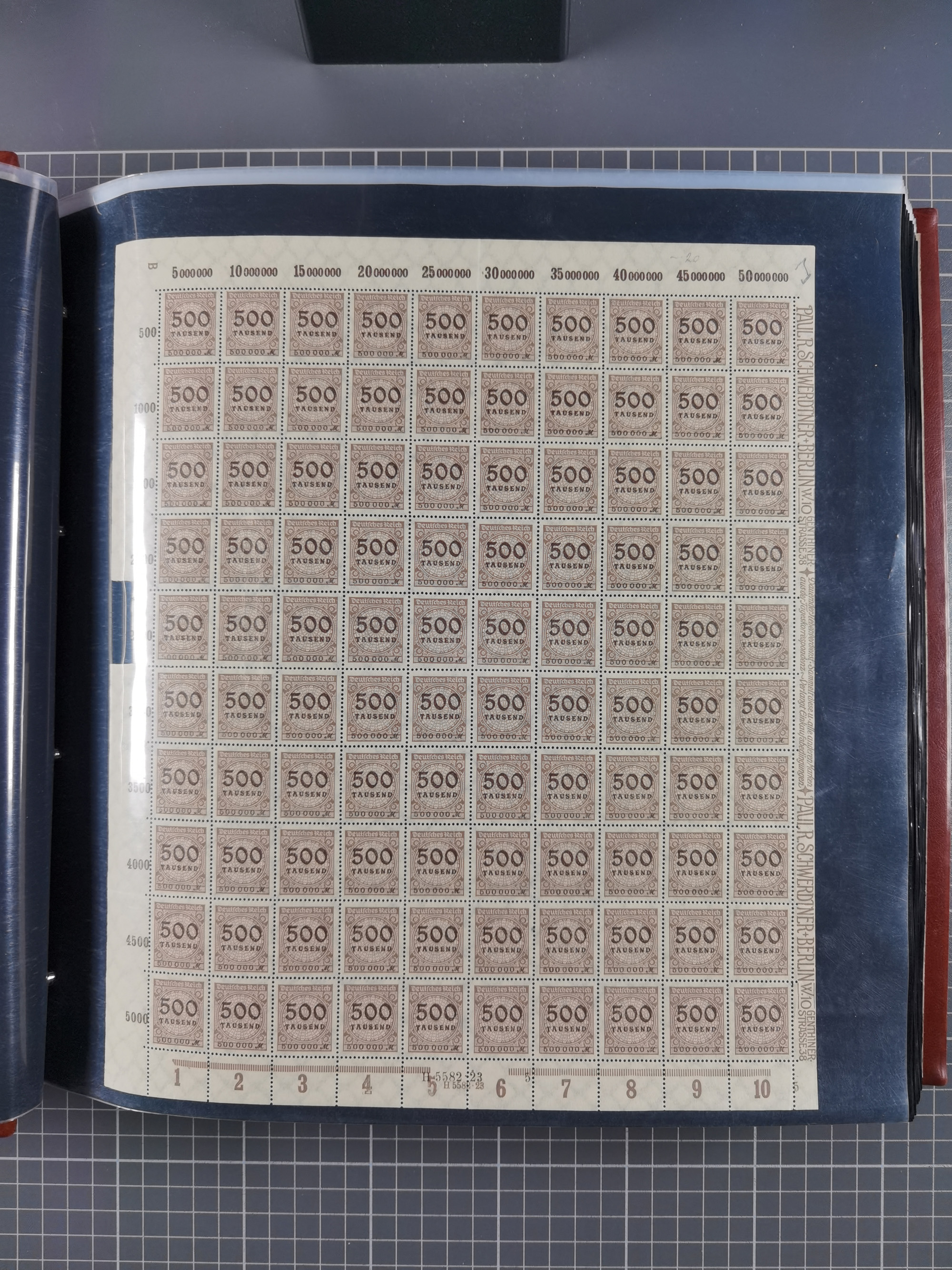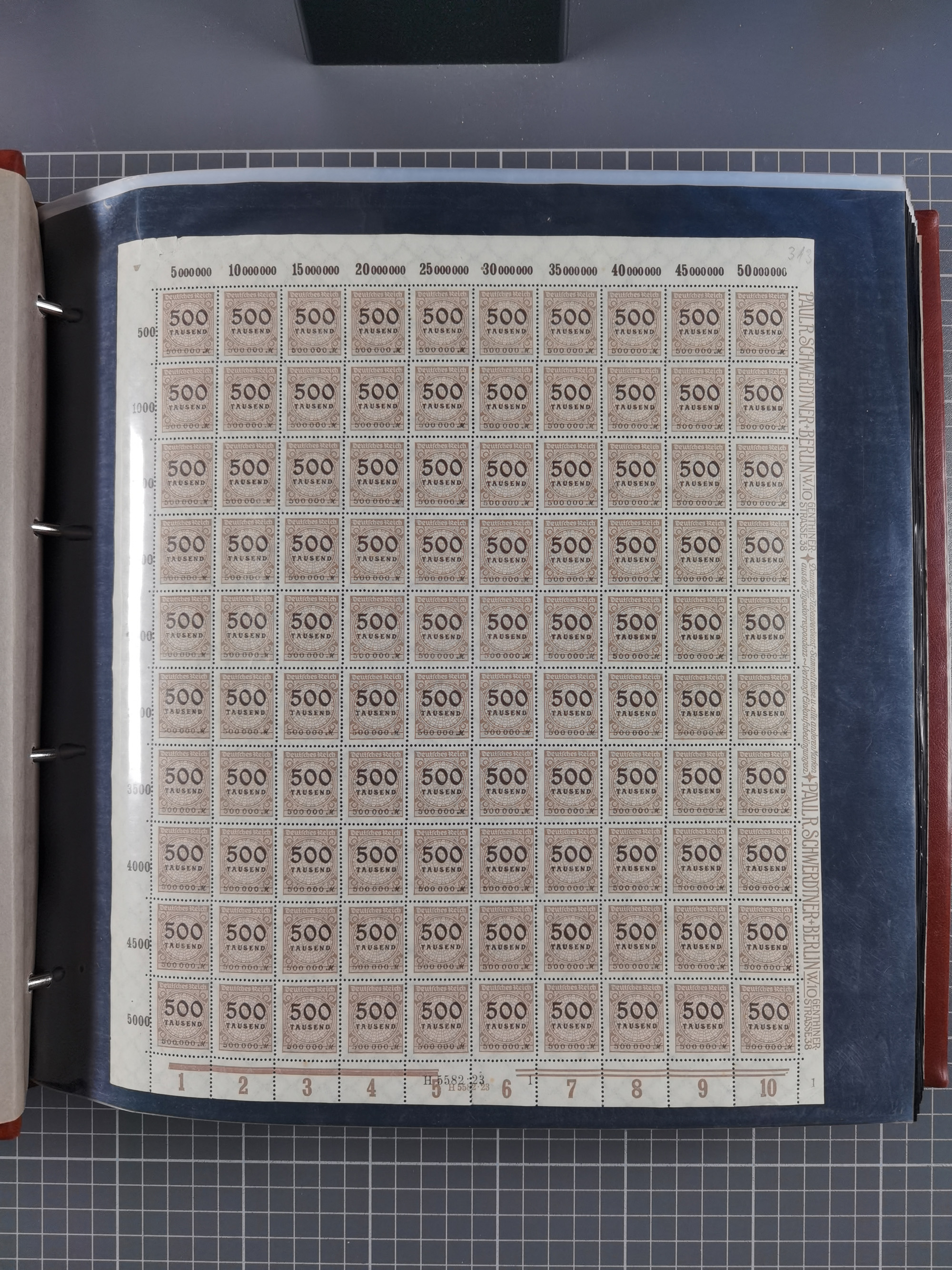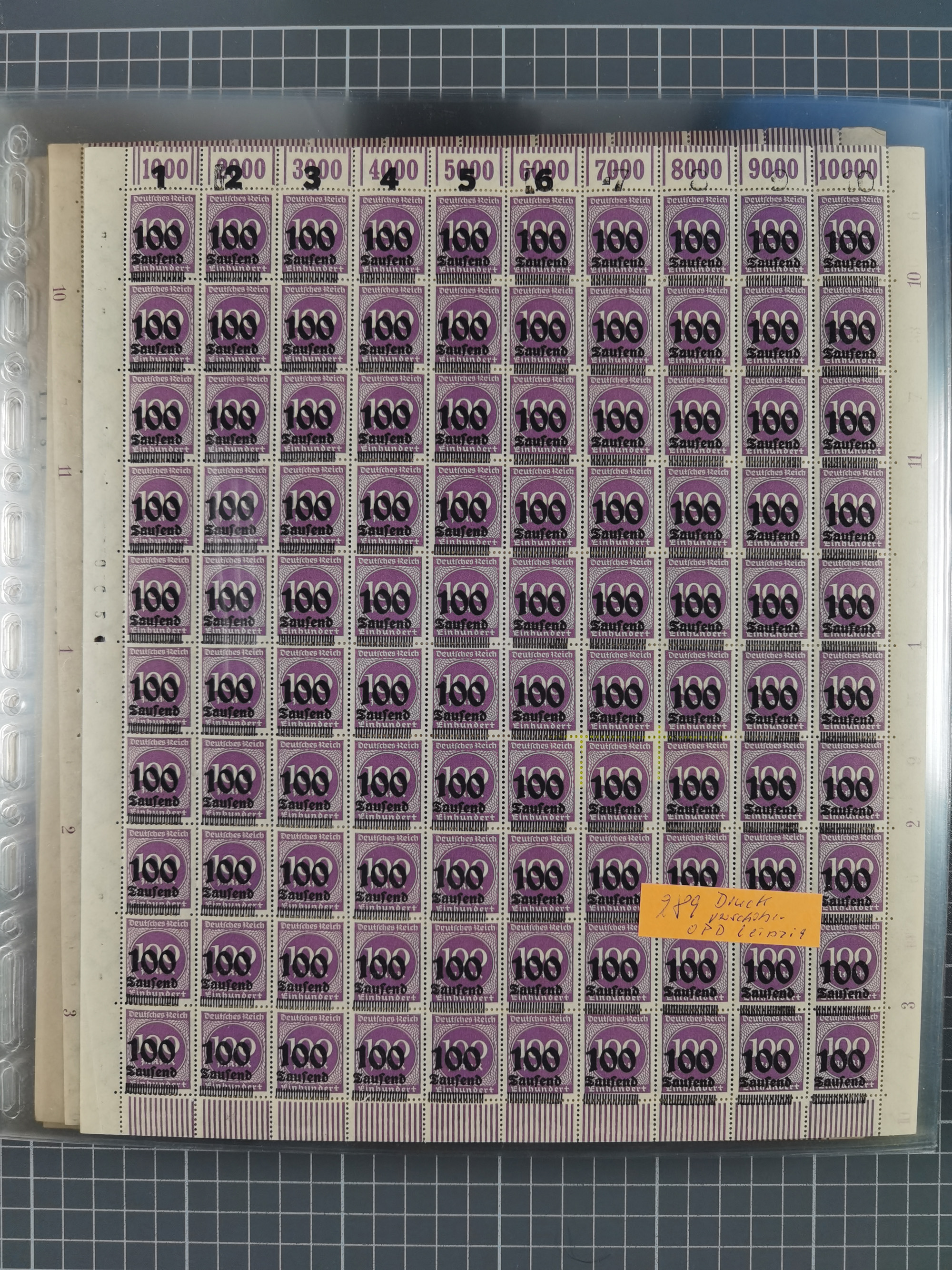 1923, meist postfrische Sammlung mit ca. 200 Bogen ex Mi.-Nr. 313-30, dabei u.a. Mi.-Nr. 330A (4) und 330B (3), gute Erhaltung, teils übliche Einschränkungen, in zwei Alben