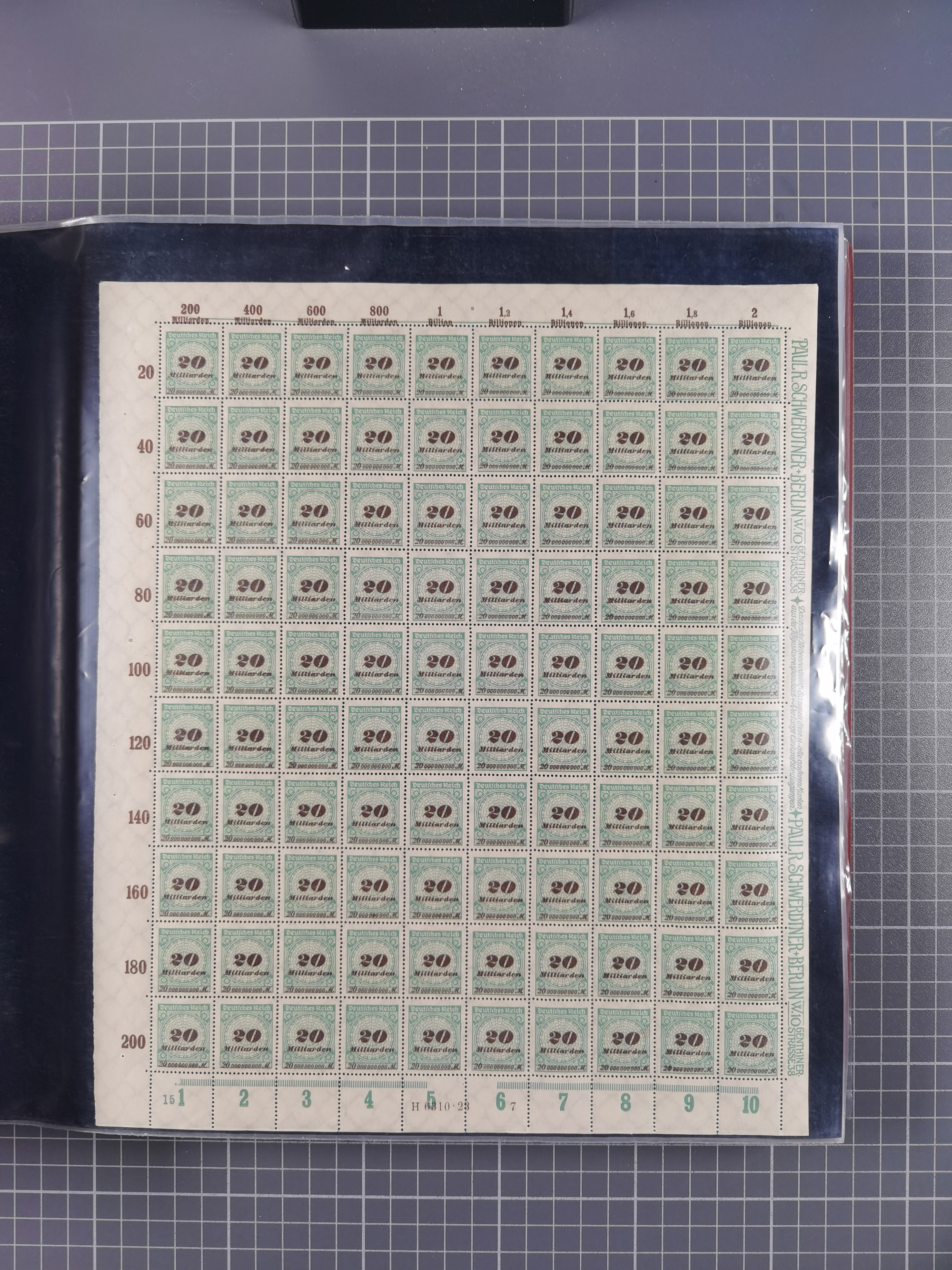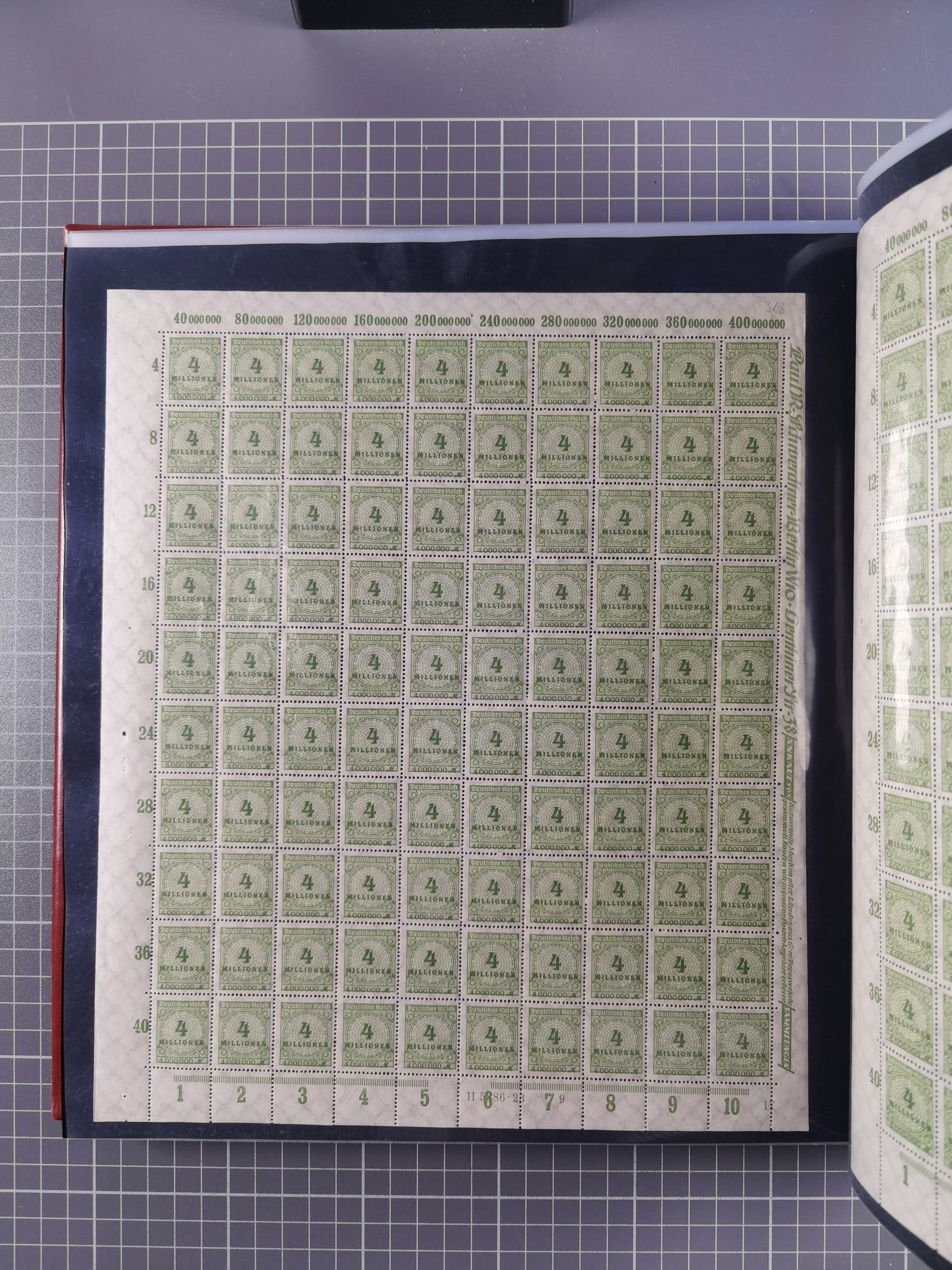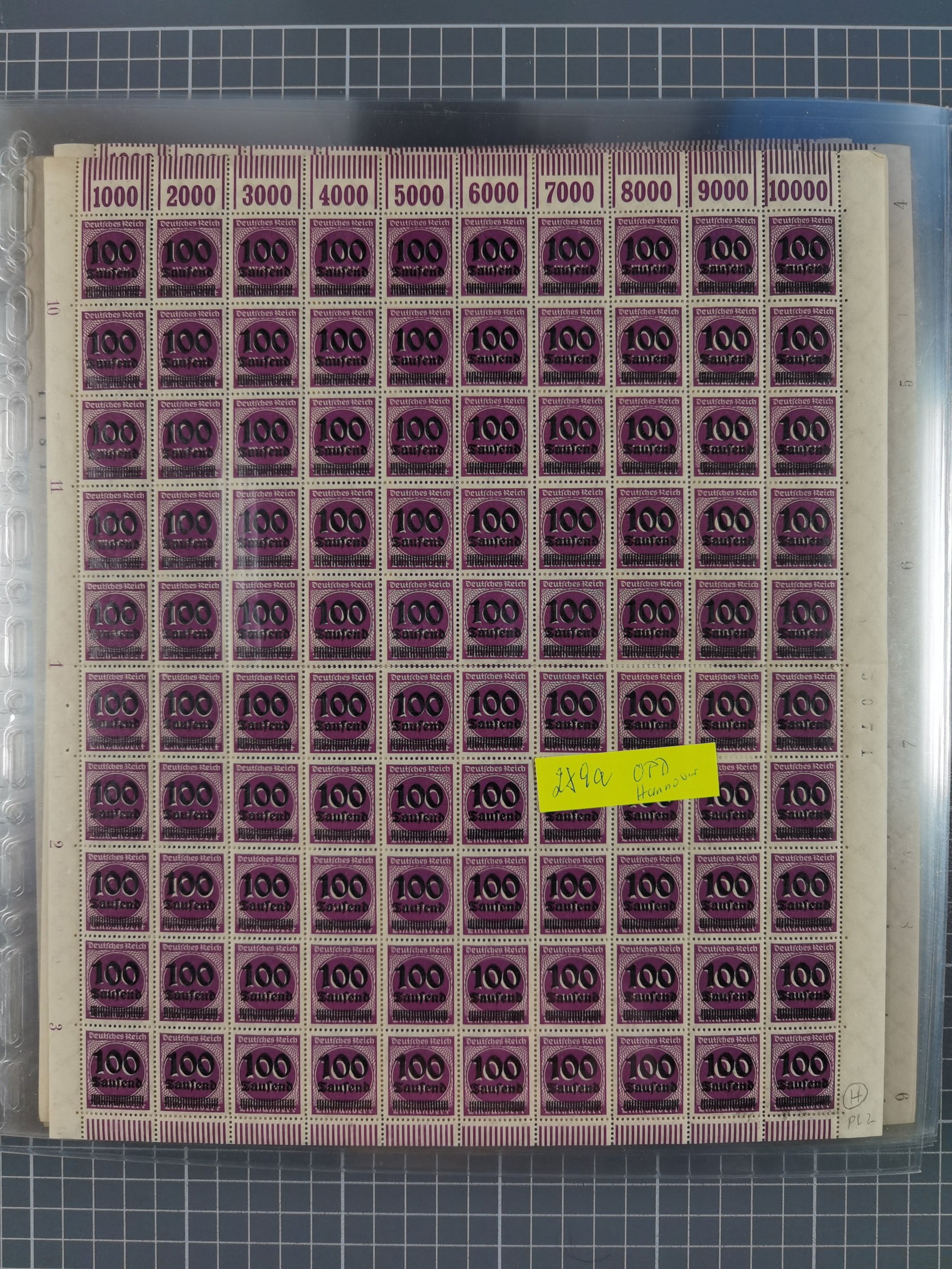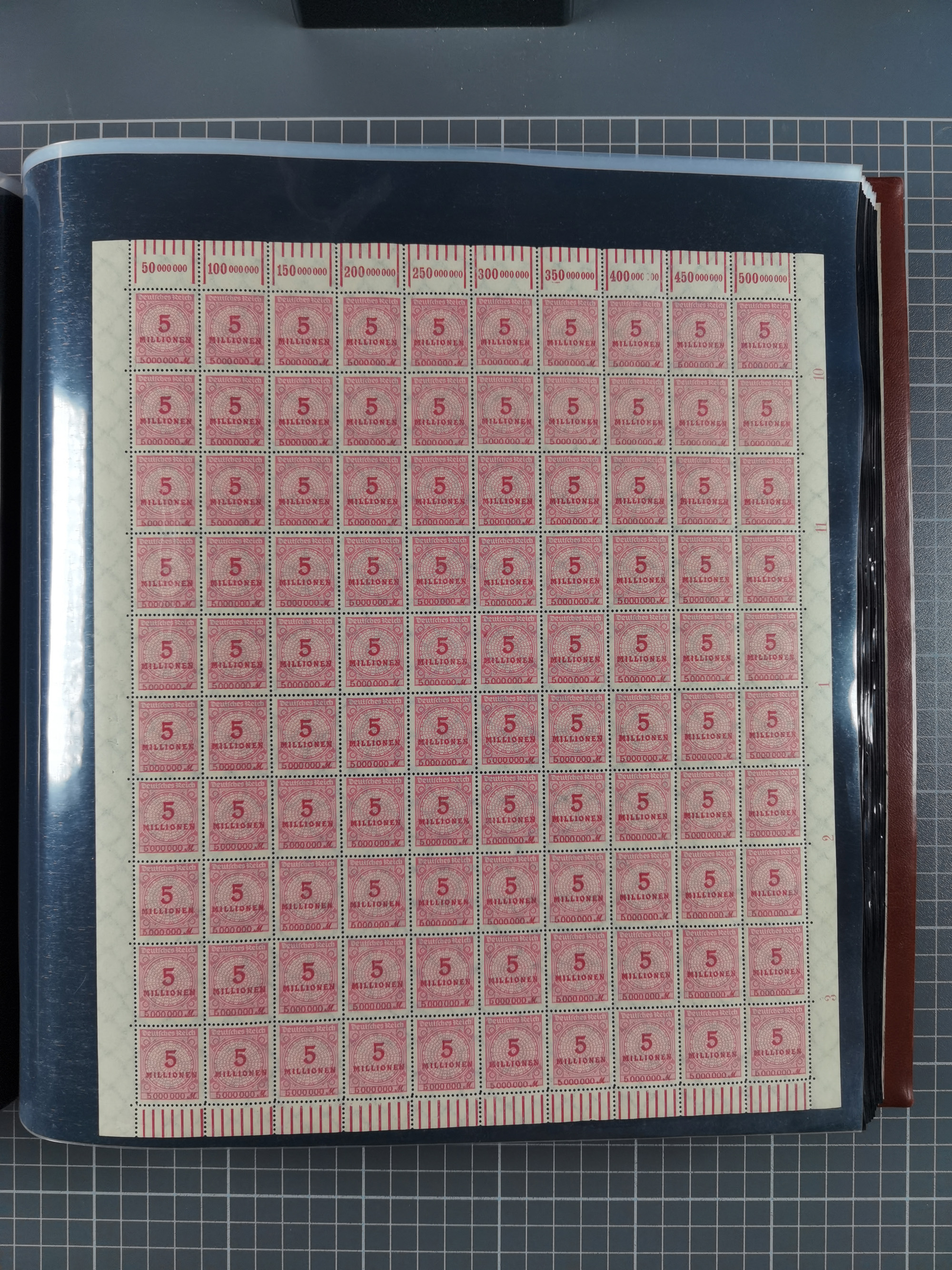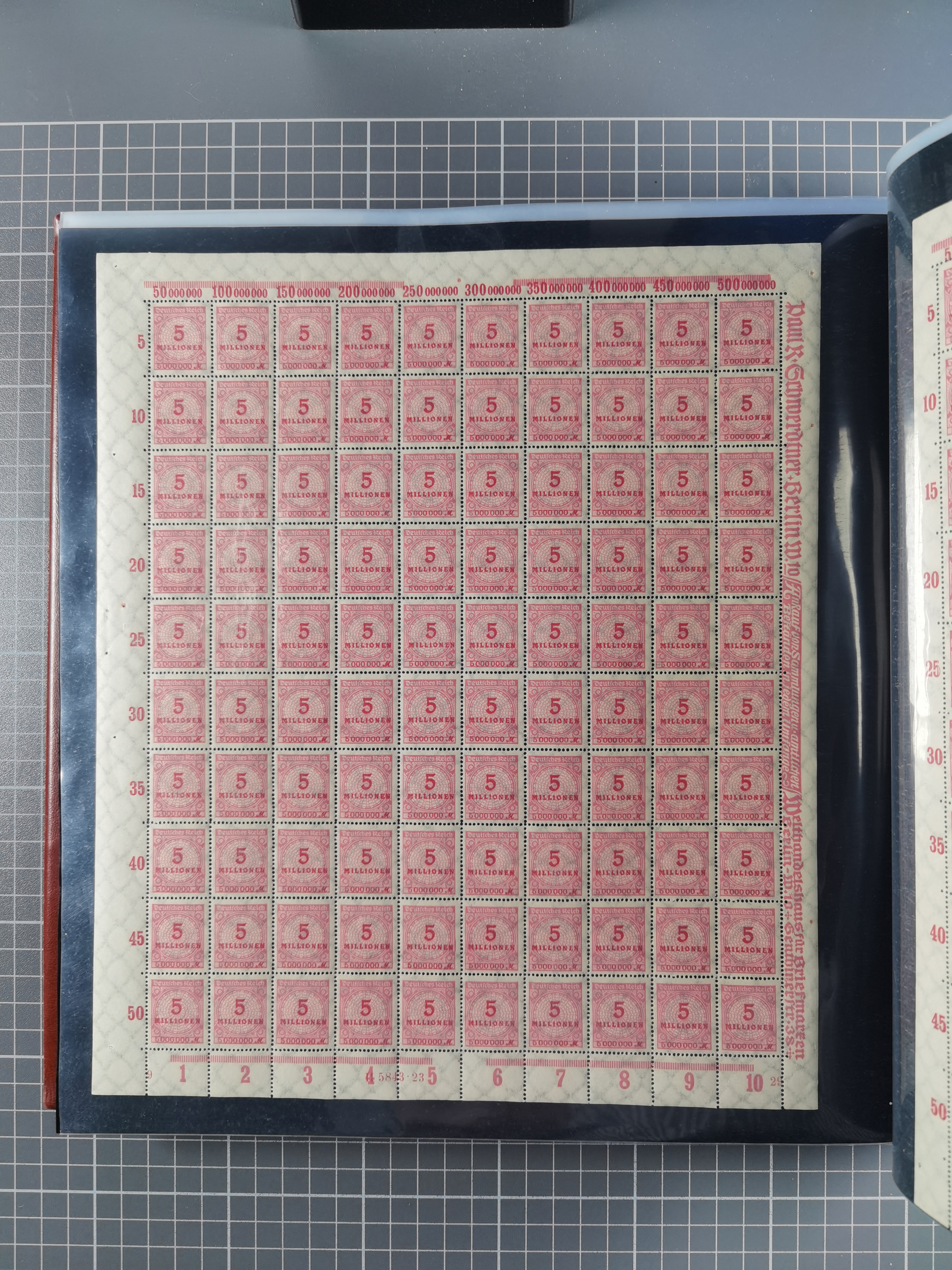 1923, meist postfrische Sammlung mit ca. 200 Bogen ex Mi.-Nr. 313-30, dabei u.a. Mi.-Nr. 330A (4) und 330B (3), gute Erhaltung, teils übliche Einschränkungen, in zwei Alben
