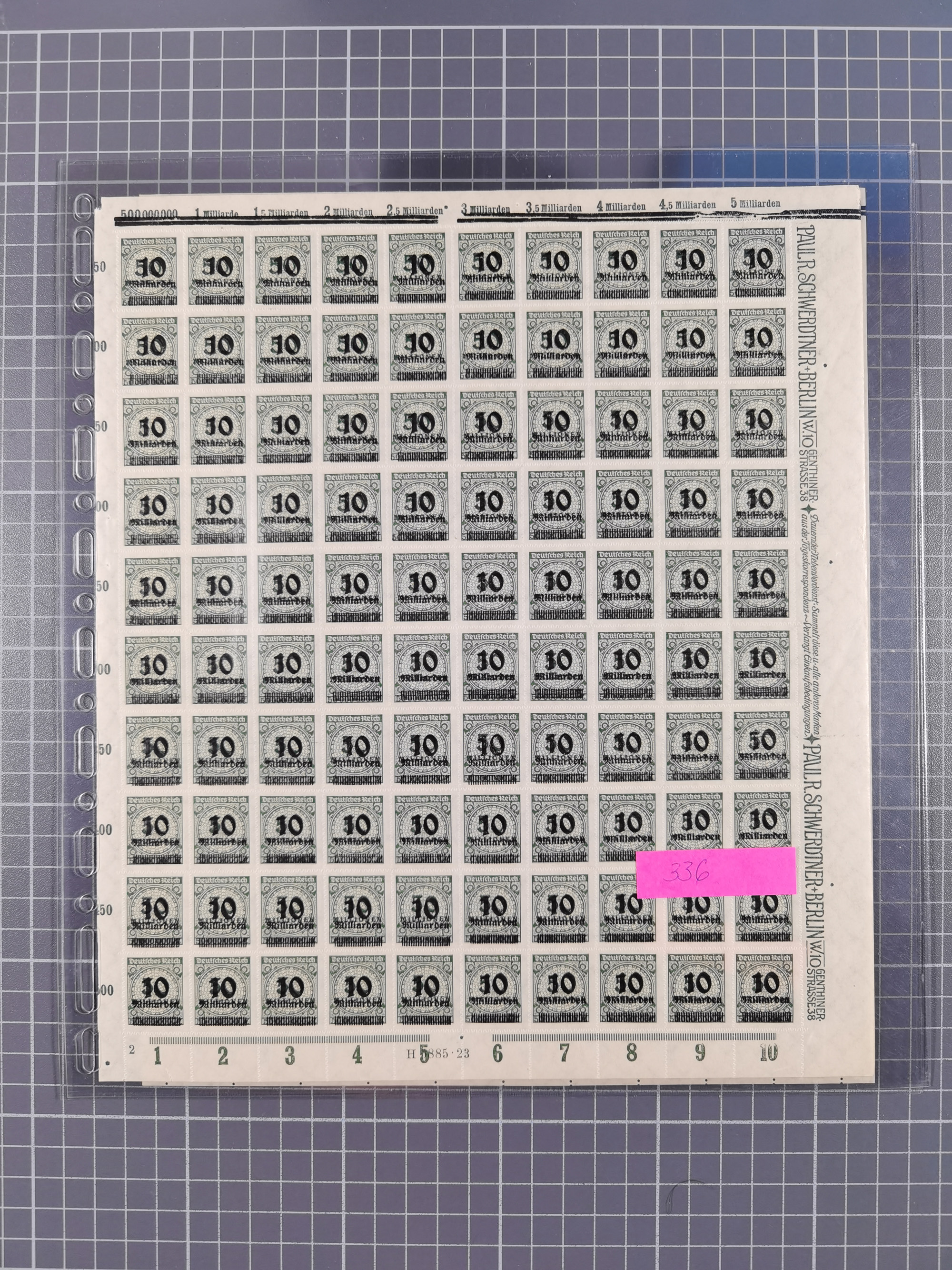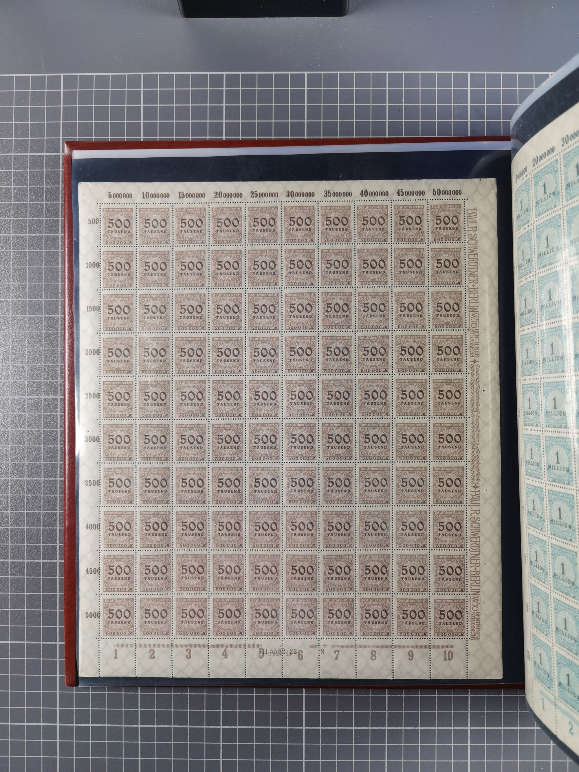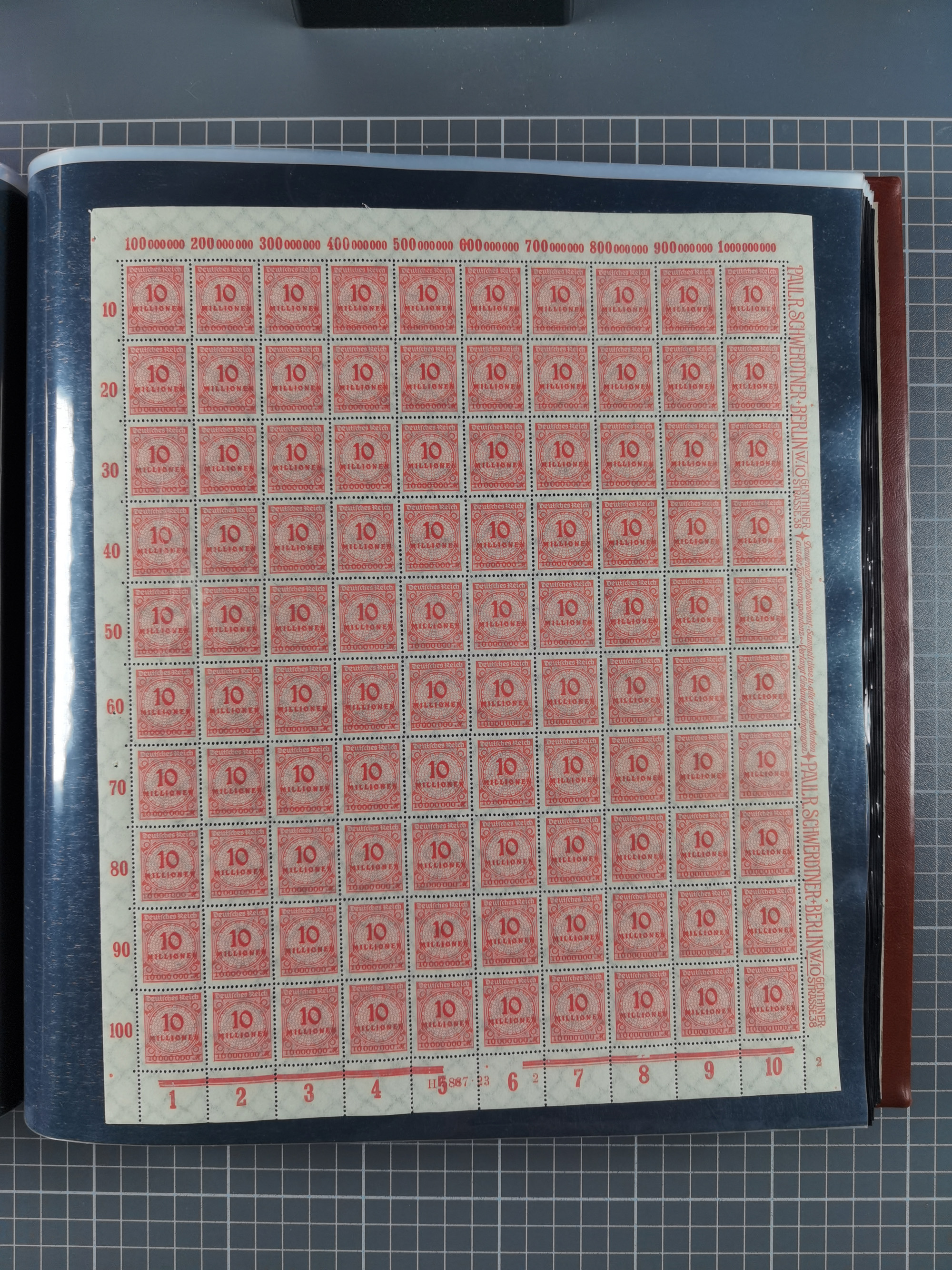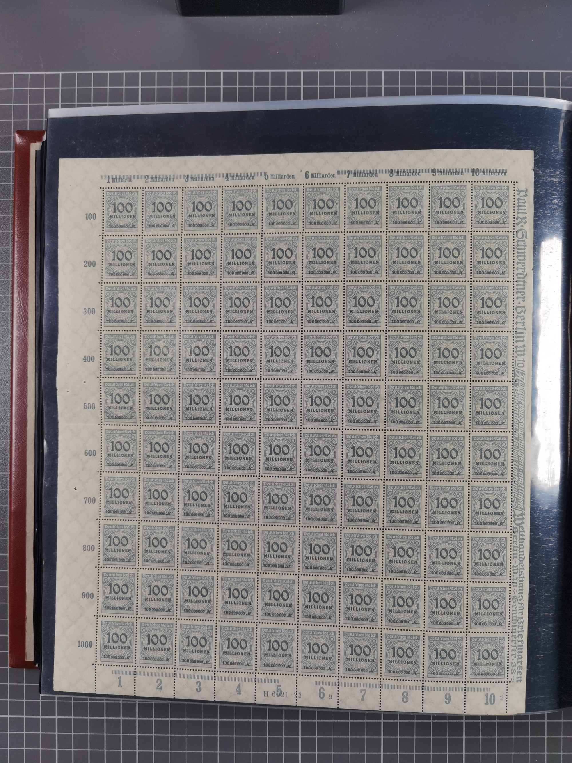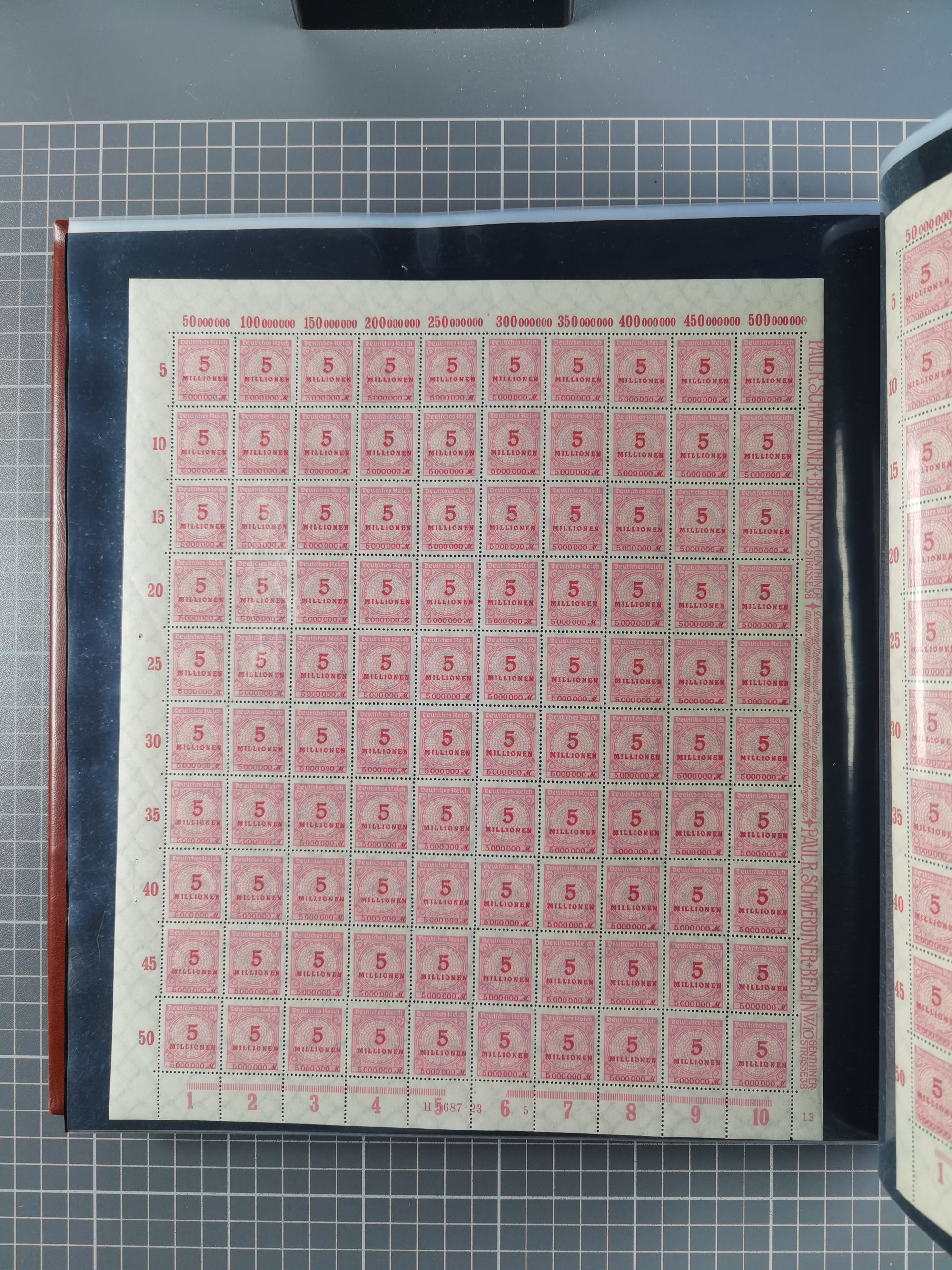 1923, meist postfrische Sammlung mit ca. 200 Bogen ex Mi.-Nr. 313-30, dabei u.a. Mi.-Nr. 330A (4) und 330B (3), gute Erhaltung, teils übliche Einschränkungen, in zwei Alben