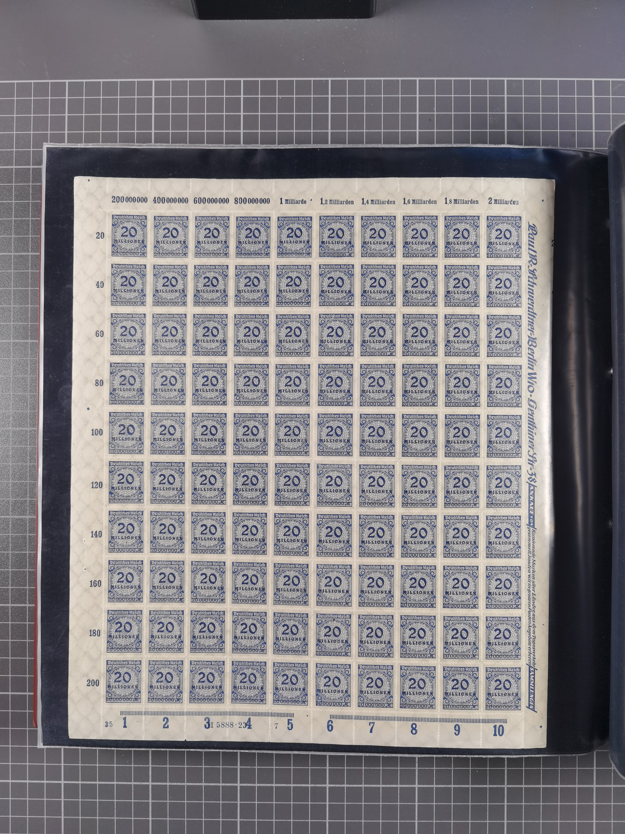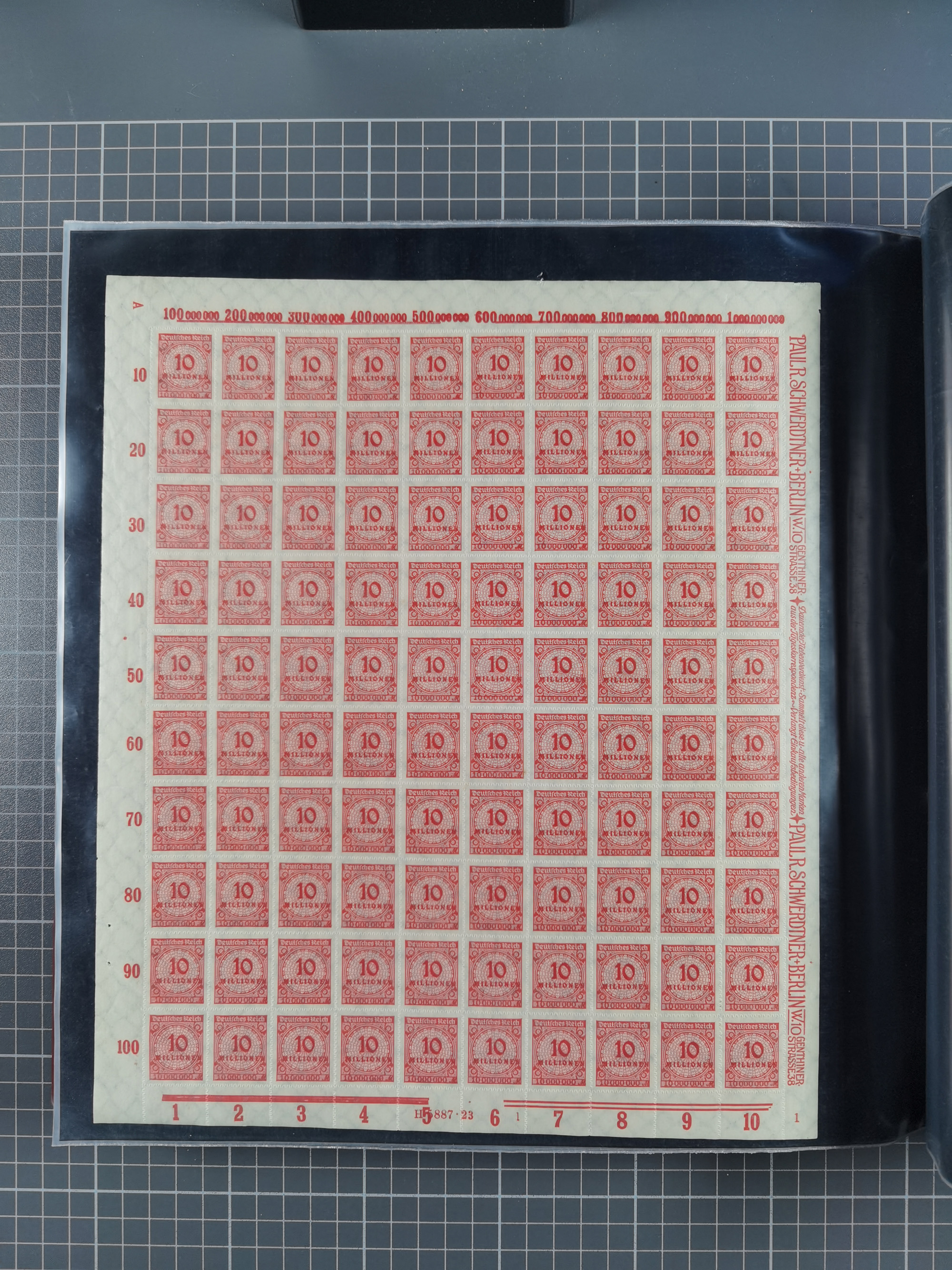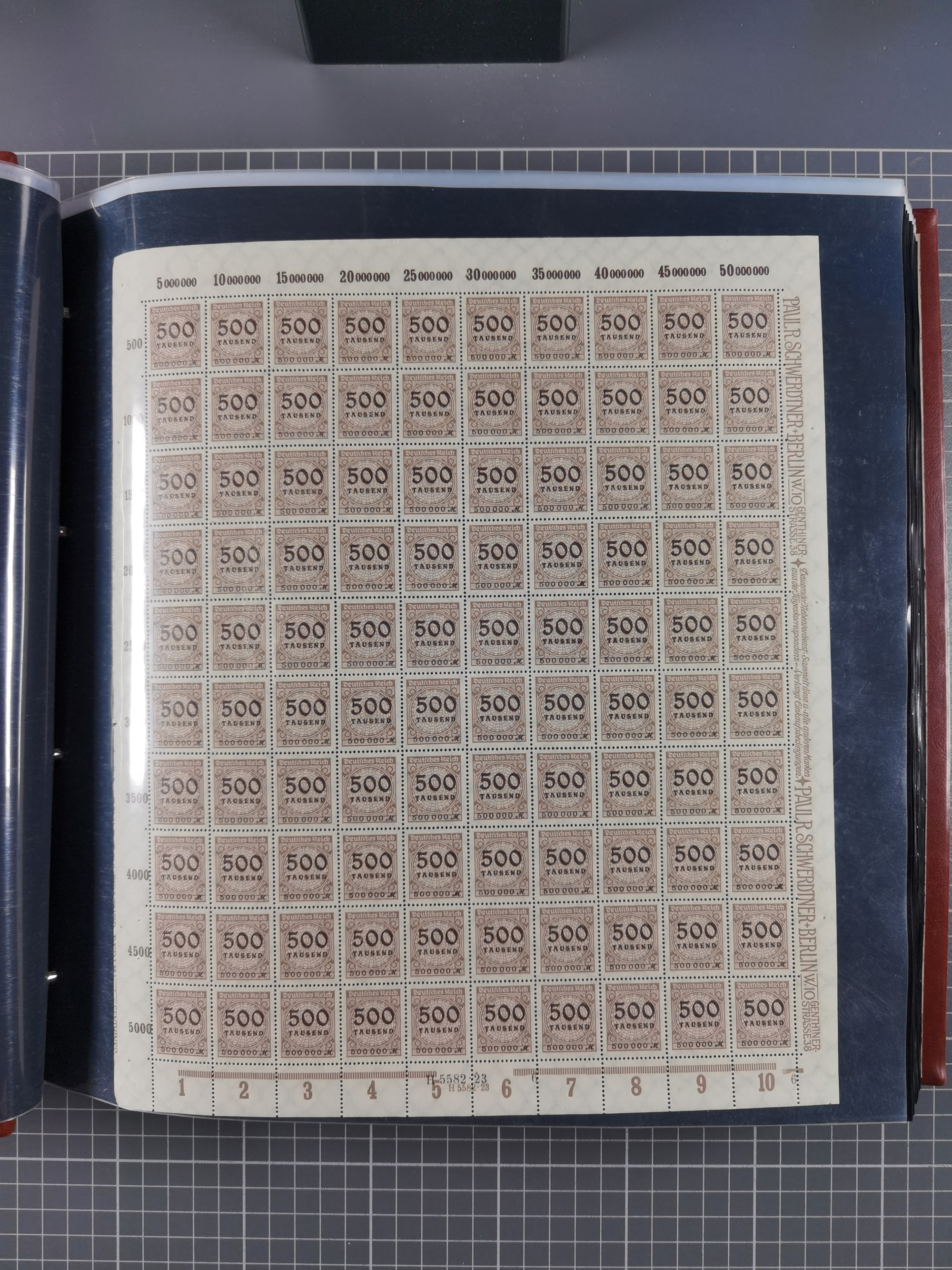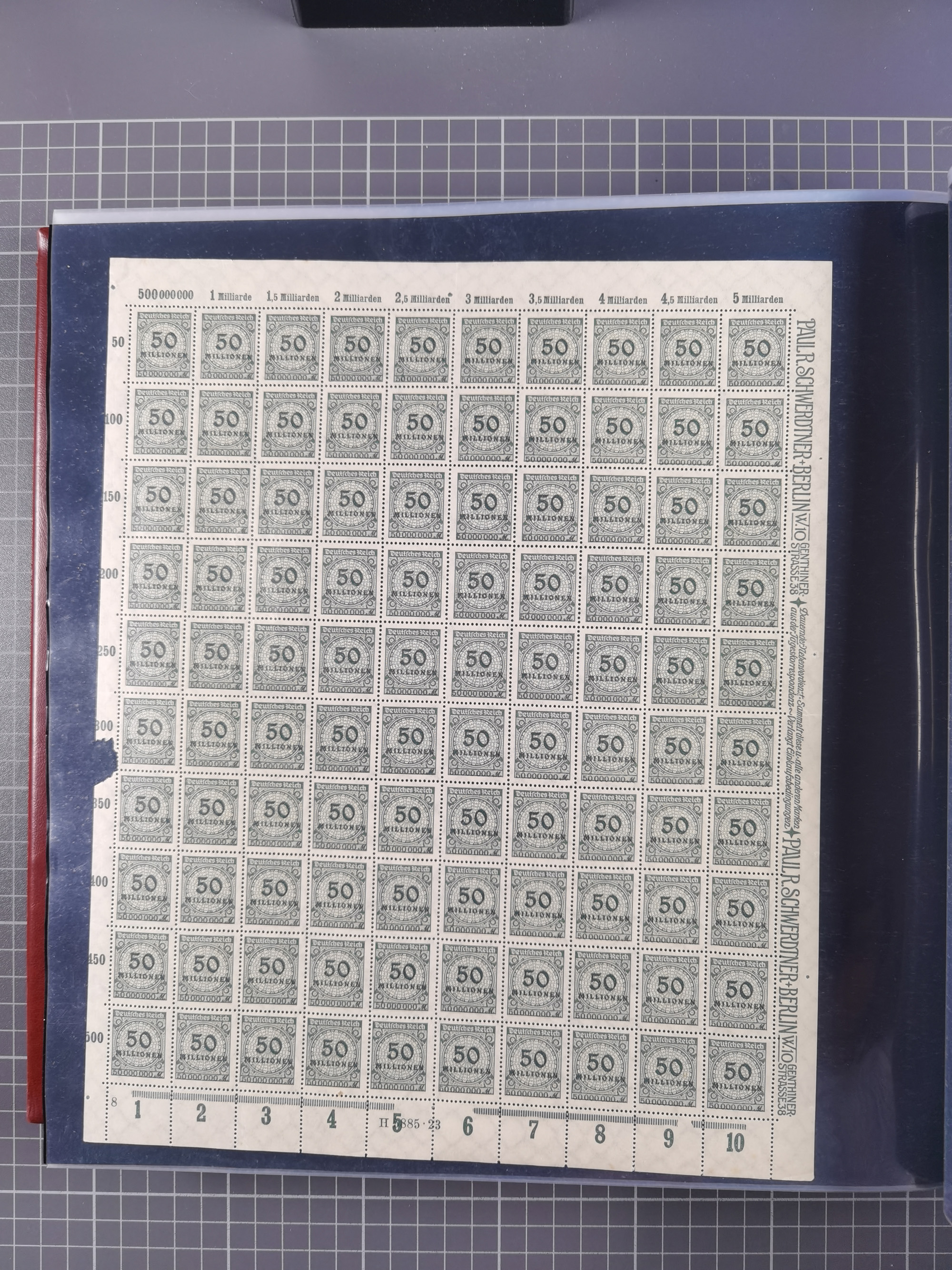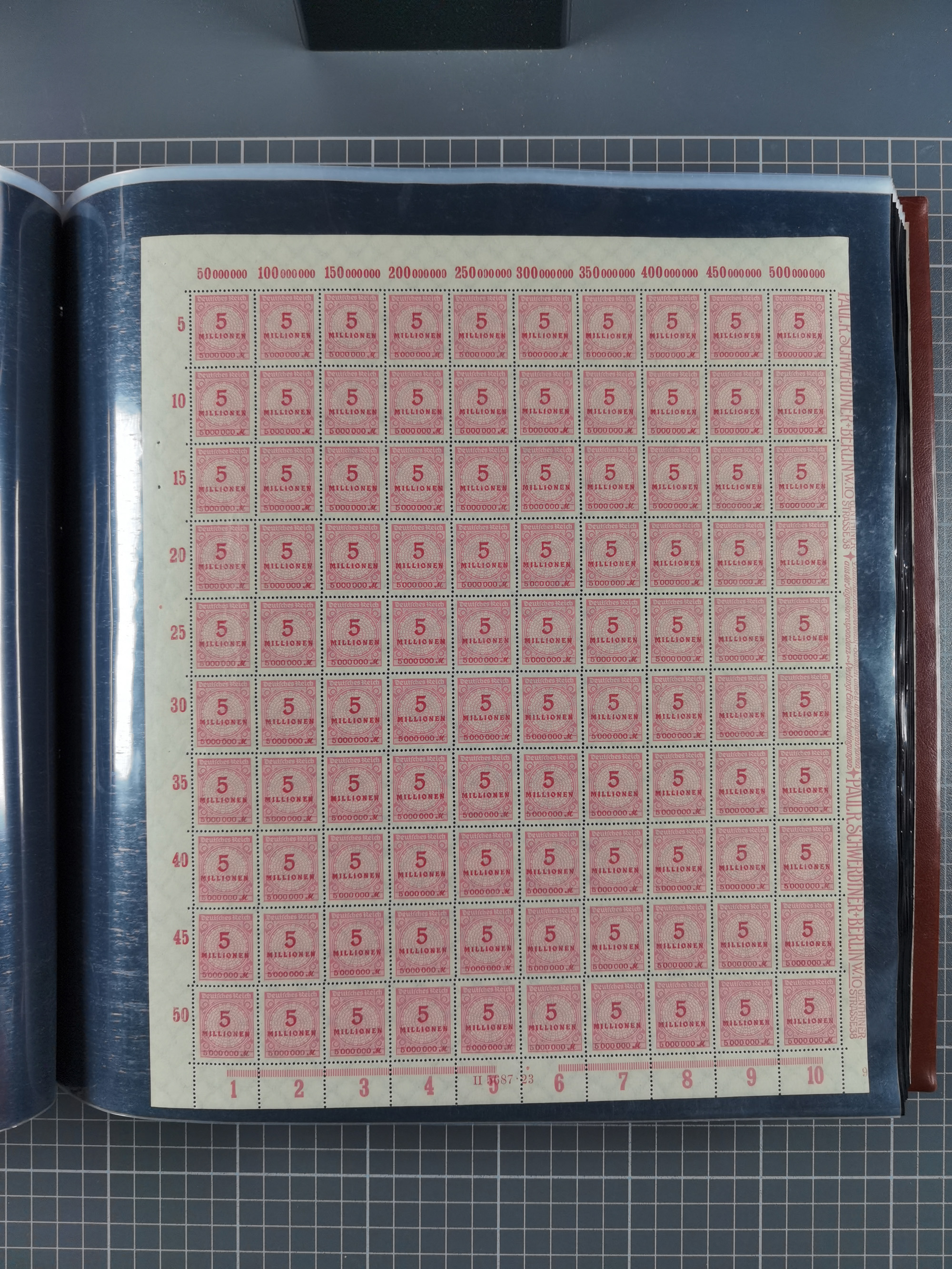 1923, meist postfrische Sammlung mit ca. 200 Bogen ex Mi.-Nr. 313-30, dabei u.a. Mi.-Nr. 330A (4) und 330B (3), gute Erhaltung, teils übliche Einschränkungen, in zwei Alben
