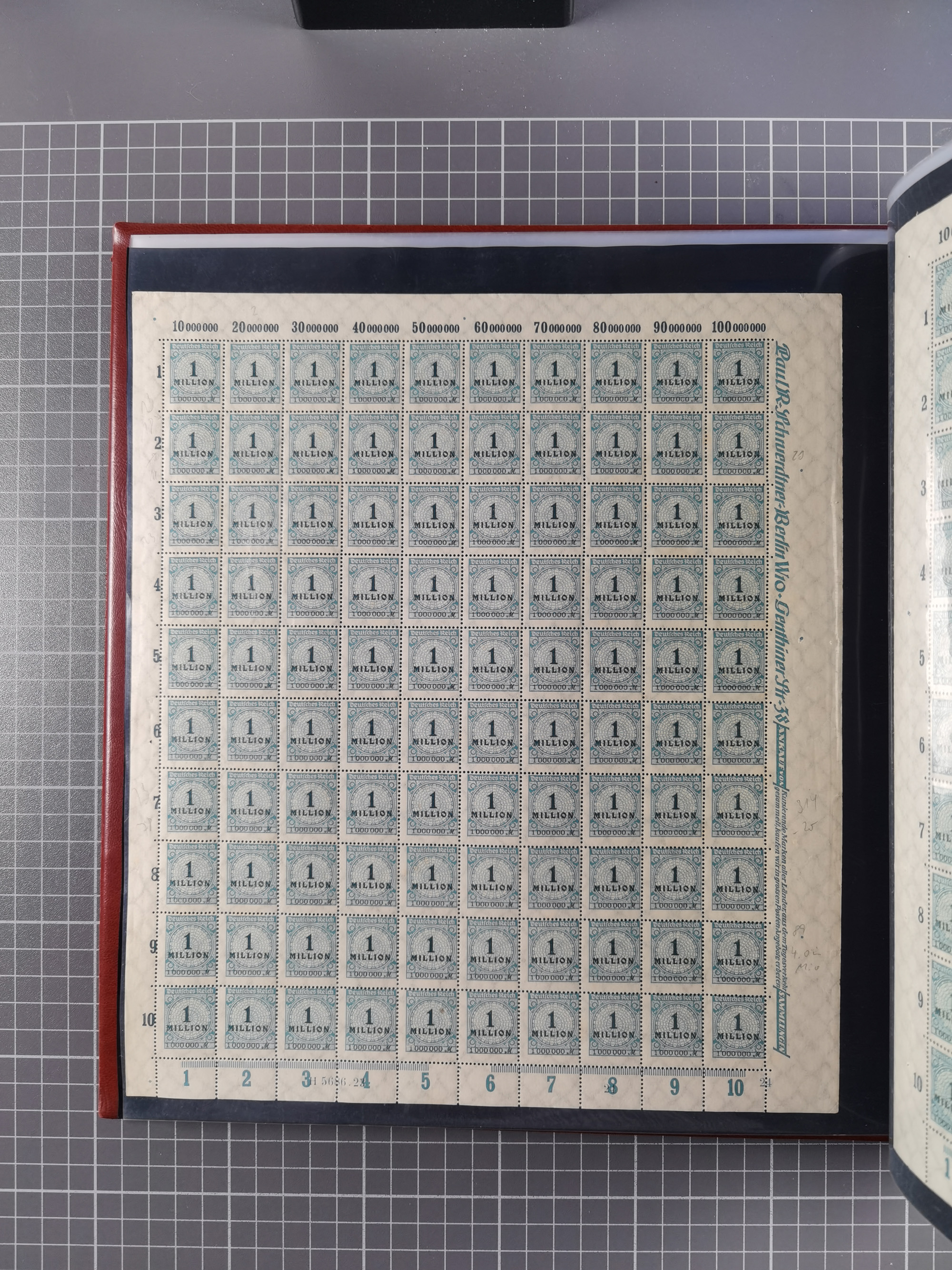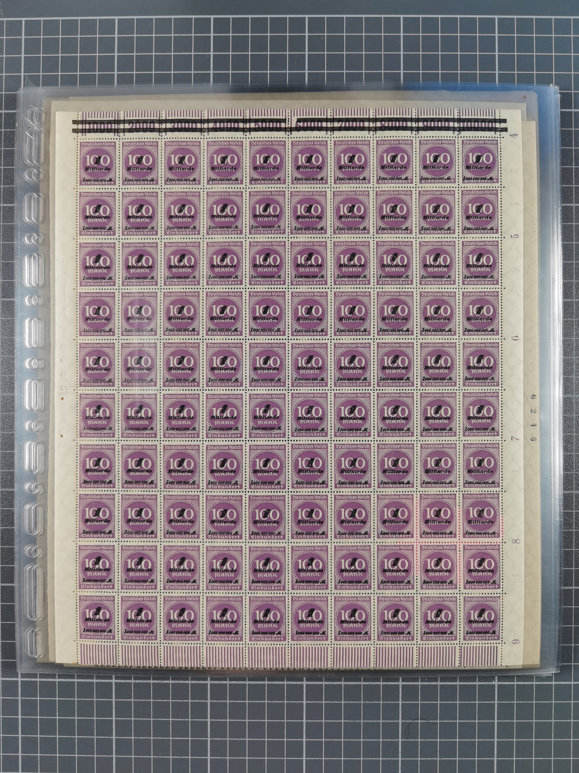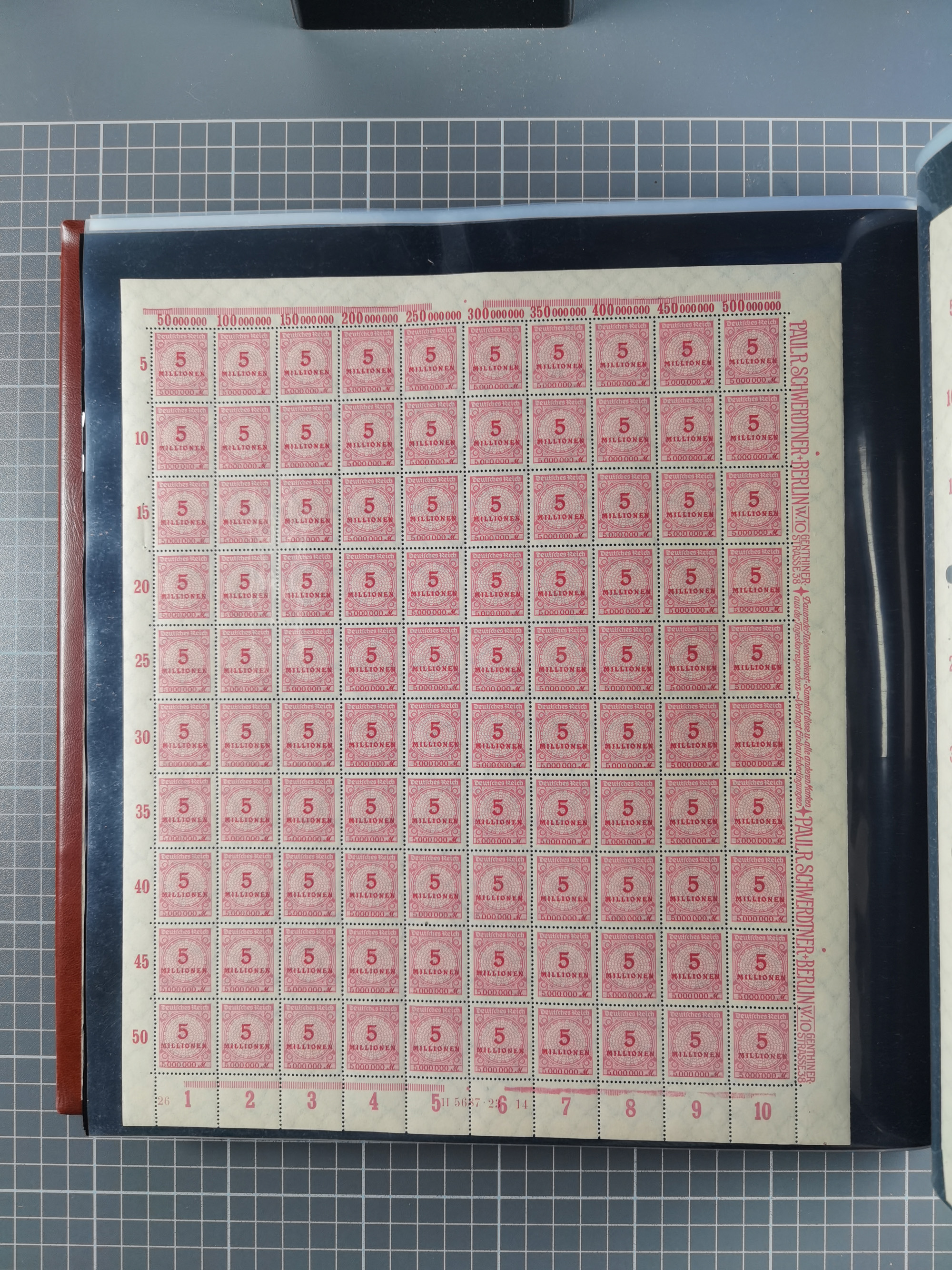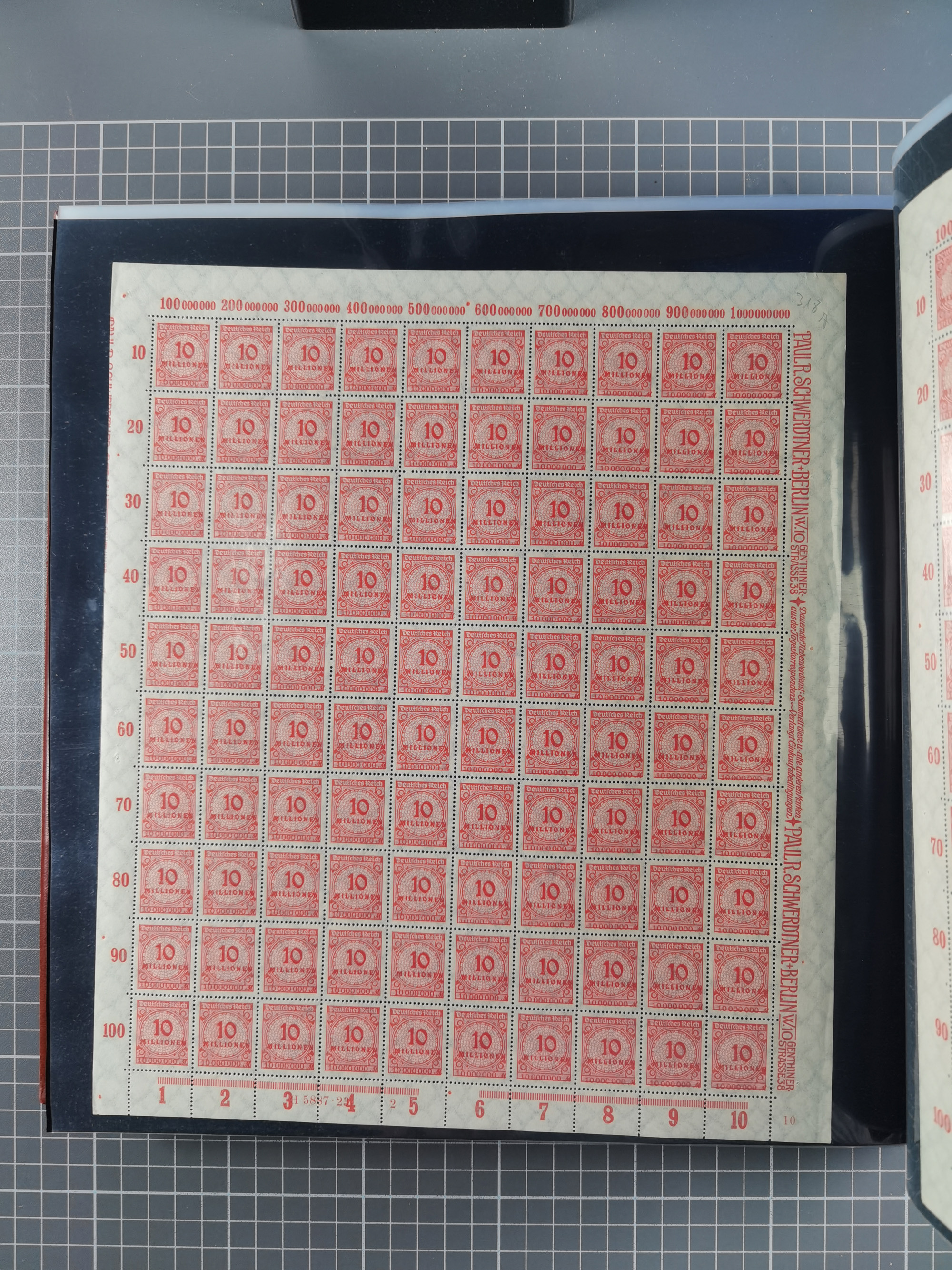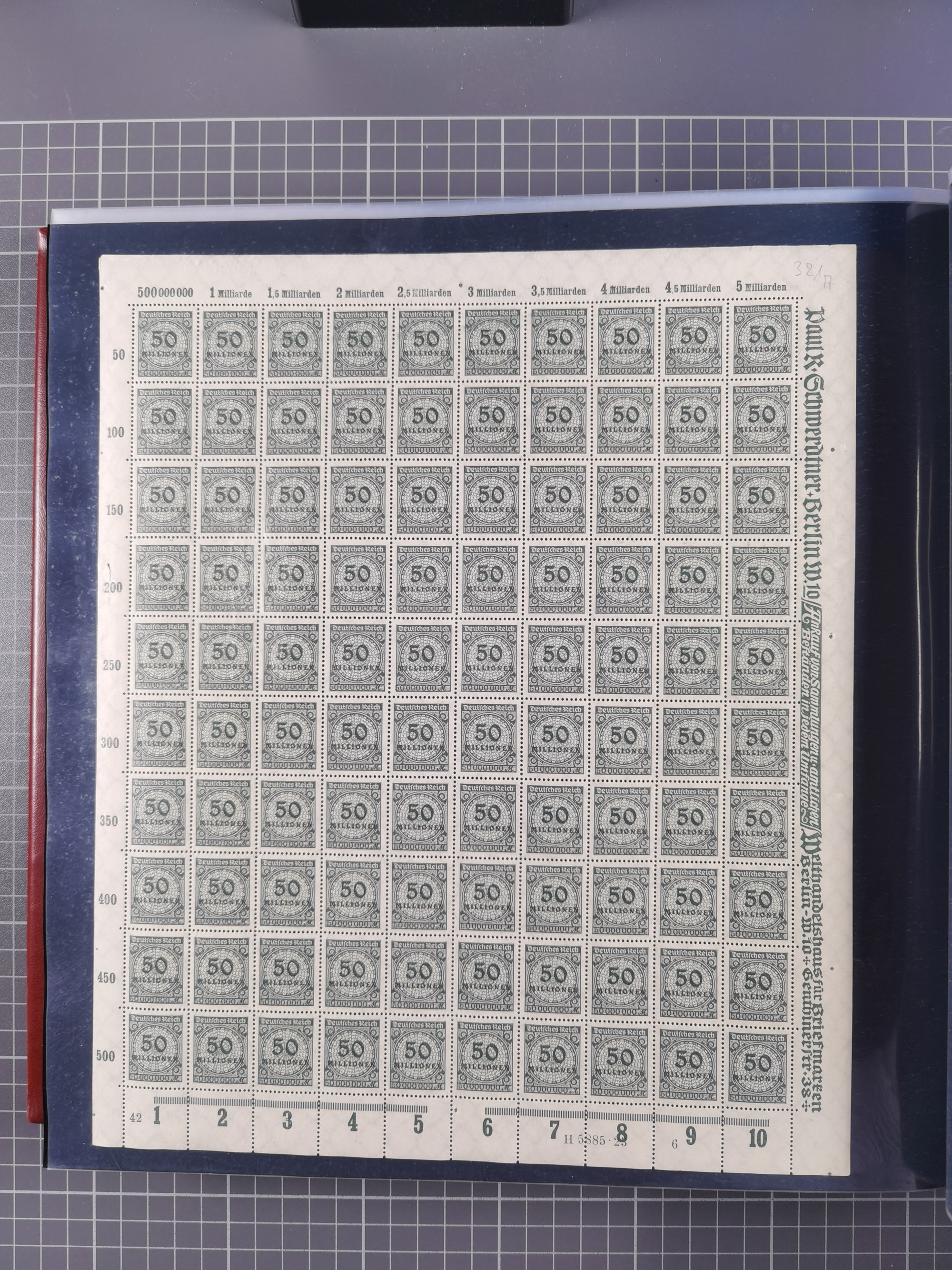 1923, meist postfrische Sammlung mit ca. 200 Bogen ex Mi.-Nr. 313-30, dabei u.a. Mi.-Nr. 330A (4) und 330B (3), gute Erhaltung, teils übliche Einschränkungen, in zwei Alben