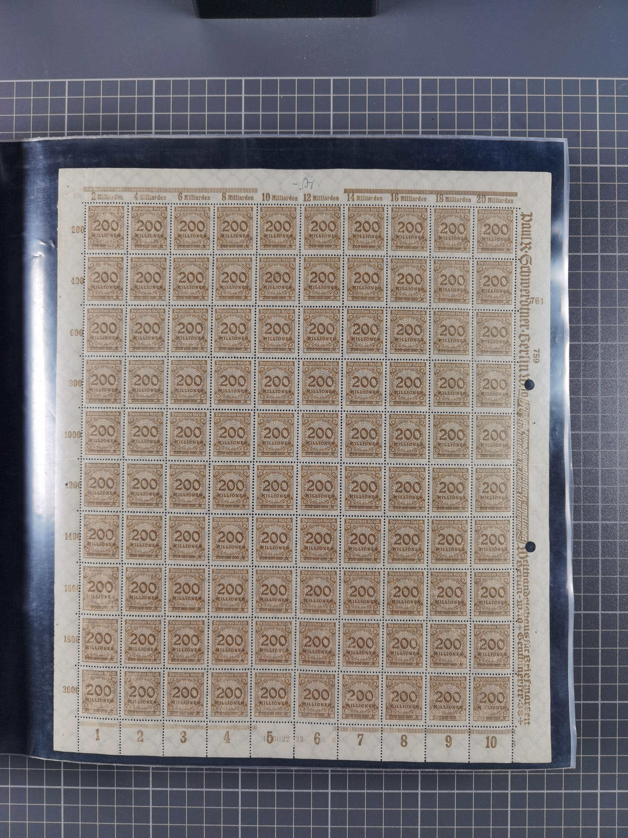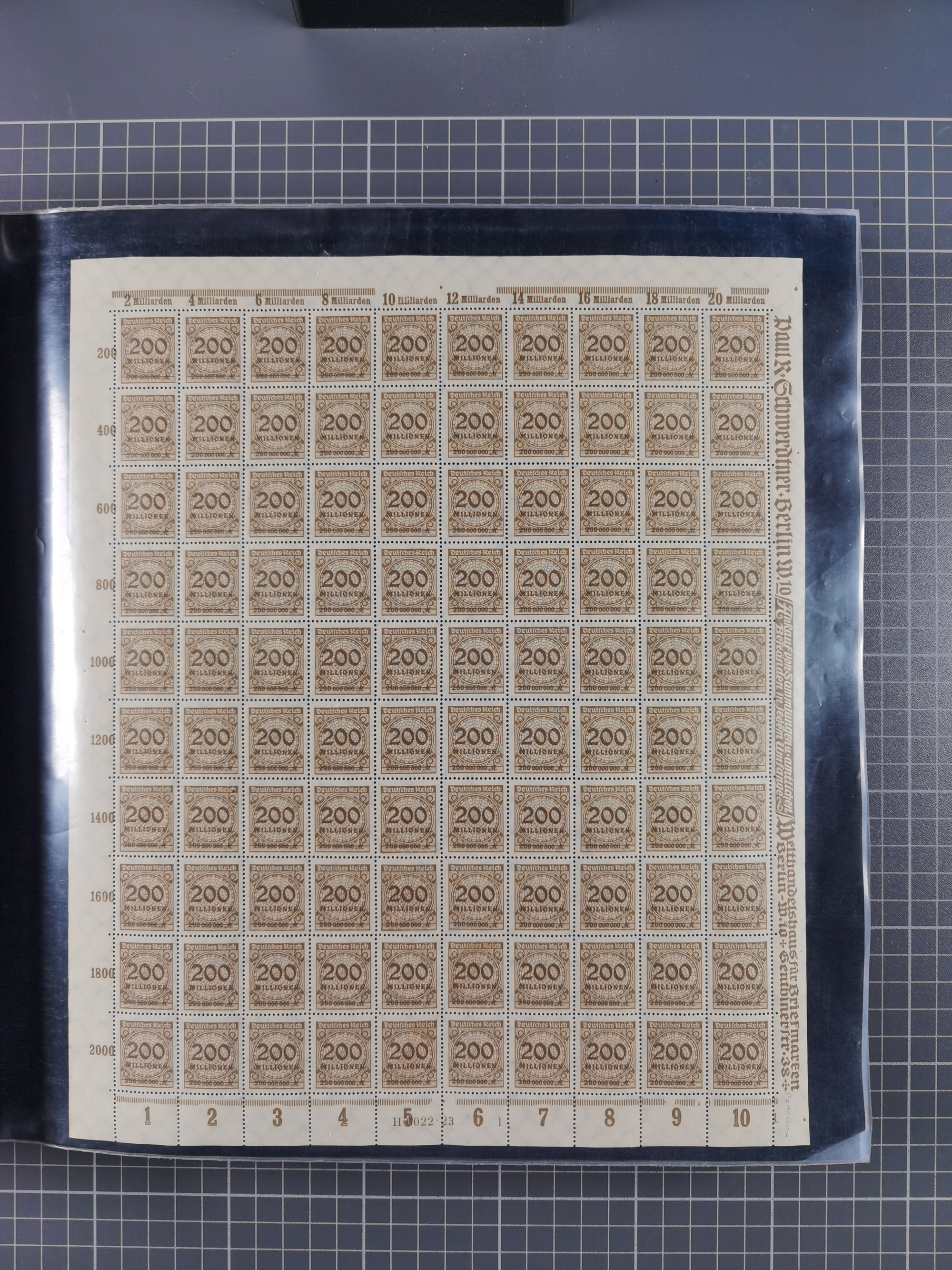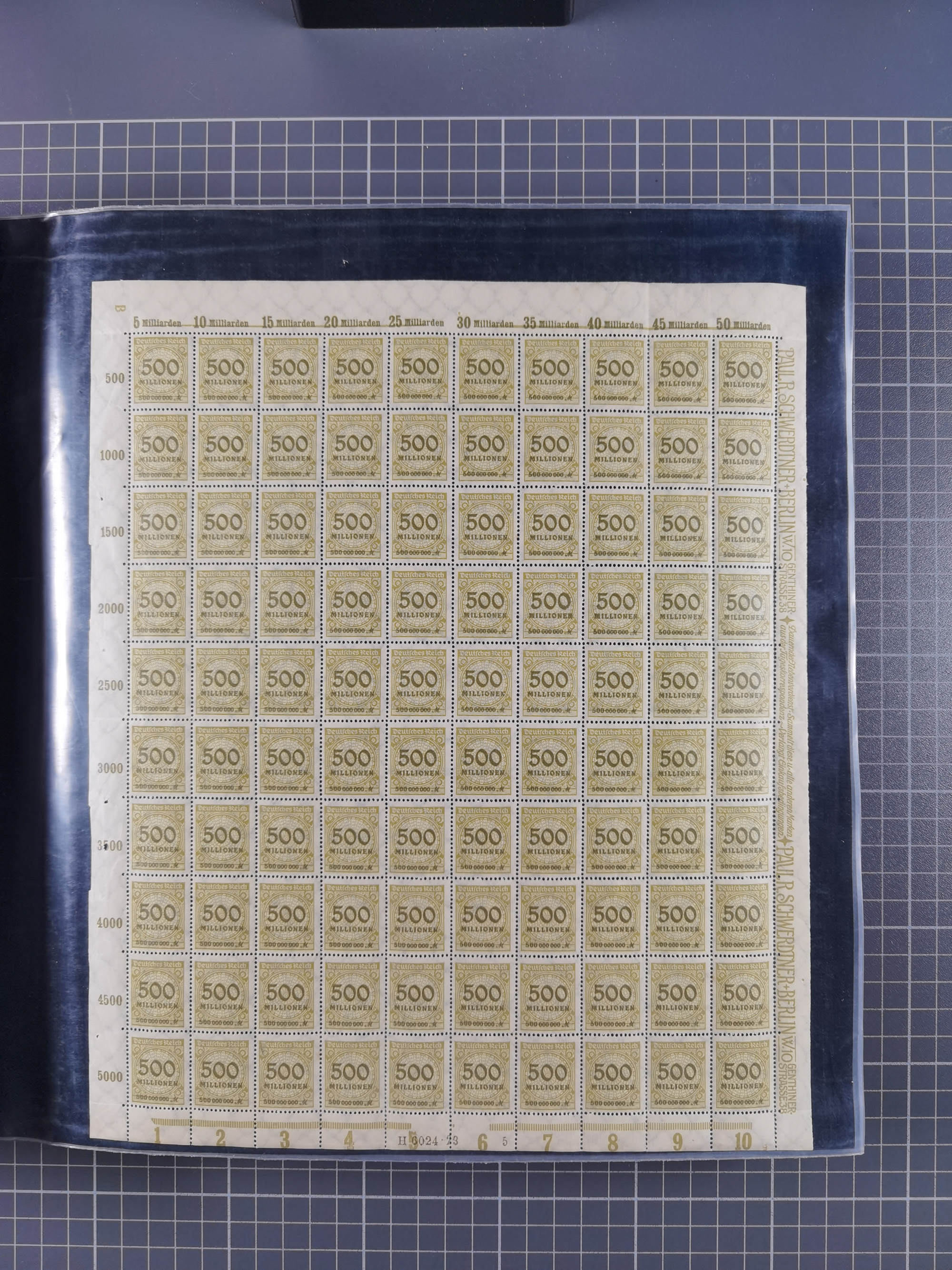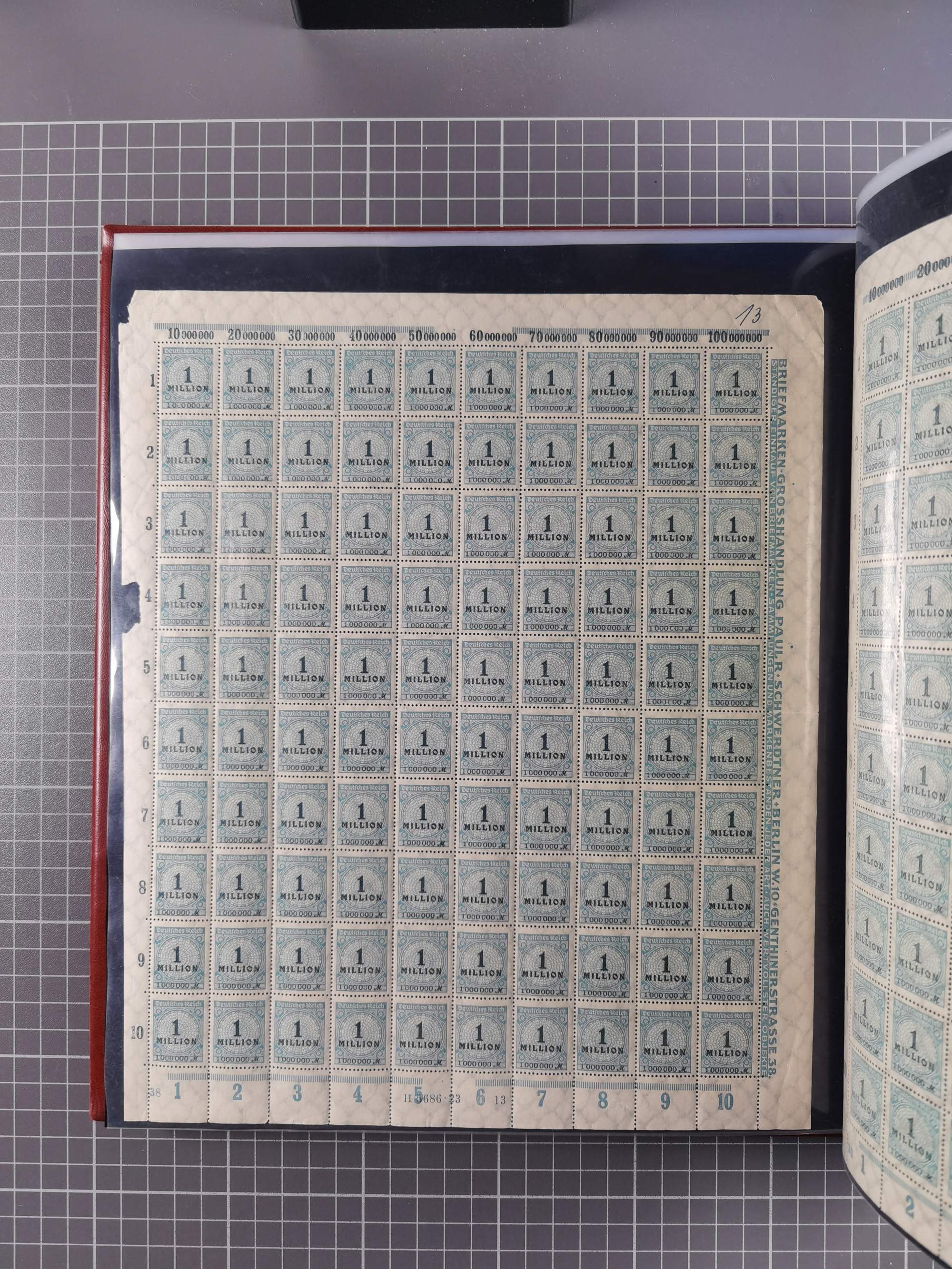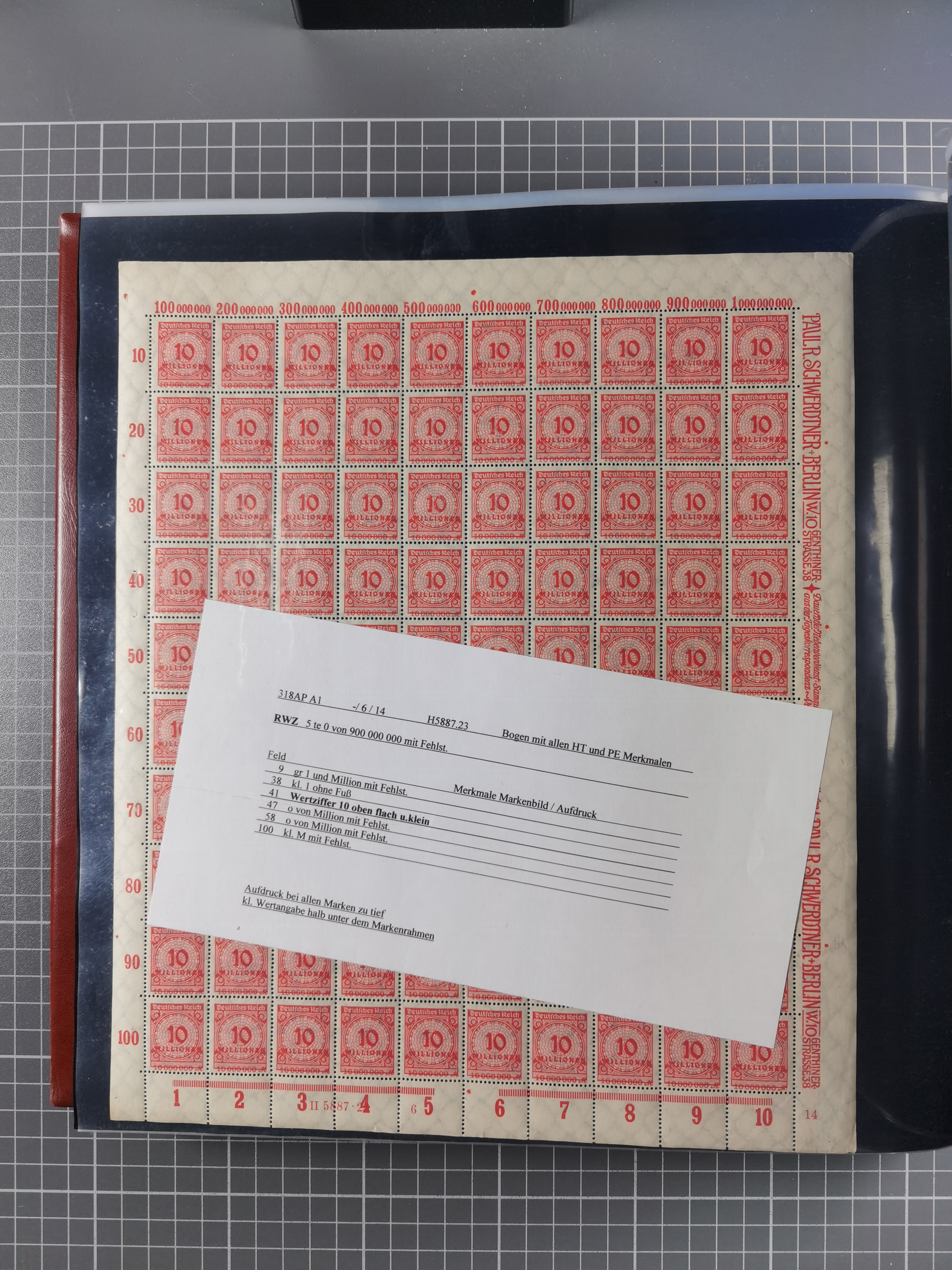 1923, meist postfrische Sammlung mit ca. 200 Bogen ex Mi.-Nr. 313-30, dabei u.a. Mi.-Nr. 330A (4) und 330B (3), gute Erhaltung, teils übliche Einschränkungen, in zwei Alben