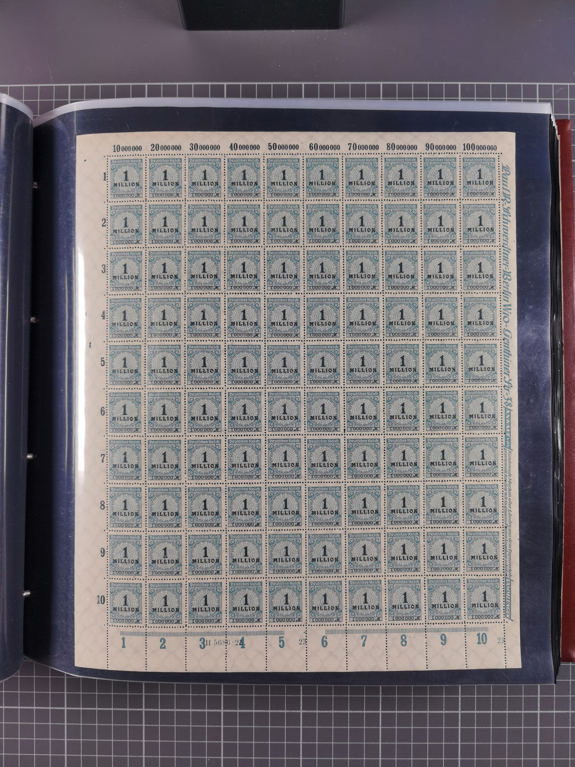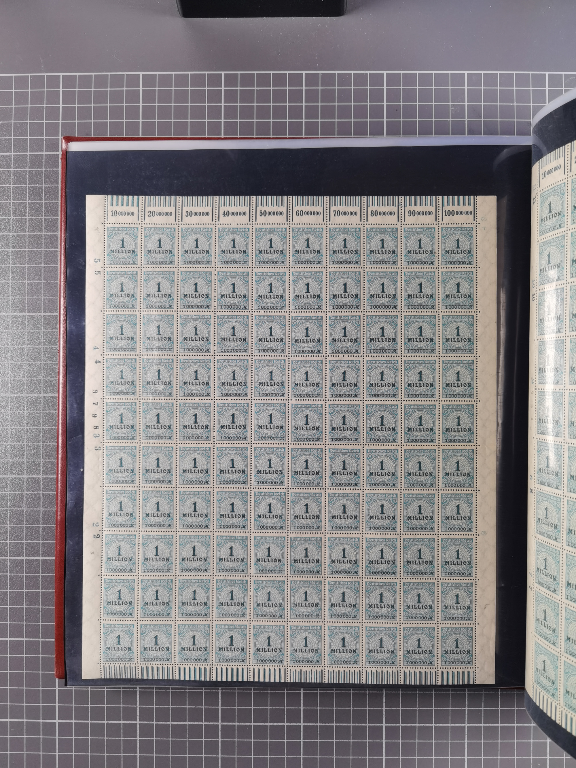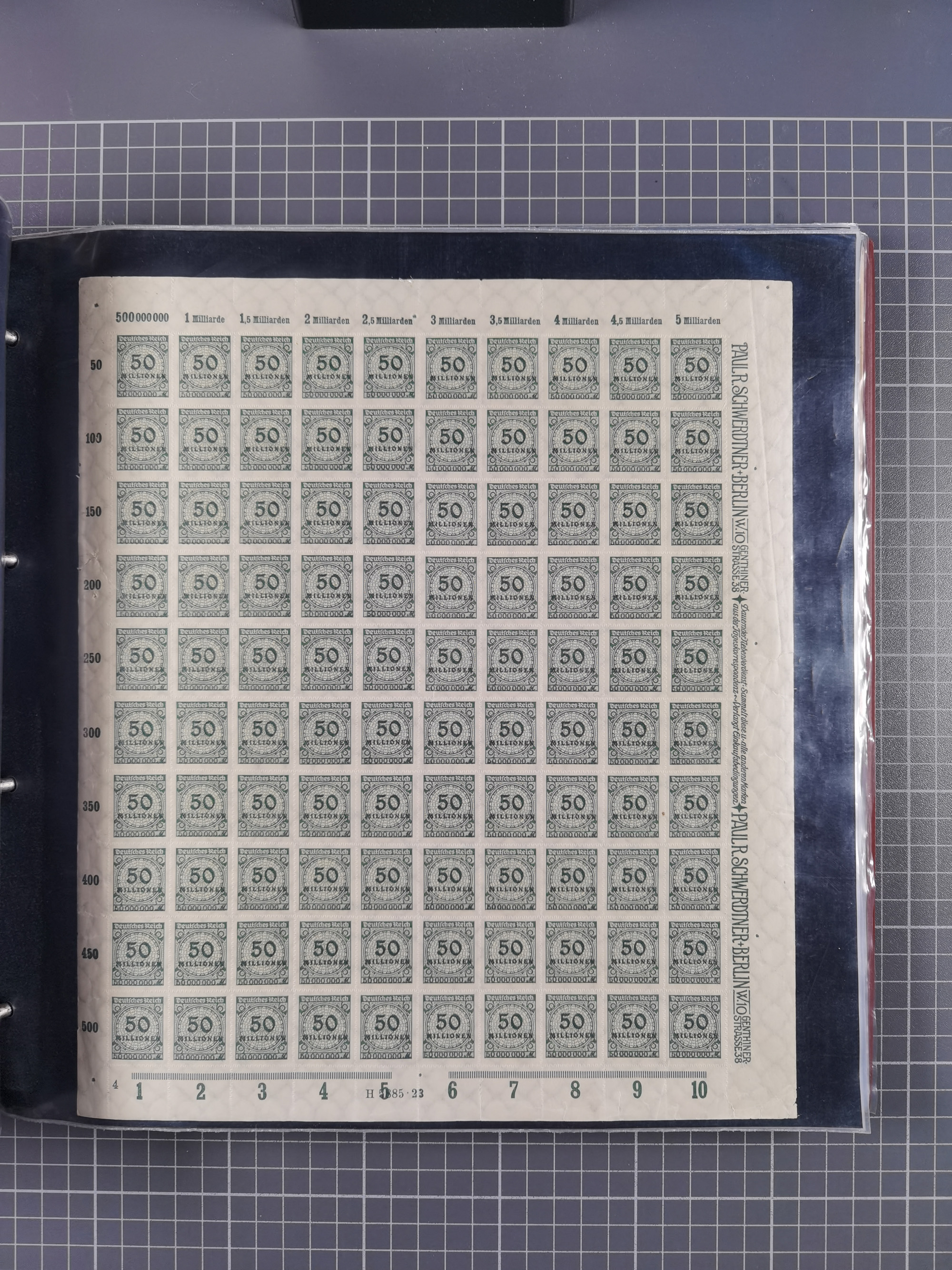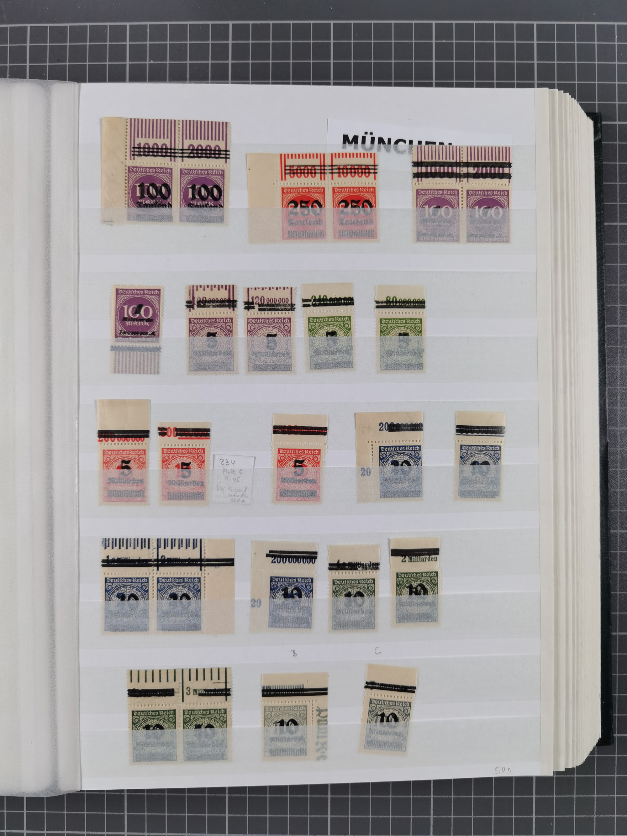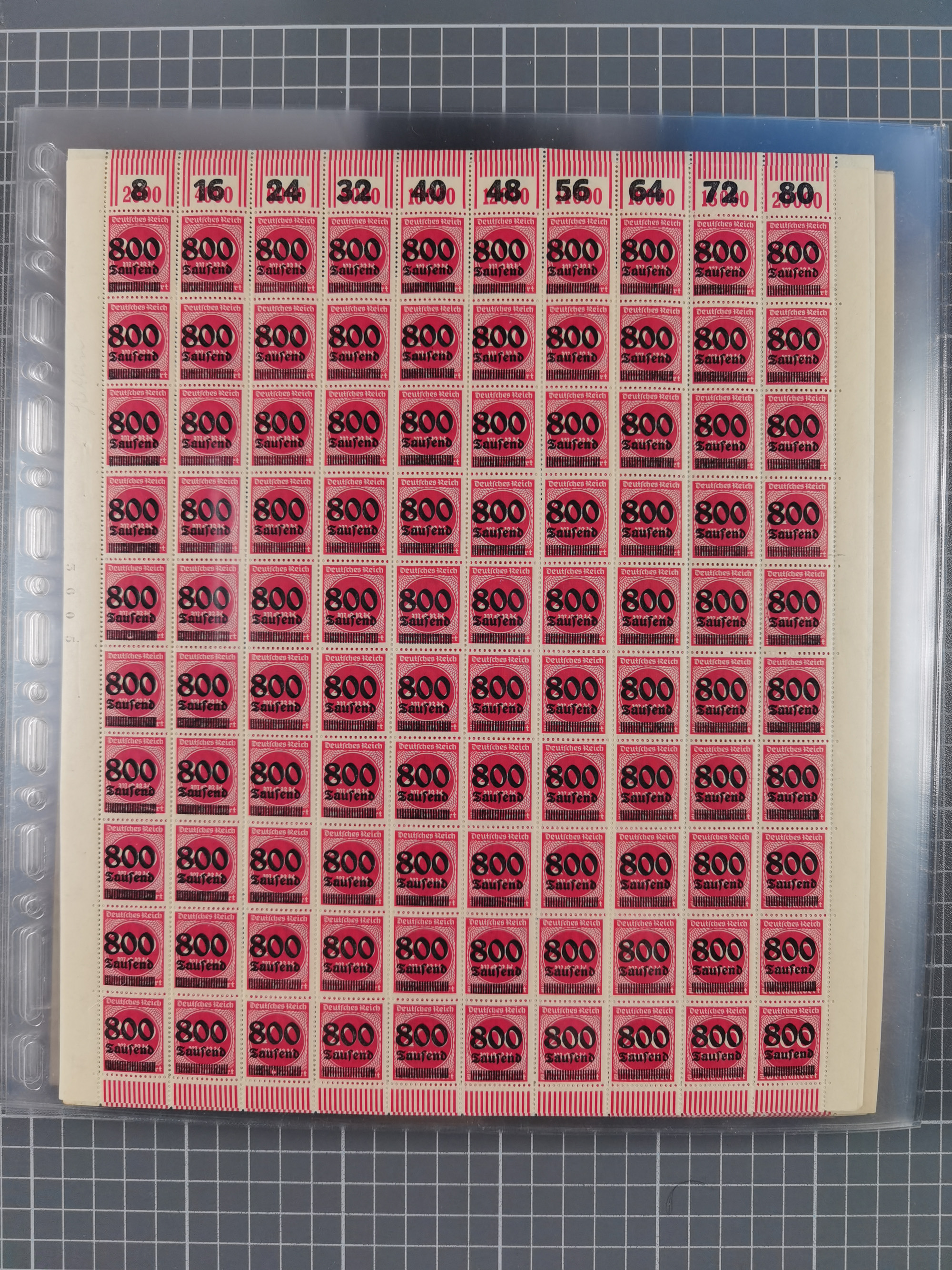 1923, meist postfrische Sammlung mit ca. 200 Bogen ex Mi.-Nr. 313-30, dabei u.a. Mi.-Nr. 330A (4) und 330B (3), gute Erhaltung, teils übliche Einschränkungen, in zwei Alben