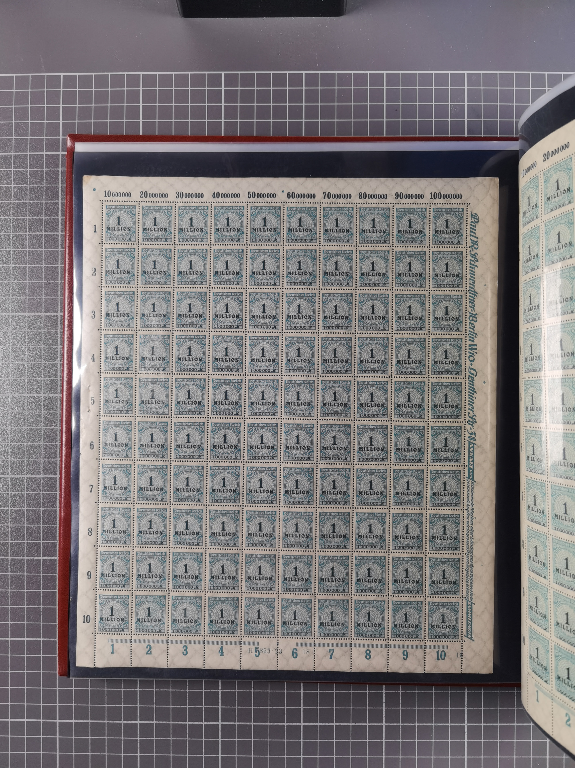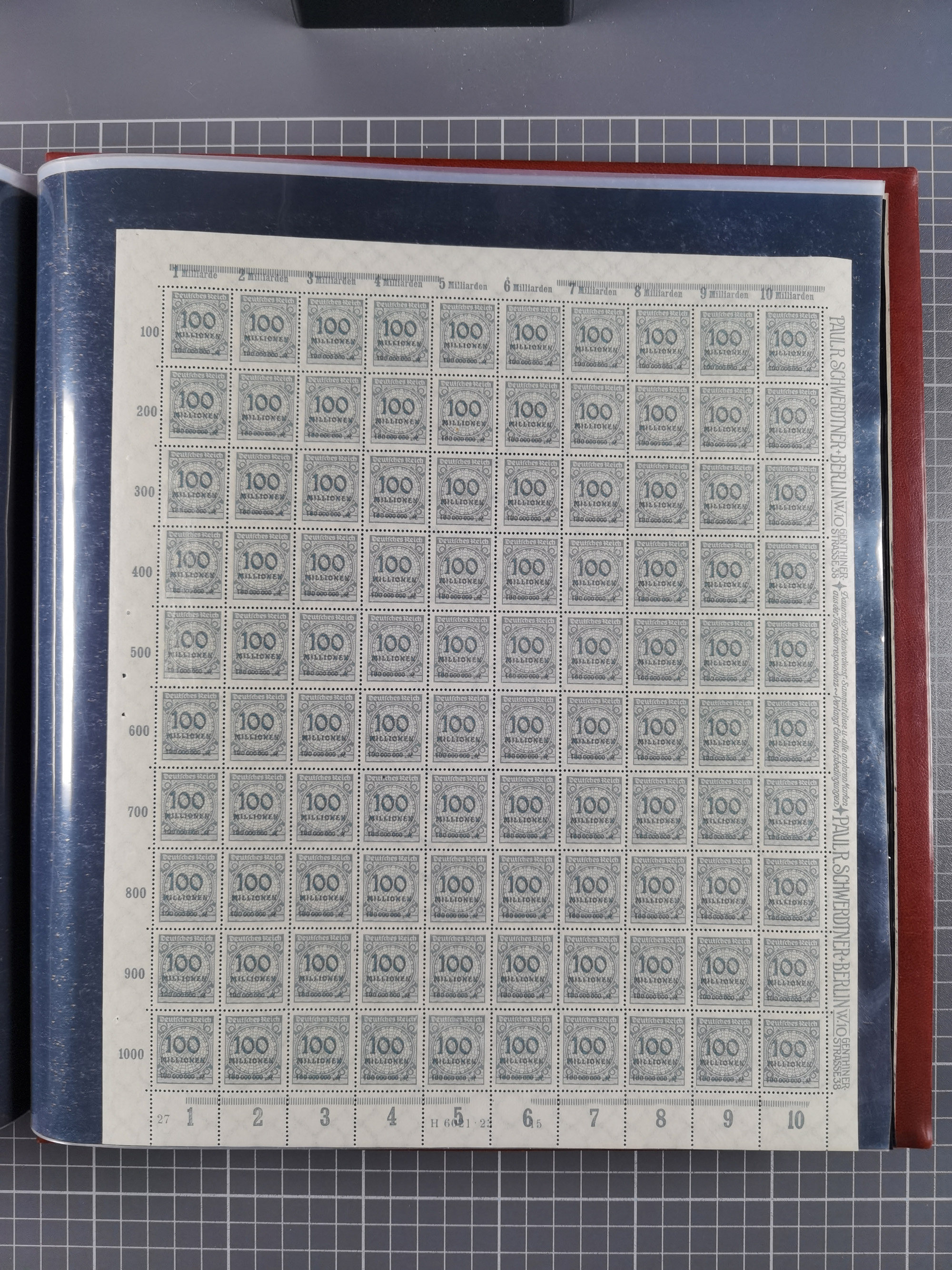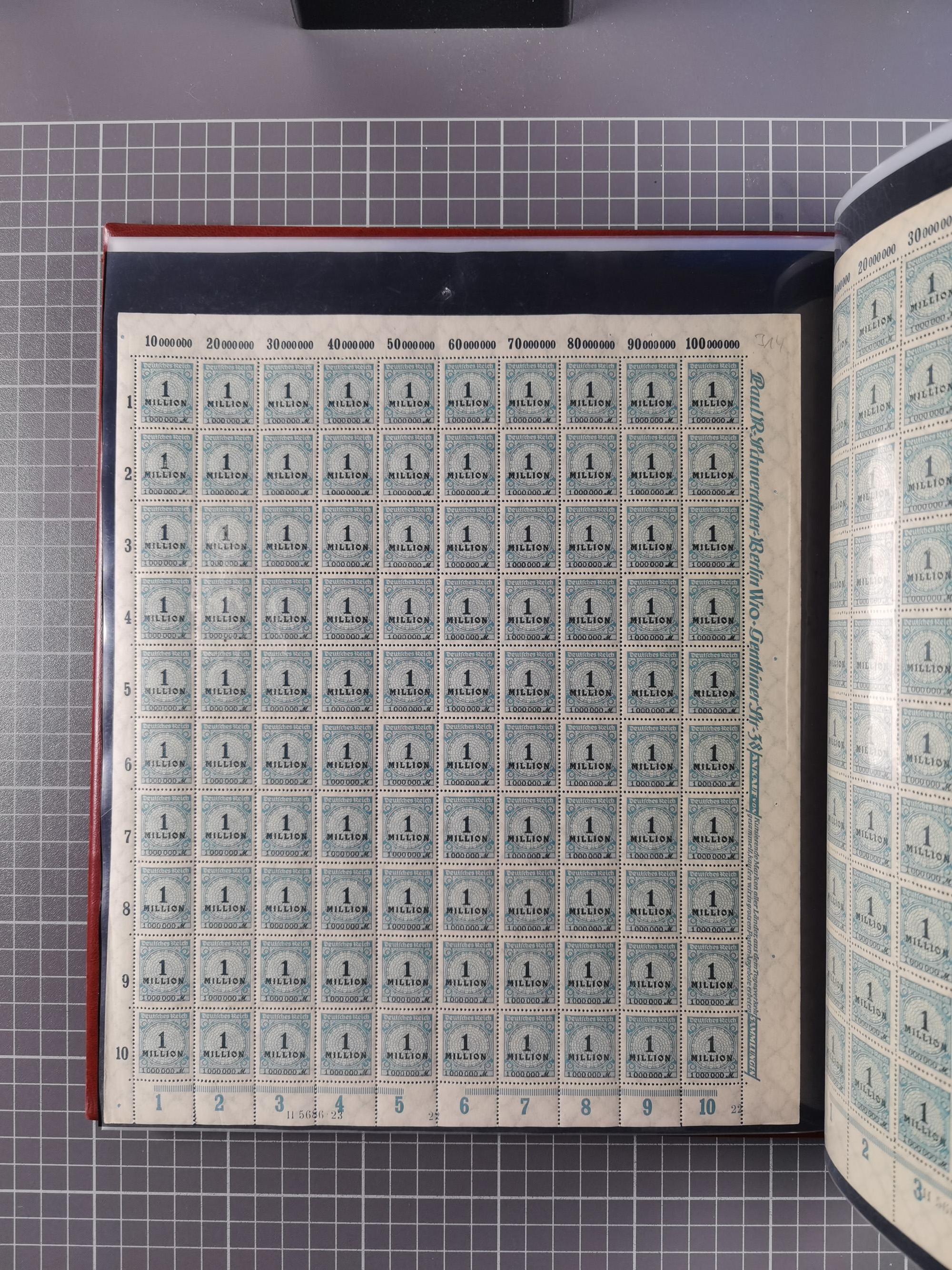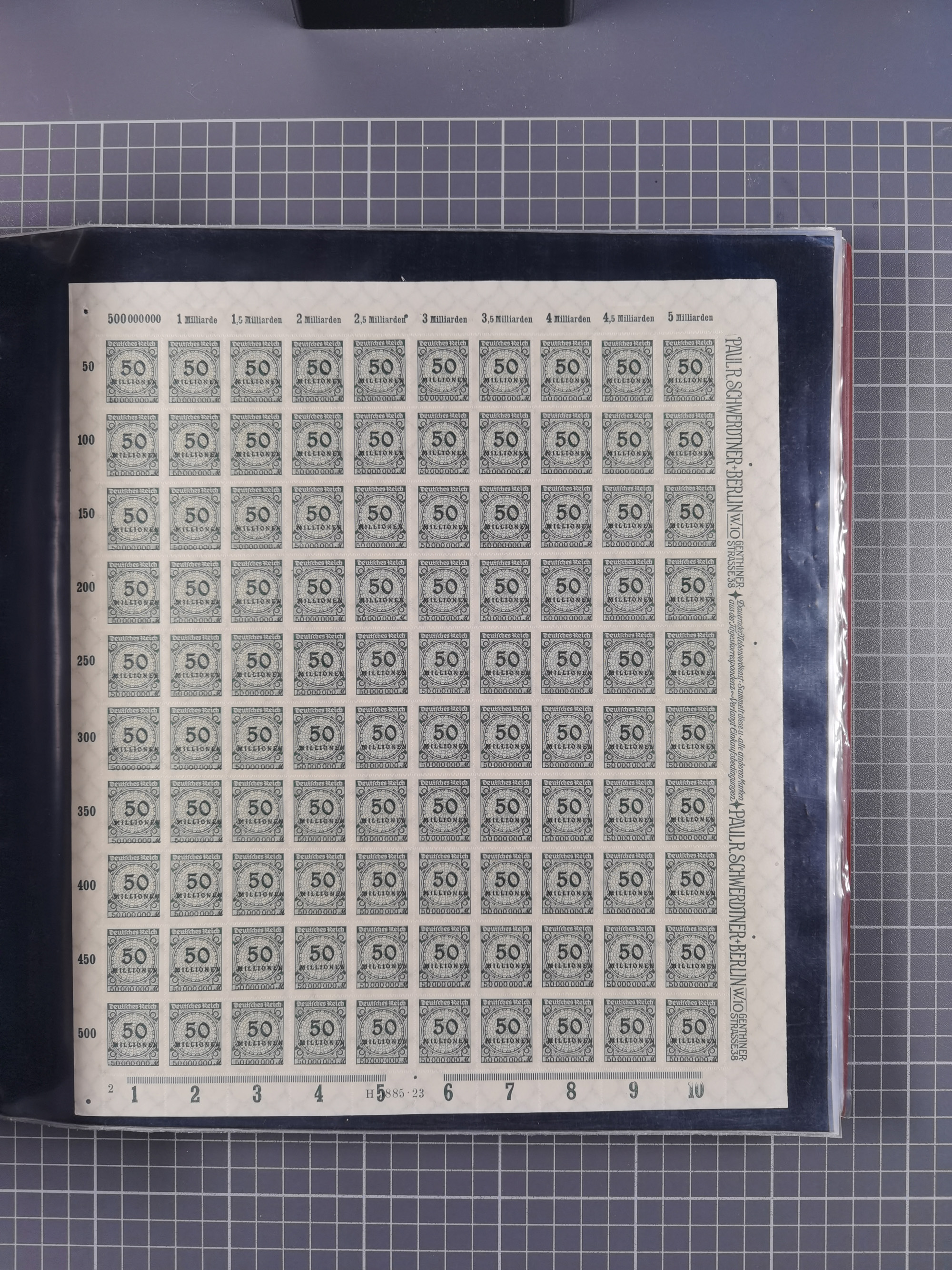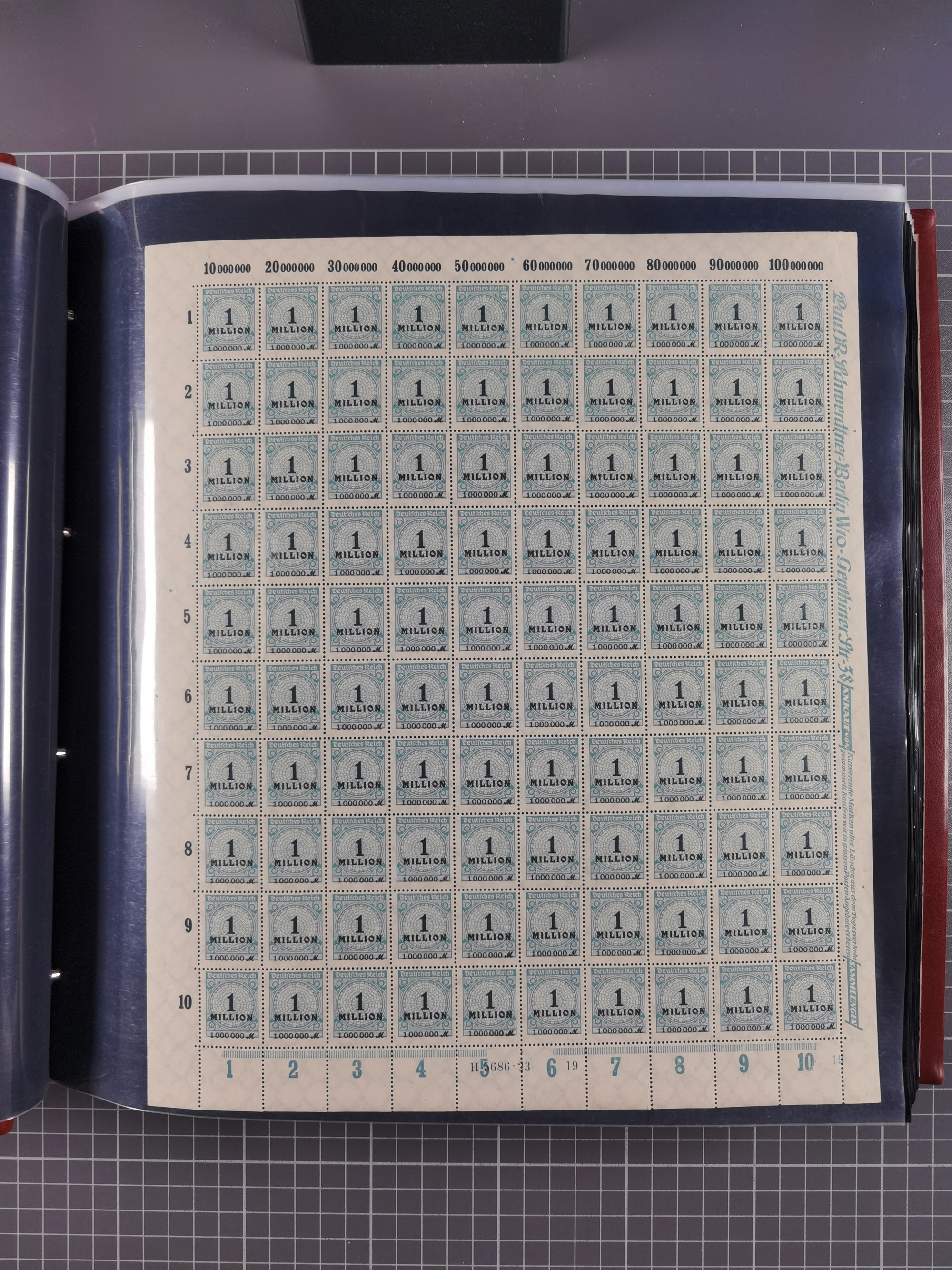 1923, meist postfrische Sammlung mit ca. 200 Bogen ex Mi.-Nr. 313-30, dabei u.a. Mi.-Nr. 330A (4) und 330B (3), gute Erhaltung, teils übliche Einschränkungen, in zwei Alben