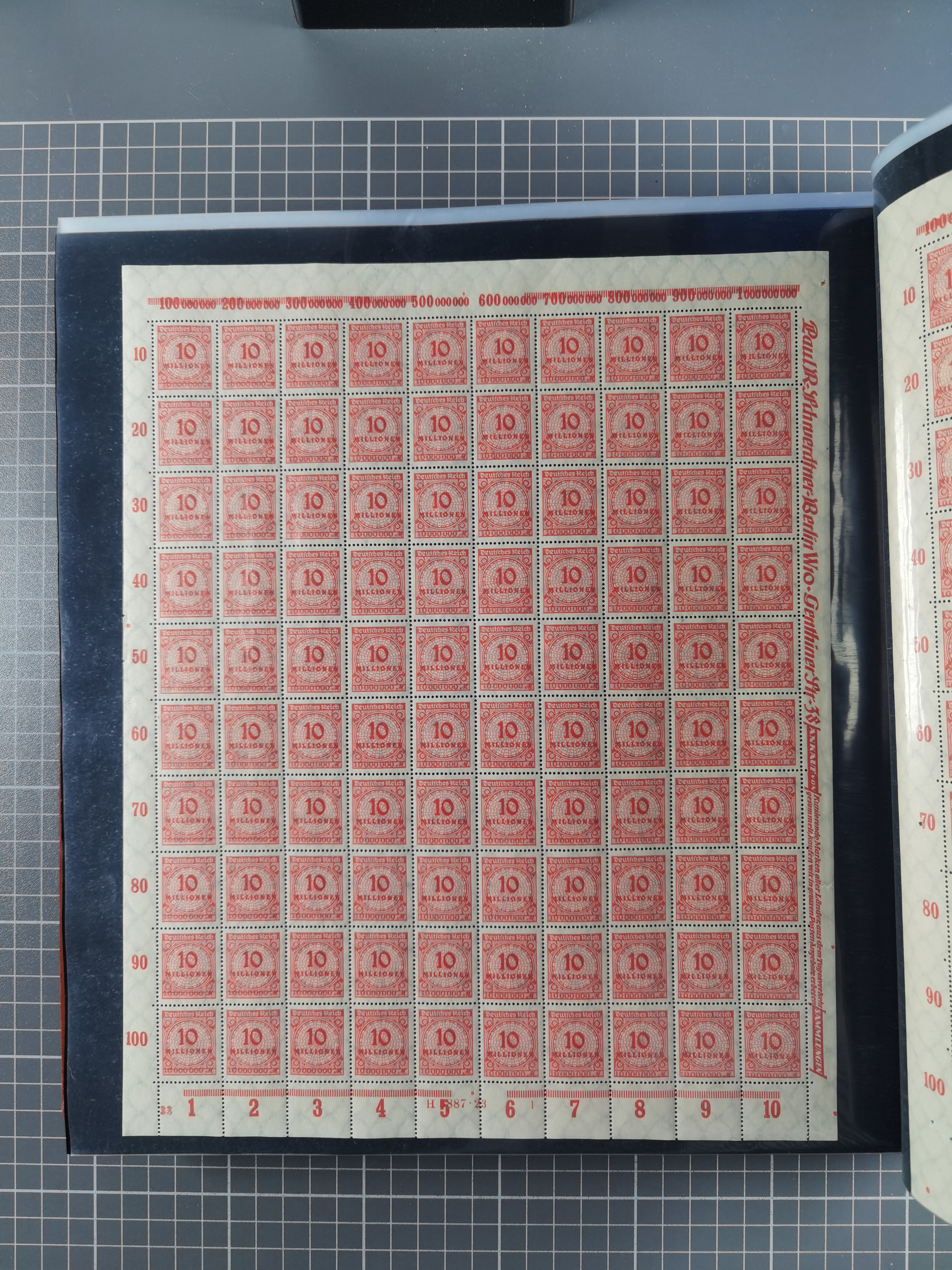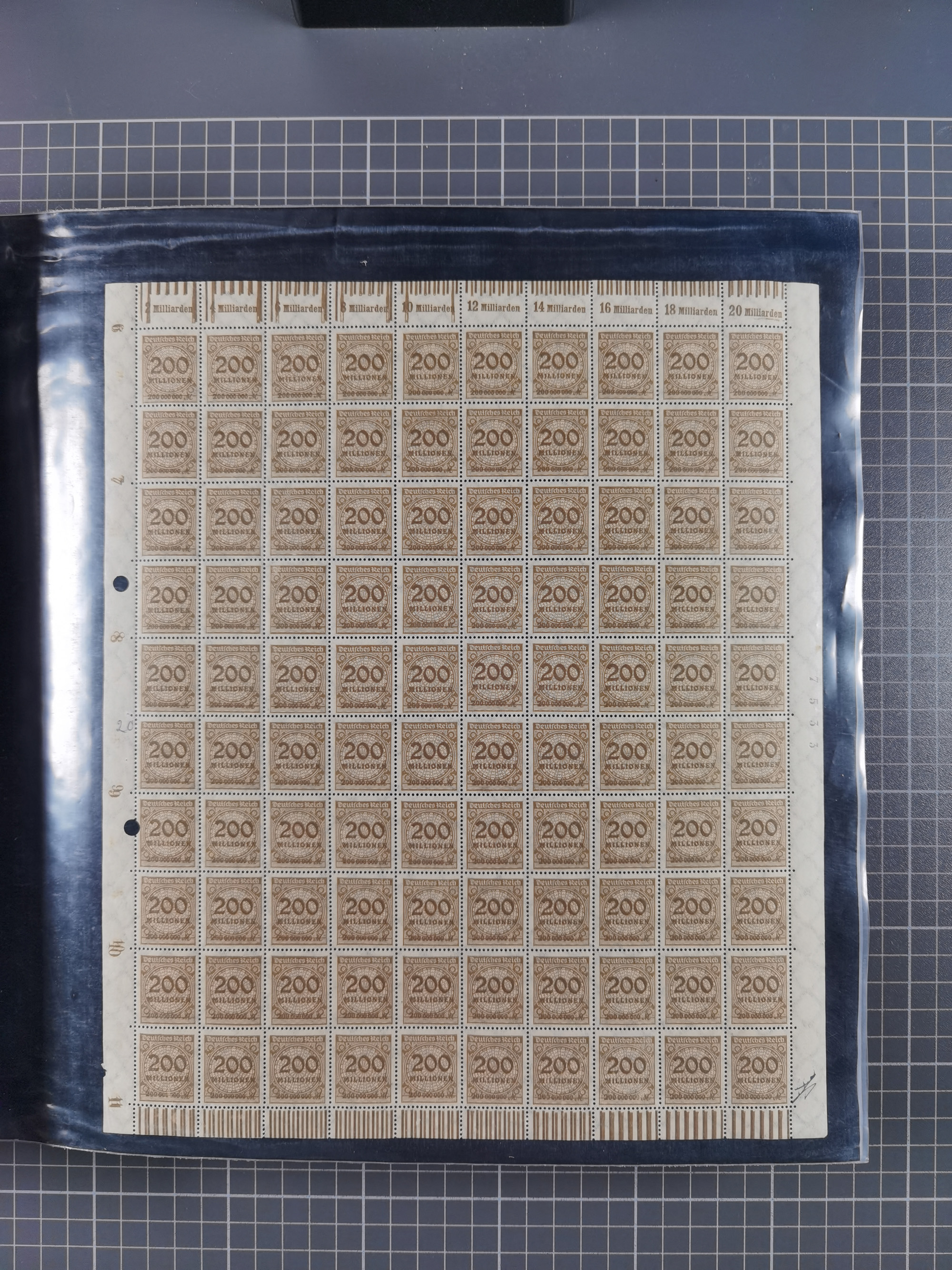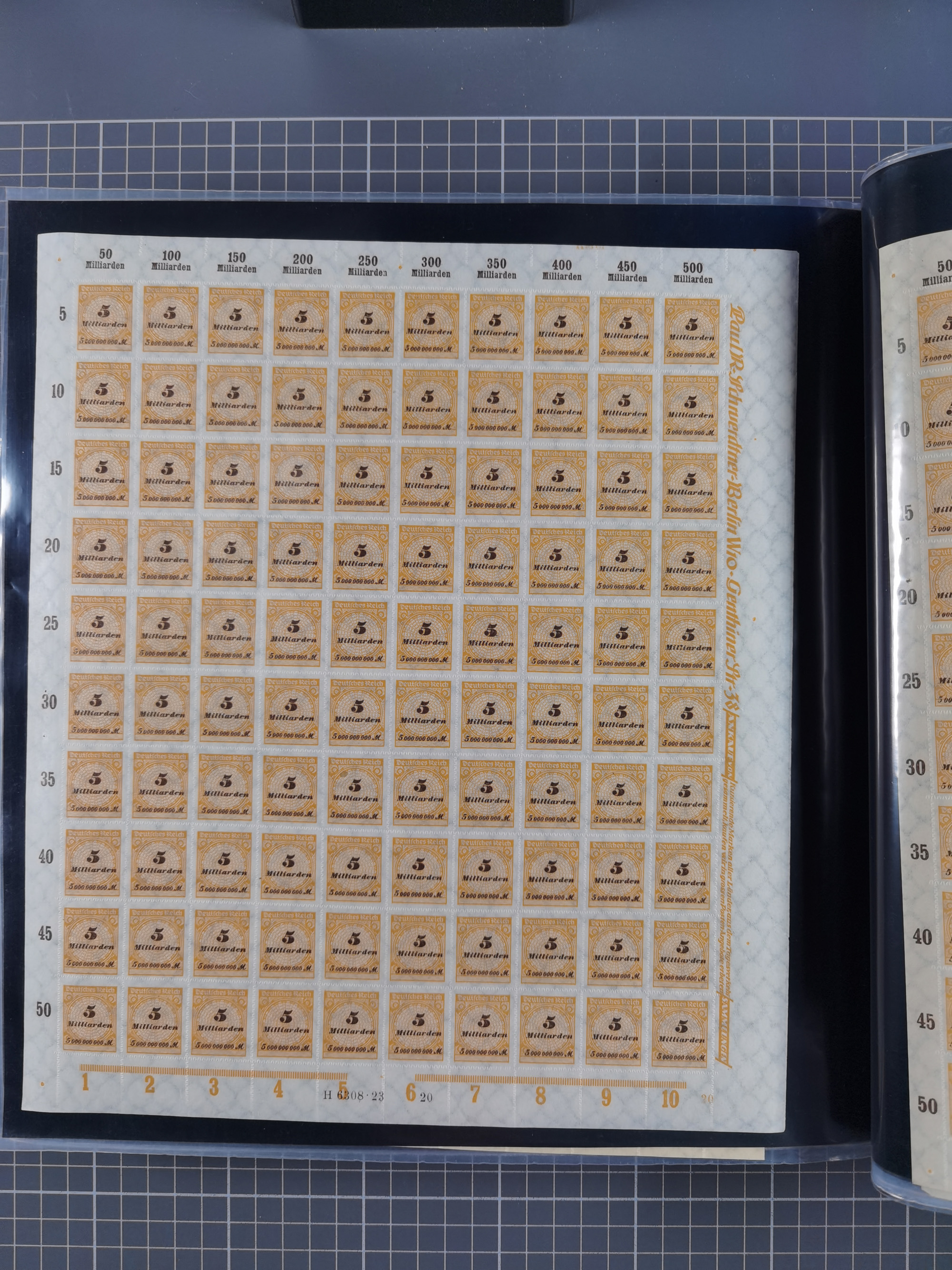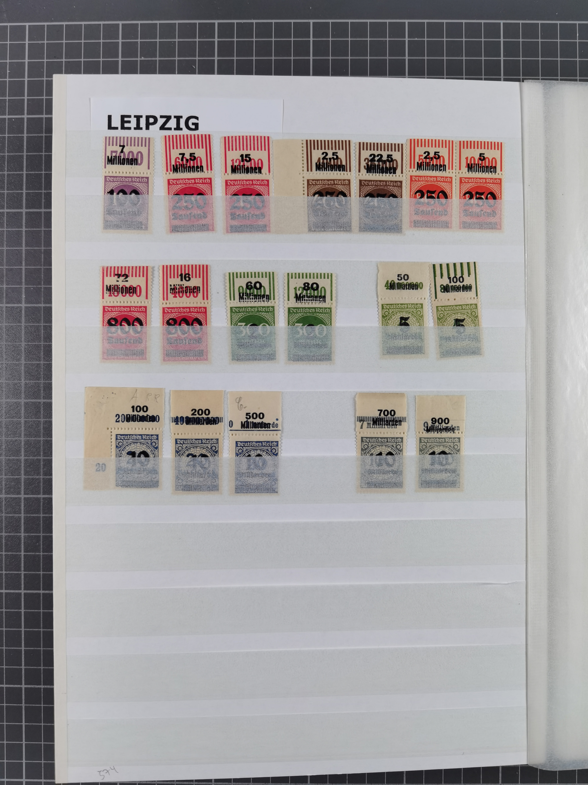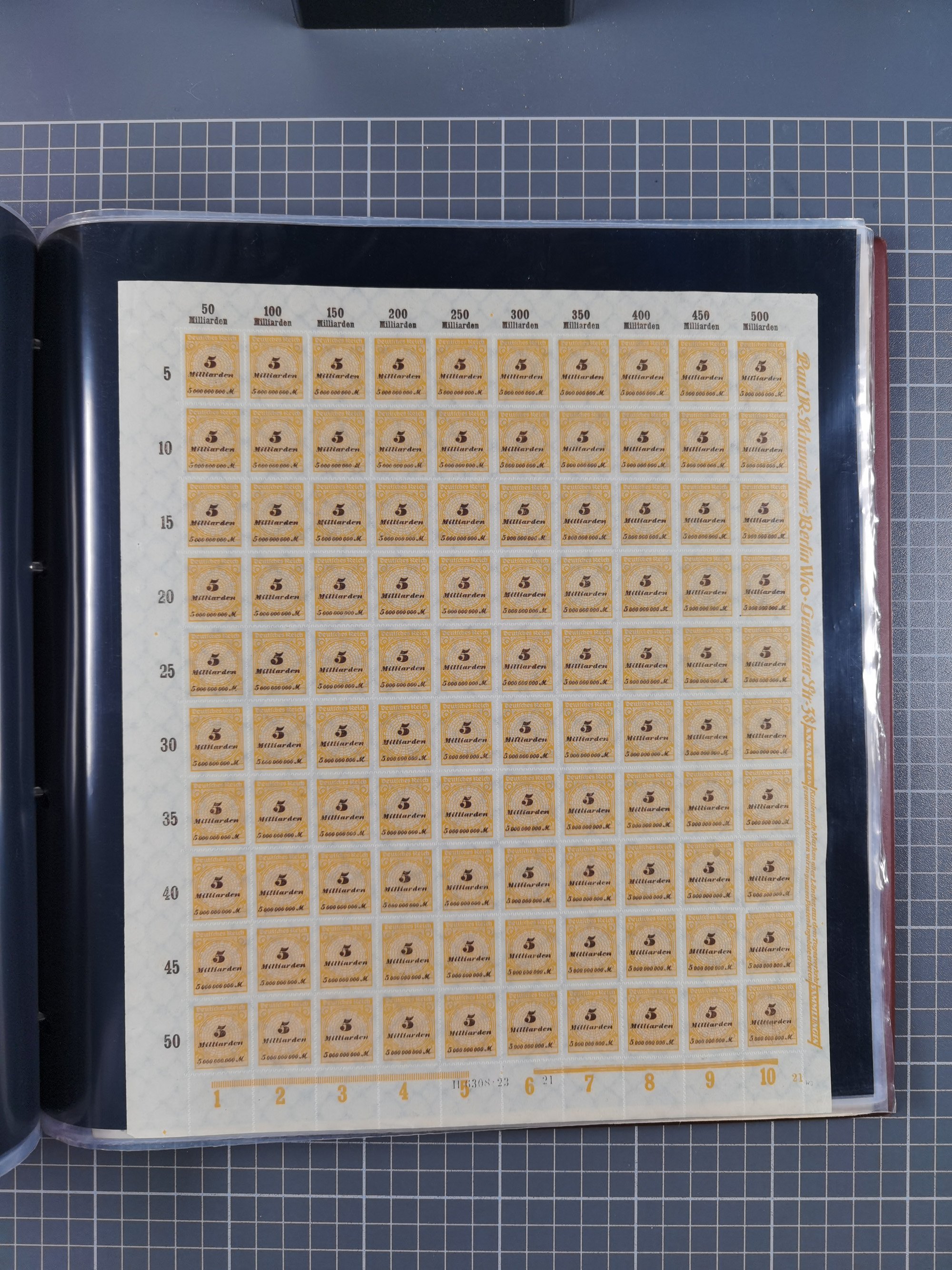 1923, meist postfrische Sammlung mit ca. 200 Bogen ex Mi.-Nr. 313-30, dabei u.a. Mi.-Nr. 330A (4) und 330B (3), gute Erhaltung, teils übliche Einschränkungen, in zwei Alben