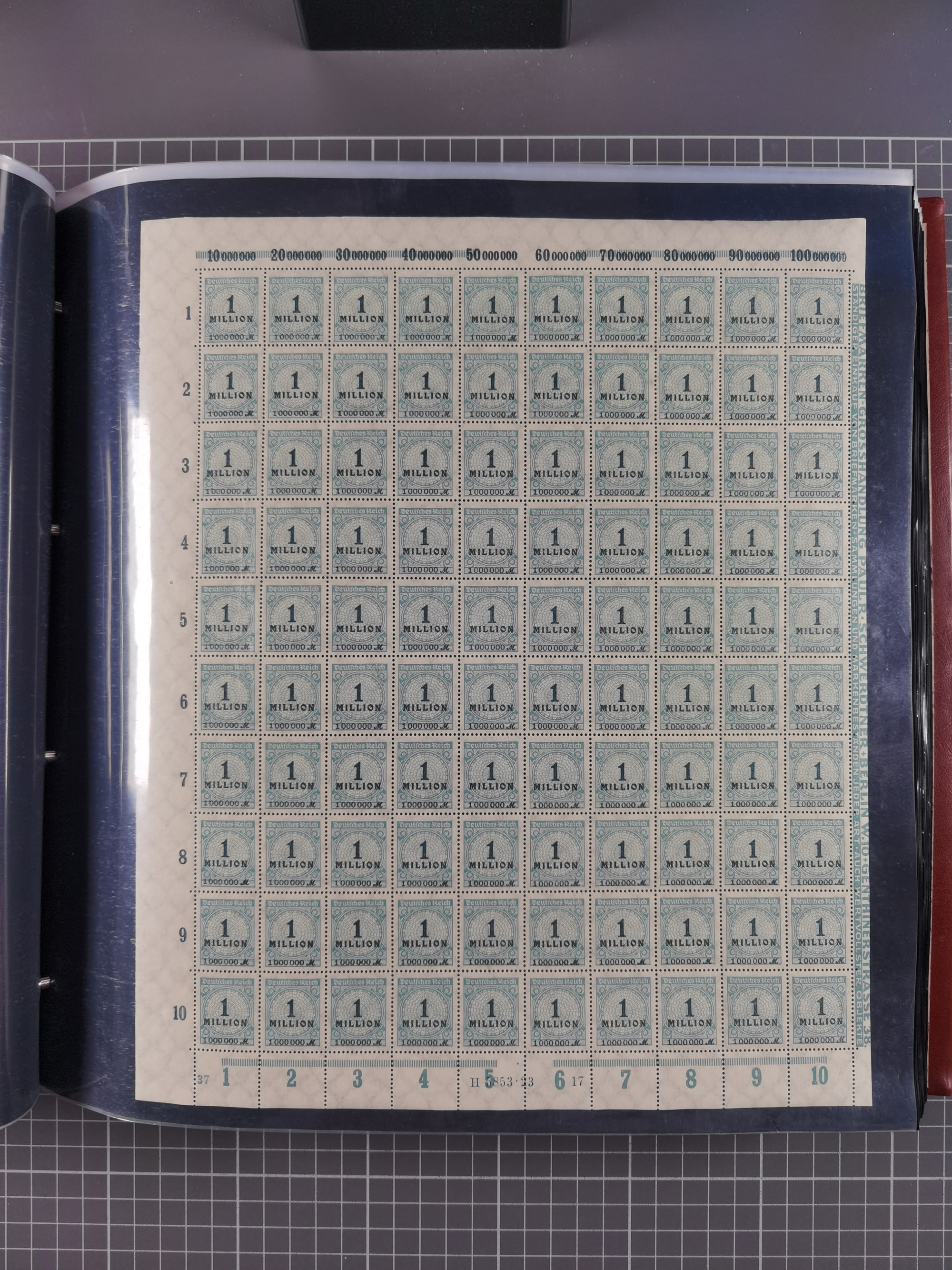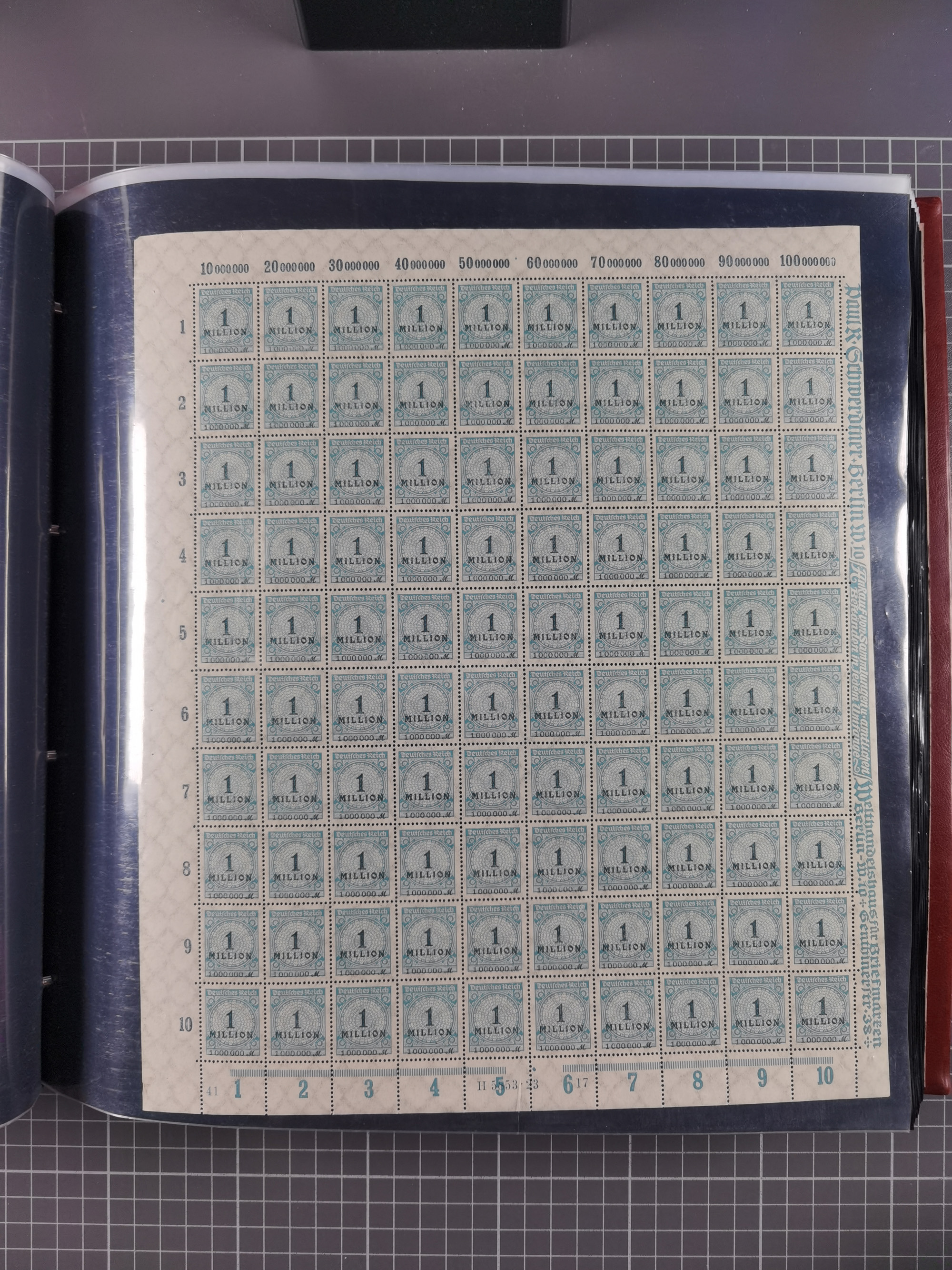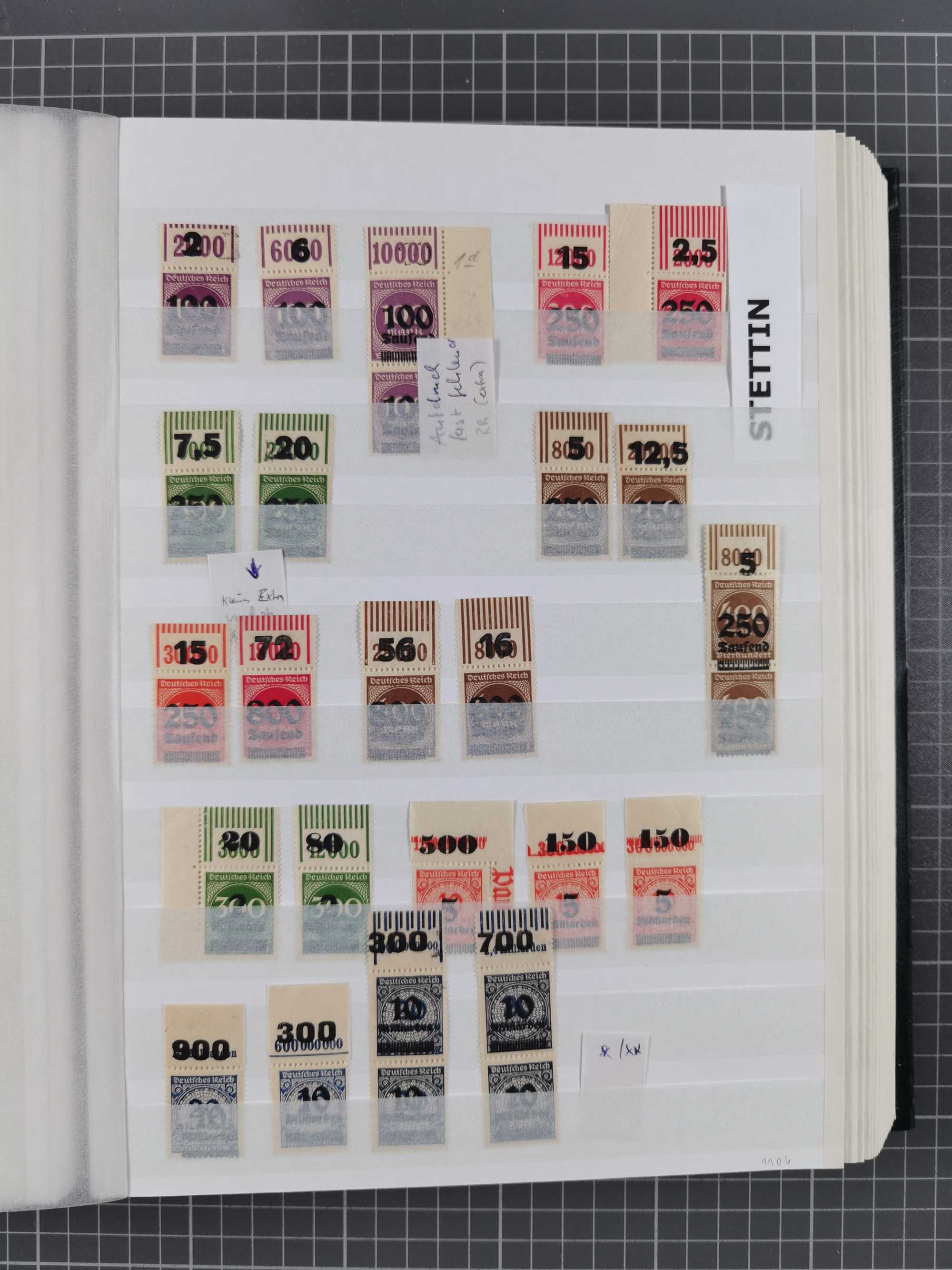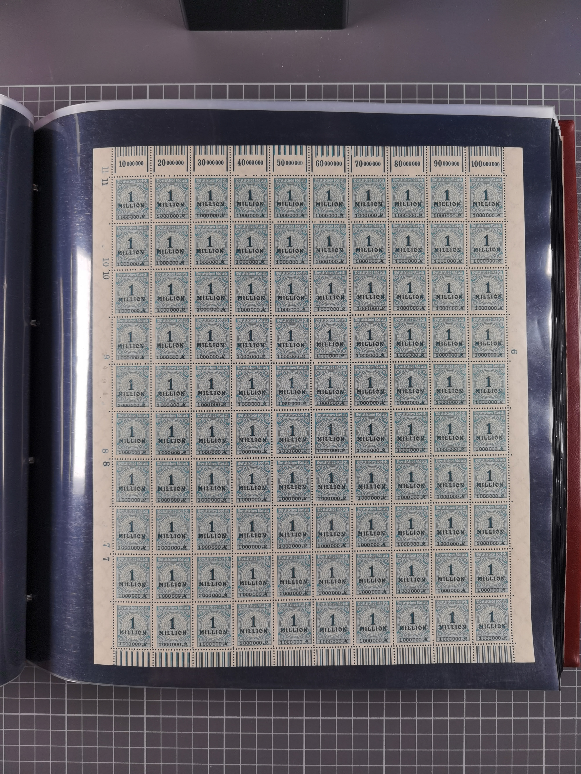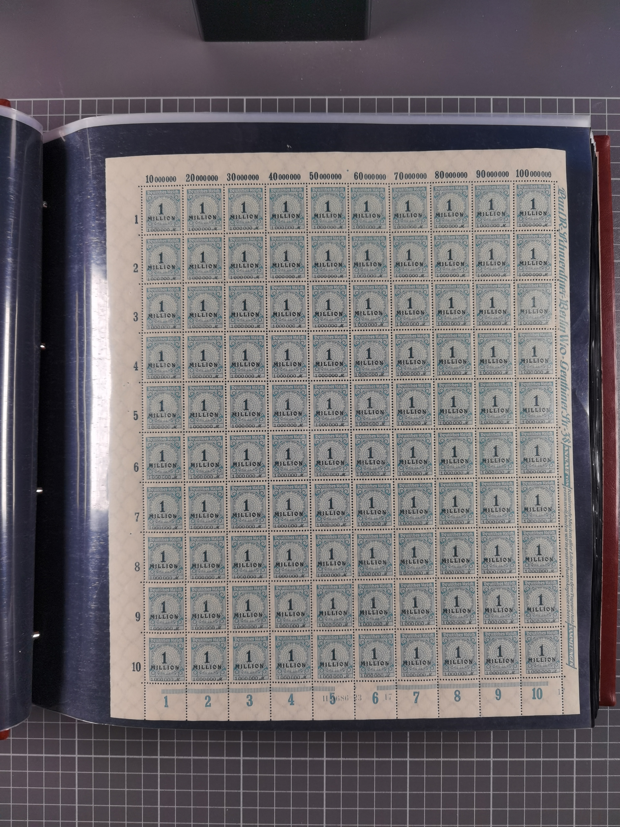 1923, meist postfrische Sammlung mit ca. 200 Bogen ex Mi.-Nr. 313-30, dabei u.a. Mi.-Nr. 330A (4) und 330B (3), gute Erhaltung, teils übliche Einschränkungen, in zwei Alben