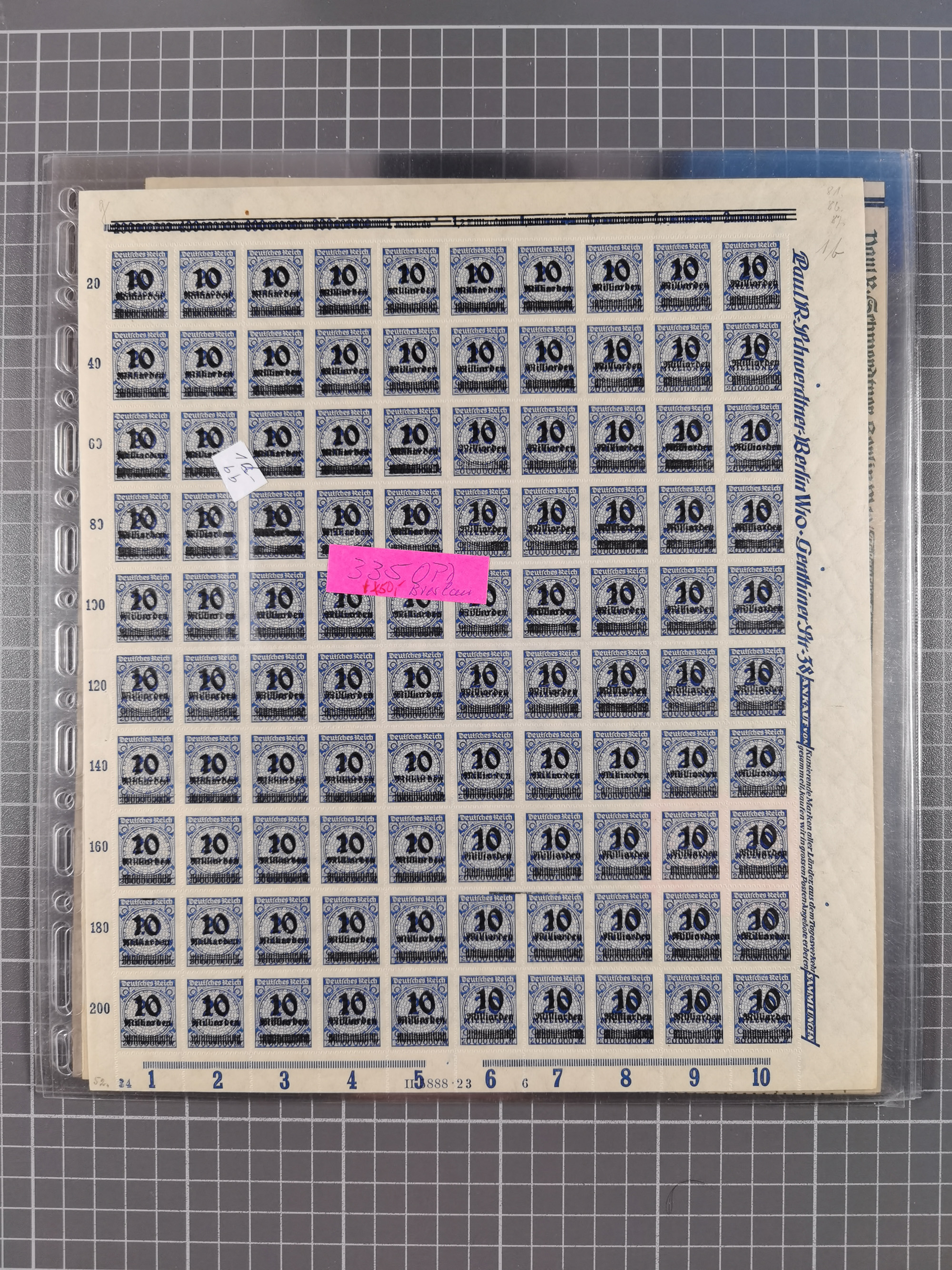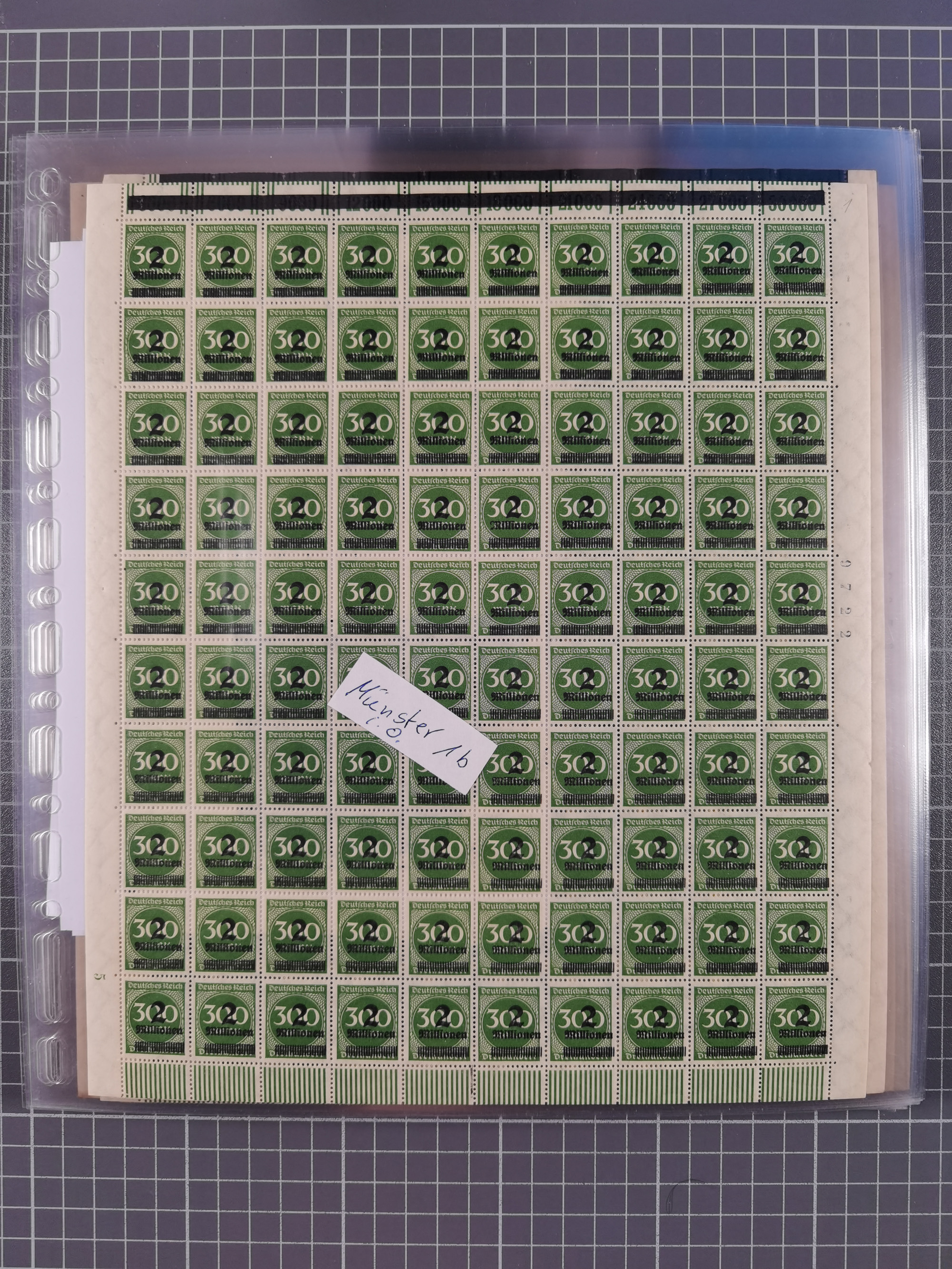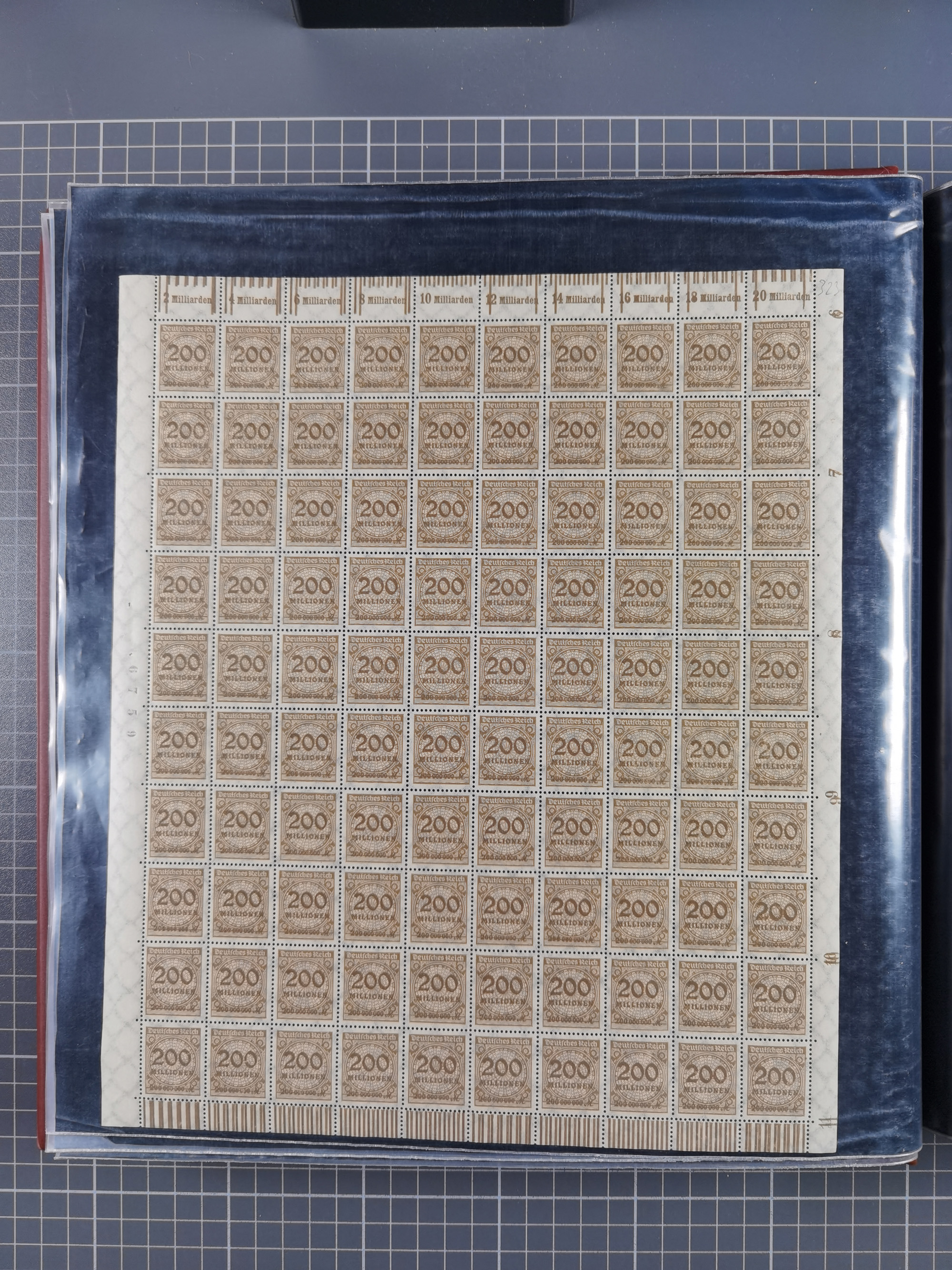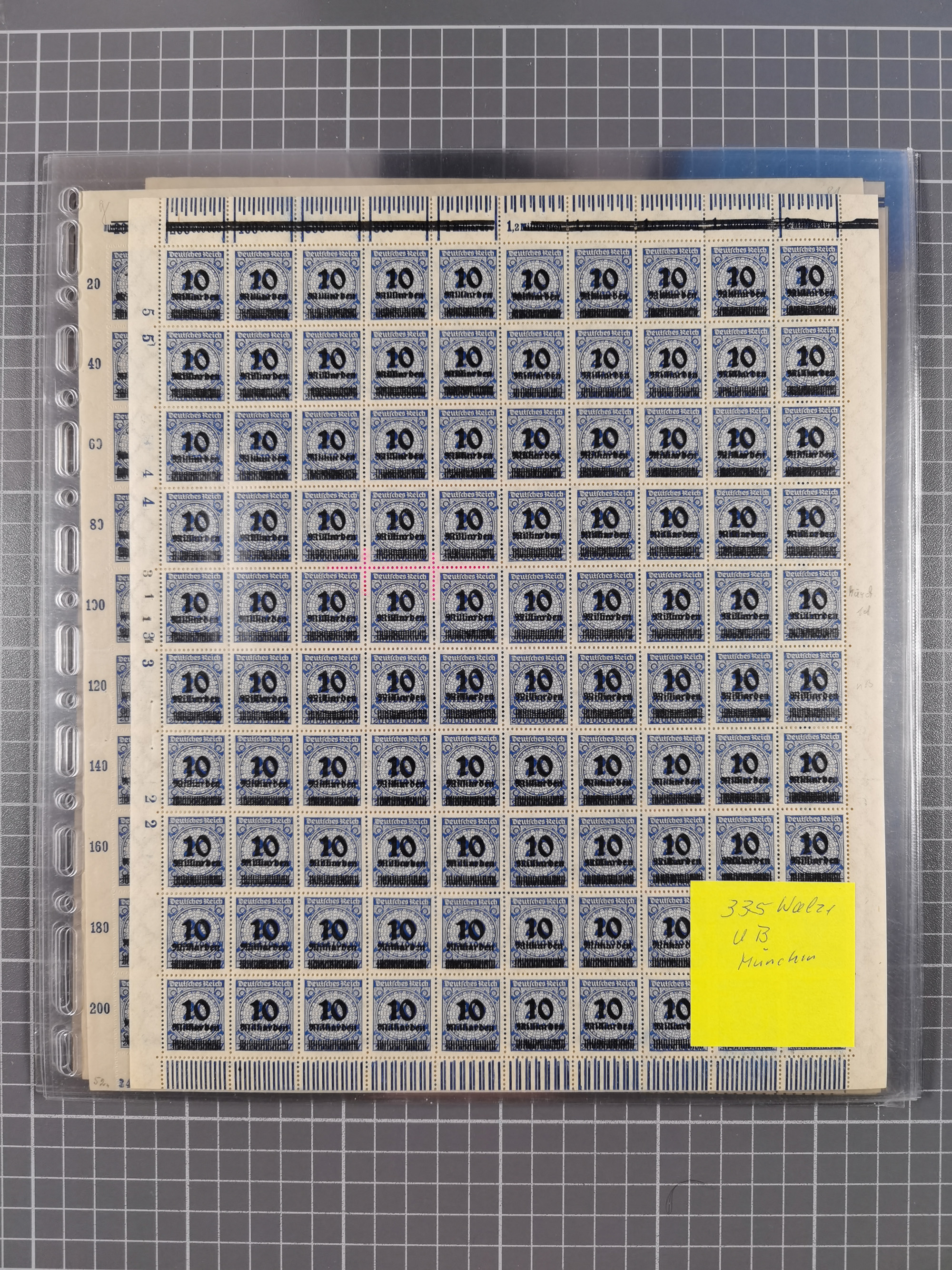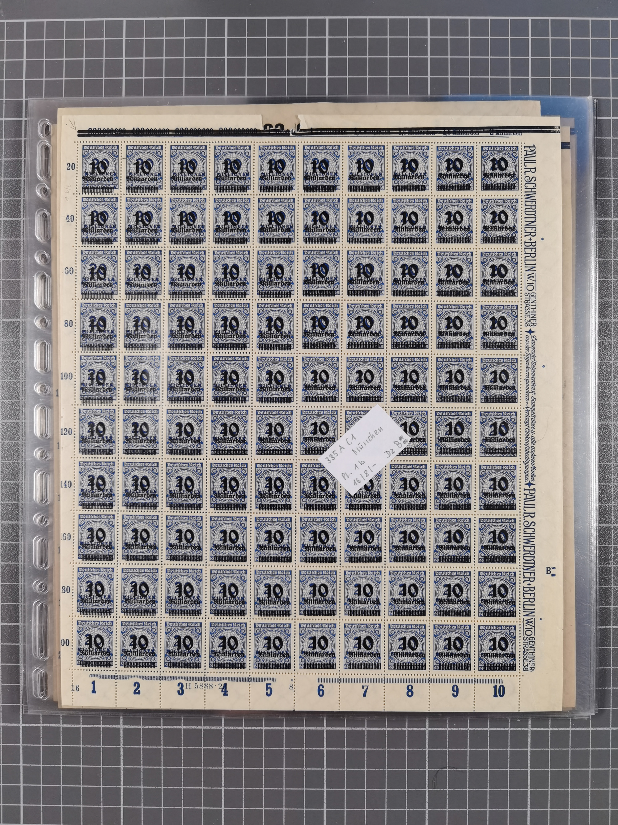 1922/23, meist postfrischer Engrosbestand mit überschlägig 300-400 Bögen, meist in Mengen zwischen 5 und 10 Stück, bis auf wenige ohne Gummi/Haftstellen in guter Erhaltung, in zwei großen Bogenmappen