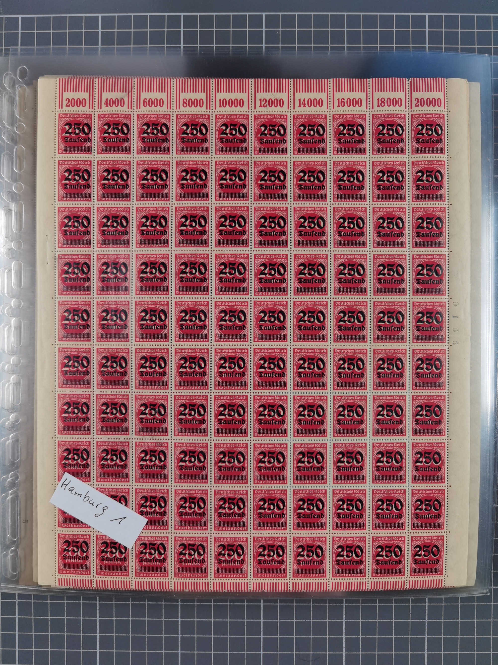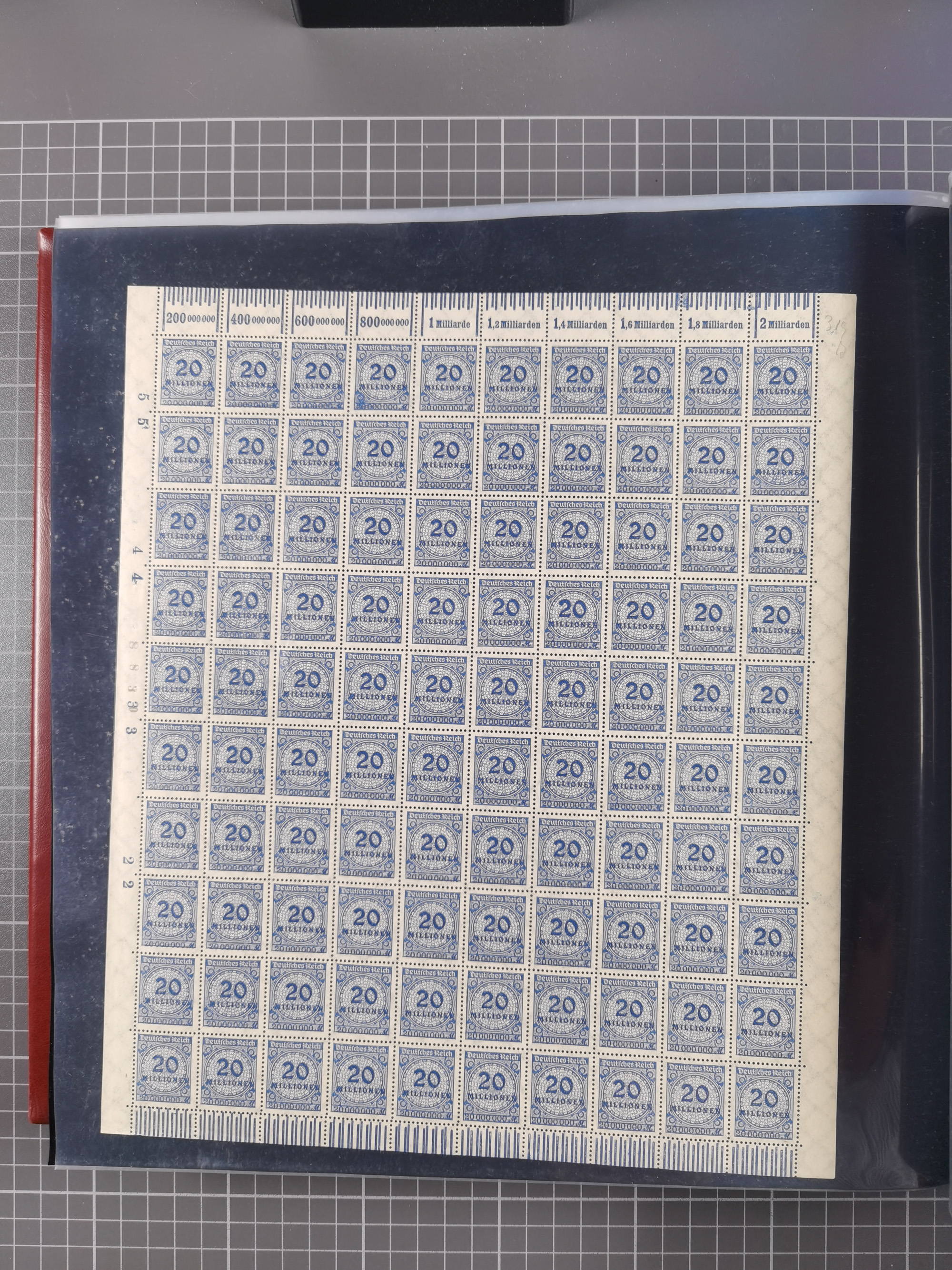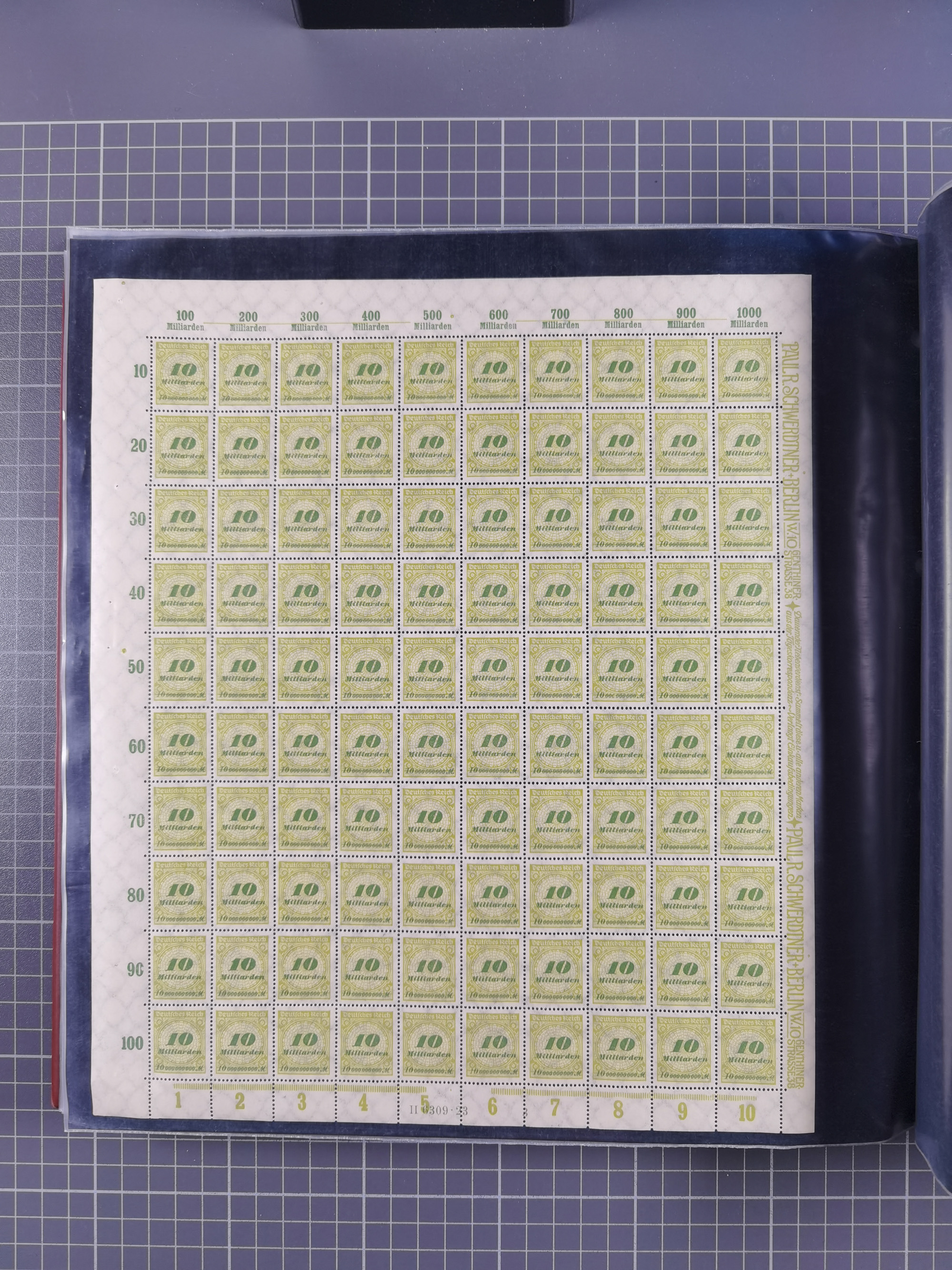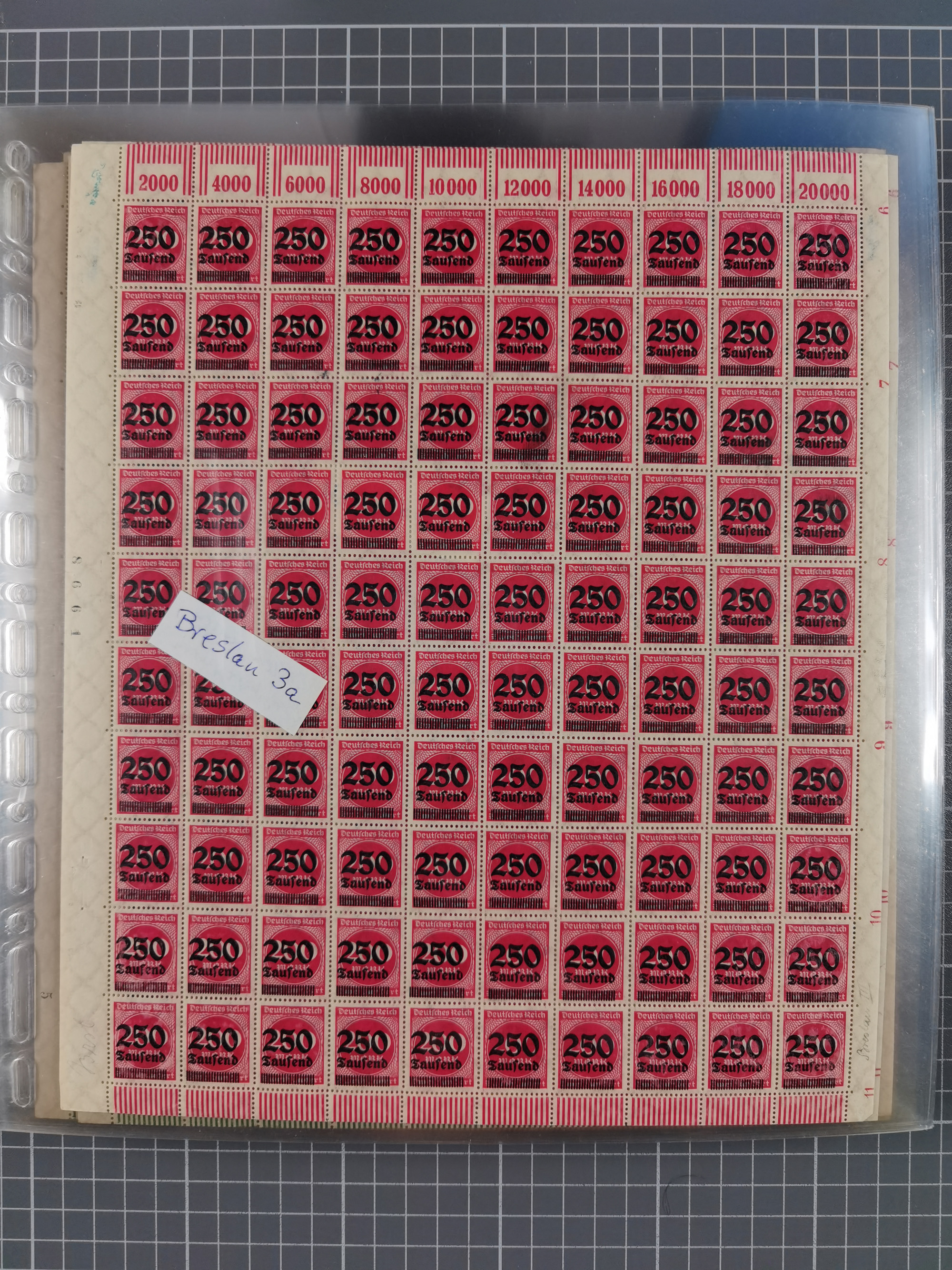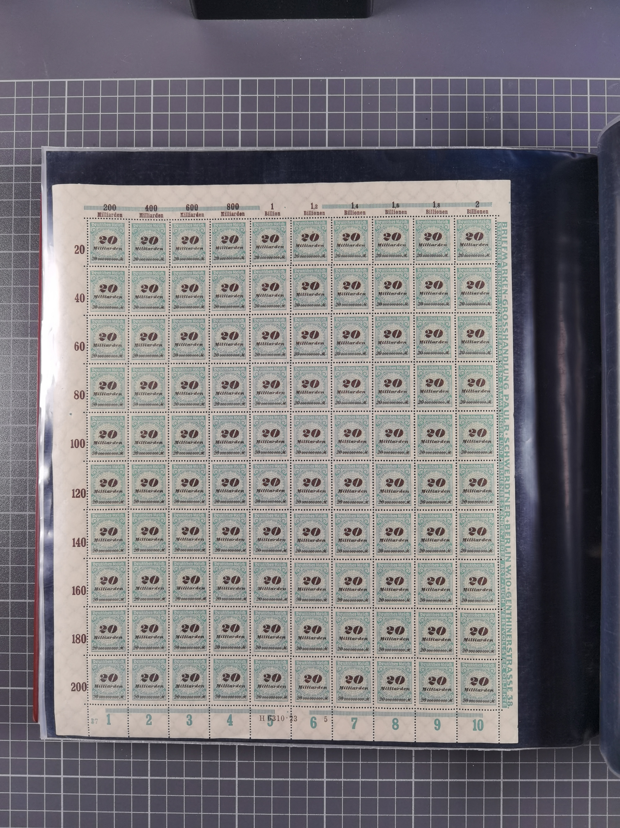 1922/23, meist postfrischer Engrosbestand mit überschlägig 300-400 Bögen, meist in Mengen zwischen 5 und 10 Stück, bis auf wenige ohne Gummi/Haftstellen in guter Erhaltung, in zwei großen Bogenmappen