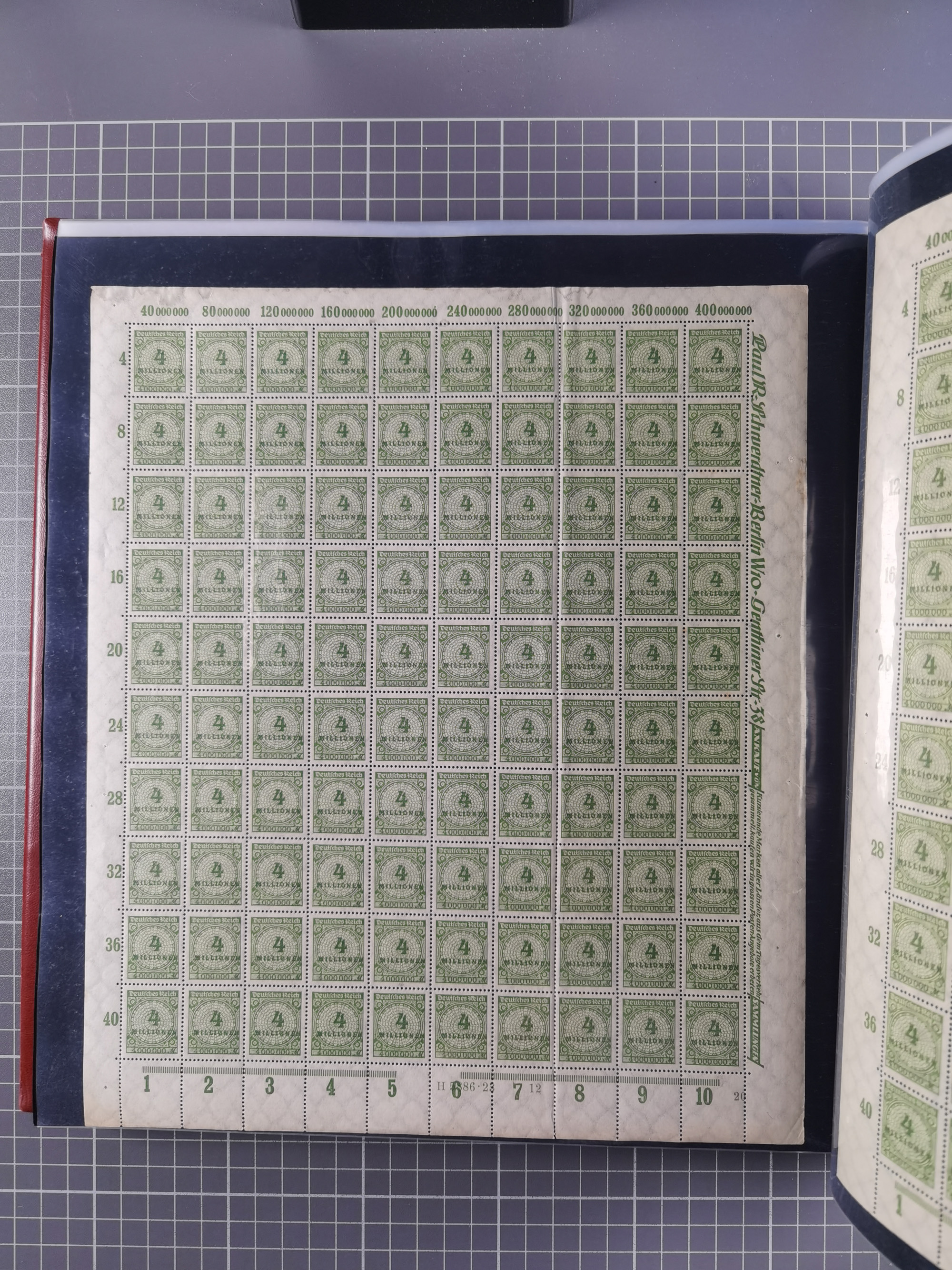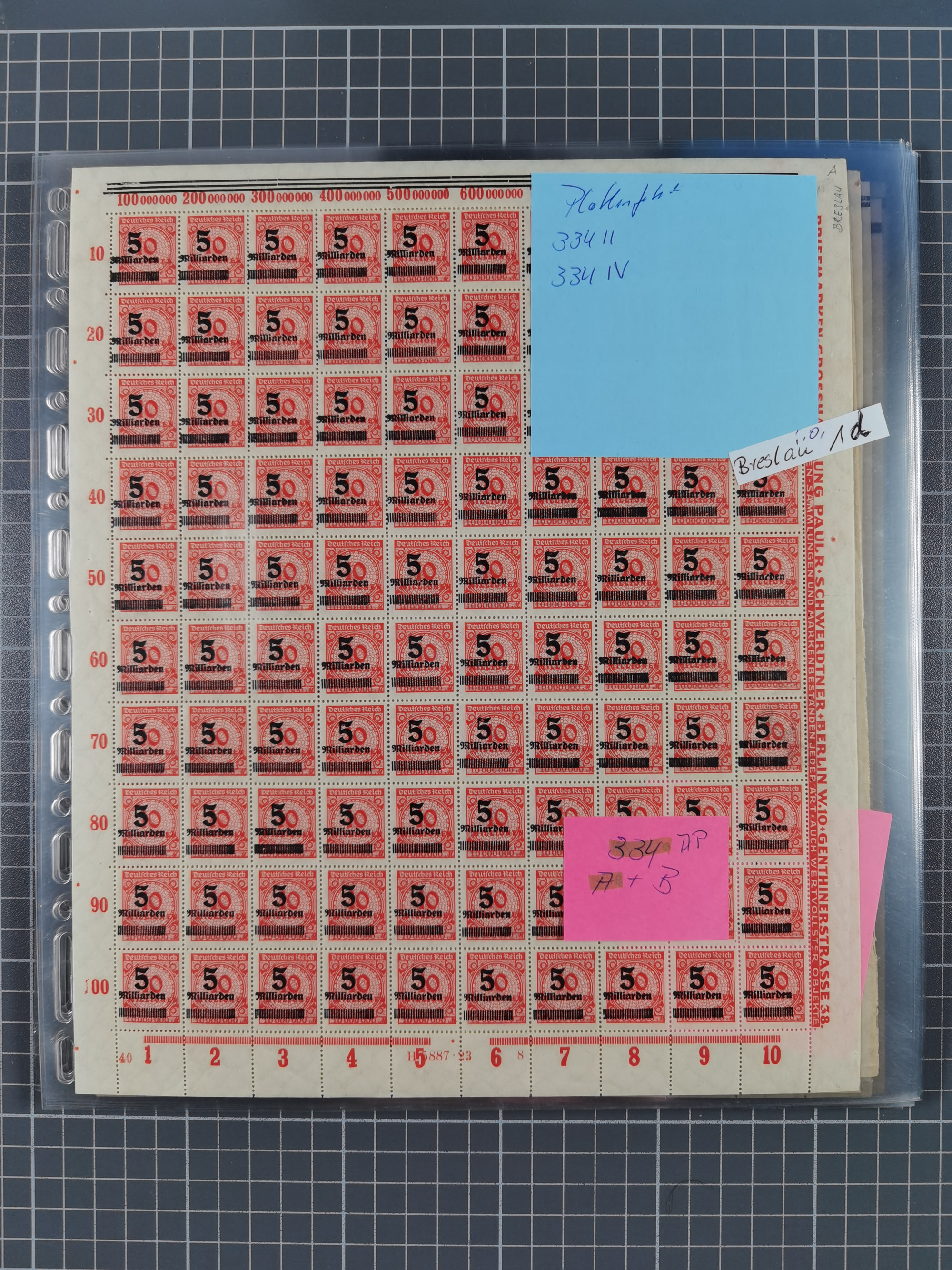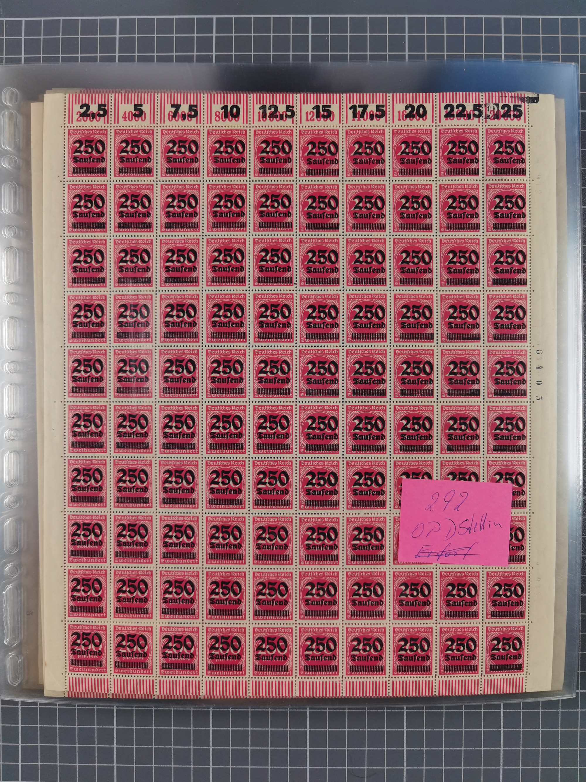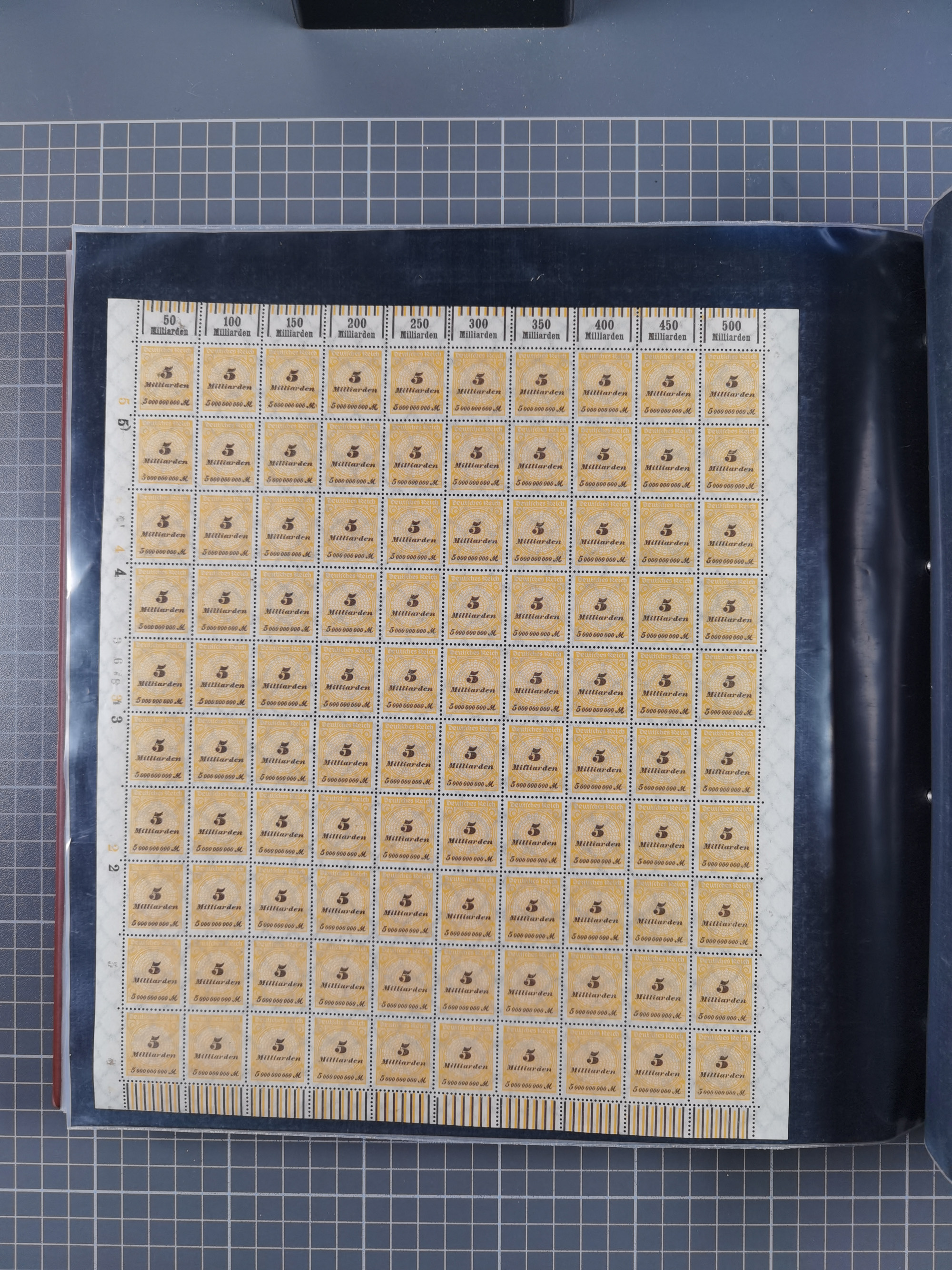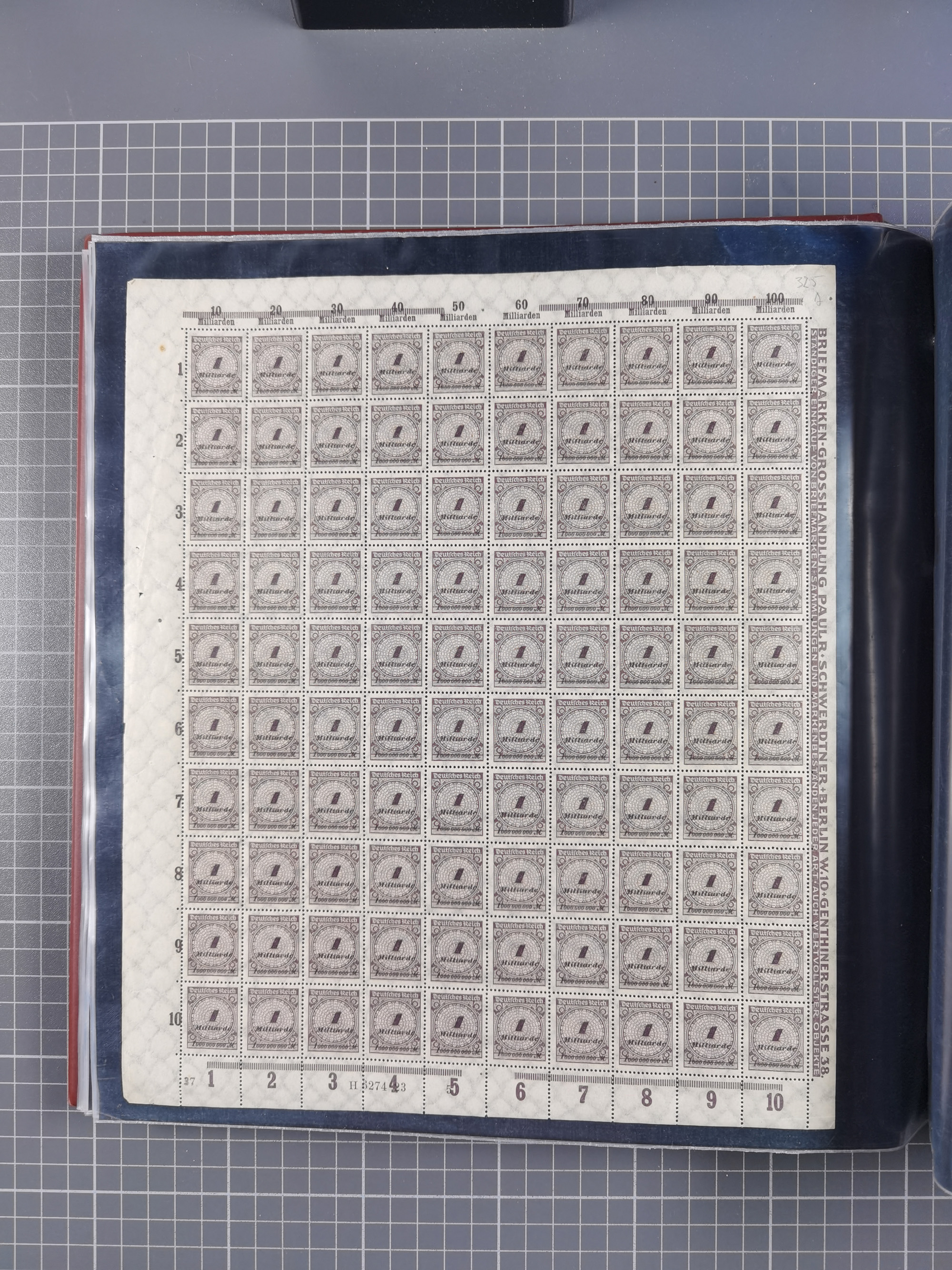 1922/23, meist postfrischer Engrosbestand mit überschlägig 300-400 Bögen, meist in Mengen zwischen 5 und 10 Stück, bis auf wenige ohne Gummi/Haftstellen in guter Erhaltung, in zwei großen Bogenmappen