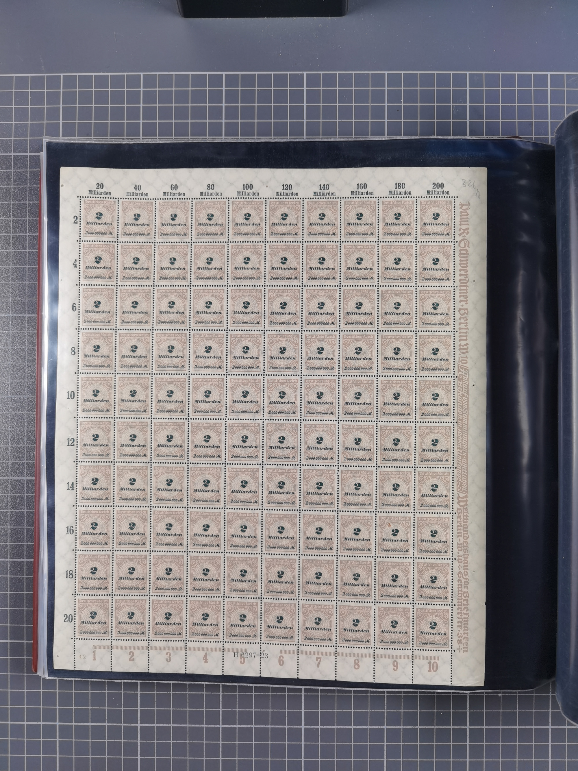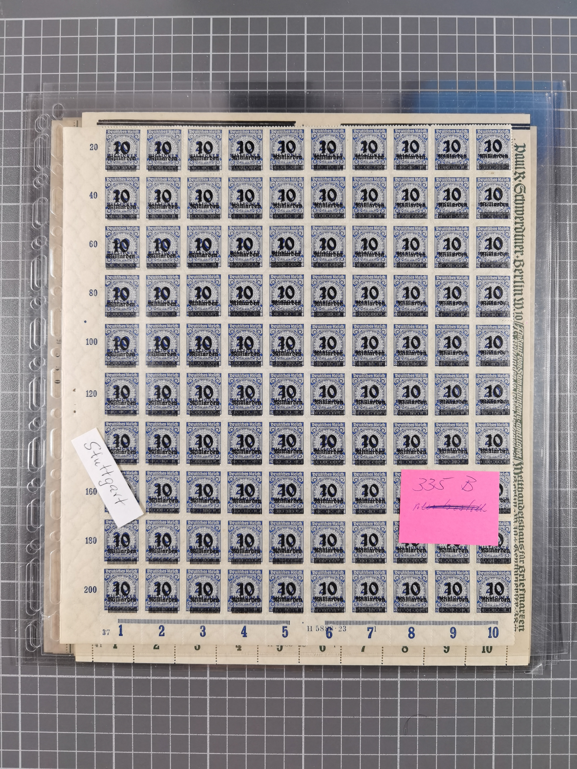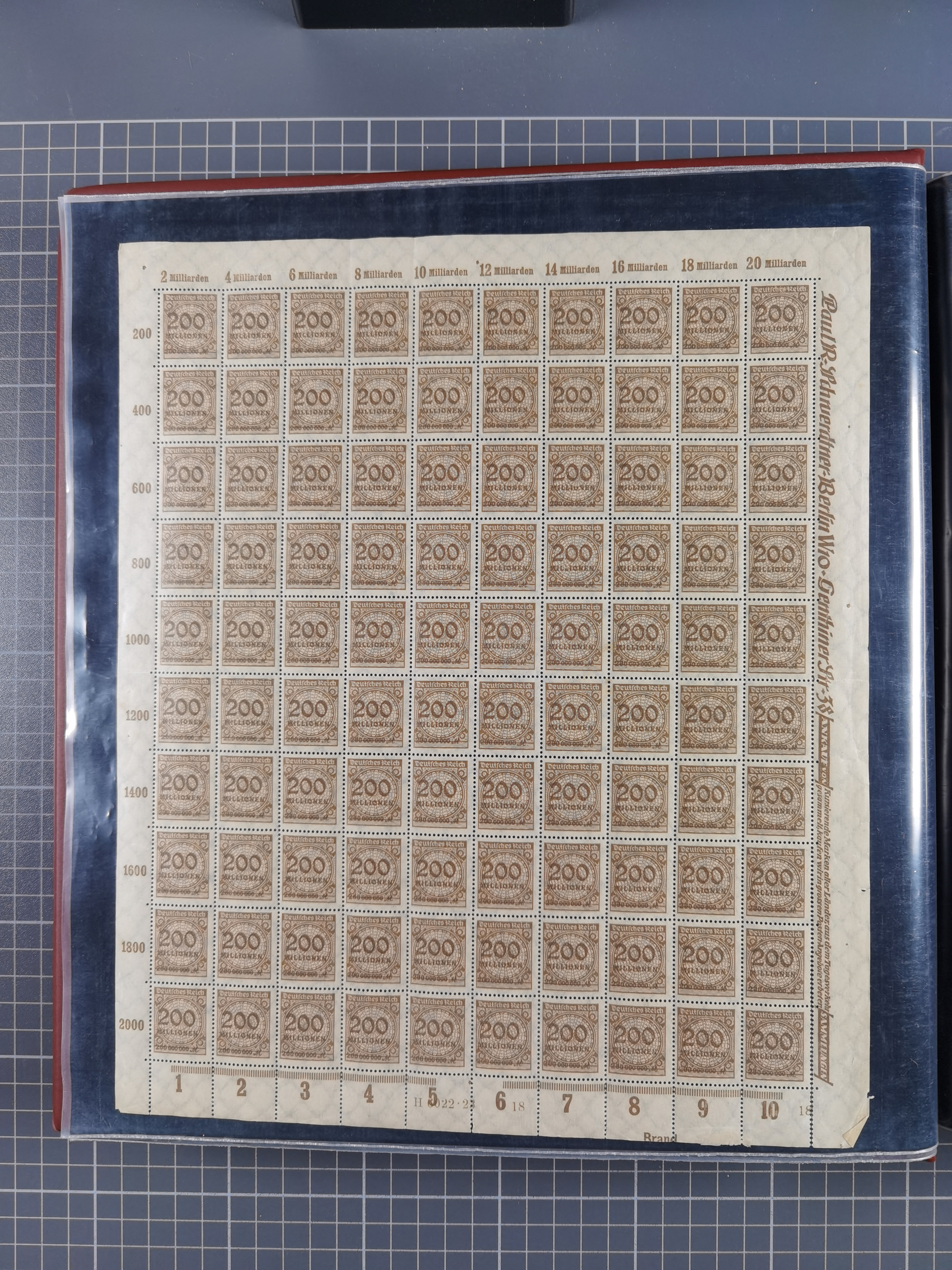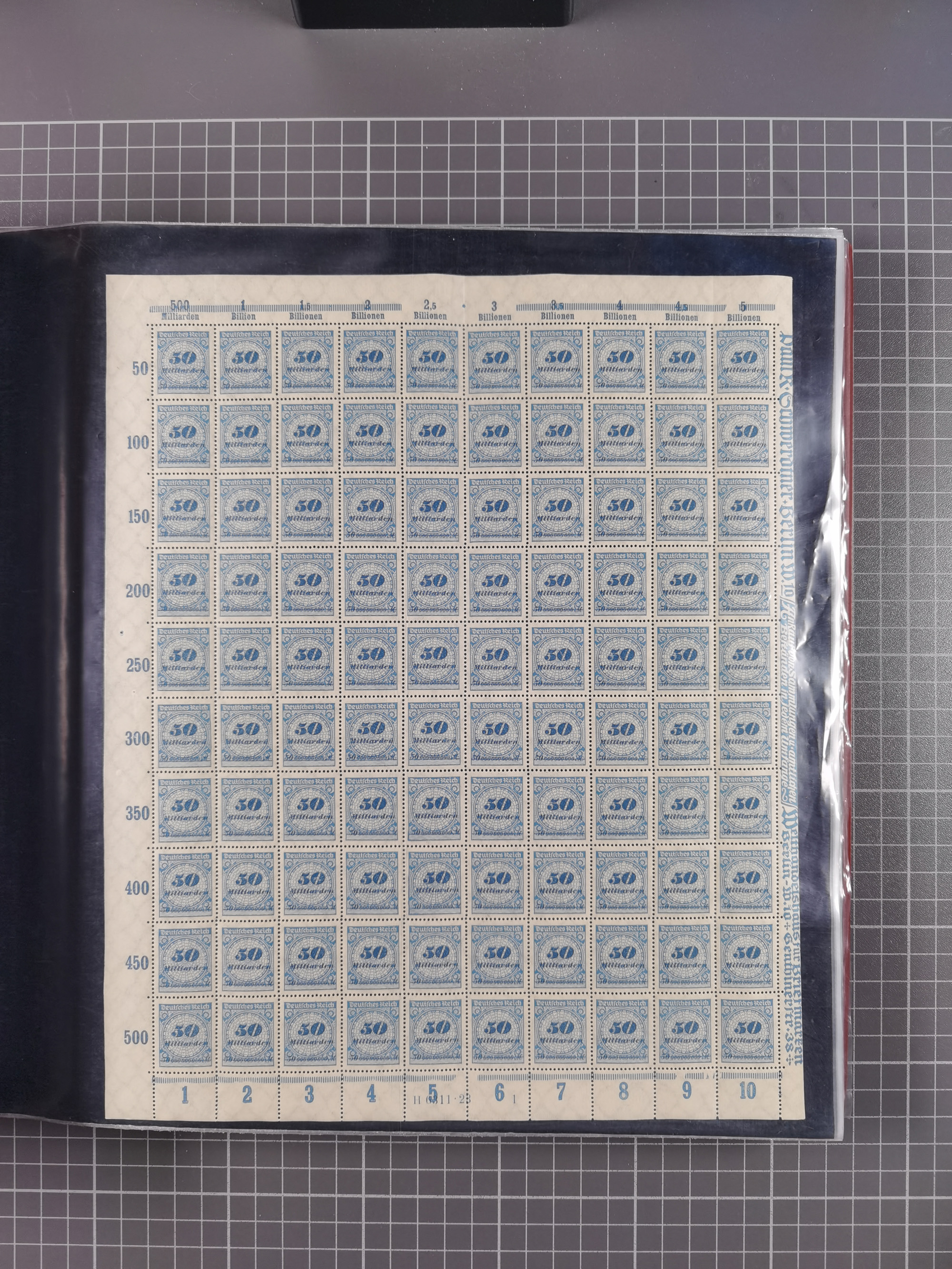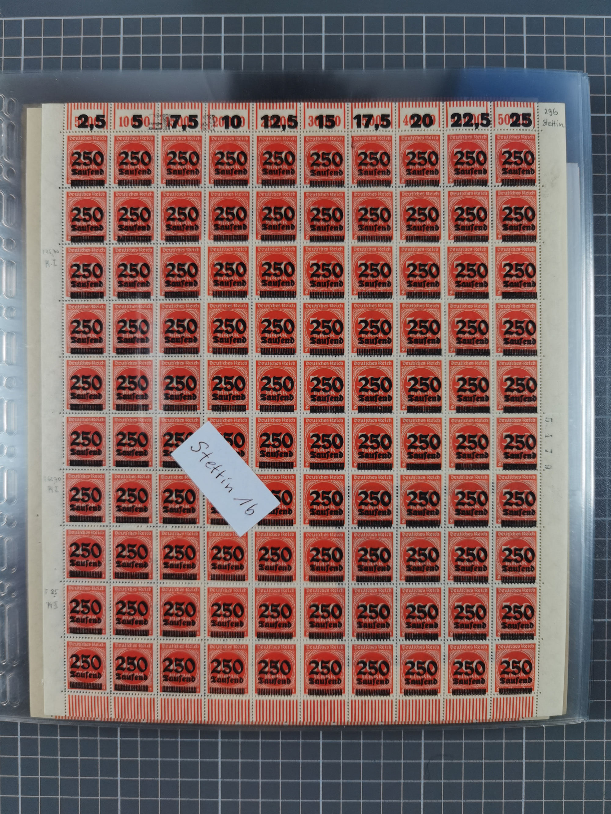 1922/23, meist postfrischer Engrosbestand mit überschlägig 300-400 Bögen, meist in Mengen zwischen 5 und 10 Stück, bis auf wenige ohne Gummi/Haftstellen in guter Erhaltung, in zwei großen Bogenmappen